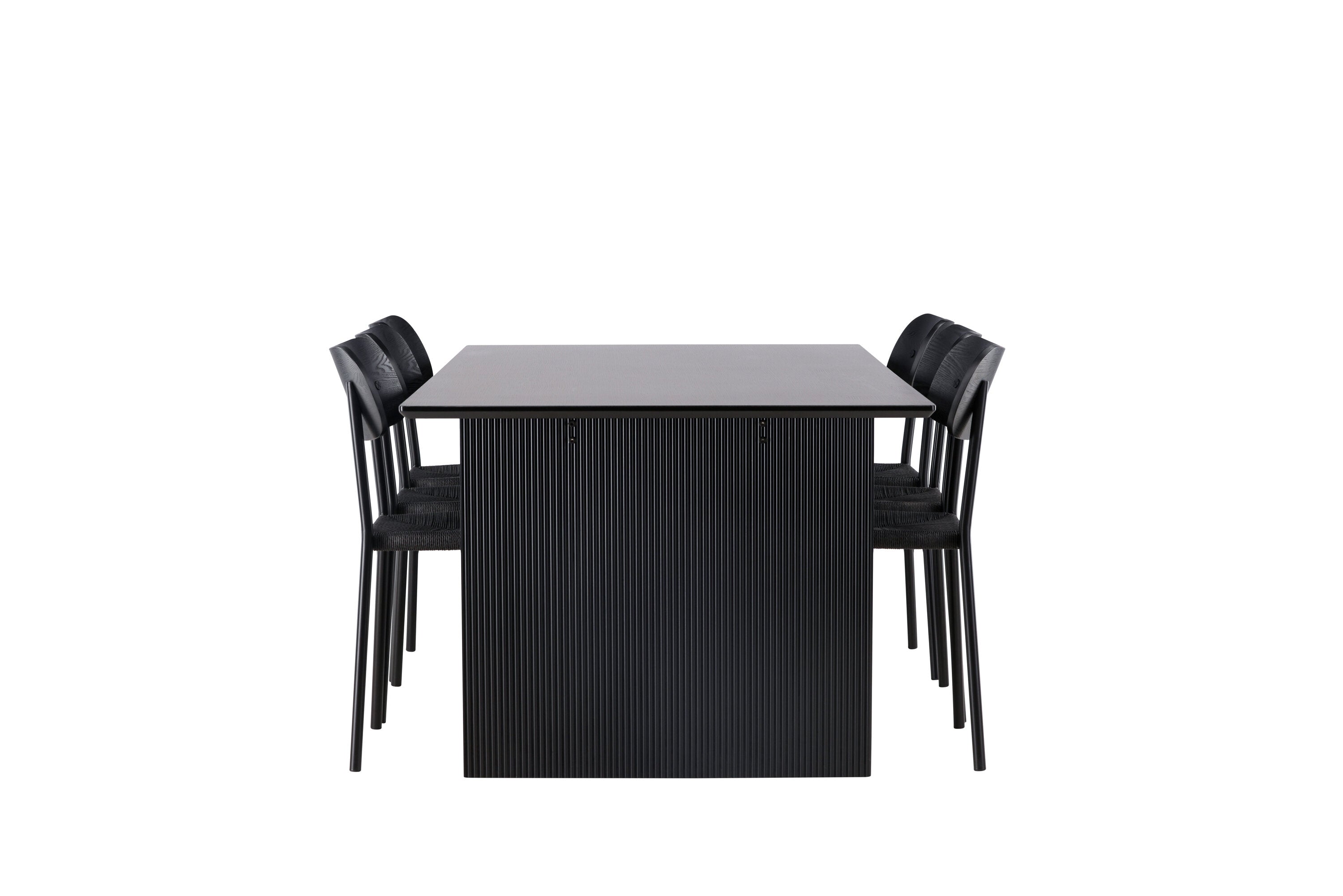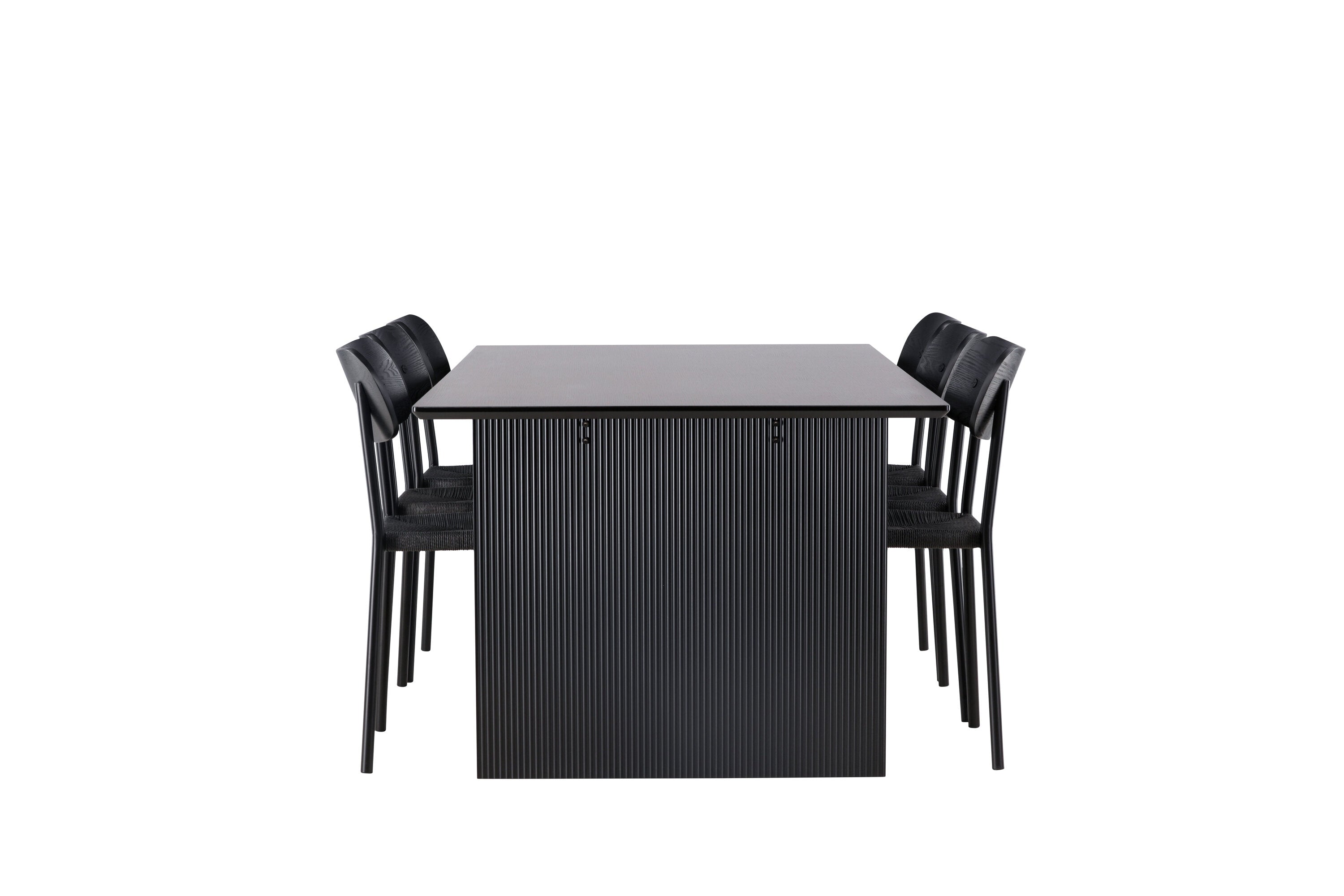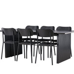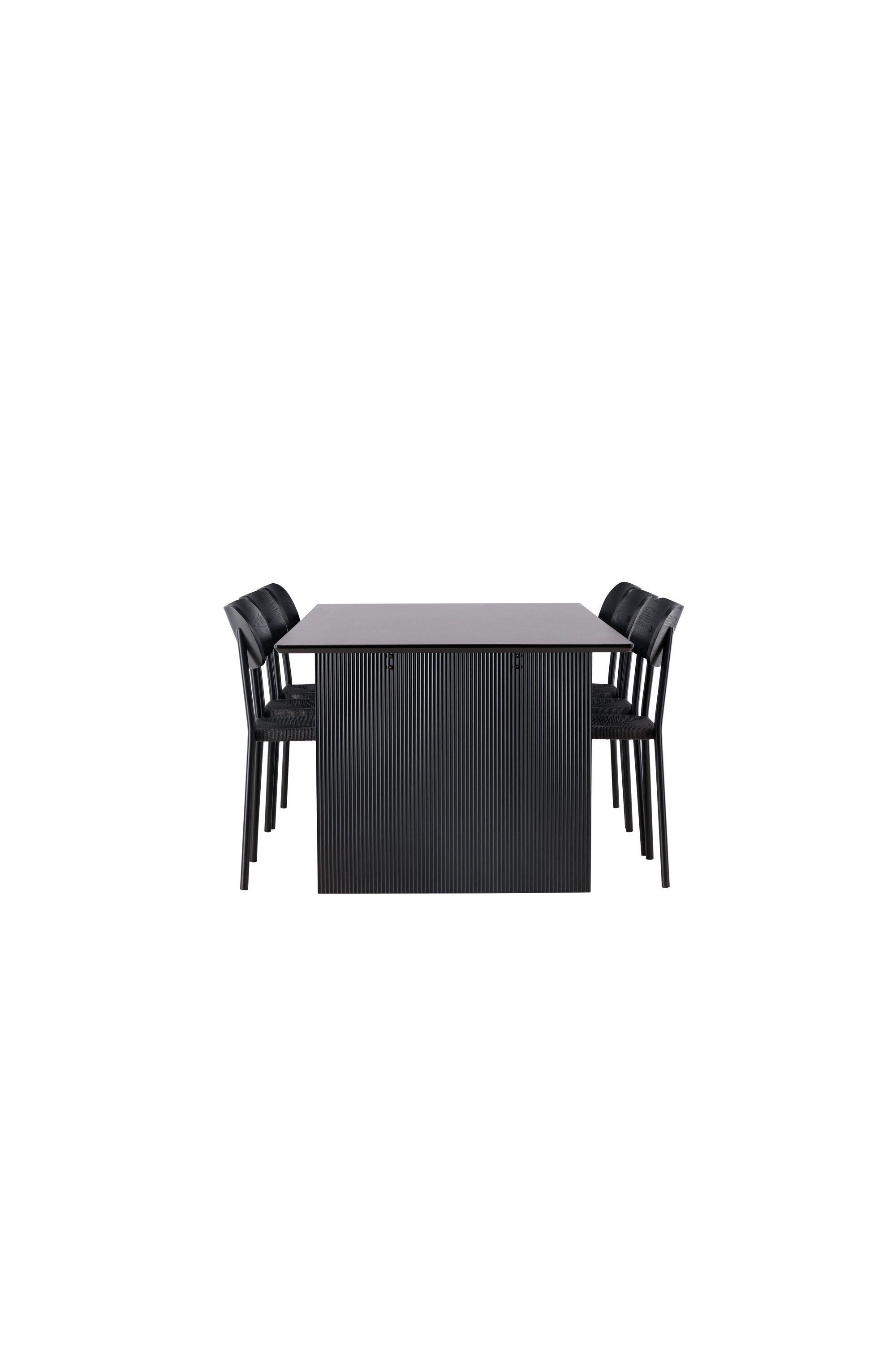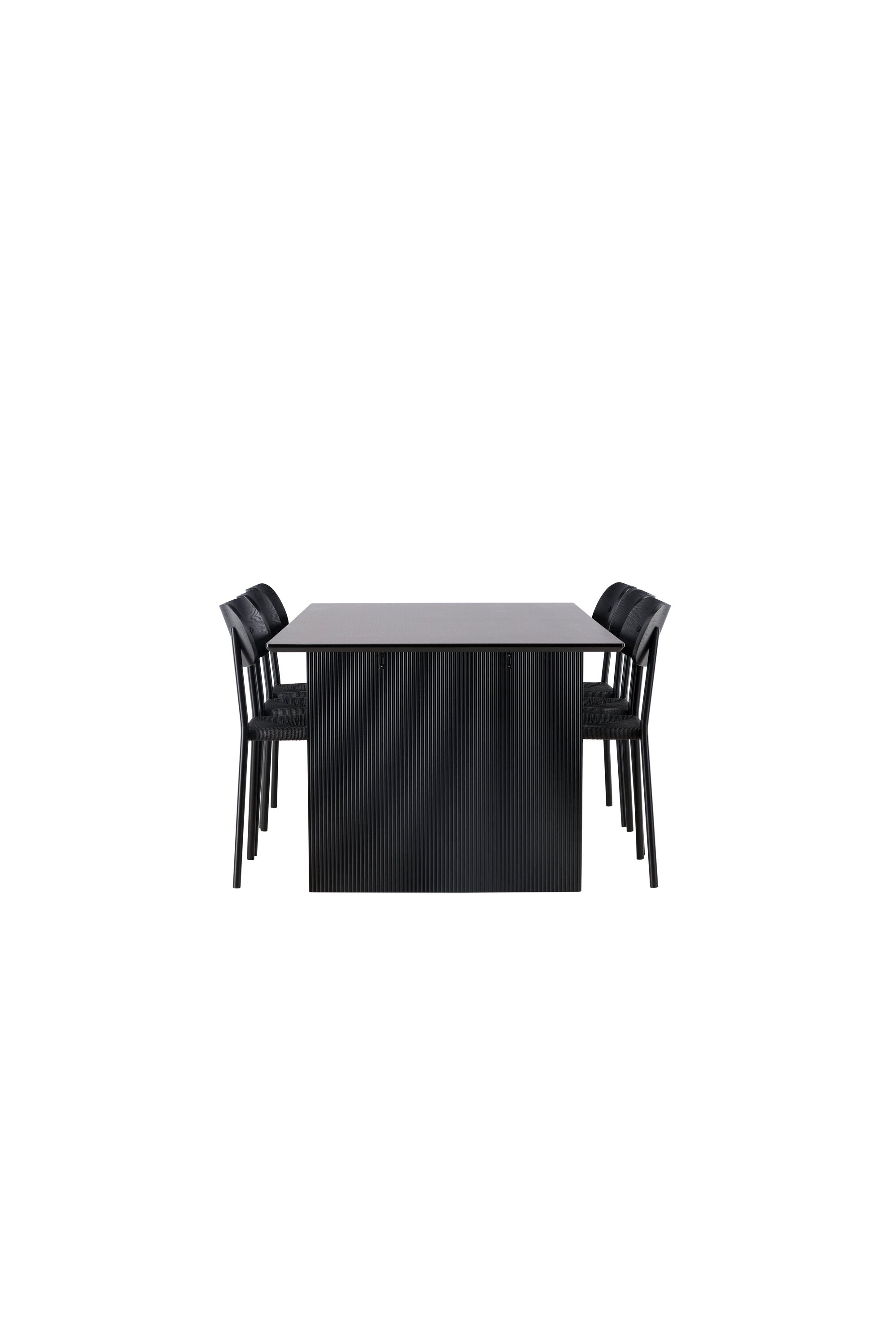 Jídelní stůl Vail – černá / kouřová černá MDF + jídelní židle Polly – černá / černá _6