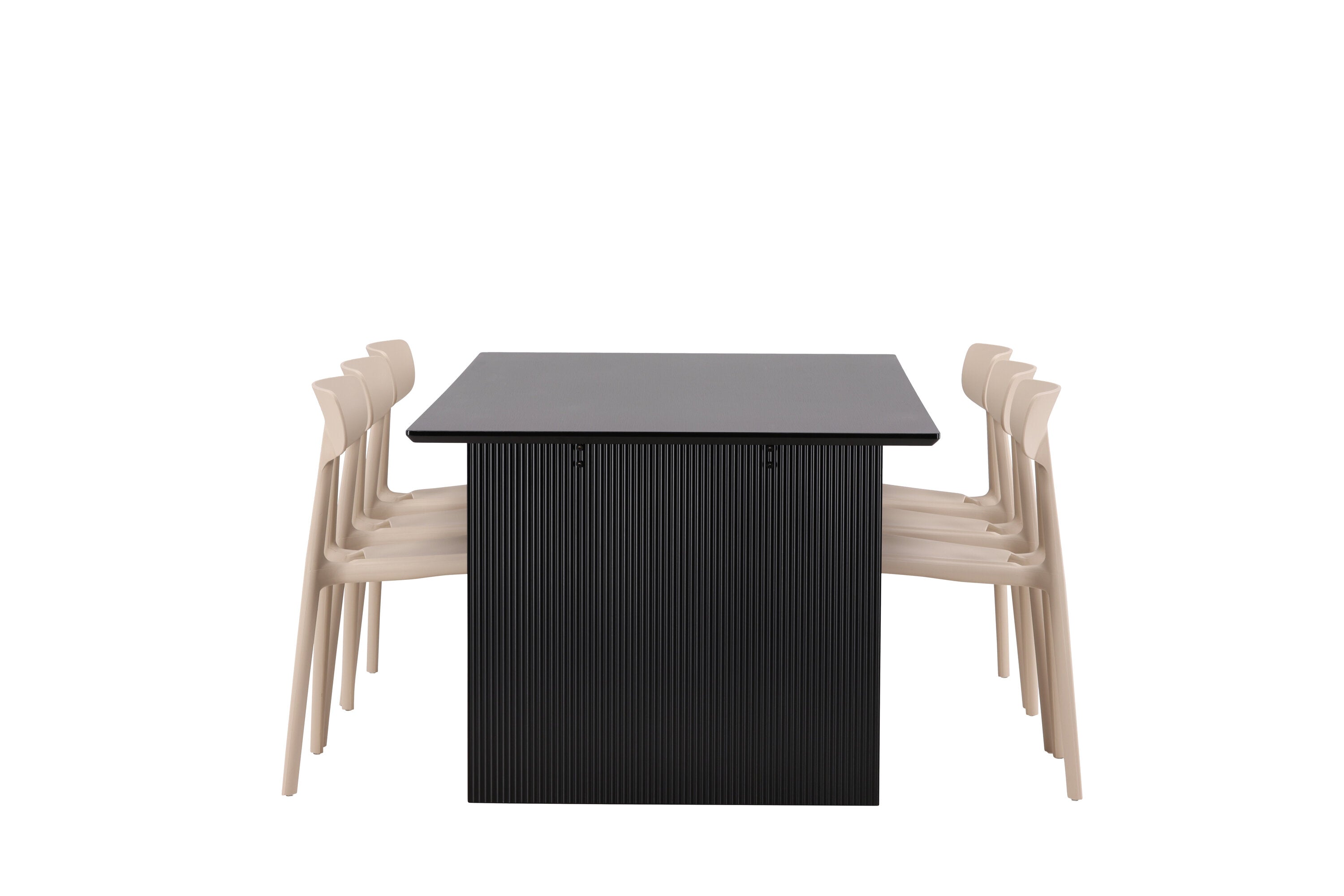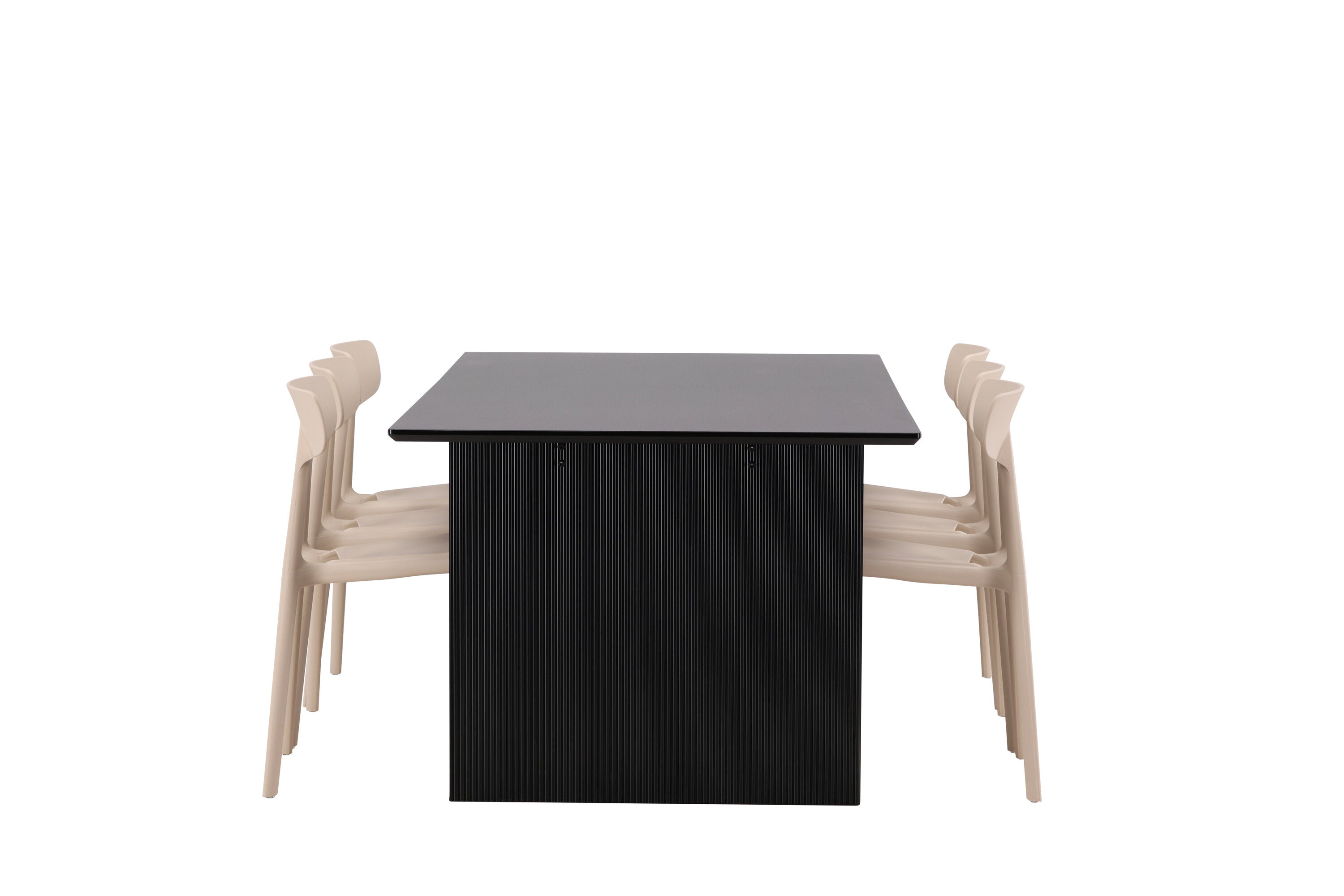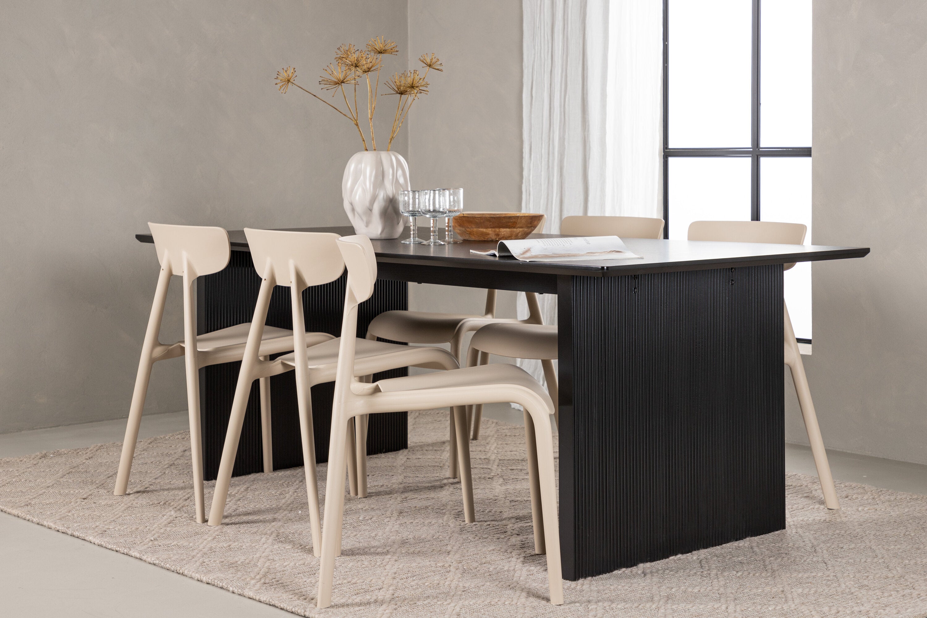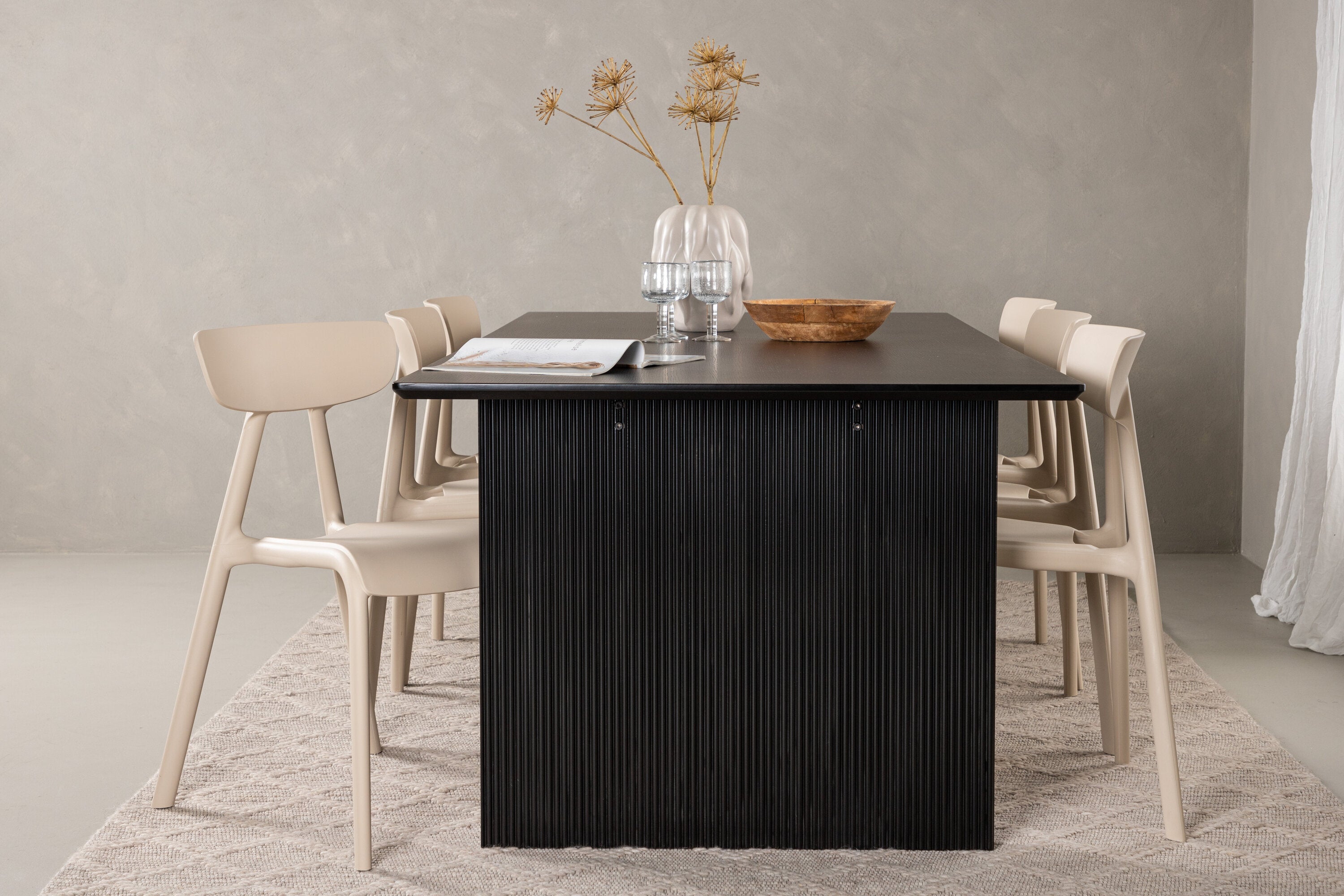 Jídelní stůl Vail – černá / kouřová černá MDF +Ursholmen jídelní židle – přírodní/béžový polypropylen _6