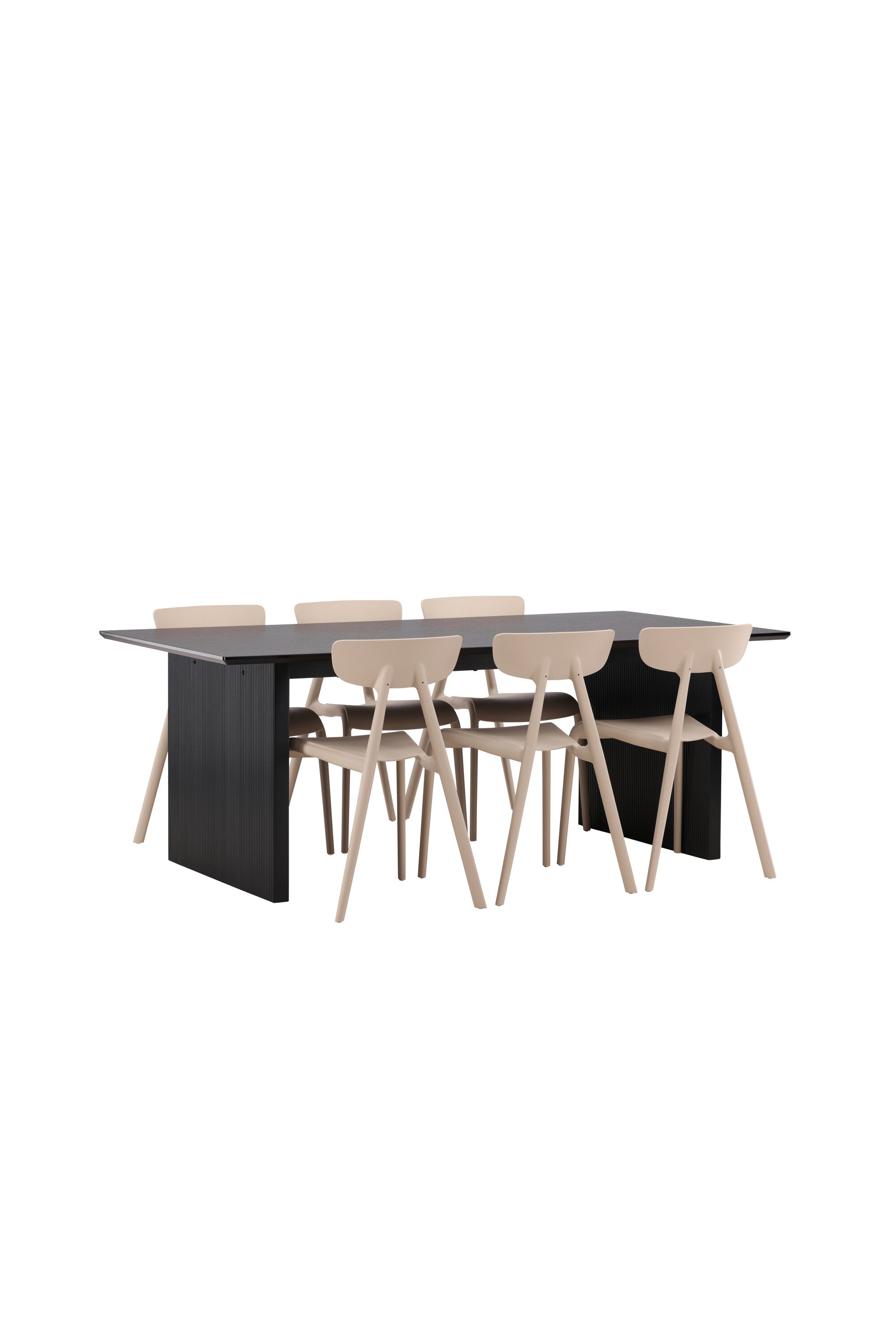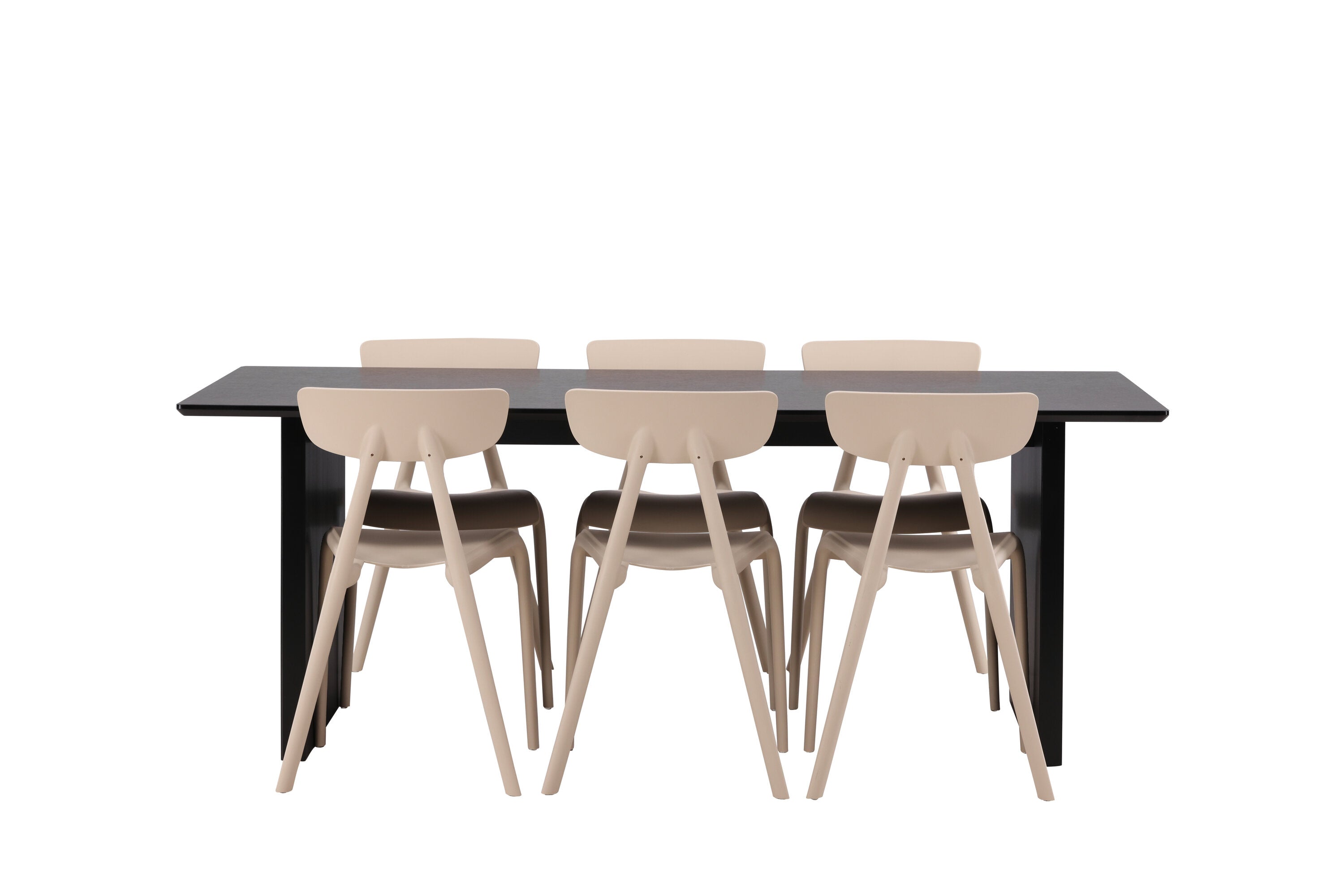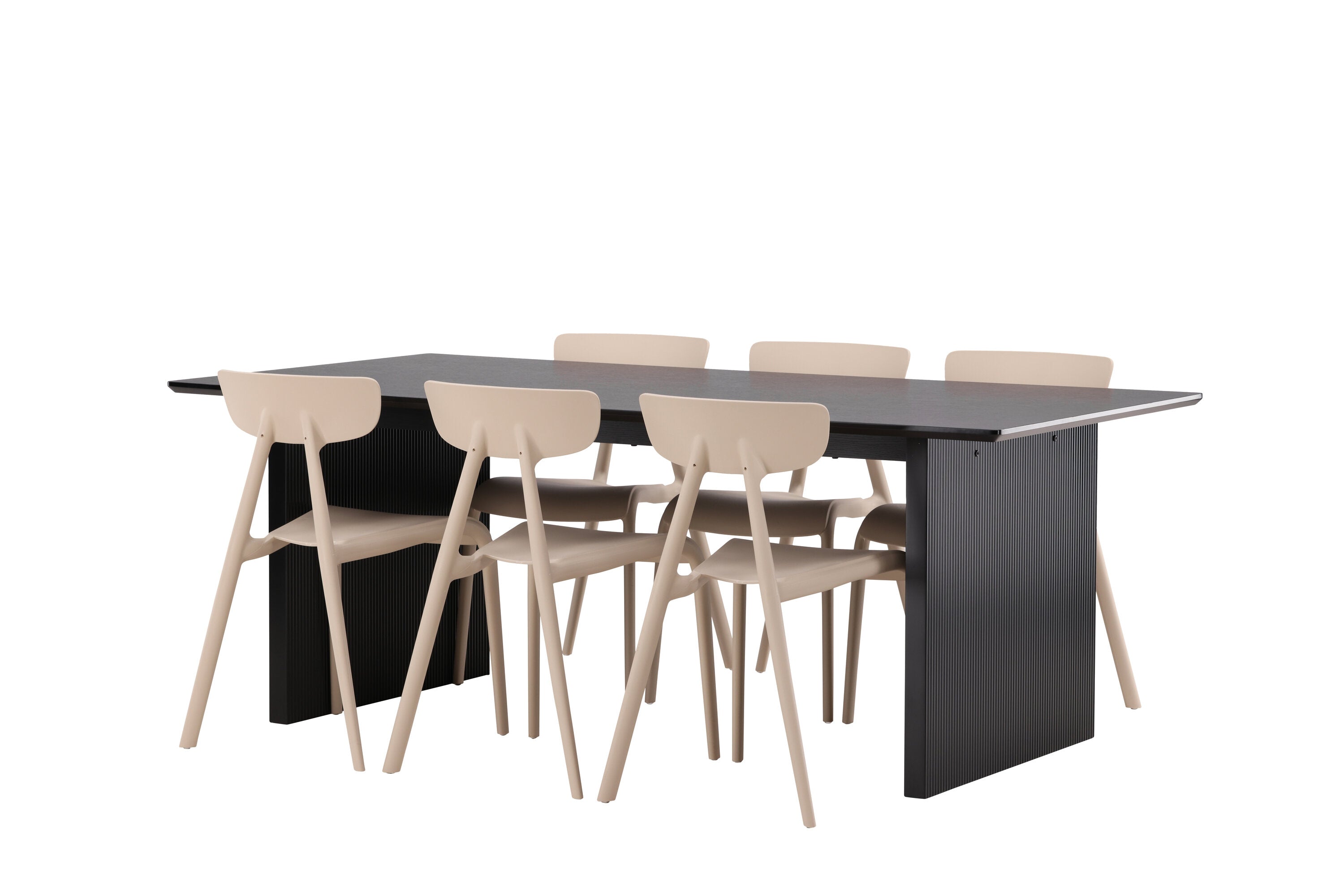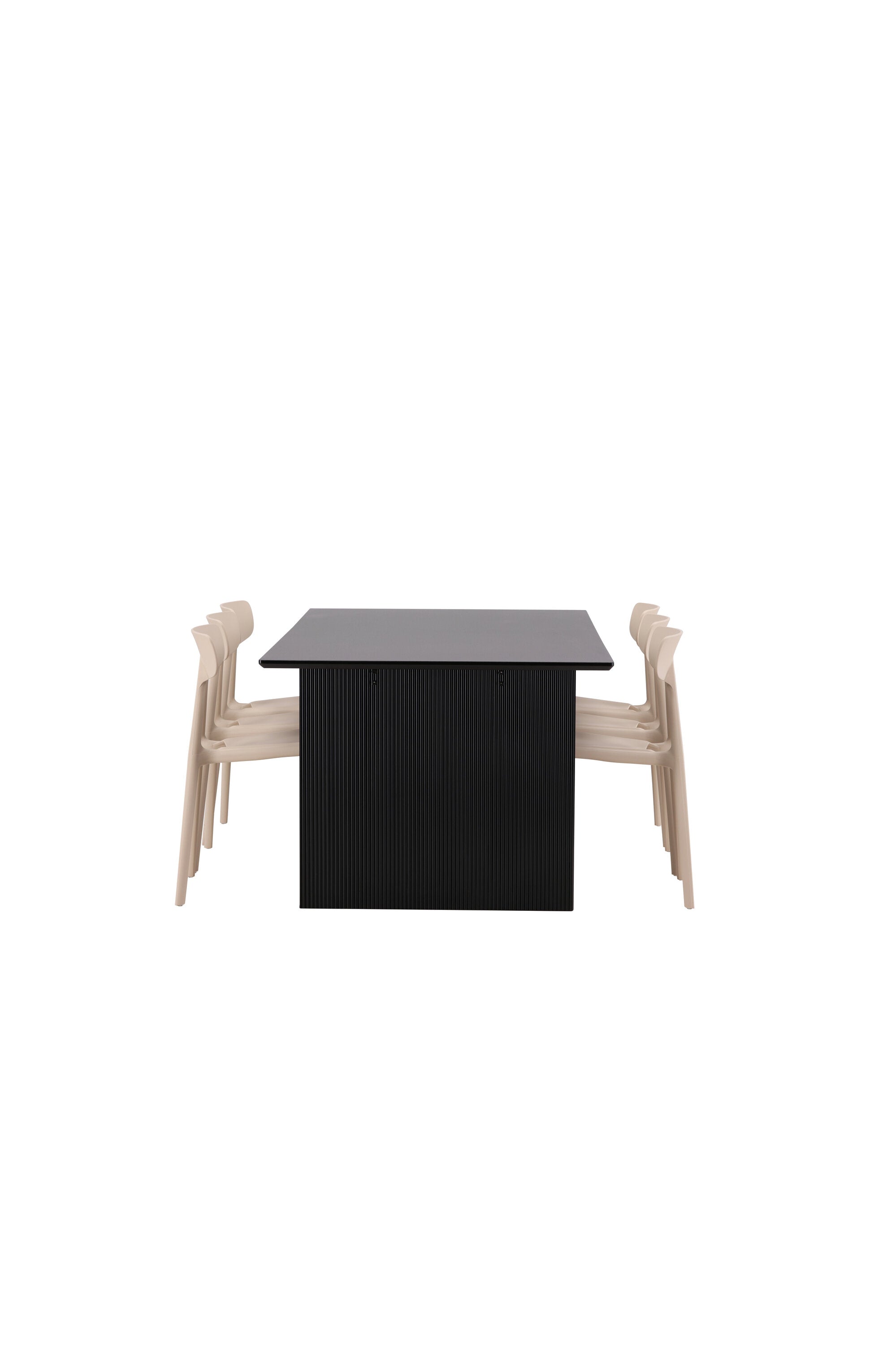 Jídelní stůl Vail – černá / kouřová černá MDF +Ursholmen jídelní židle – přírodní/béžový polypropylen _6
