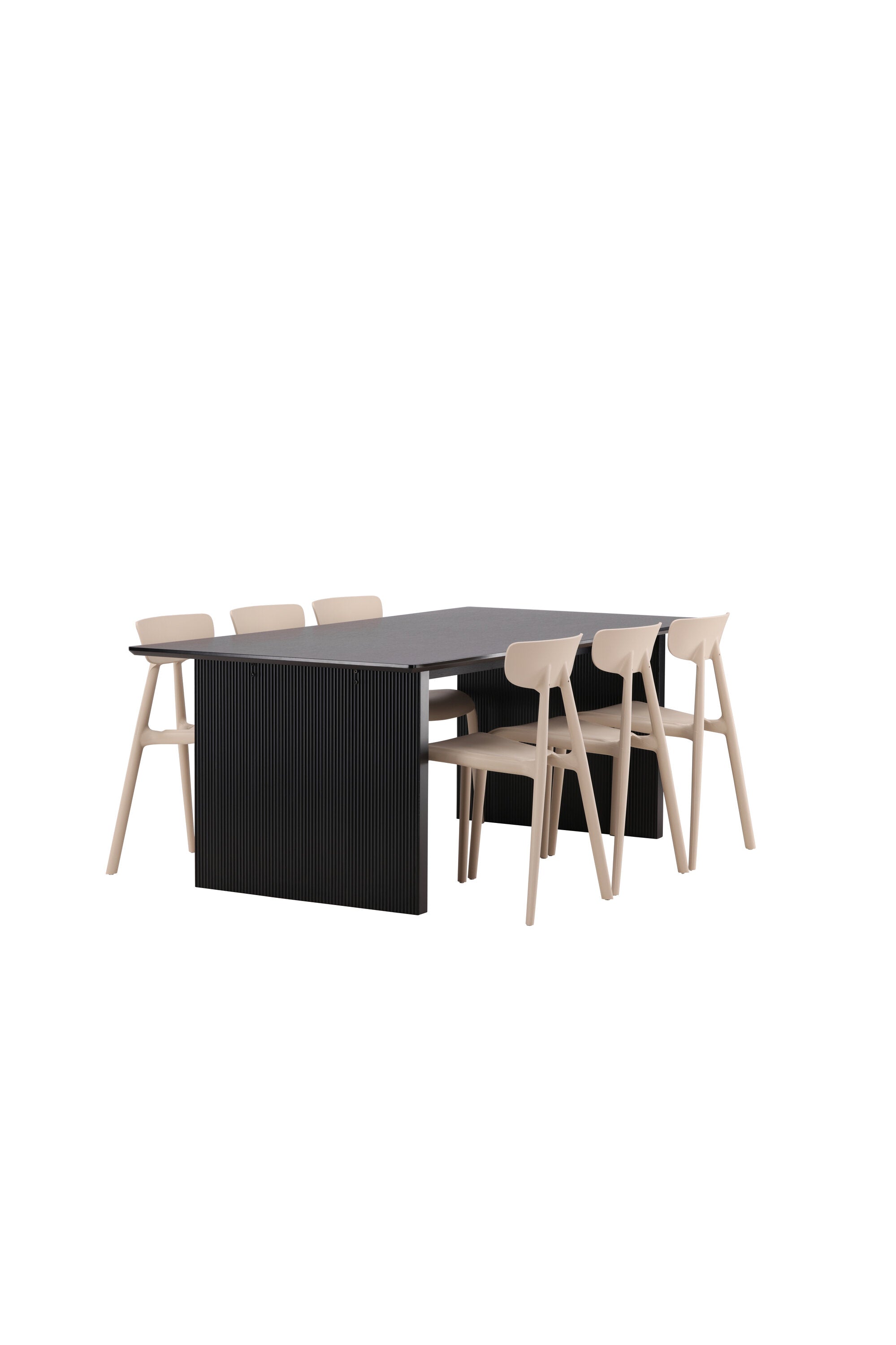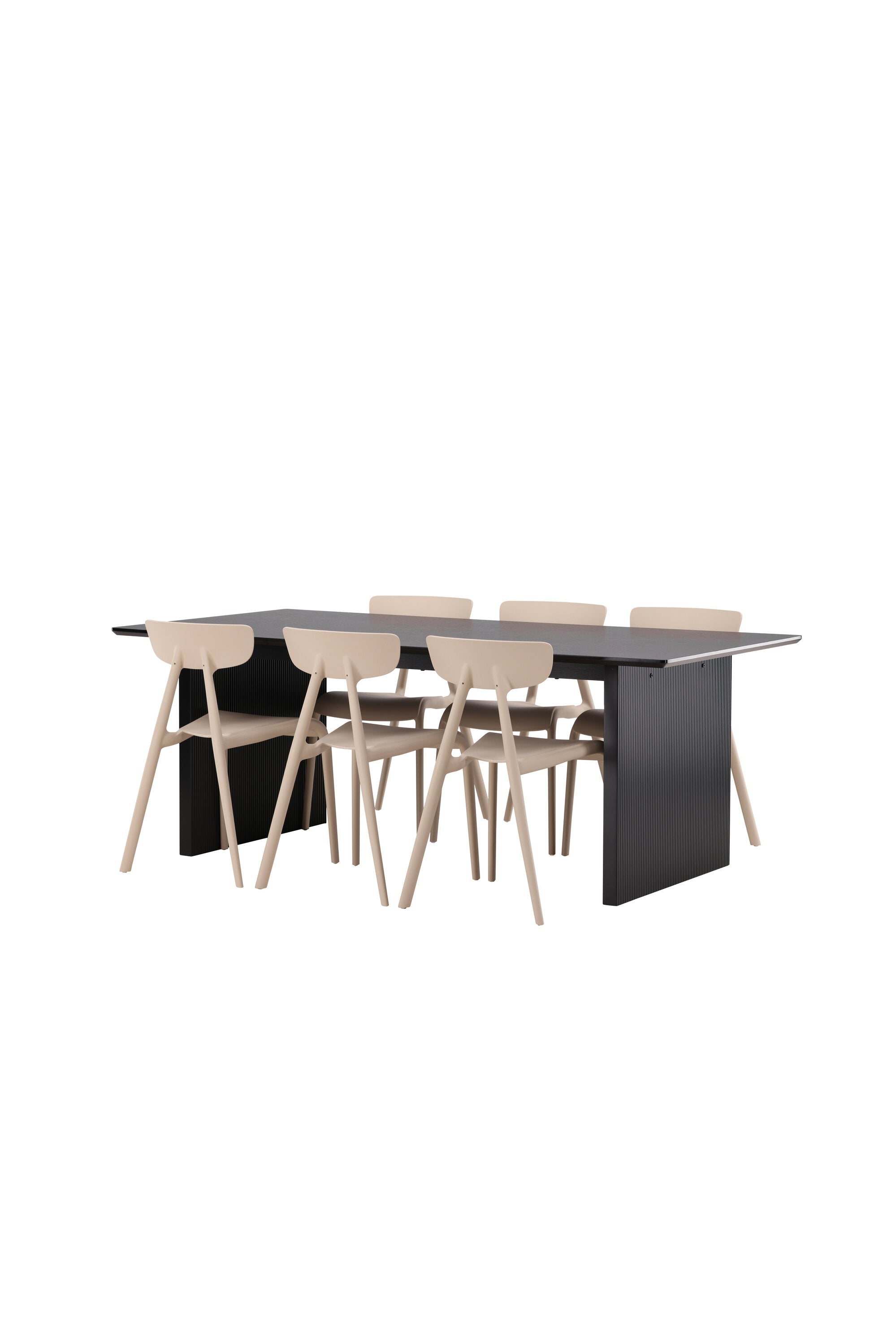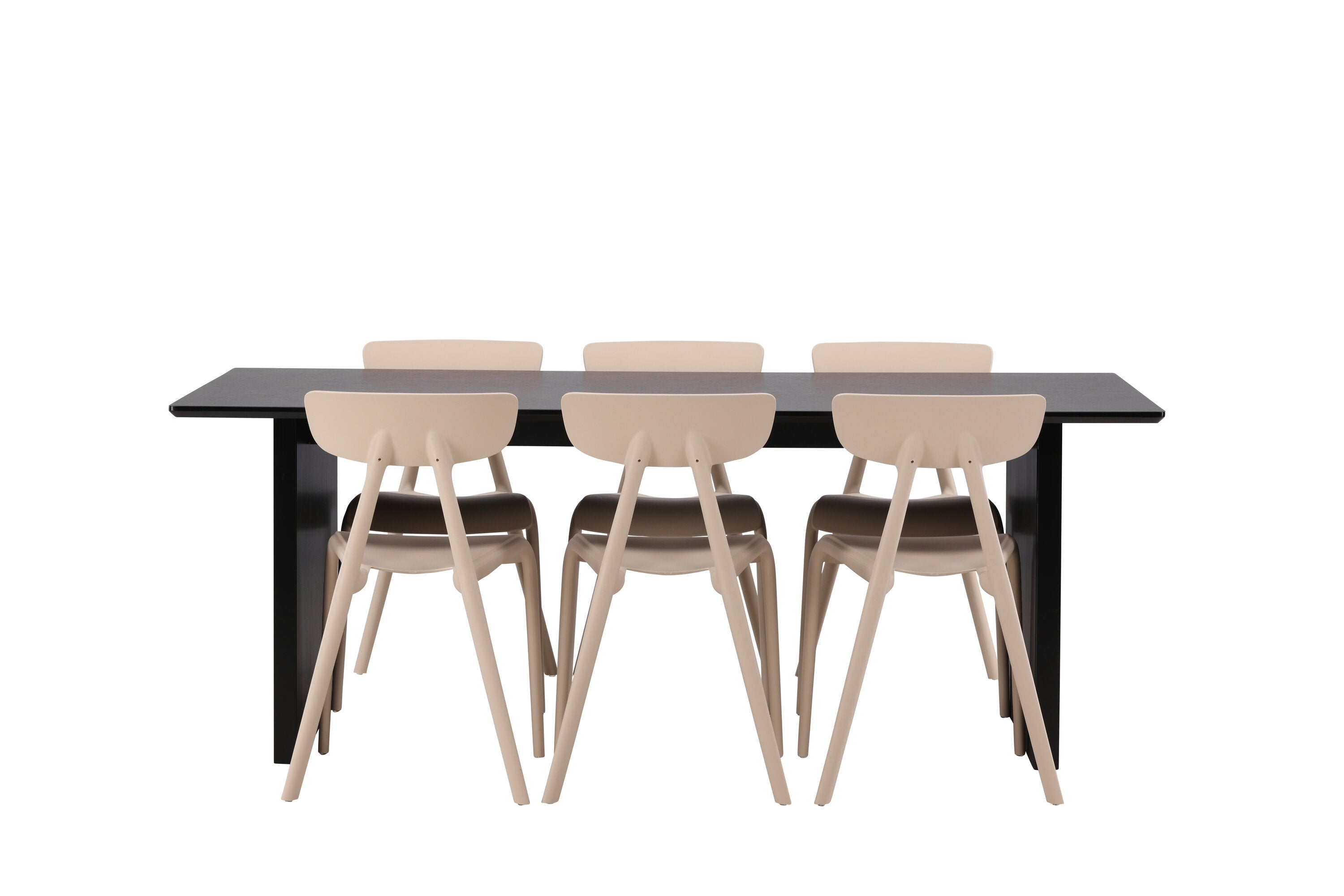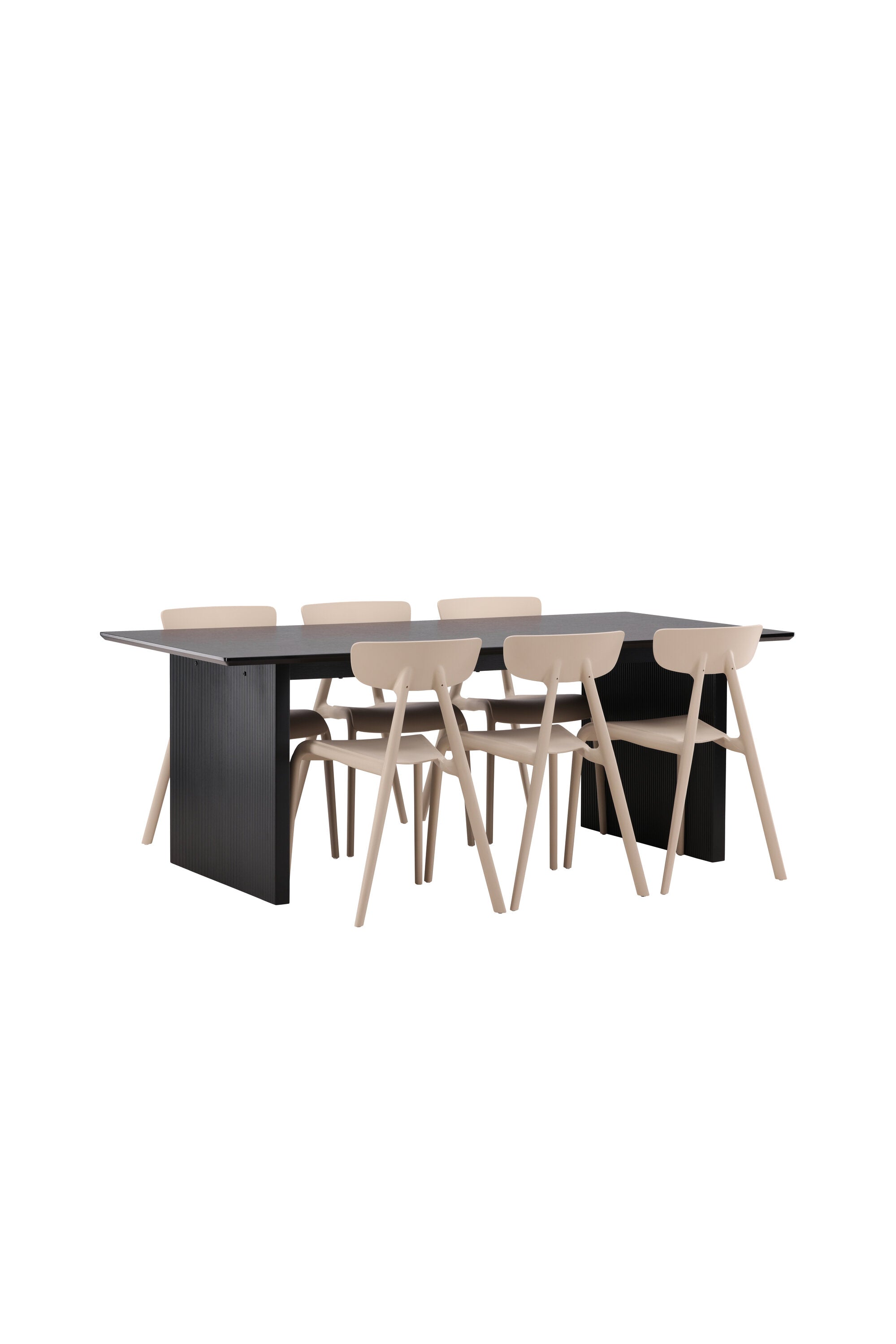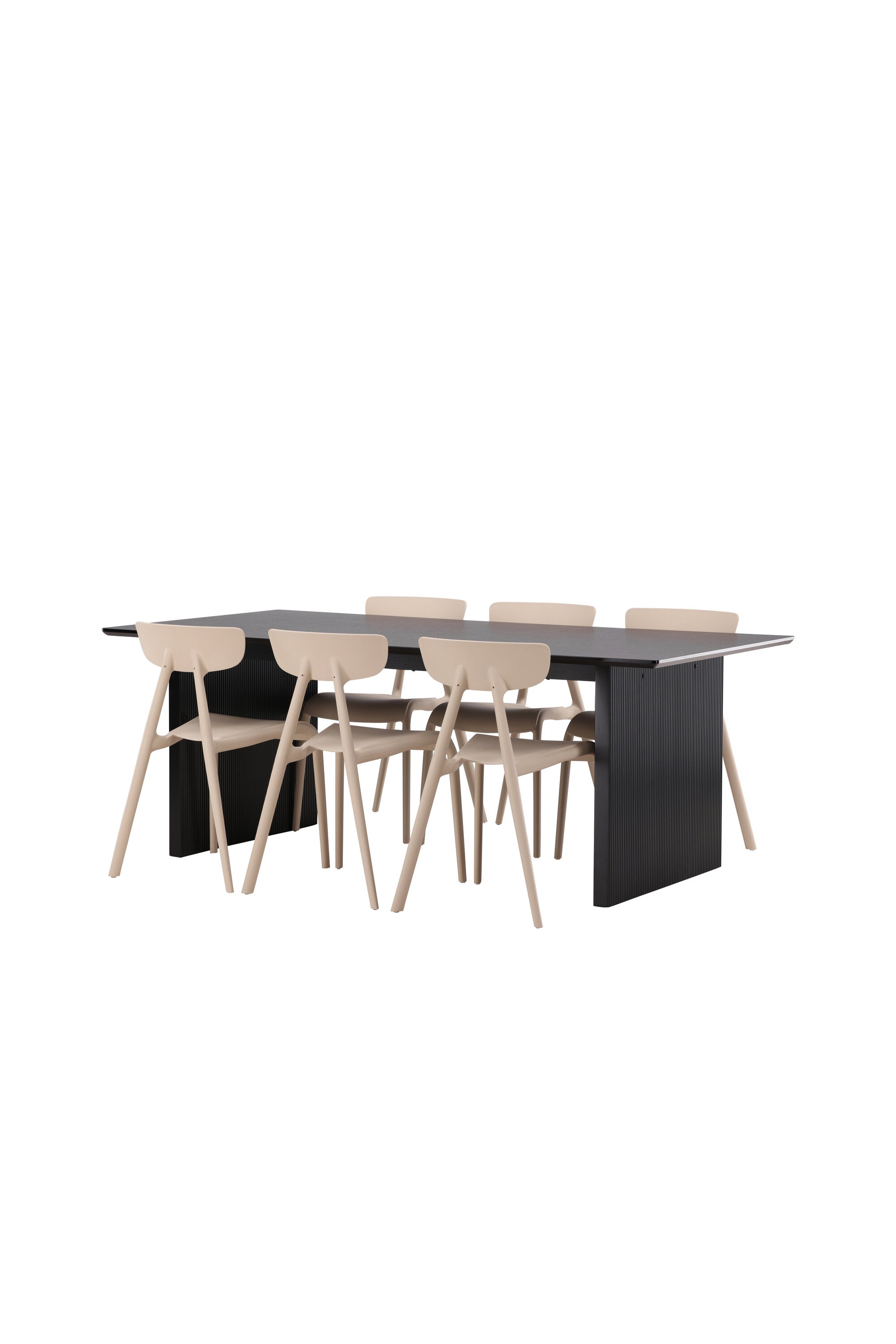 Jídelní stůl Vail – černá / kouřová černá MDF +Ursholmen jídelní židle – přírodní/béžový polypropylen _6