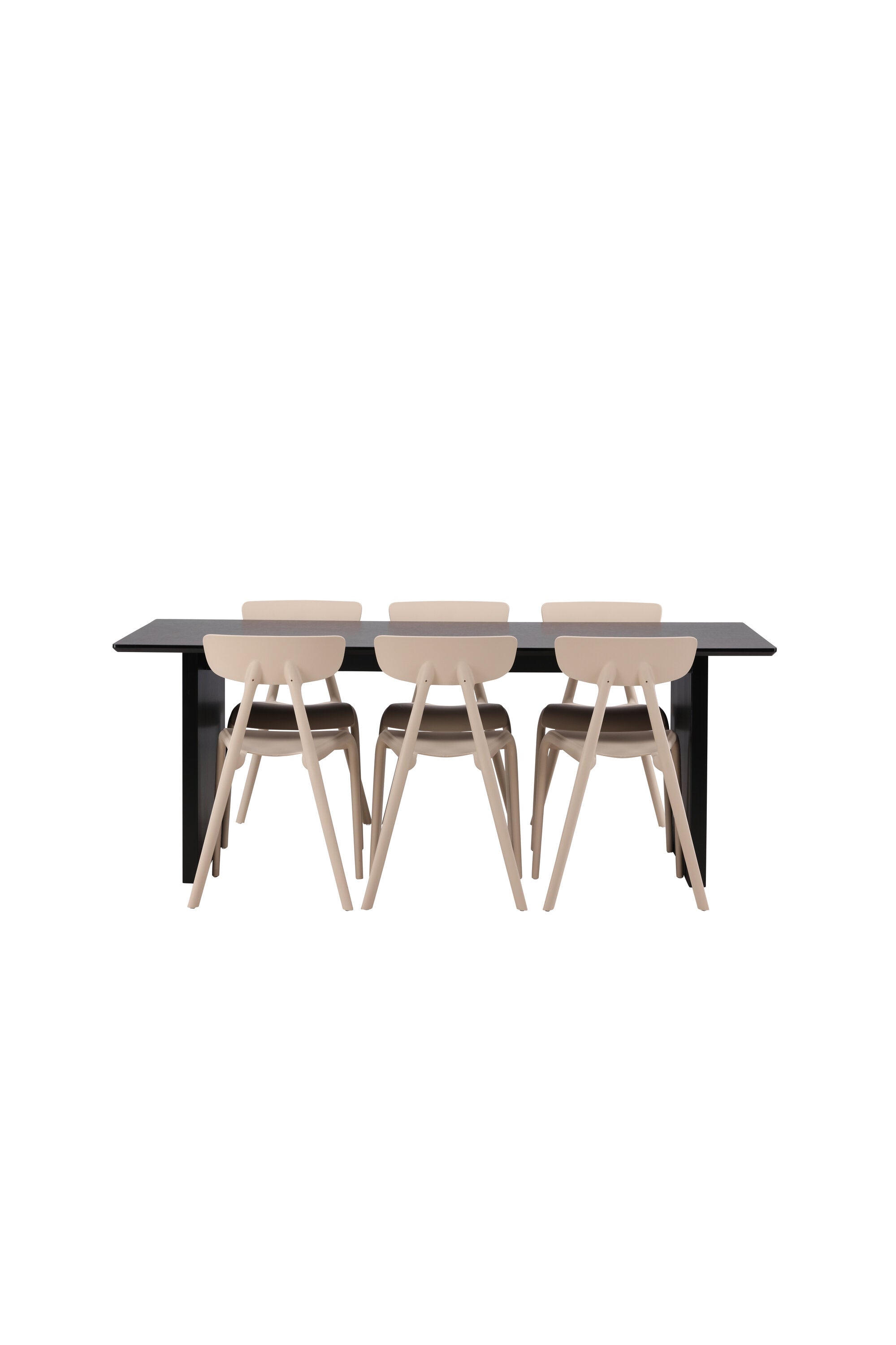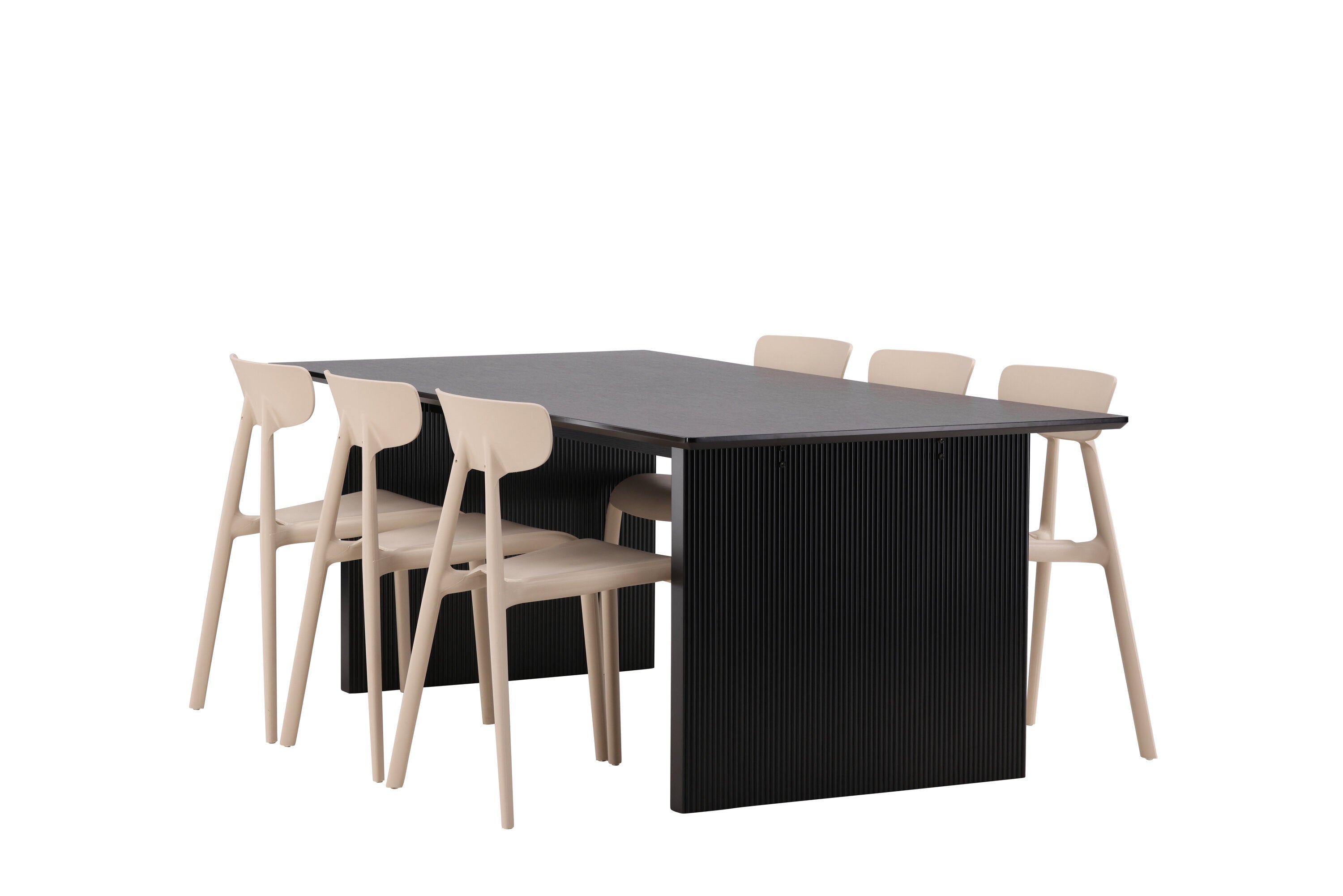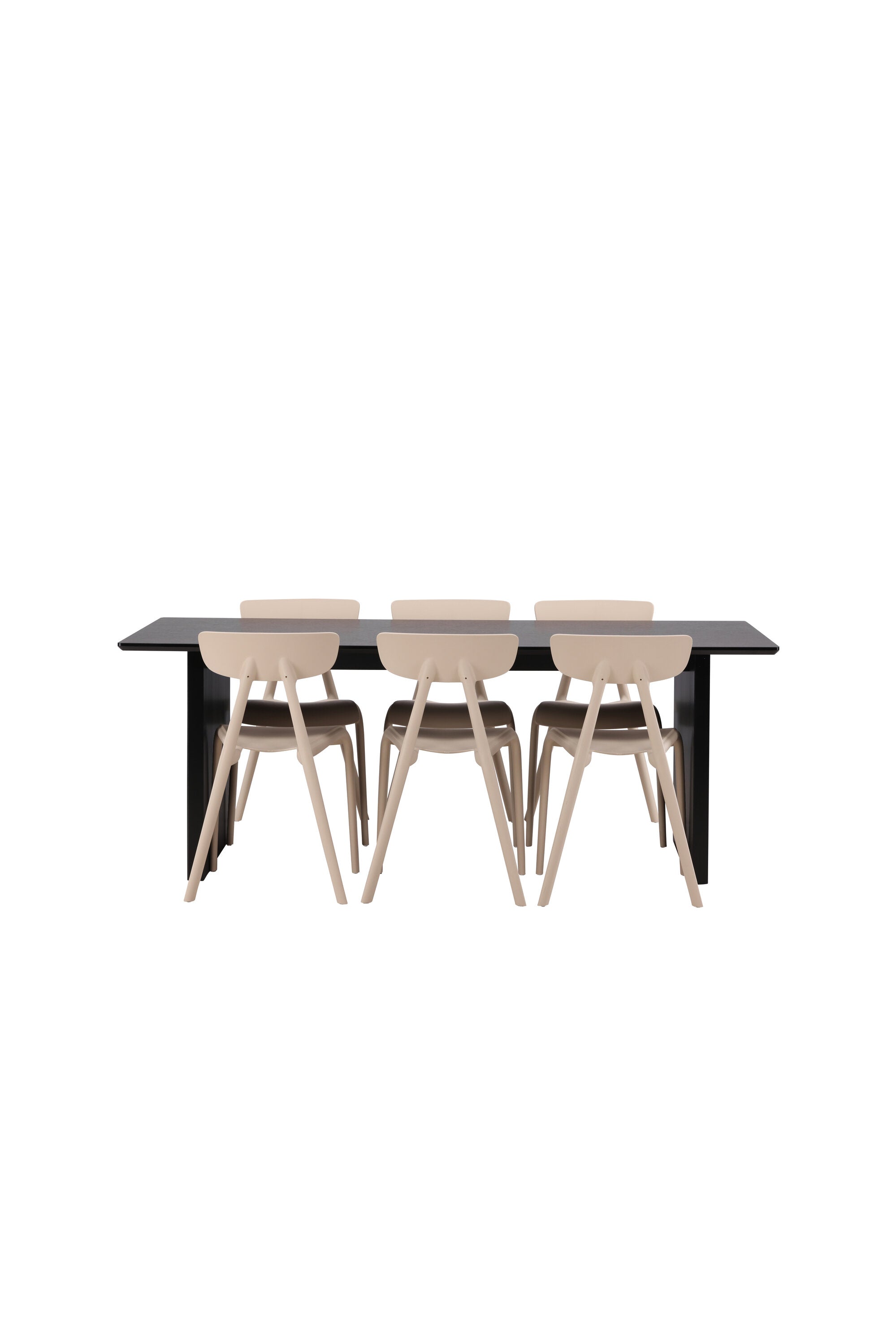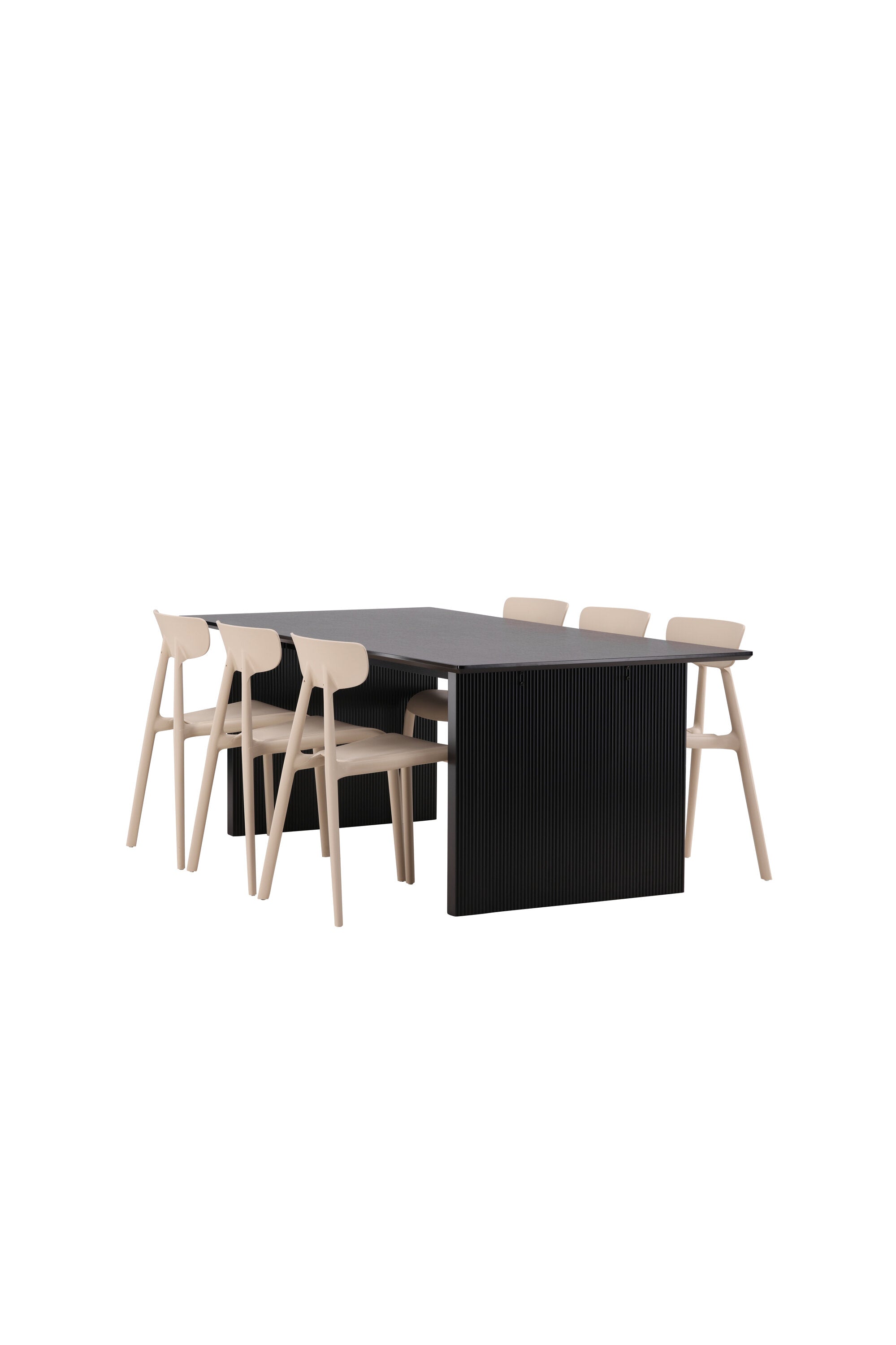 Jídelní stůl Vail – černá / kouřová černá MDF +Ursholmen jídelní židle – přírodní/béžový polypropylen _6