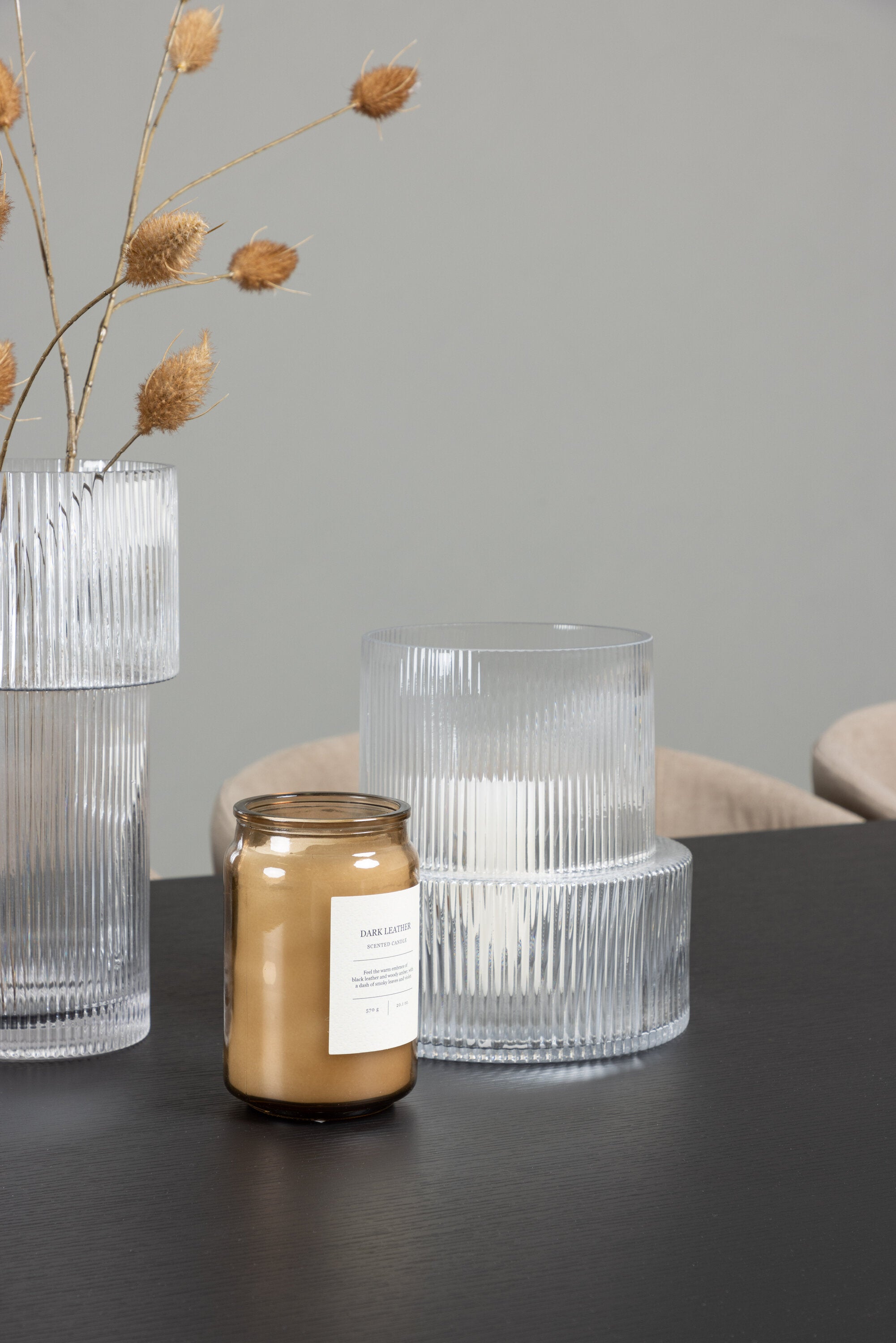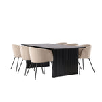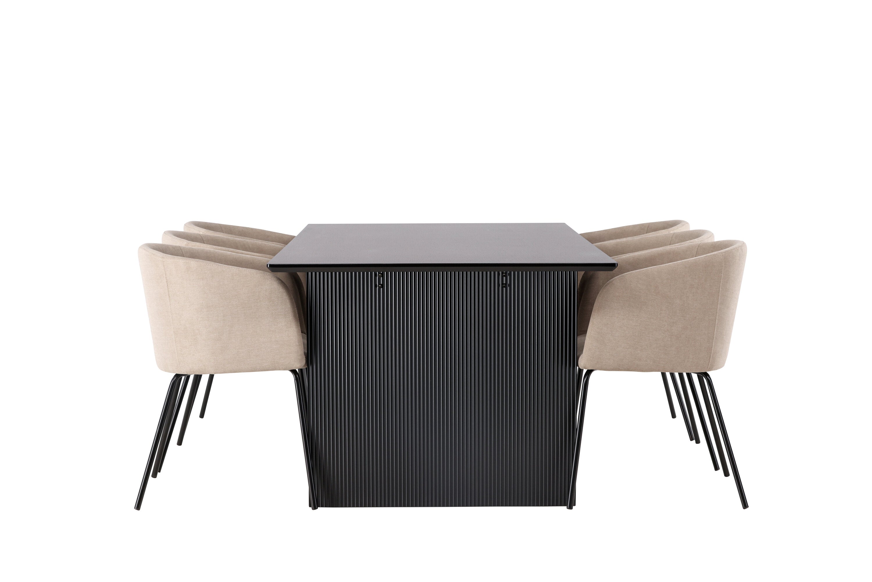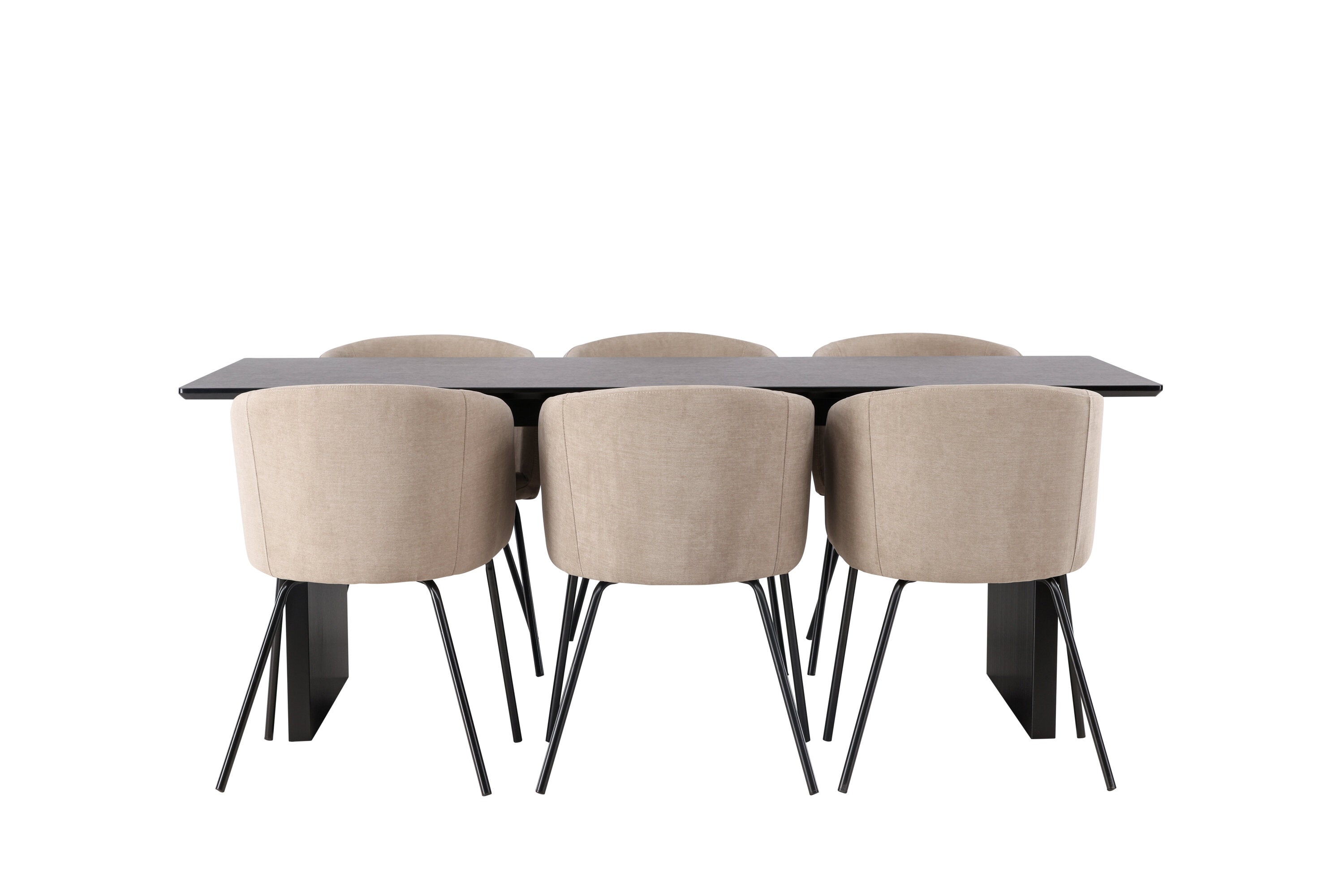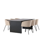 Jídelní stůl Vail – černá / kouřová černá MDF + židle Berit – černá / béžová látka (polyesterové prádlo) _6