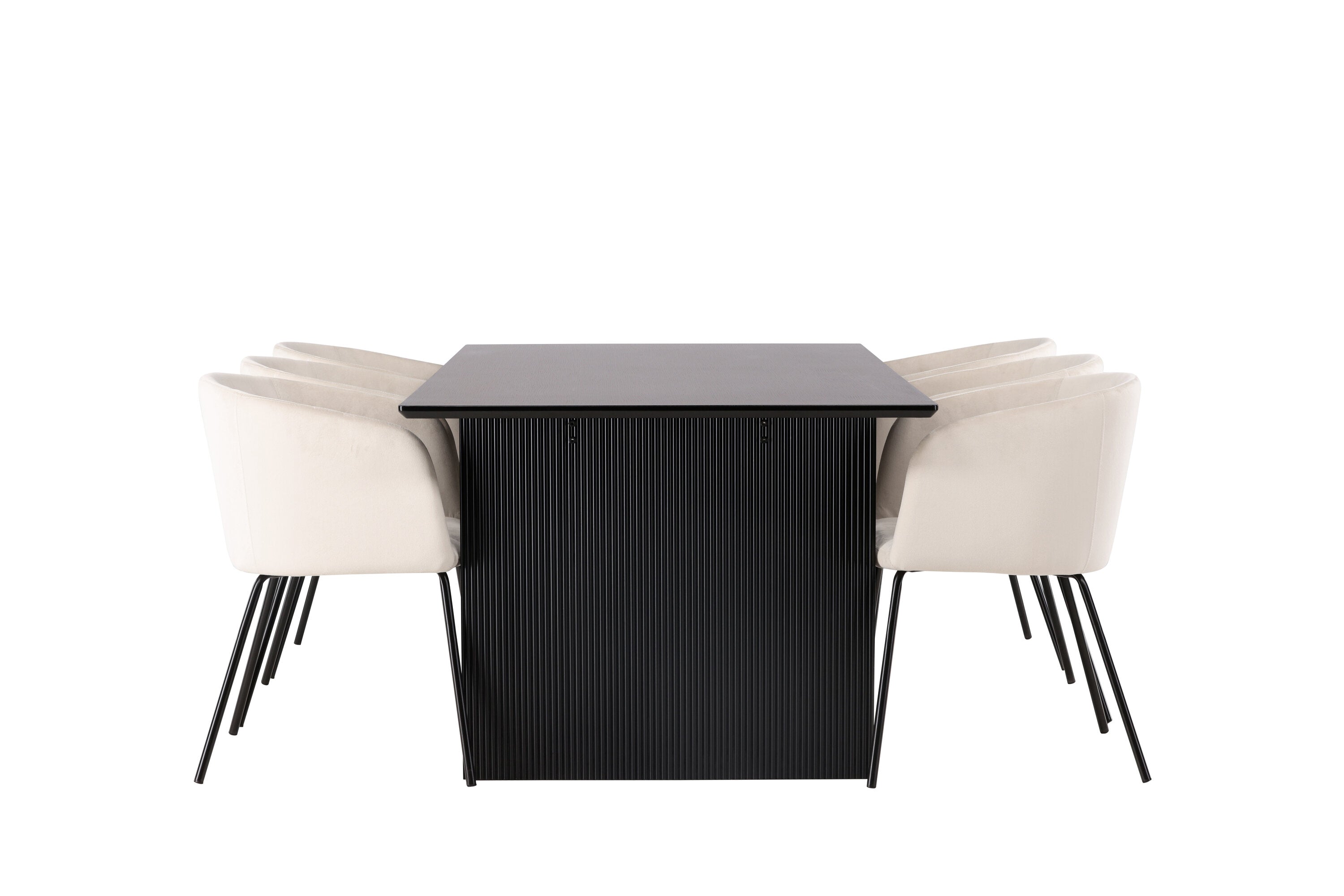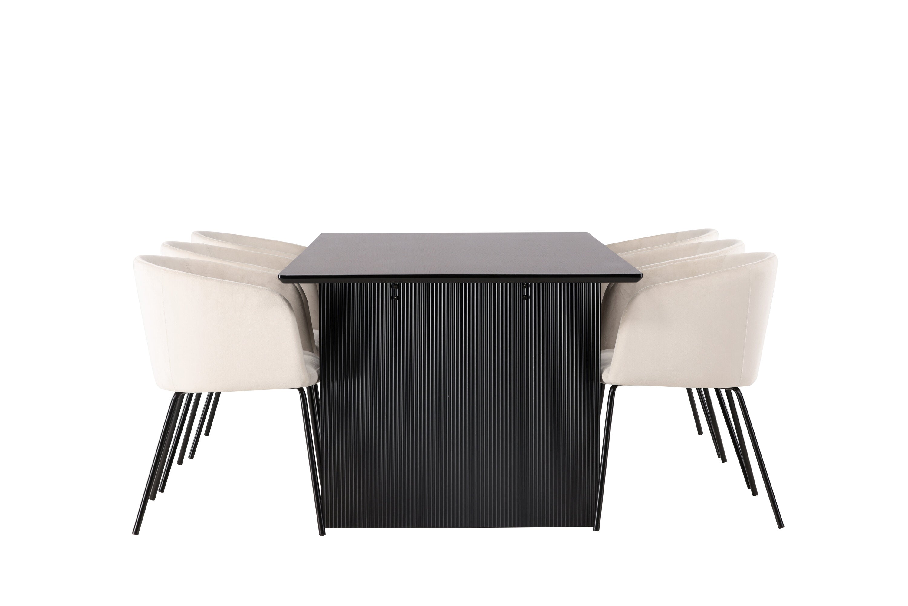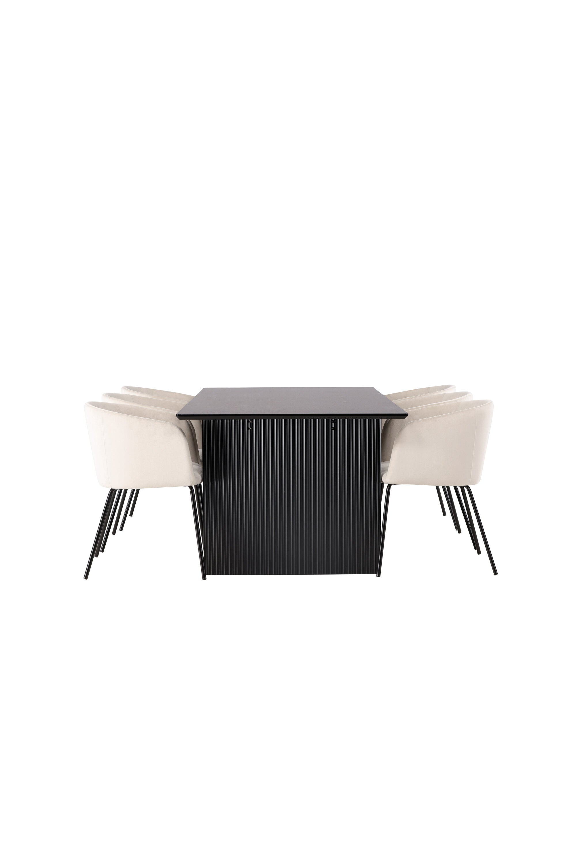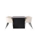 Jídelní stůl Vail - černá / kouřová černá MDF + židle Berit - černá / béžová samet _6