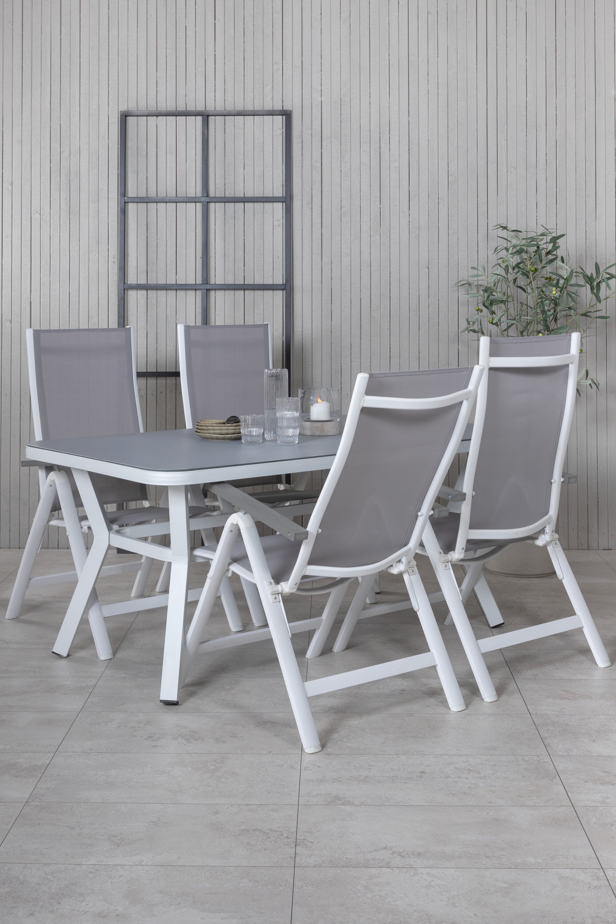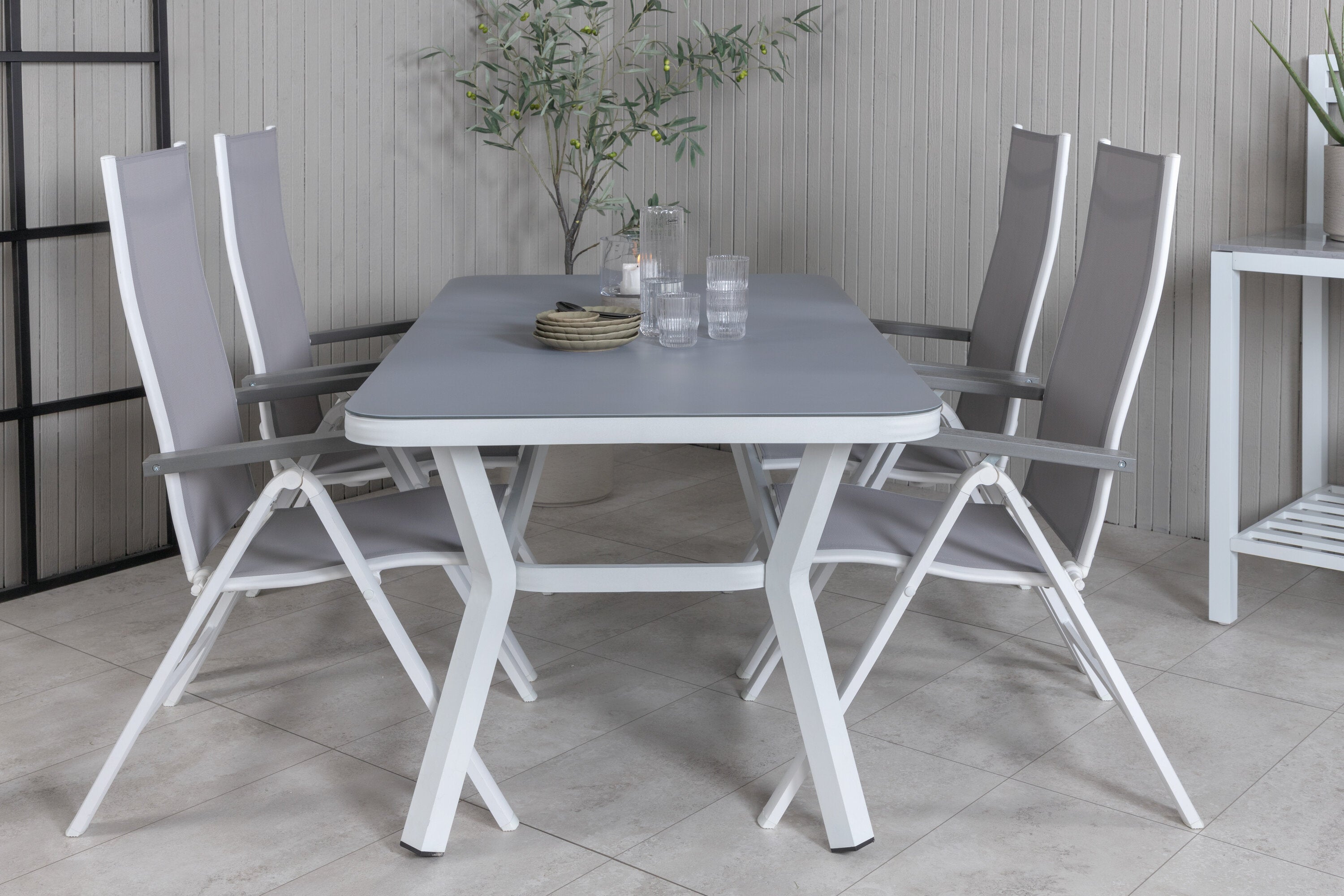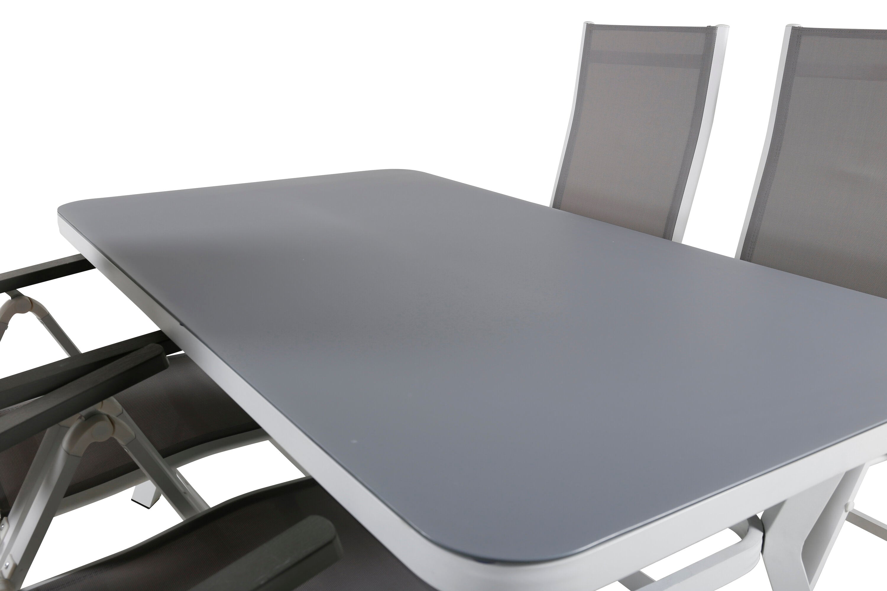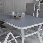 Jídelní stůl Virya - Bílá Alu / Šedé sklo - malý stolek+Albany Light 5-postel bílý alu / Šedá Textilene_4
