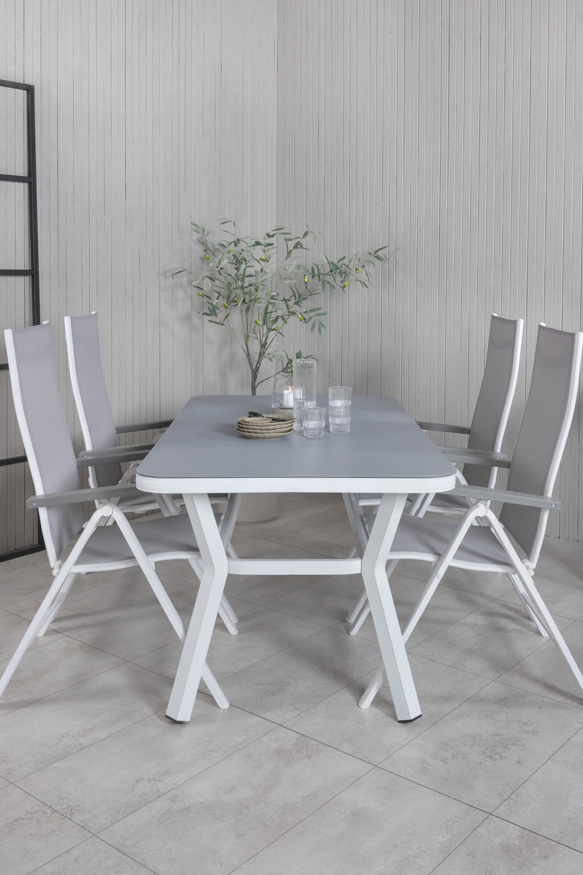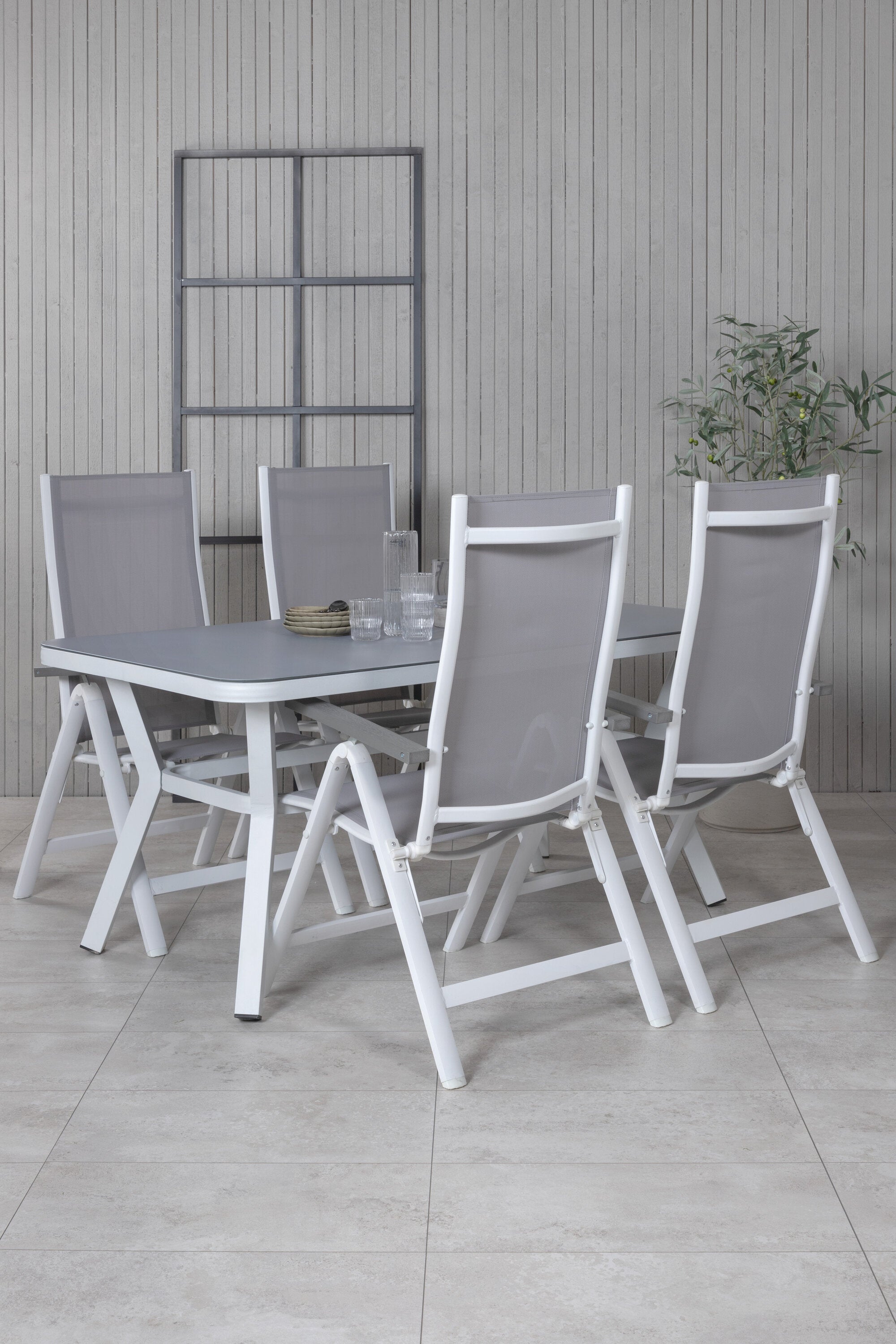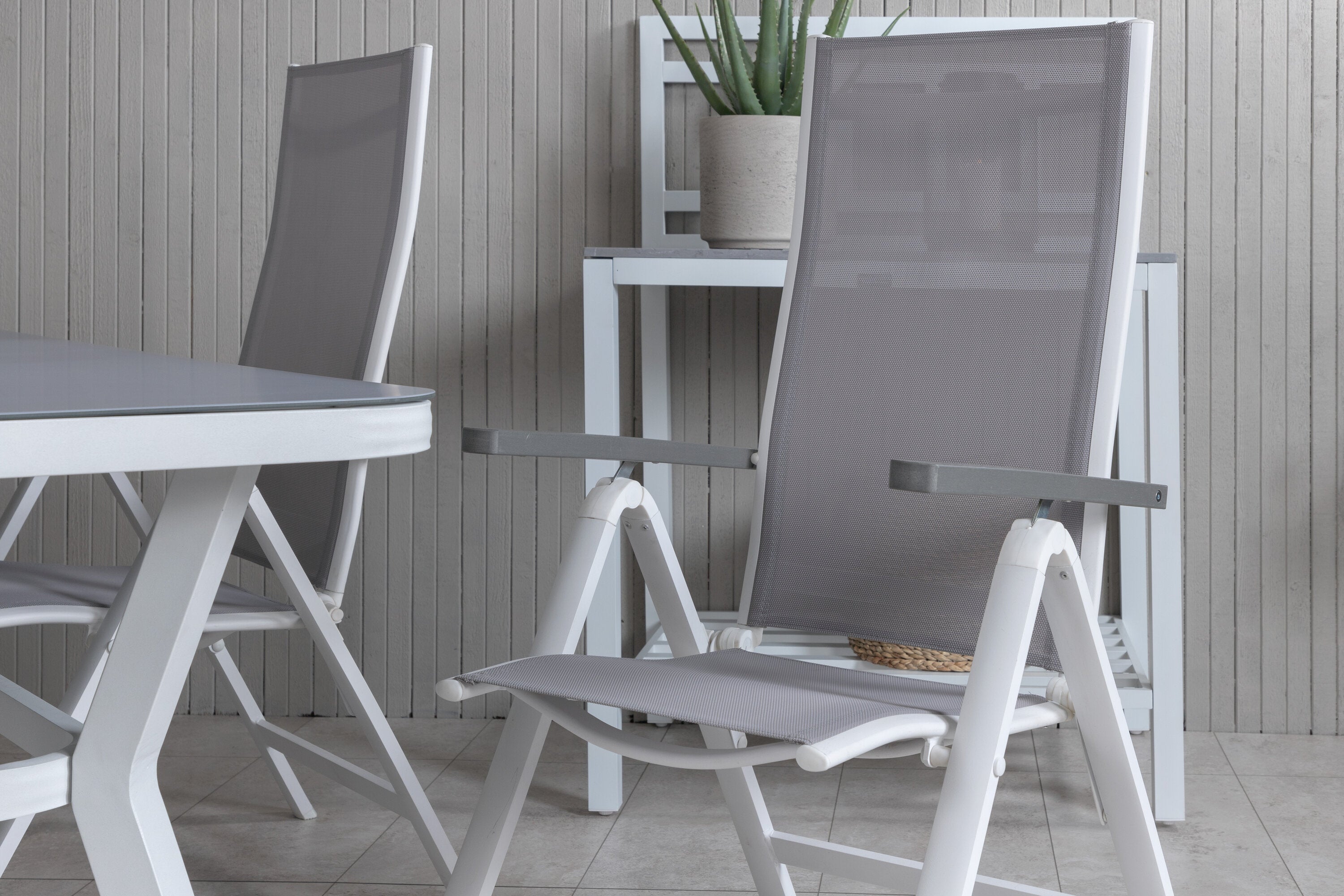 Jídelní stůl Virya - Bílá Alu / Šedé sklo - malý stolek+Albany Light 5-postel bílý alu / Šedá Textilene_4