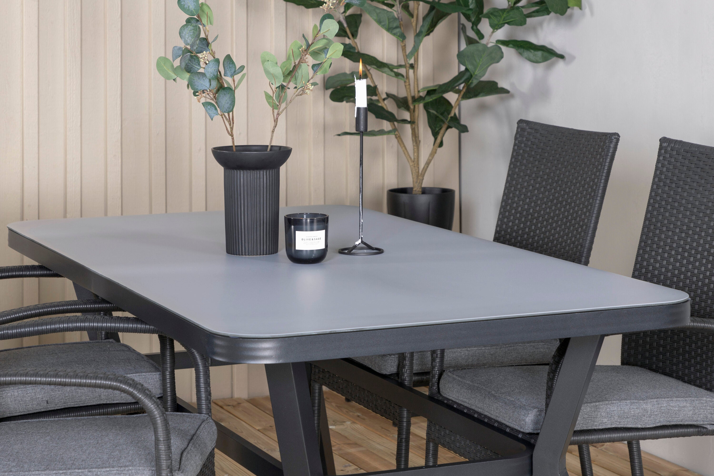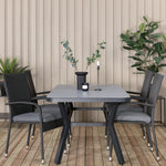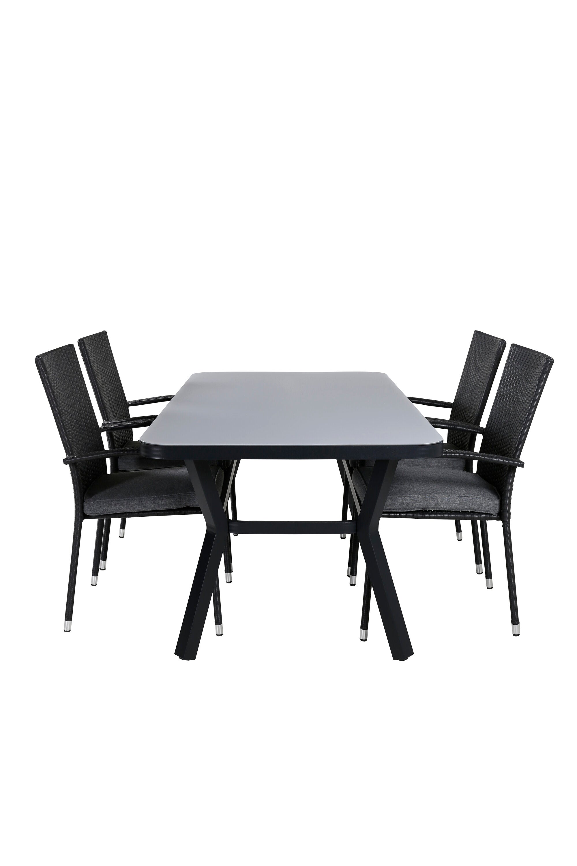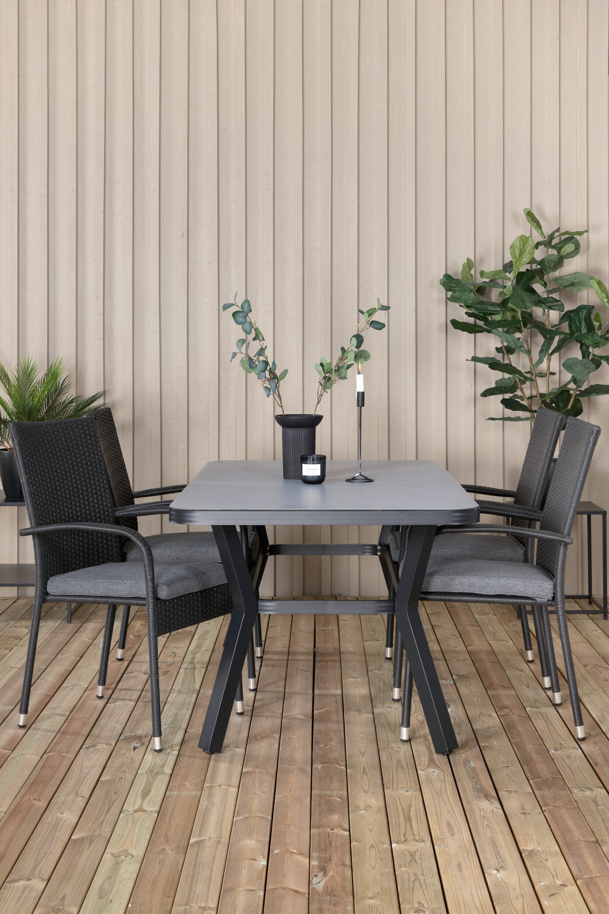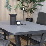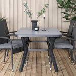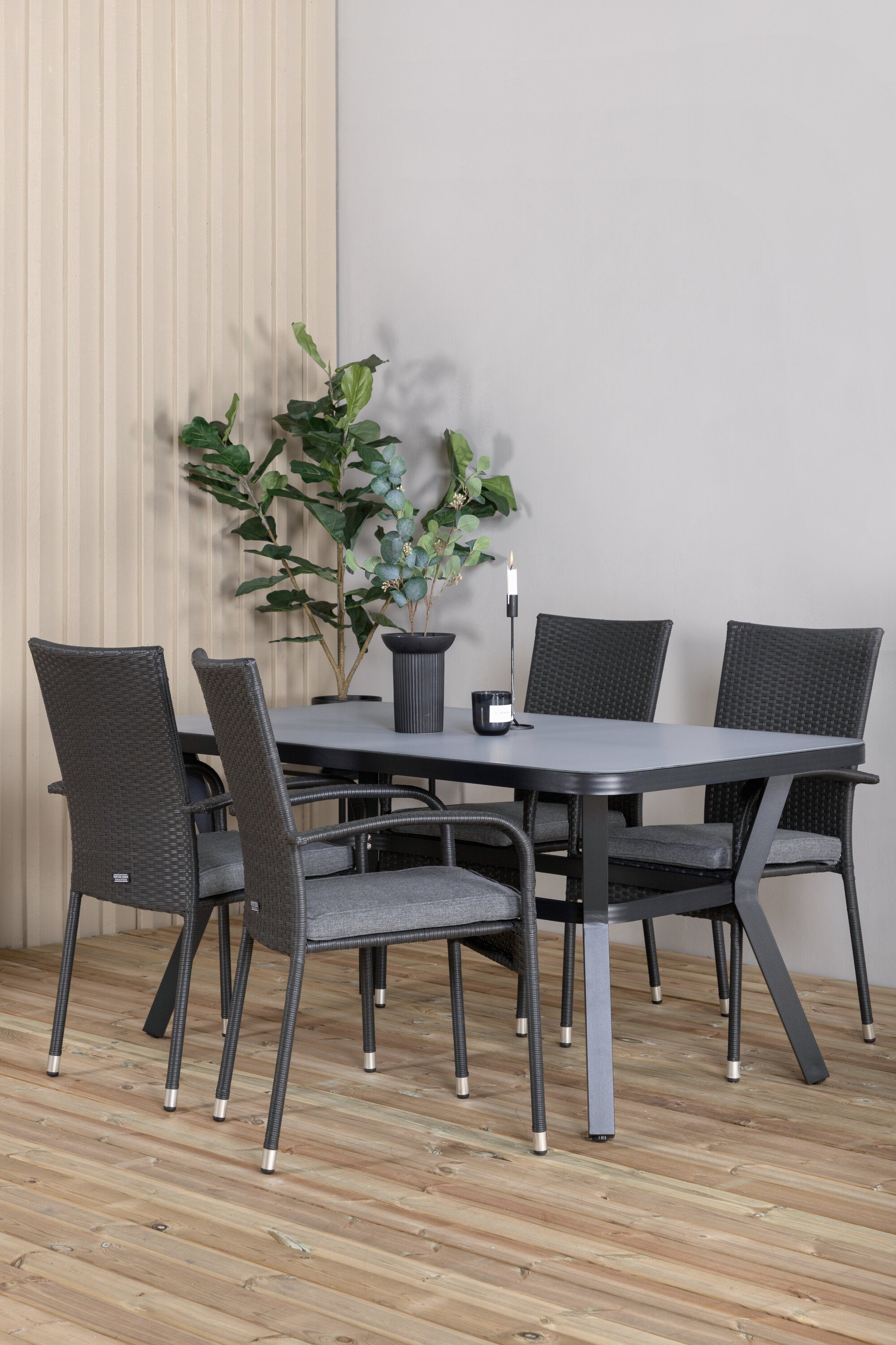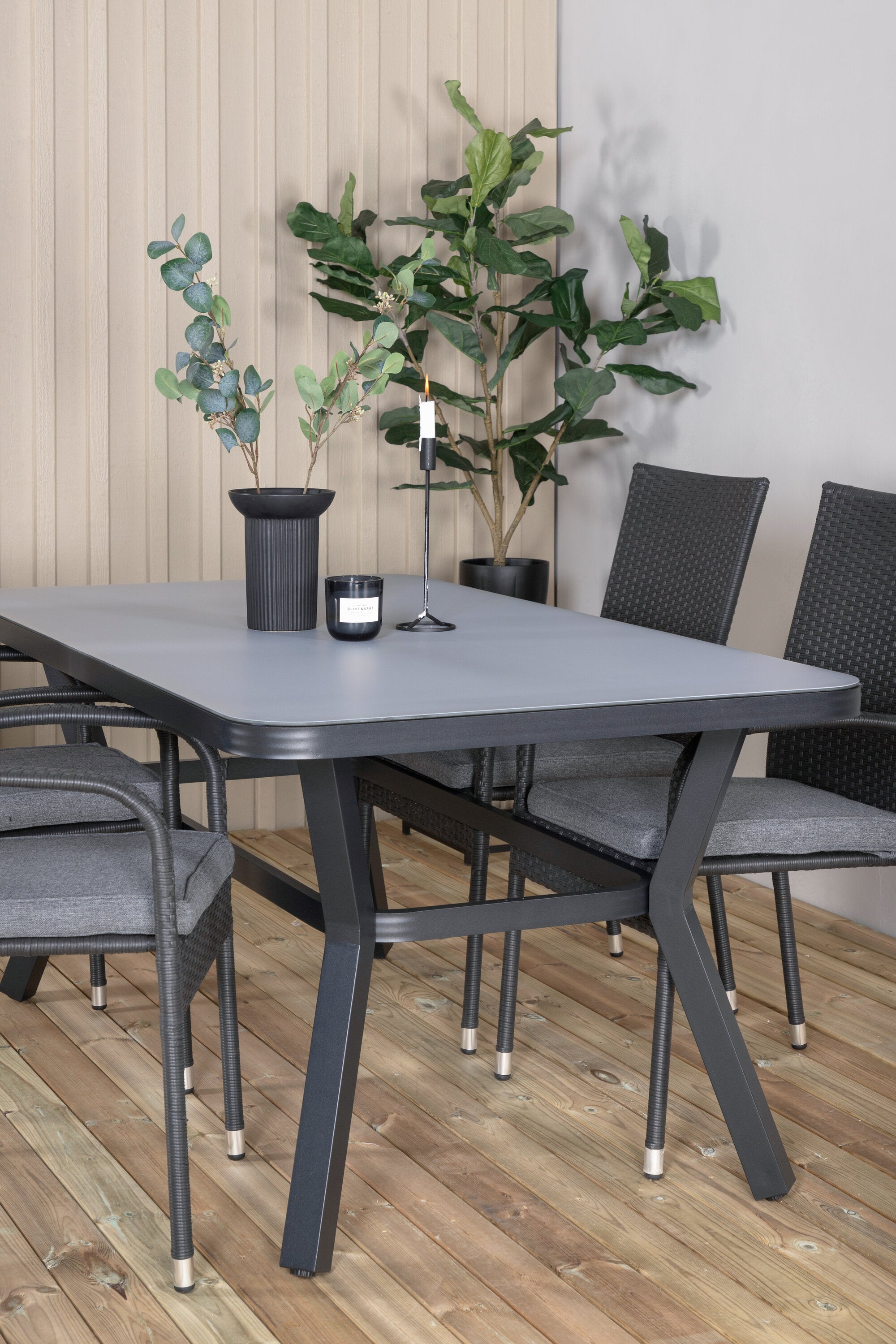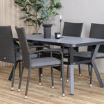 Klasická skupina jídel, která se hodí na většinu teras! Jídelní stůl Virya spolu s židlemi ze série Anna je jako stvořený pro ty, kteří chtějí na balkoně vytvořit útulný a moderní pocit.