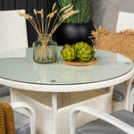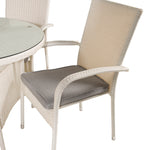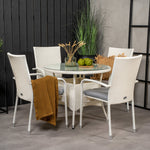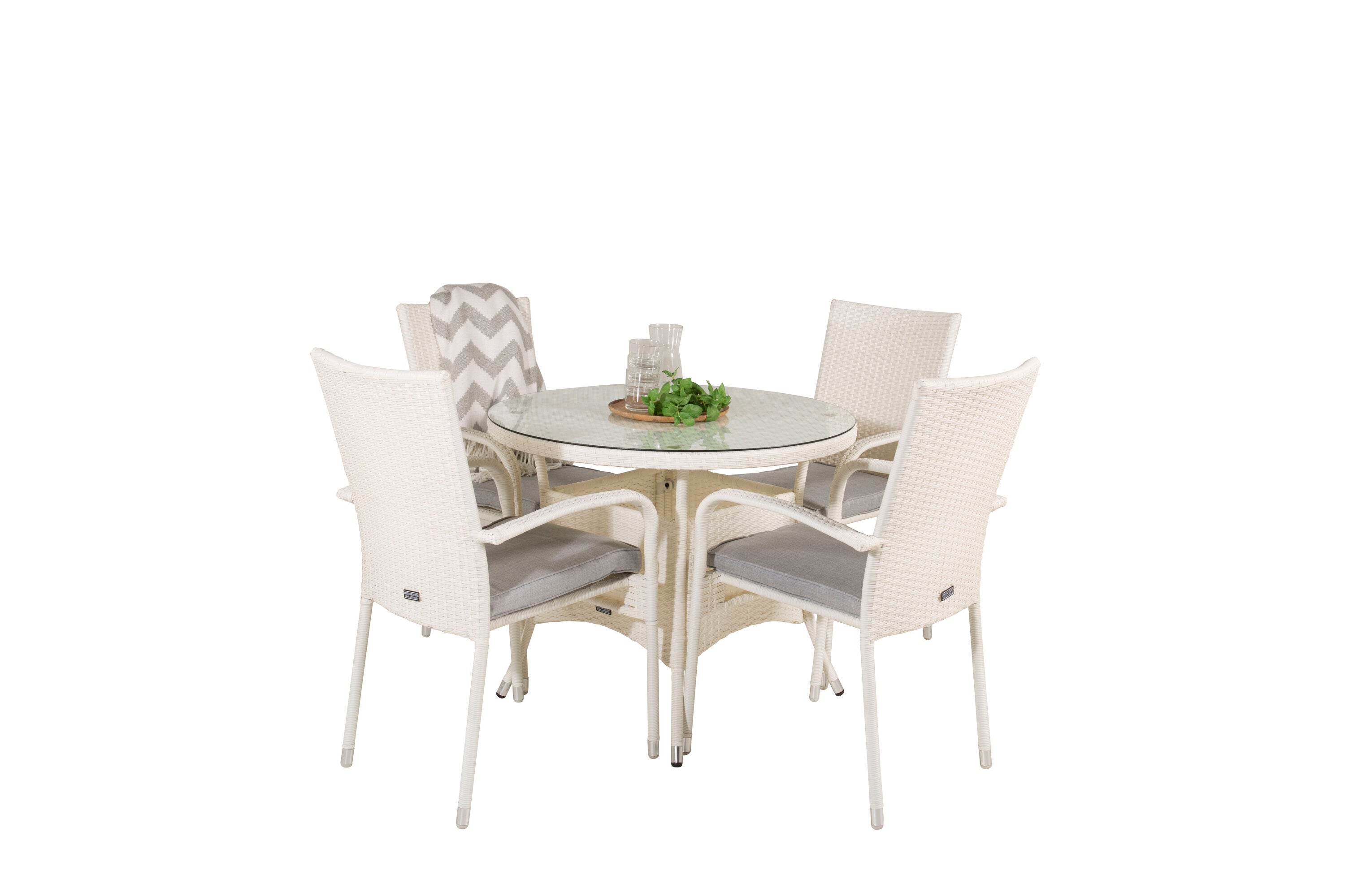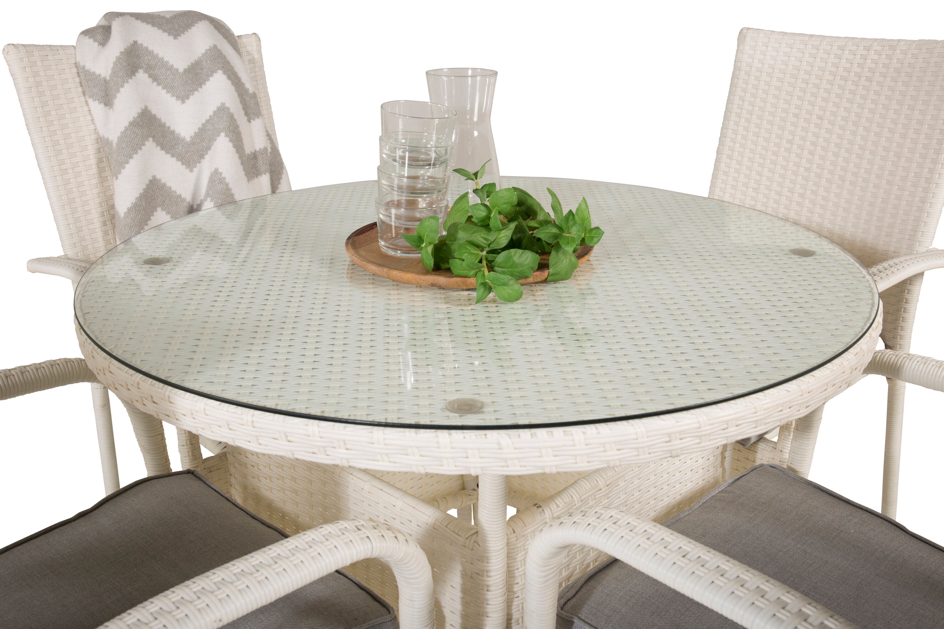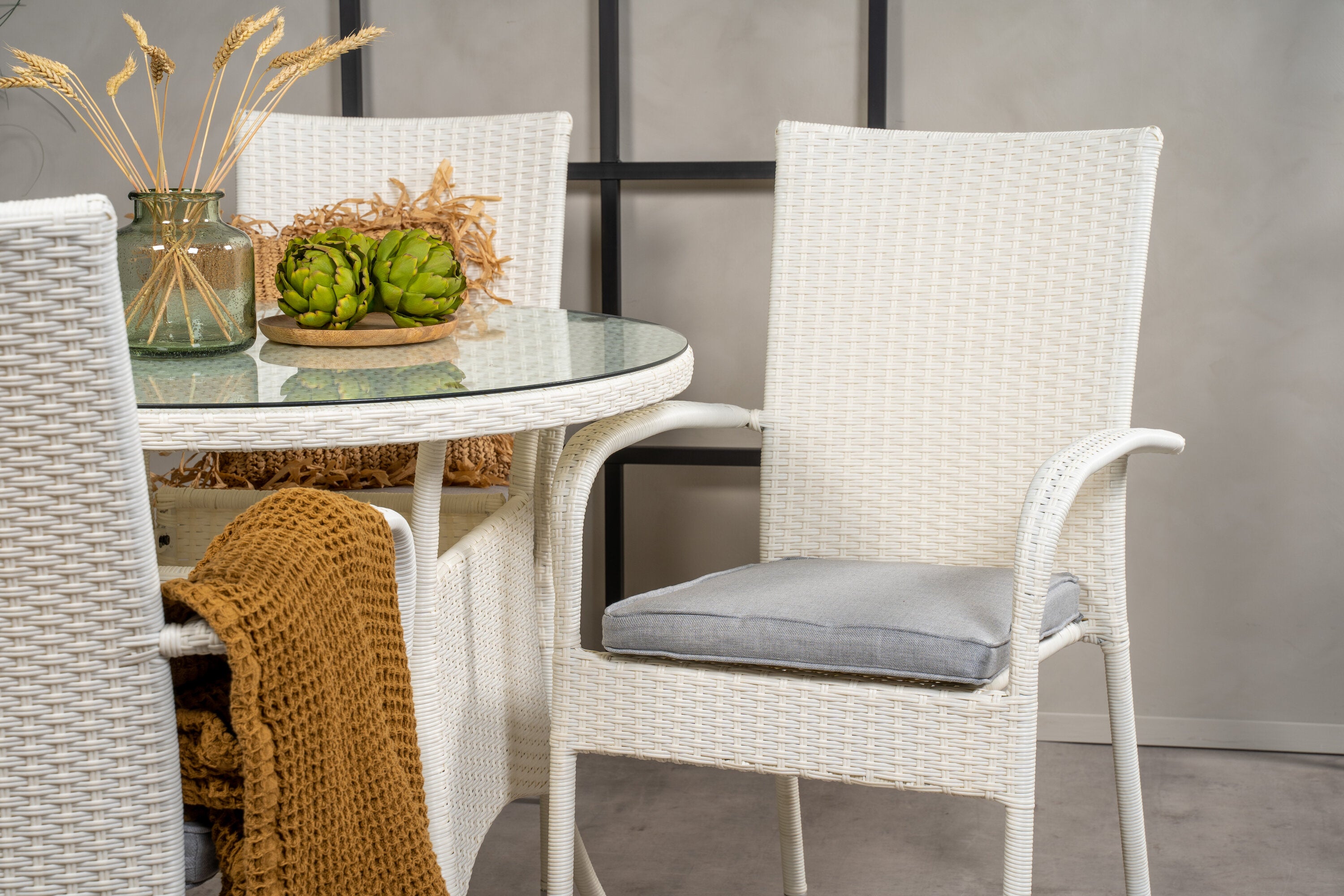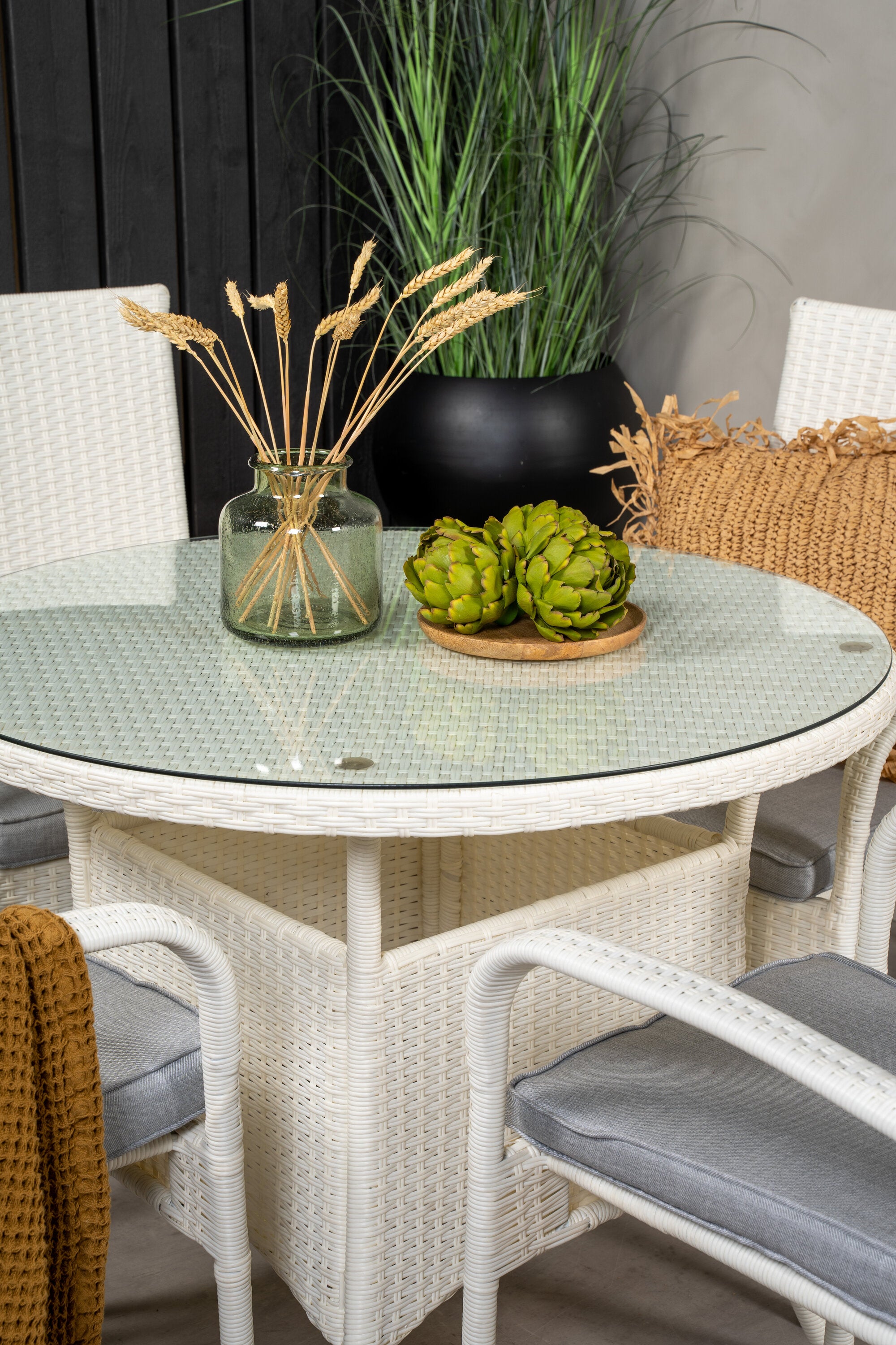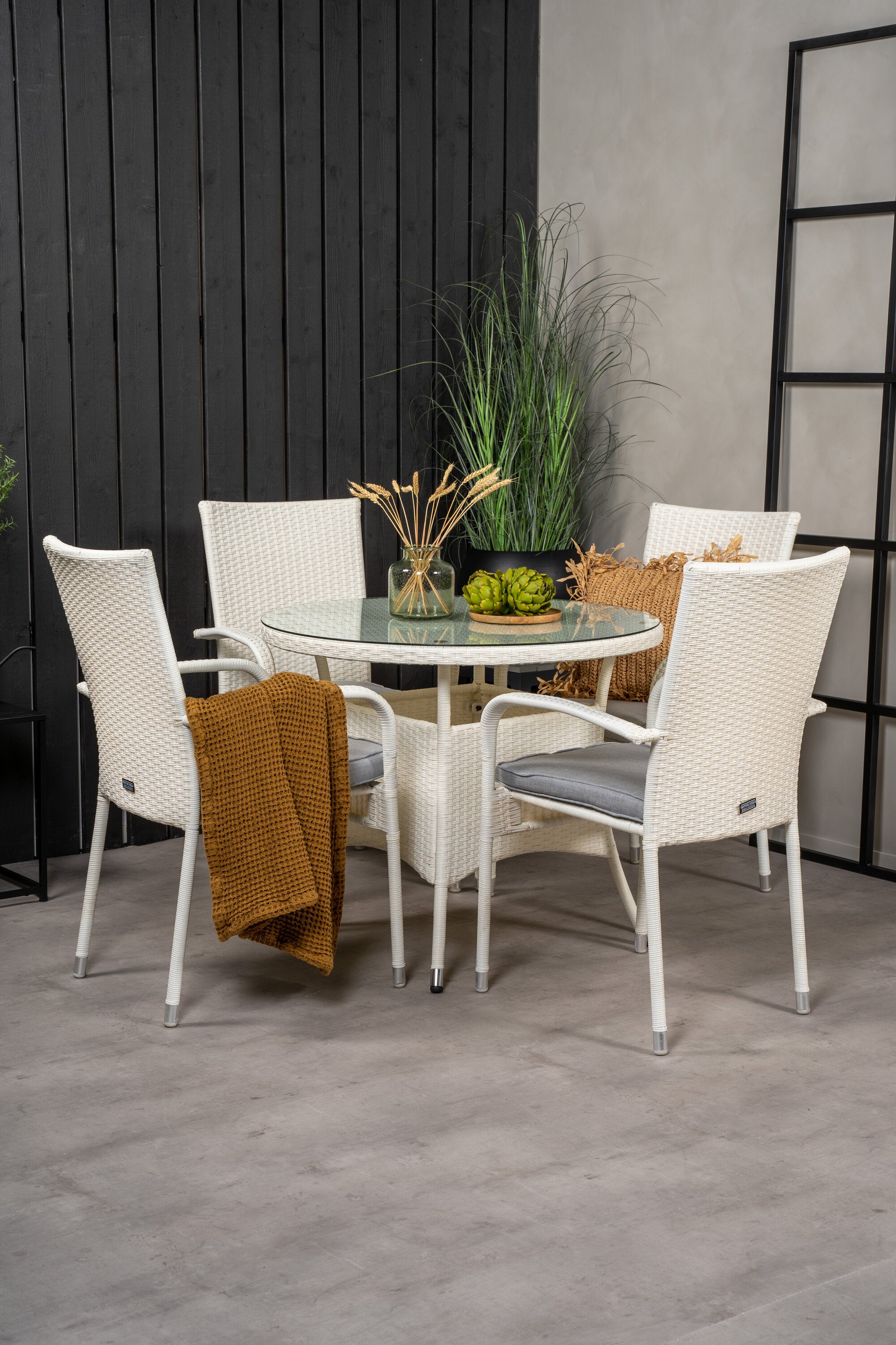 Náš moderní jídelní stůl Volta spolu s pohodlnými jídelními židlemi ze série Anna. Zde získáte skupinu potravin, která přímo vštěpuje luxus a eleganci. Oblečte svou terasu nebo terasu jiným dekorem všude kolem, stejně tak dobré pro každodenní život jako na párty!