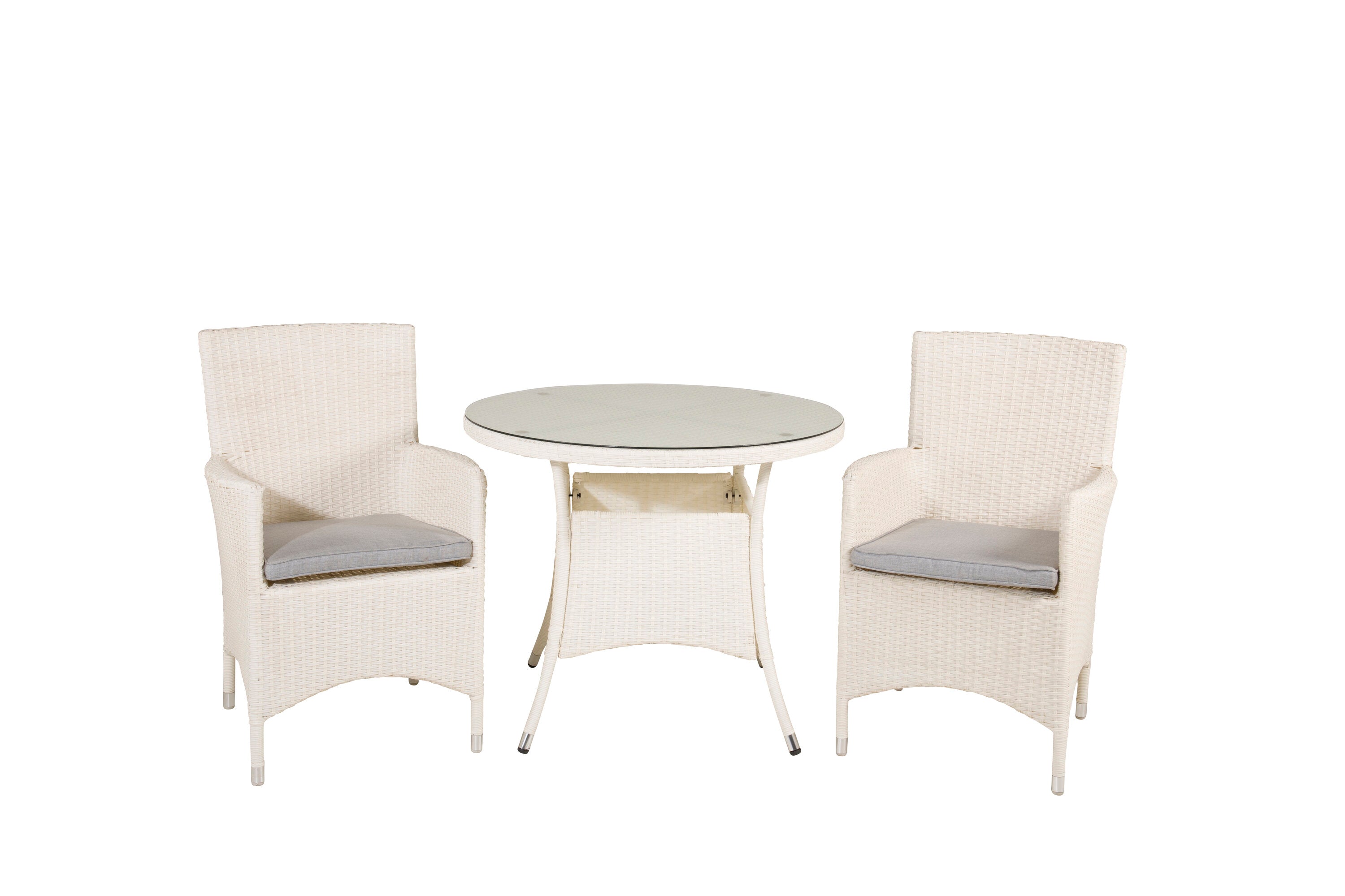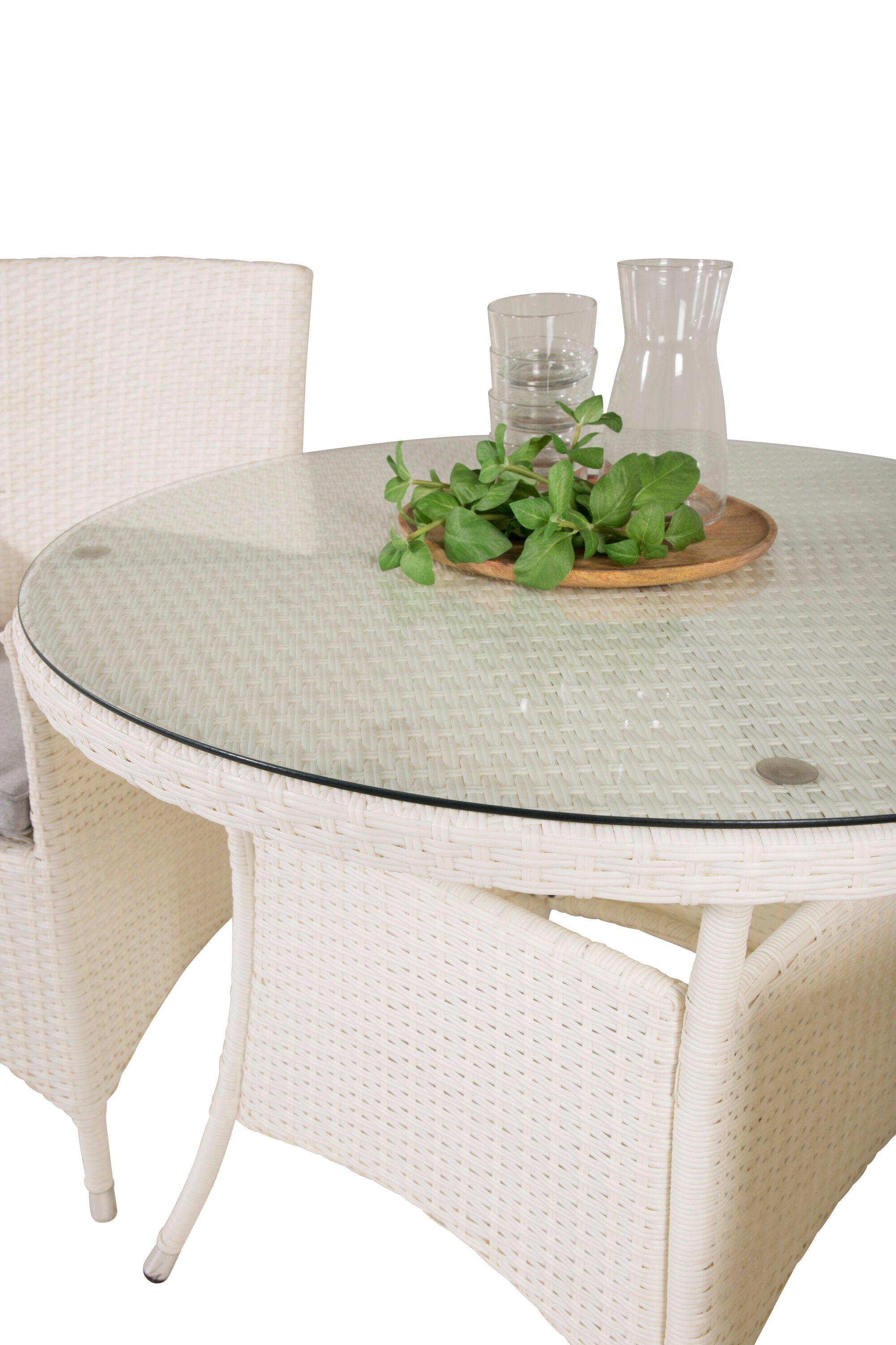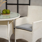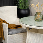 Jídelní stůl Volta - Bílý - ø90+Malin křeslo s polštářem - Bílý / Šedý polštář_2
