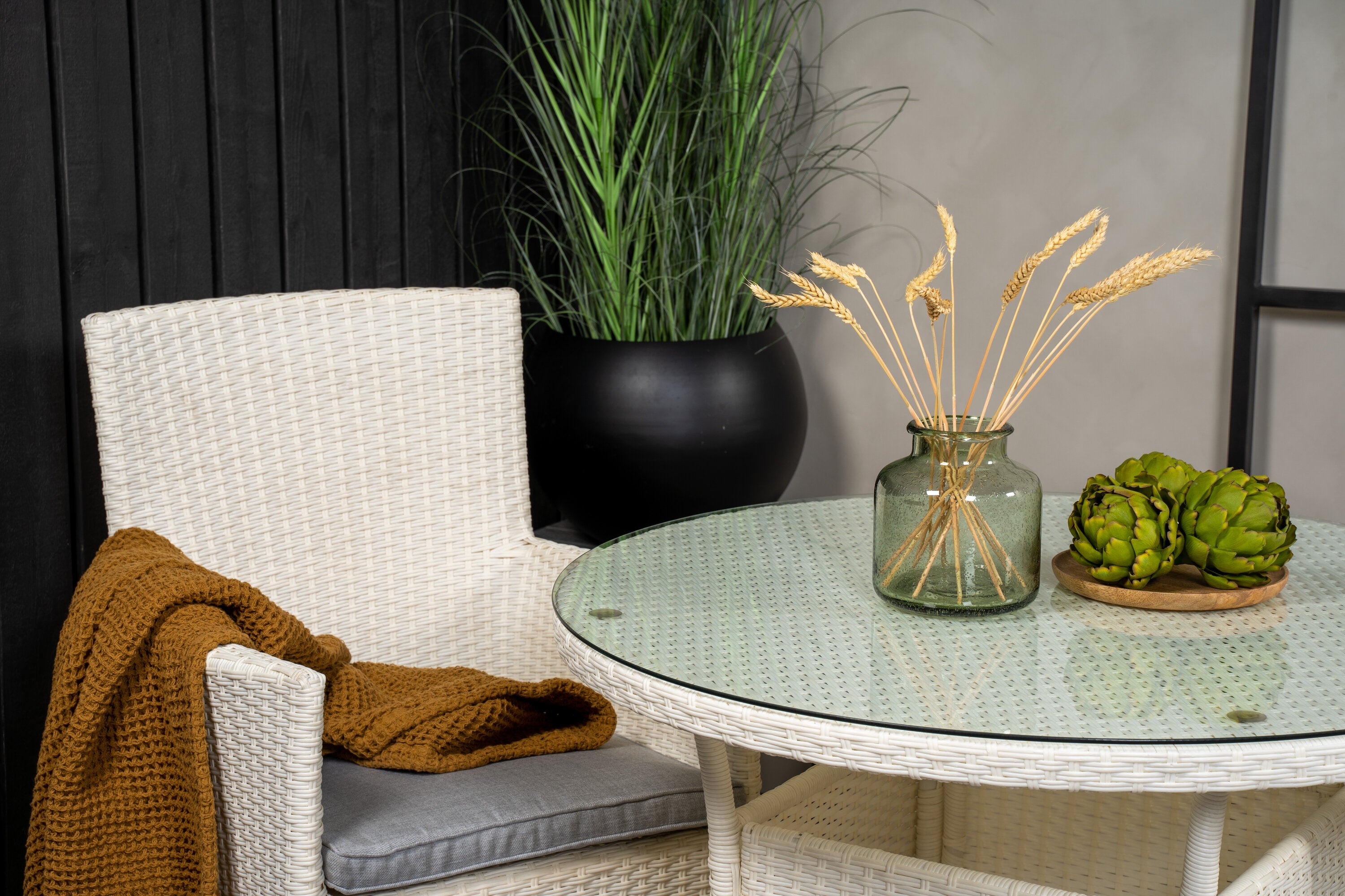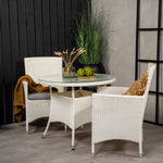 Klasická skupina jídel, která se hodí na většinu teras! Jídelní stůl Volta spolu s židlemi ze série Malin je určen pro ty, kteří chtějí na balkoně vytvořit útulnou a moderní atmosféru.