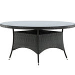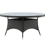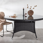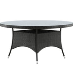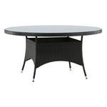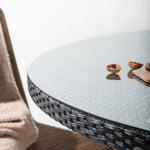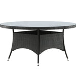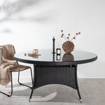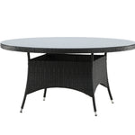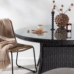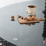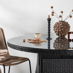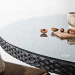 Volta je kulatý jídelní stůl v robustním provedení, který působí odolným a okouzlujícím dojmem! Deska stolu je ze stylového skla a podvozek z odolného černého umělého ratanu. Zařiďte zařízení venku nebo na terase a nechte večeře venku stát se vrcholem dne – tady nikdo neskončí na hraně!