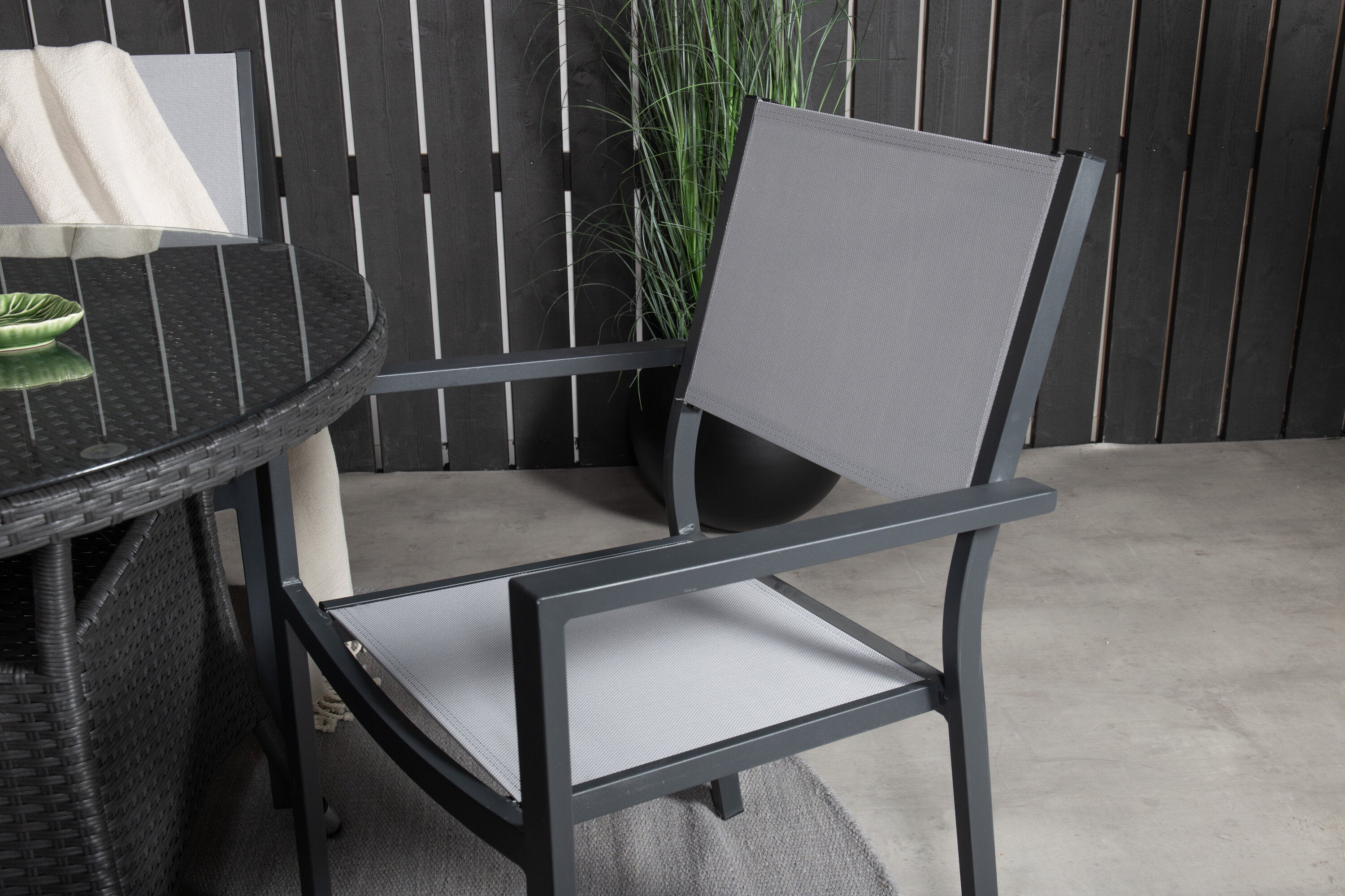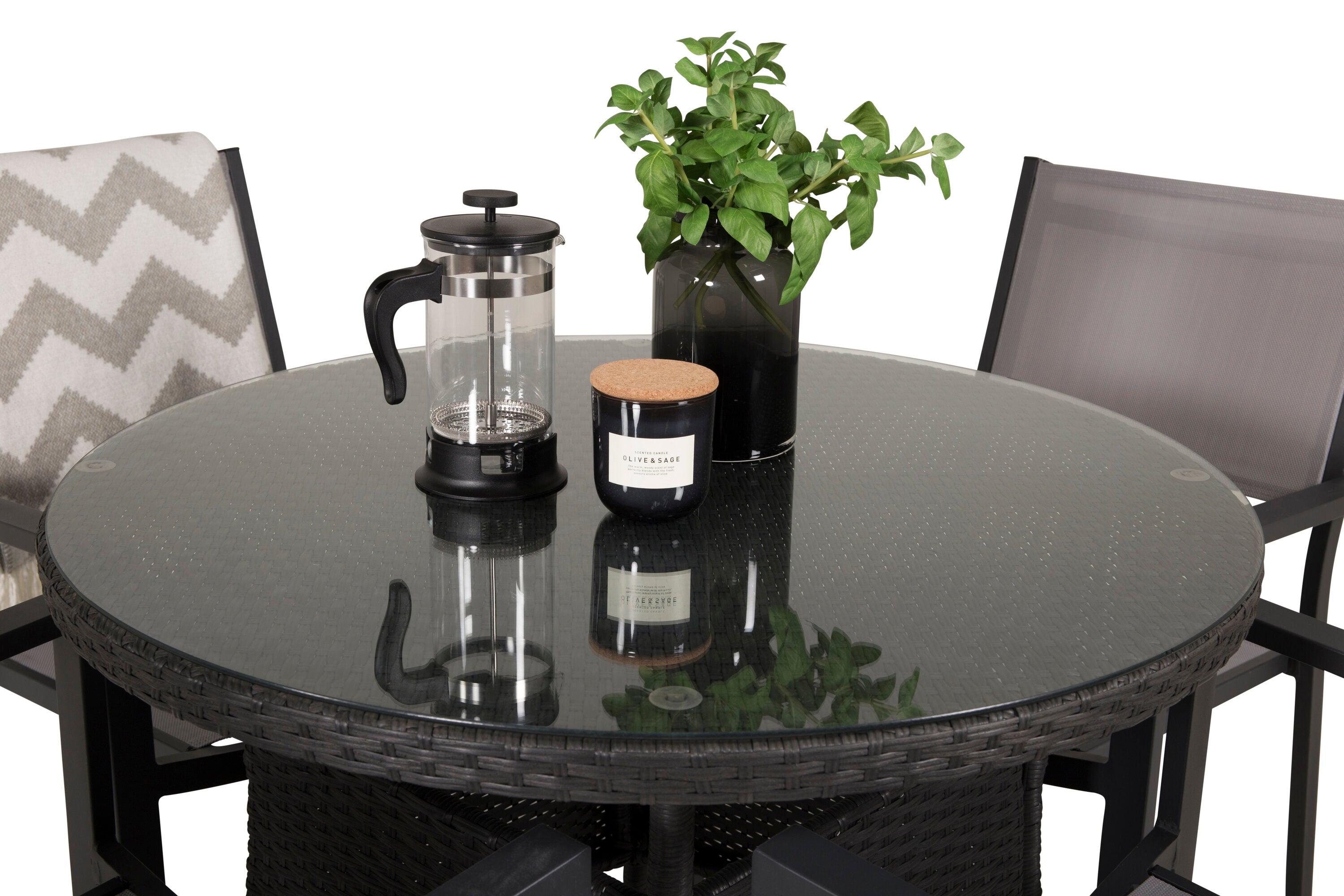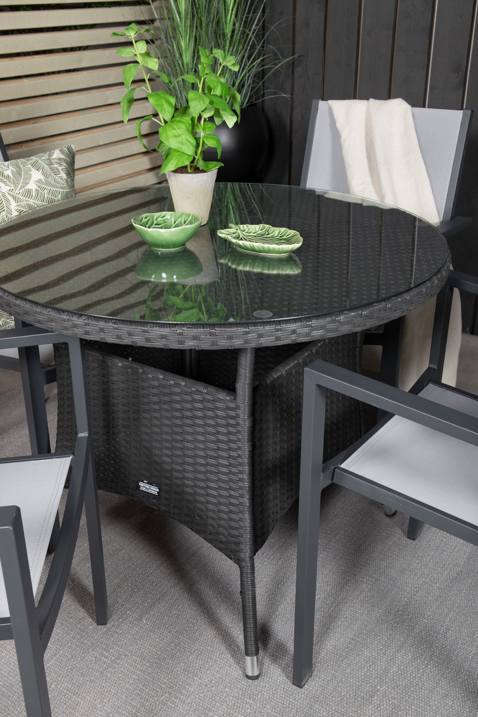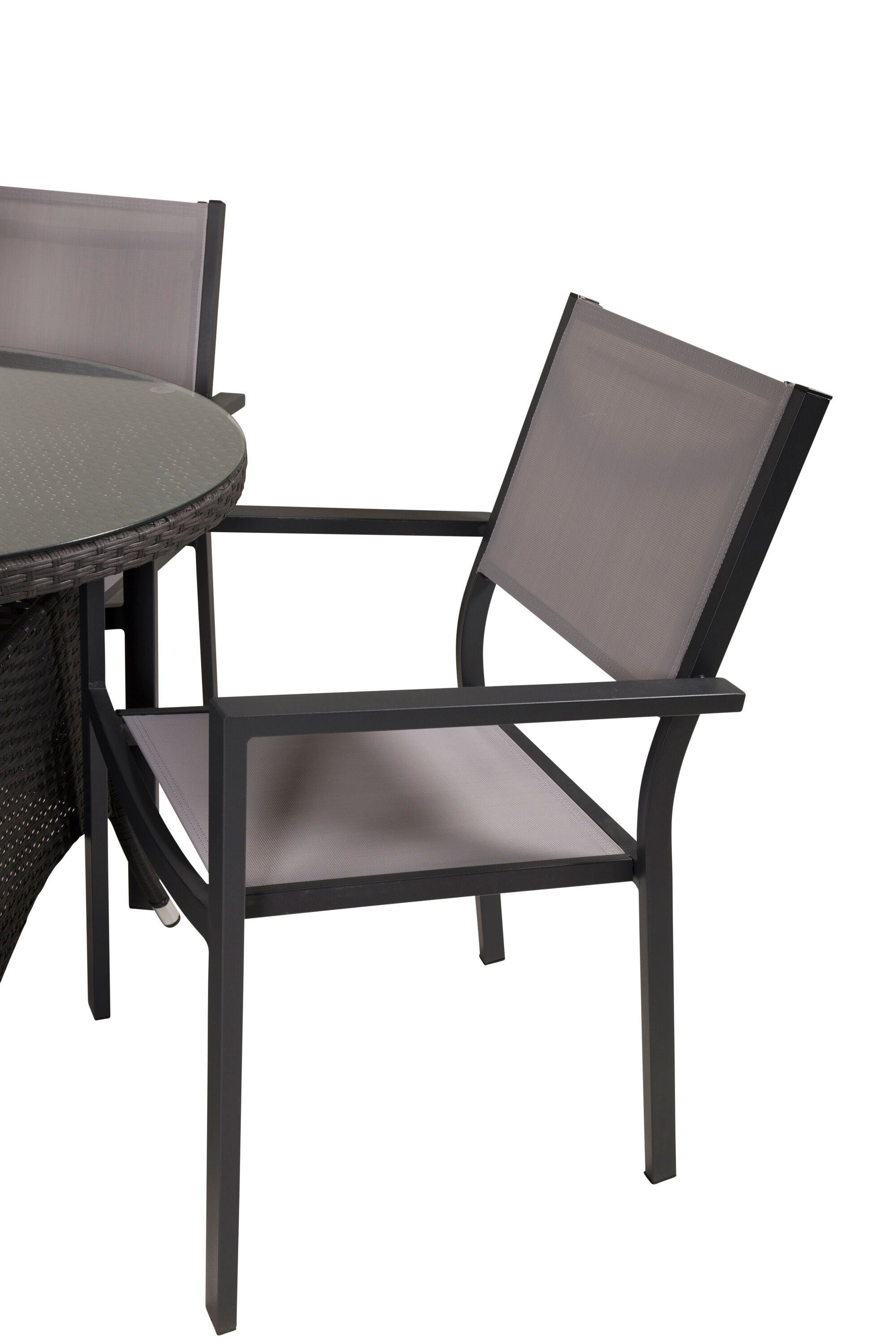 Jídelní stůl Volta - Černý - ø90 + křeslo Copacabana (stohovatelné) - Černý Alu /