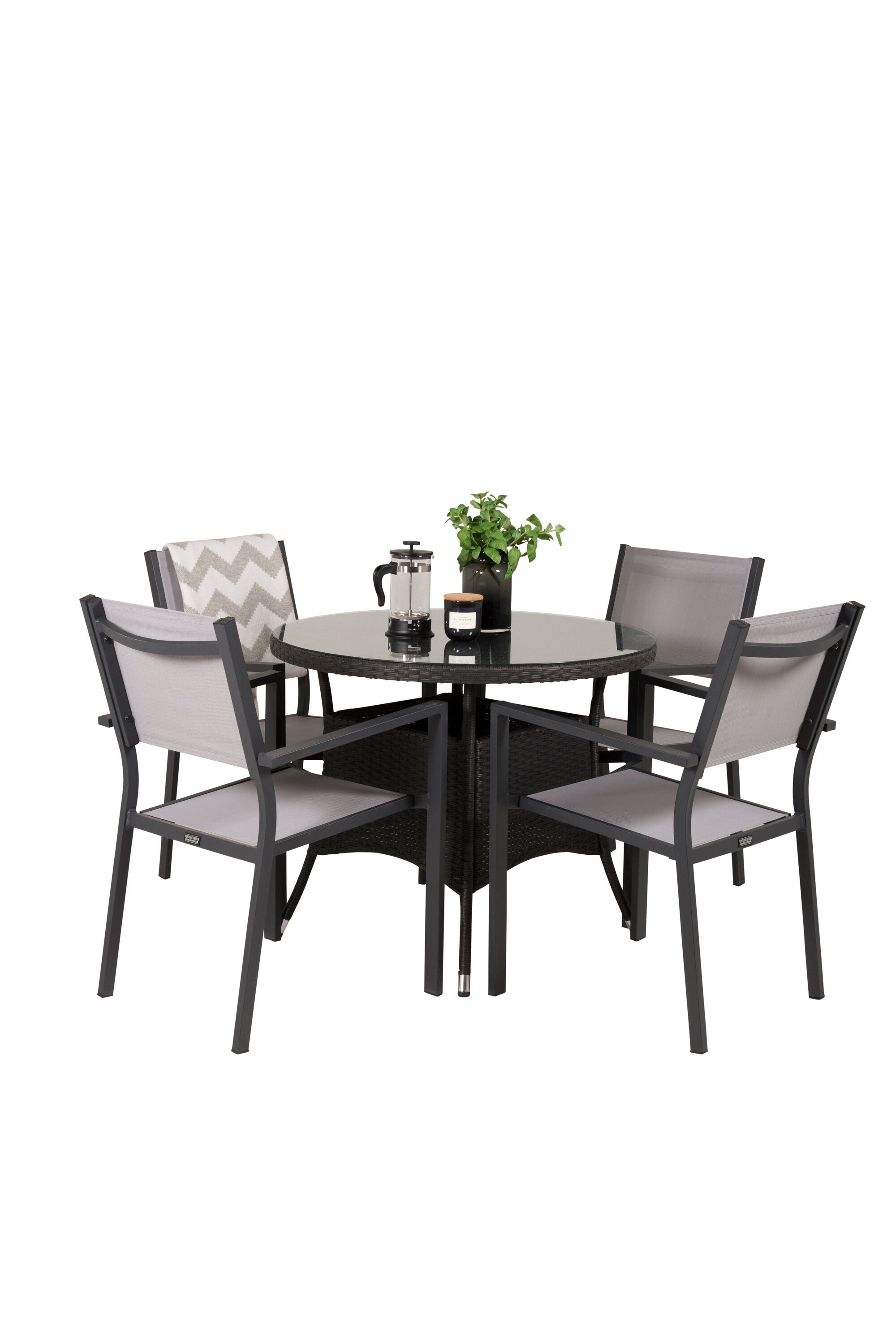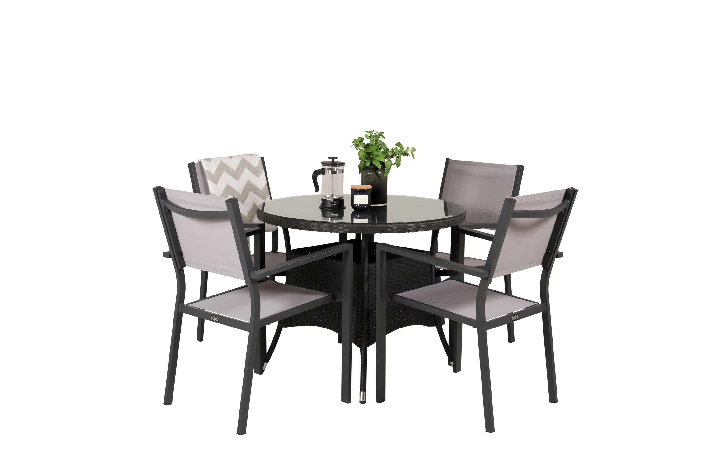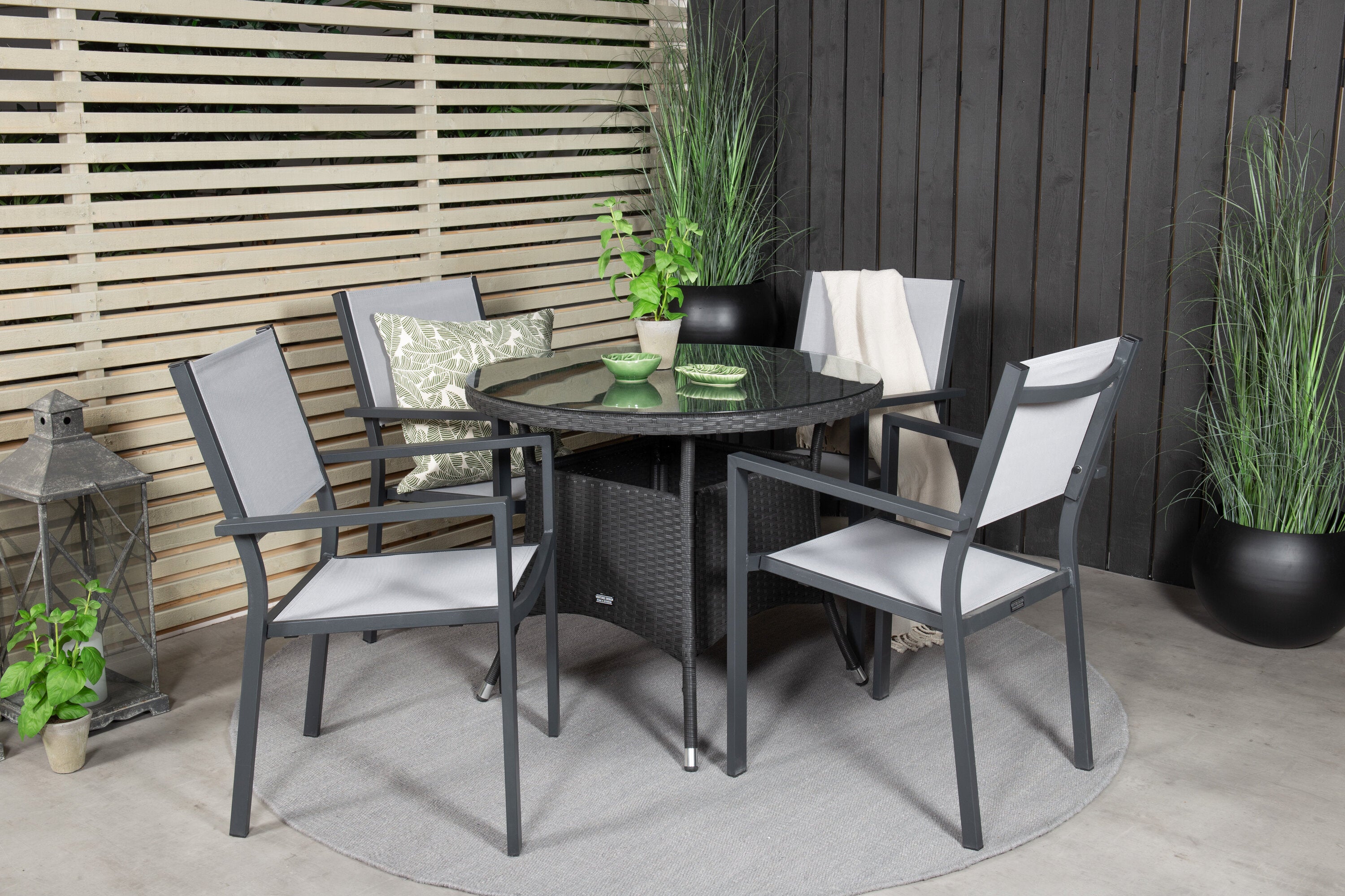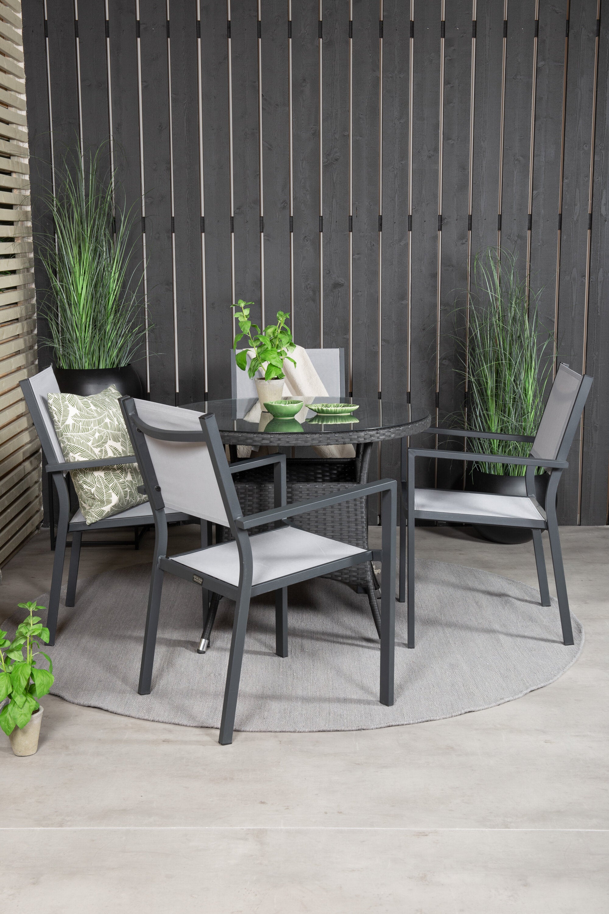 Jídelní stůl Volta - Černý - ø90 + křeslo Copacabana (stohovatelné) - Černý Alu /