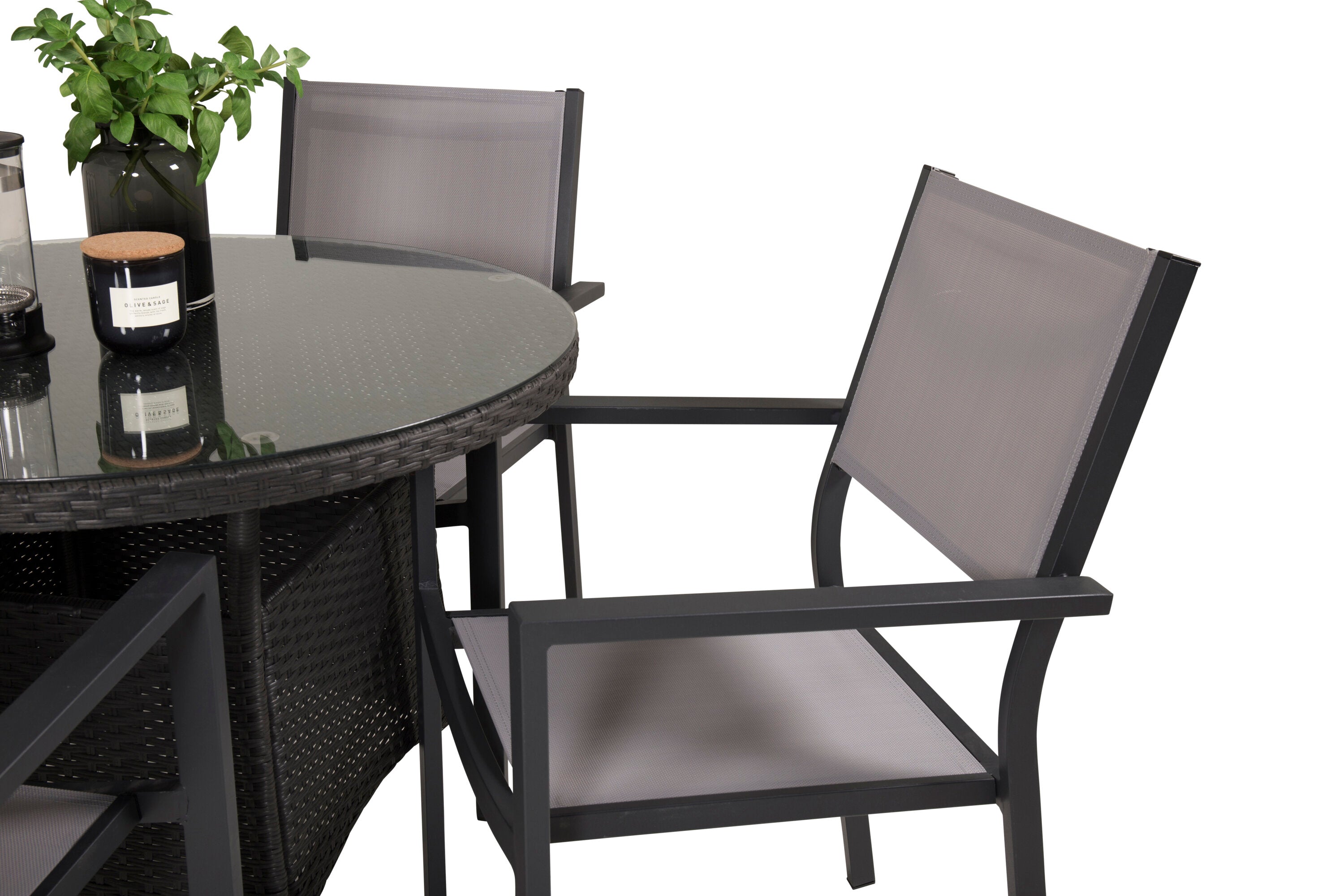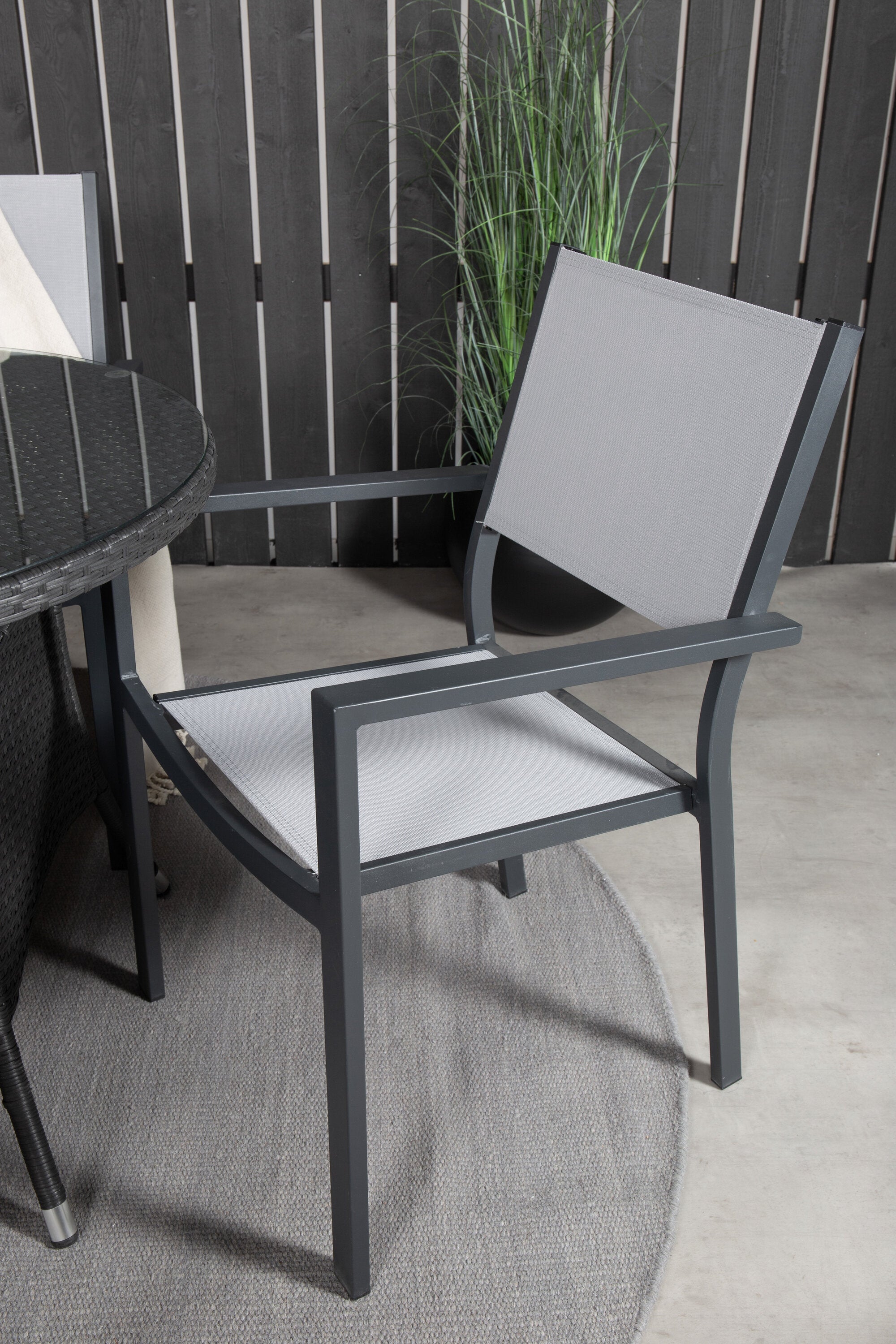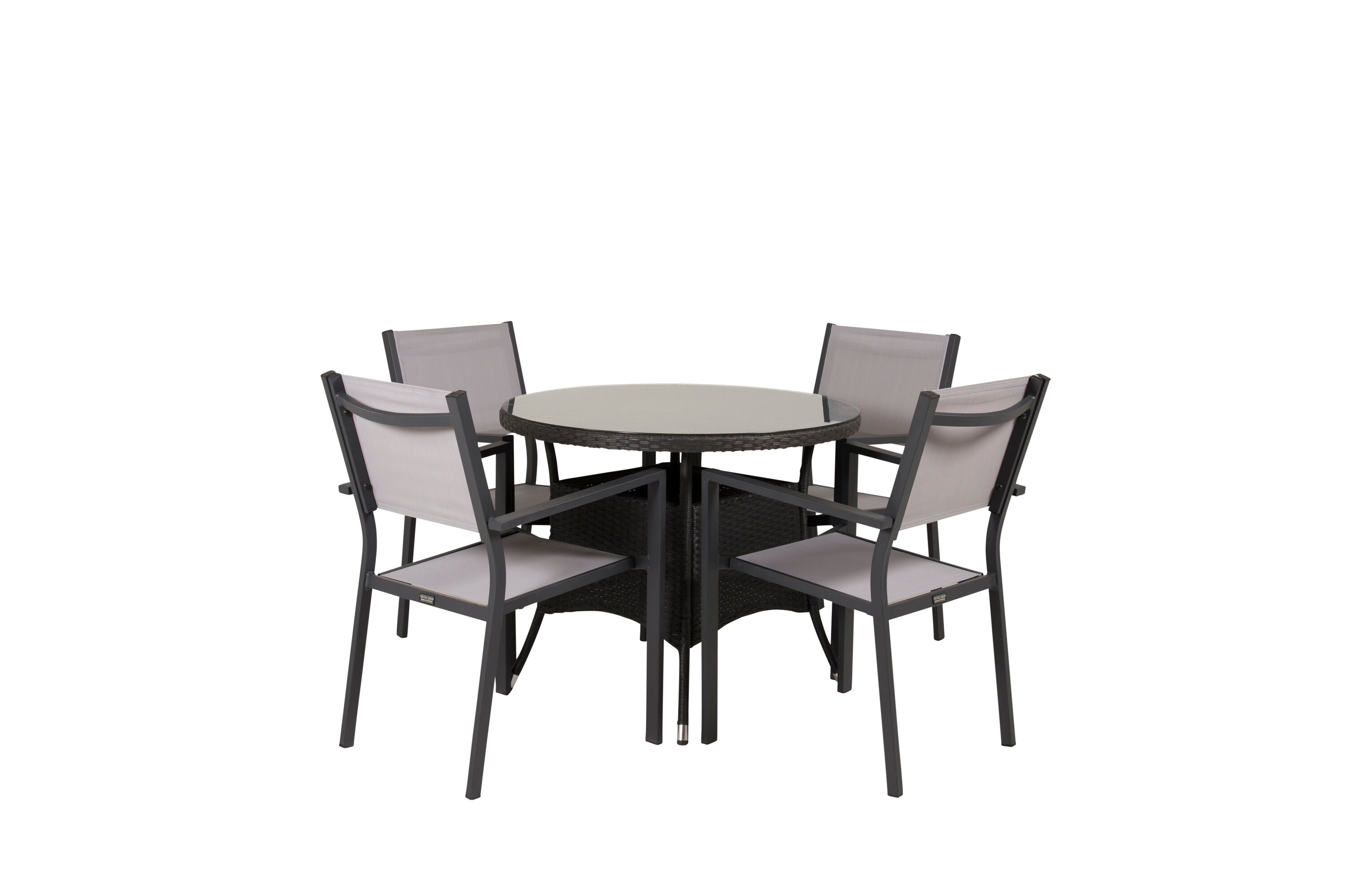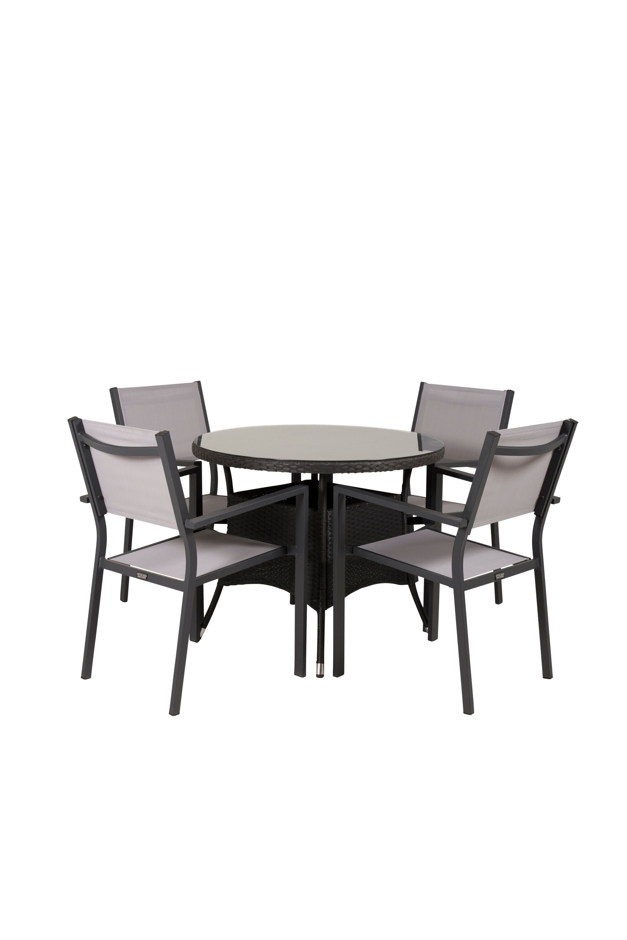 Jídelní stůl Volta - Černý - ø90 + křeslo Copacabana (stohovatelné) - Černý Alu /