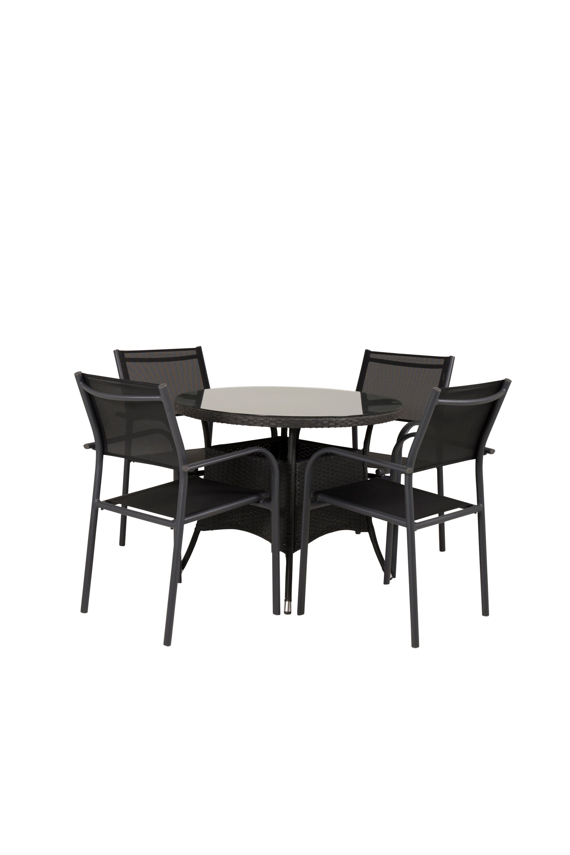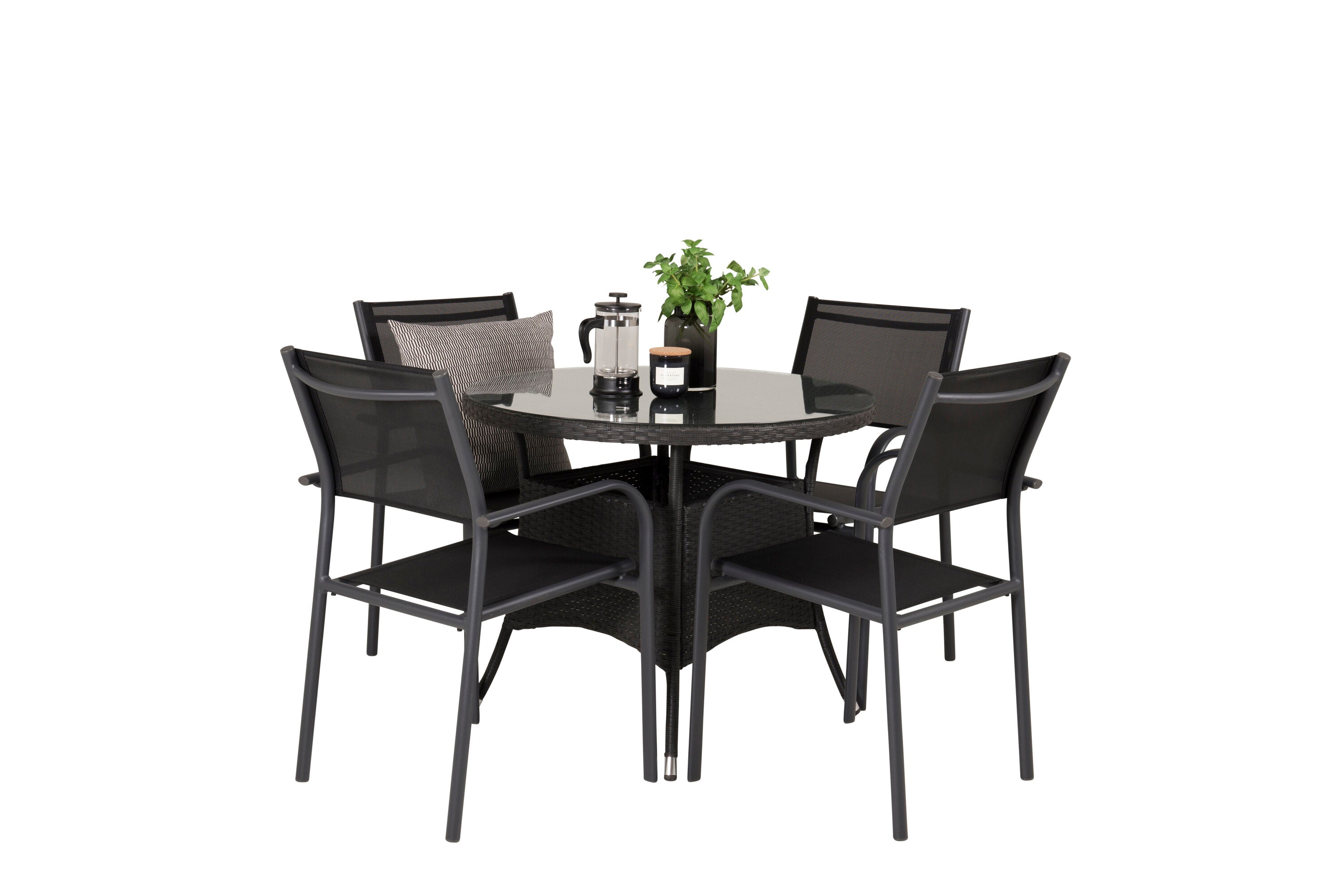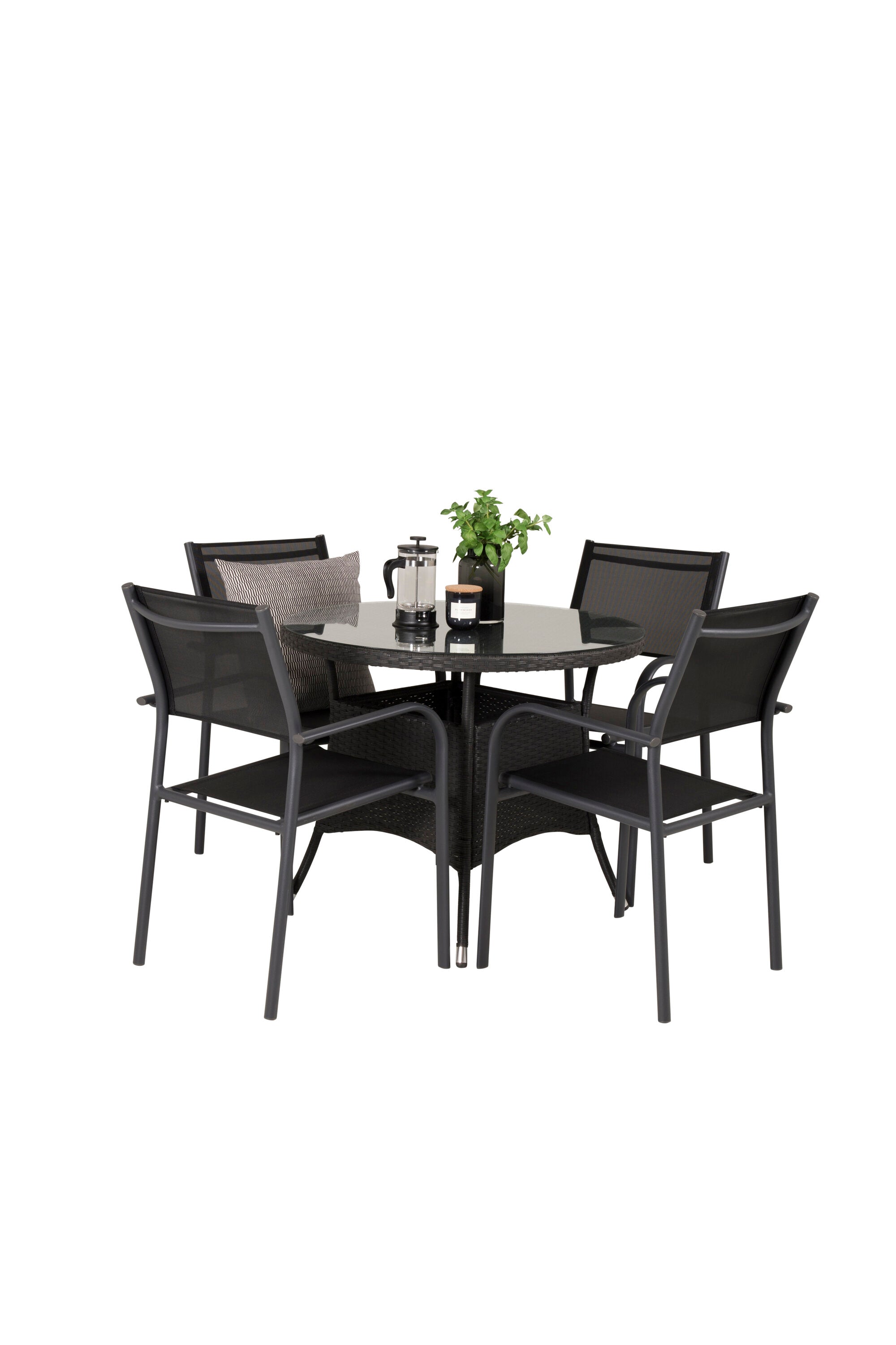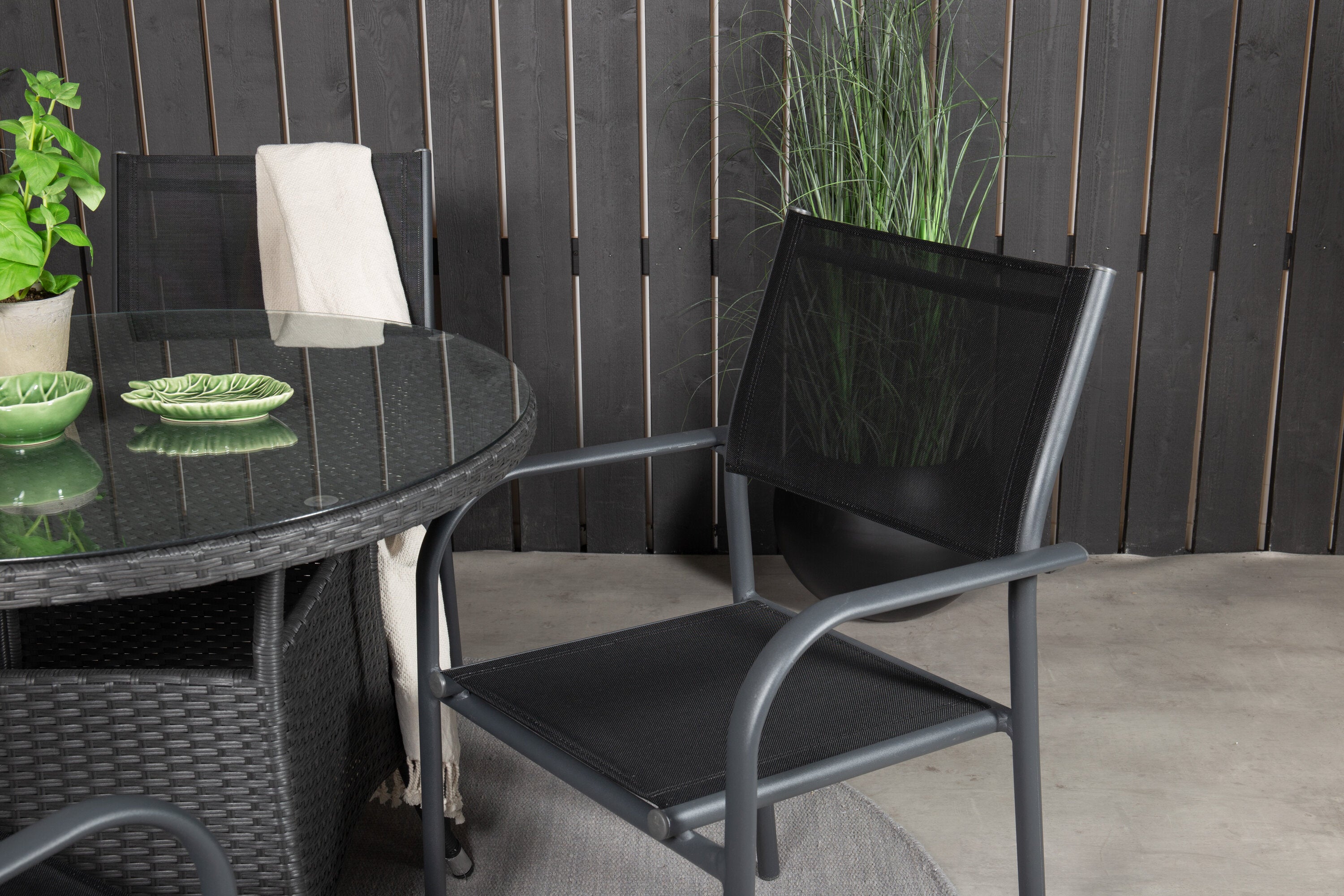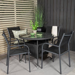 Jídelní stůl Volta - Černý - ø90 + křeslo Santorini (stohovatelné) - Černý alu / B
