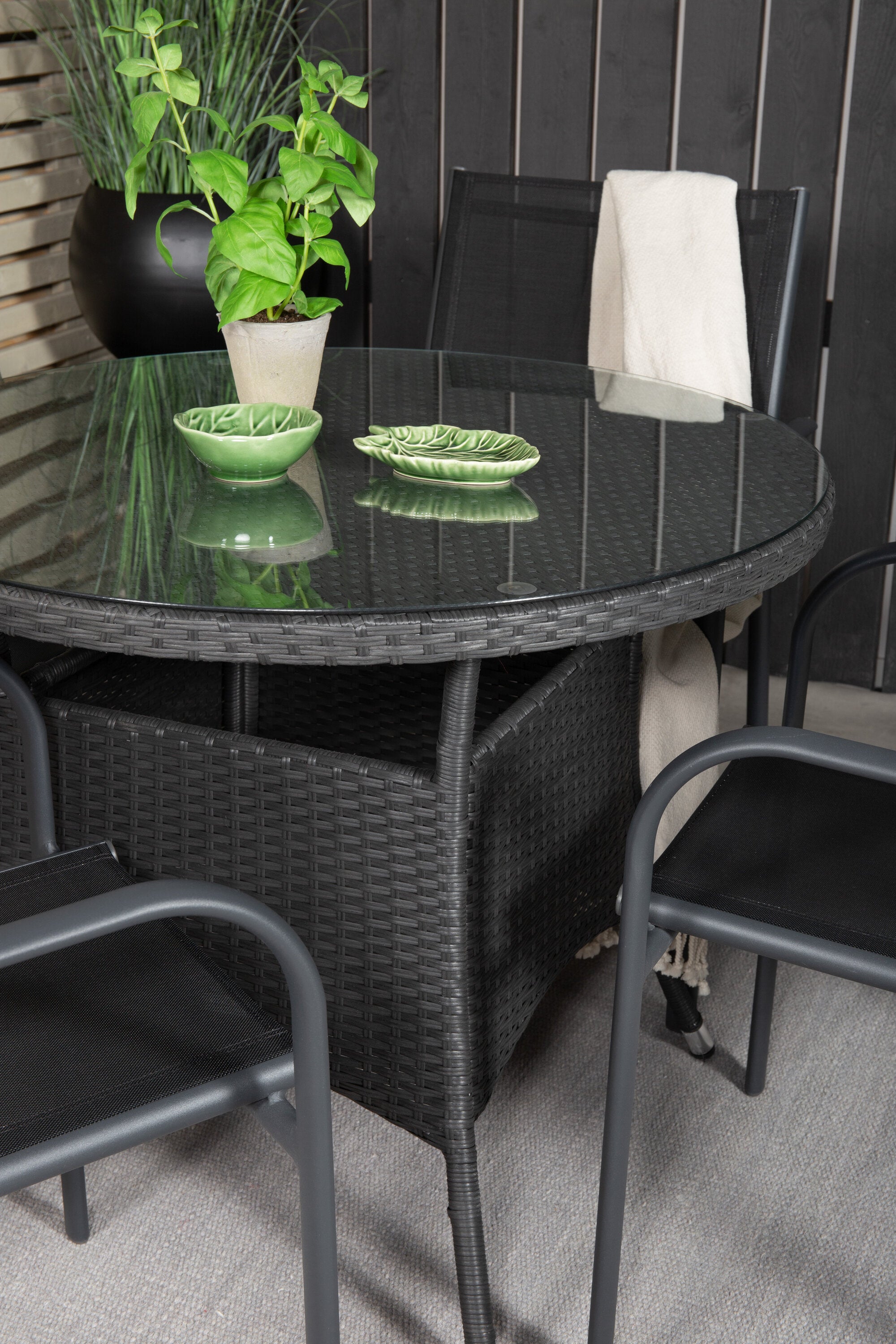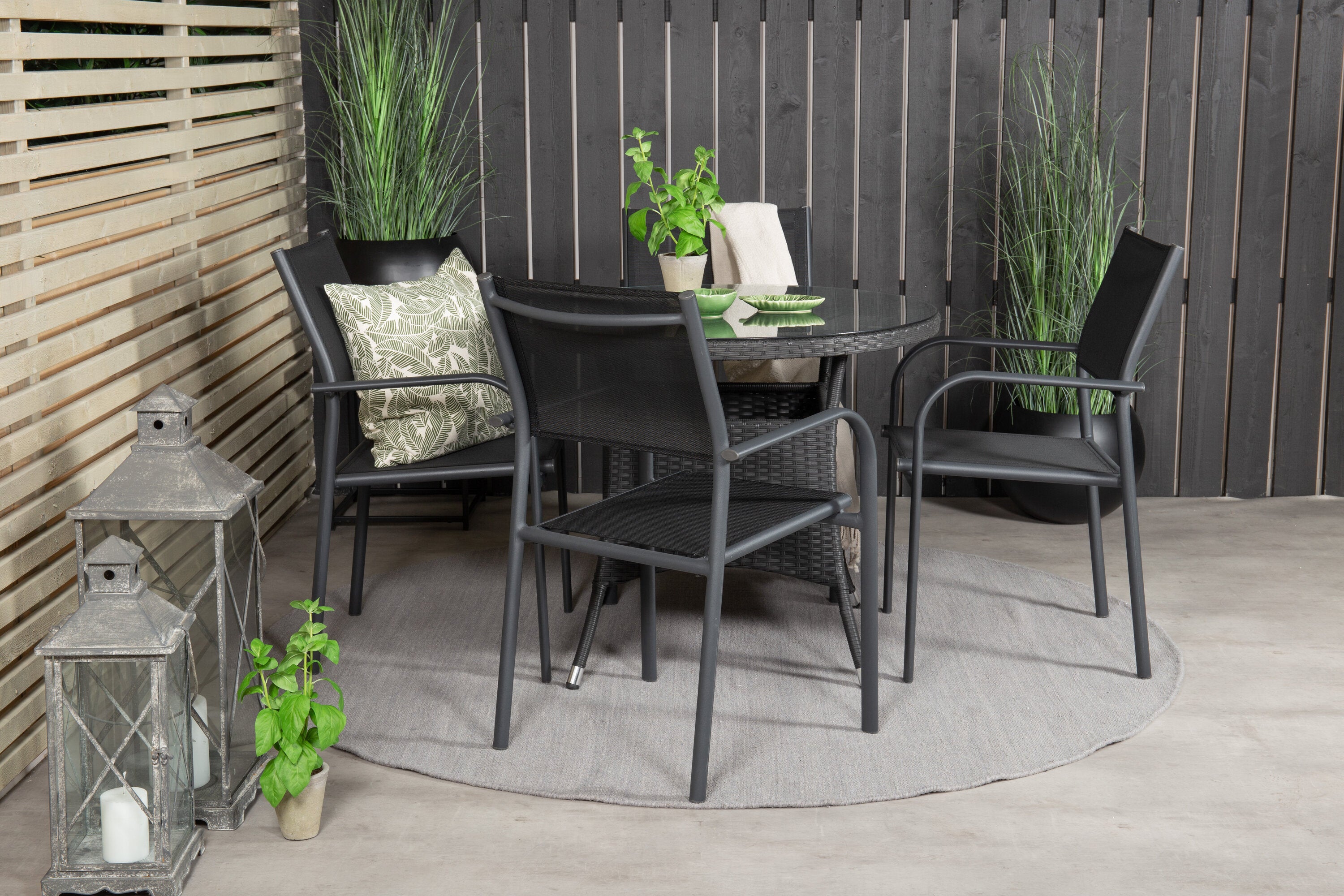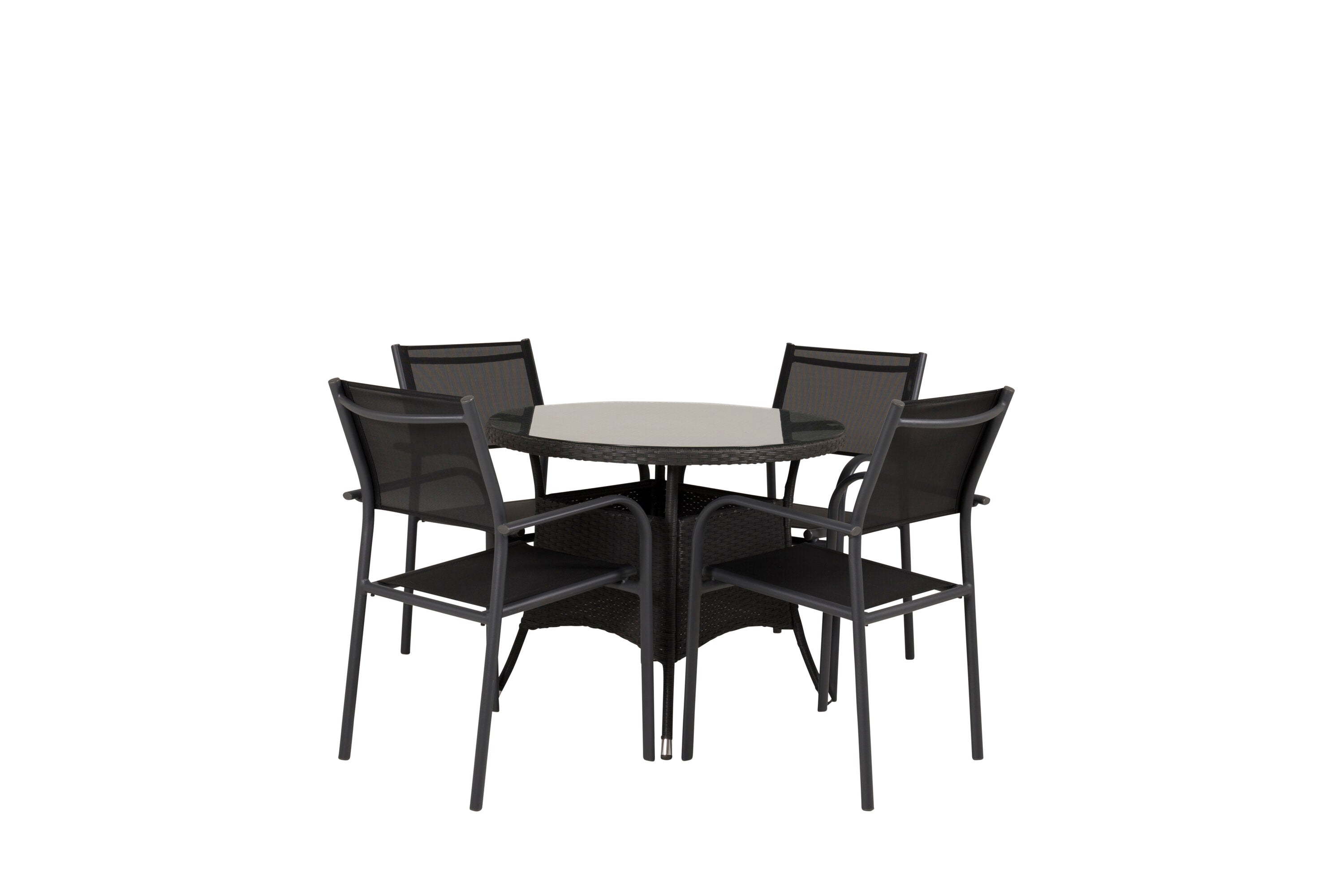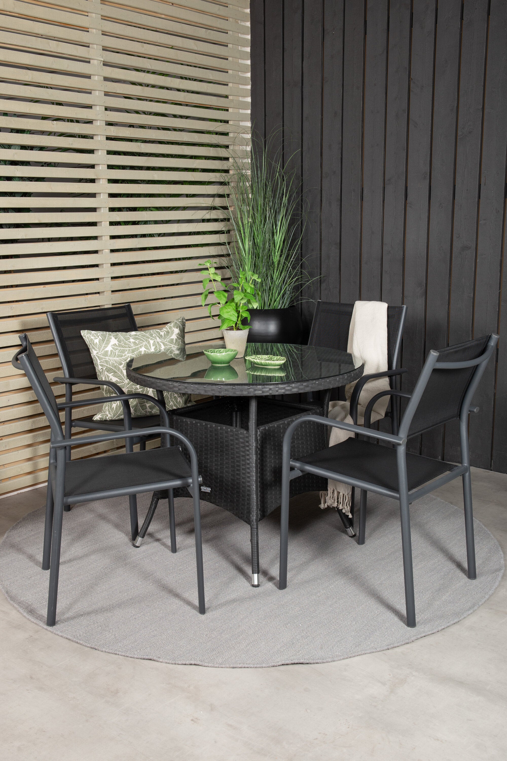 Jídelní stůl Volta - Černý - ø90 + křeslo Santorini (stohovatelné) - Černý alu / B