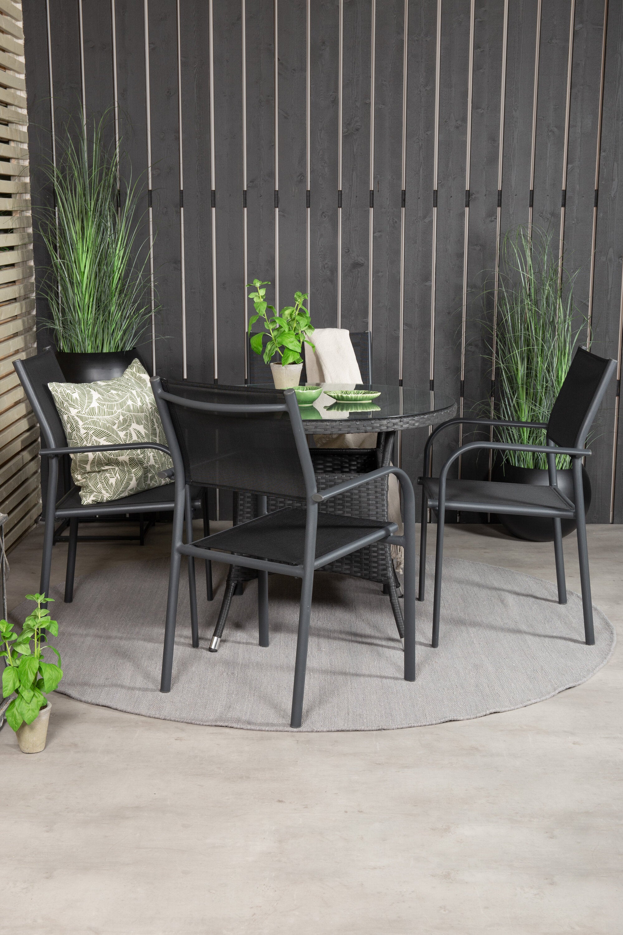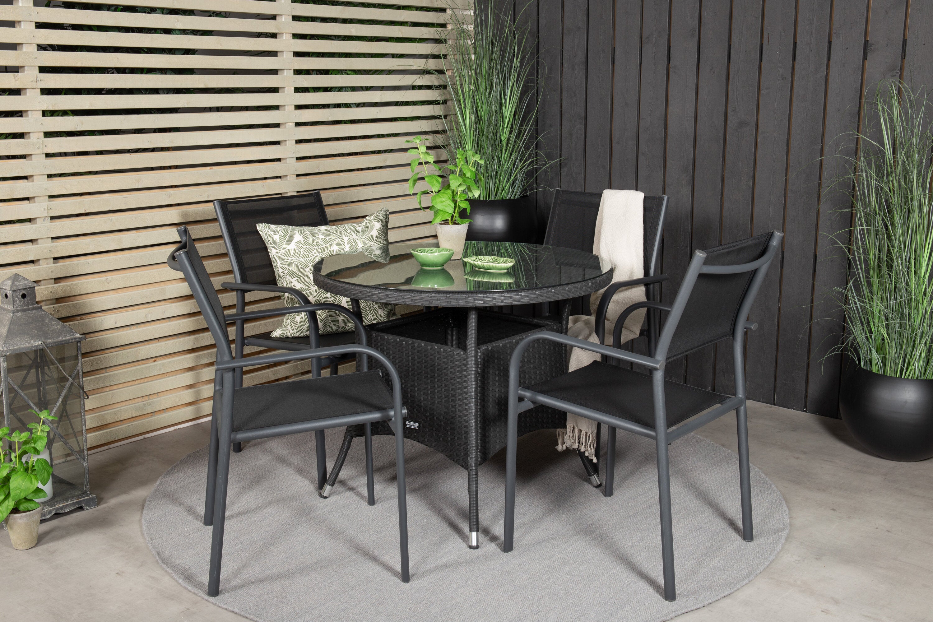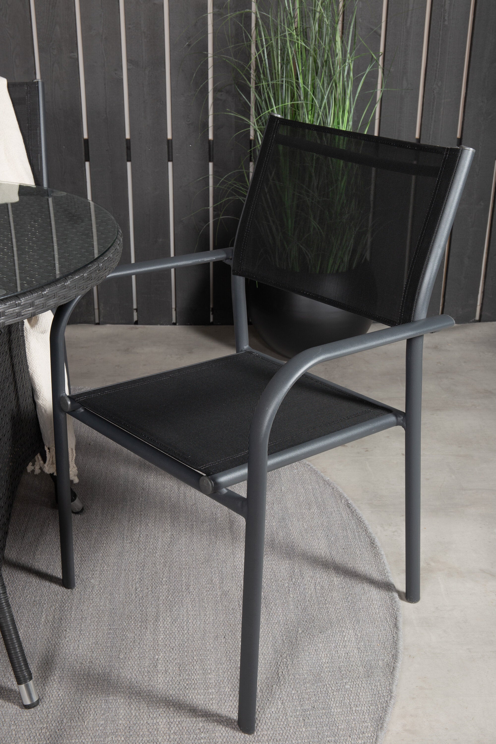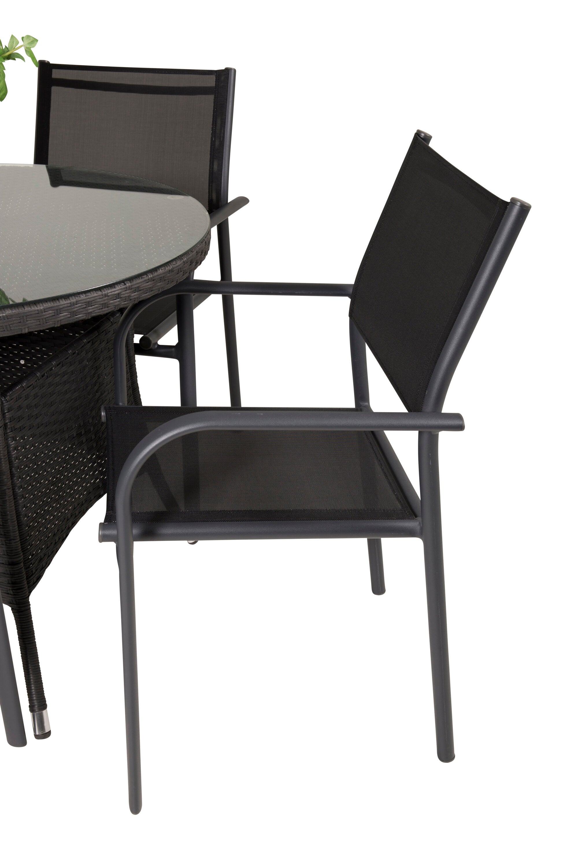Jídelní stůl Volta - Černý - ø90 + křeslo Santorini (stohovatelné) - Černý alu / B