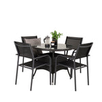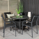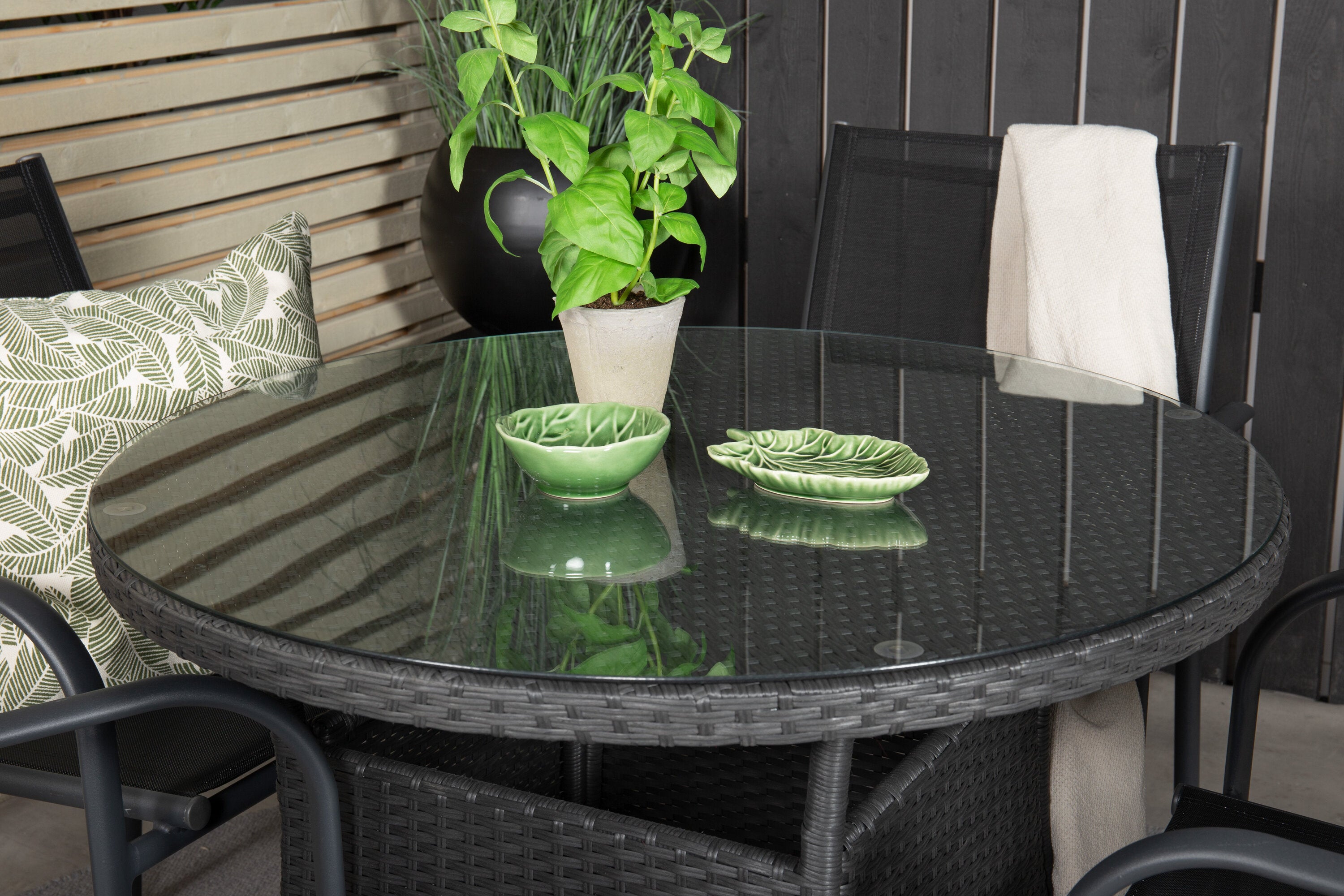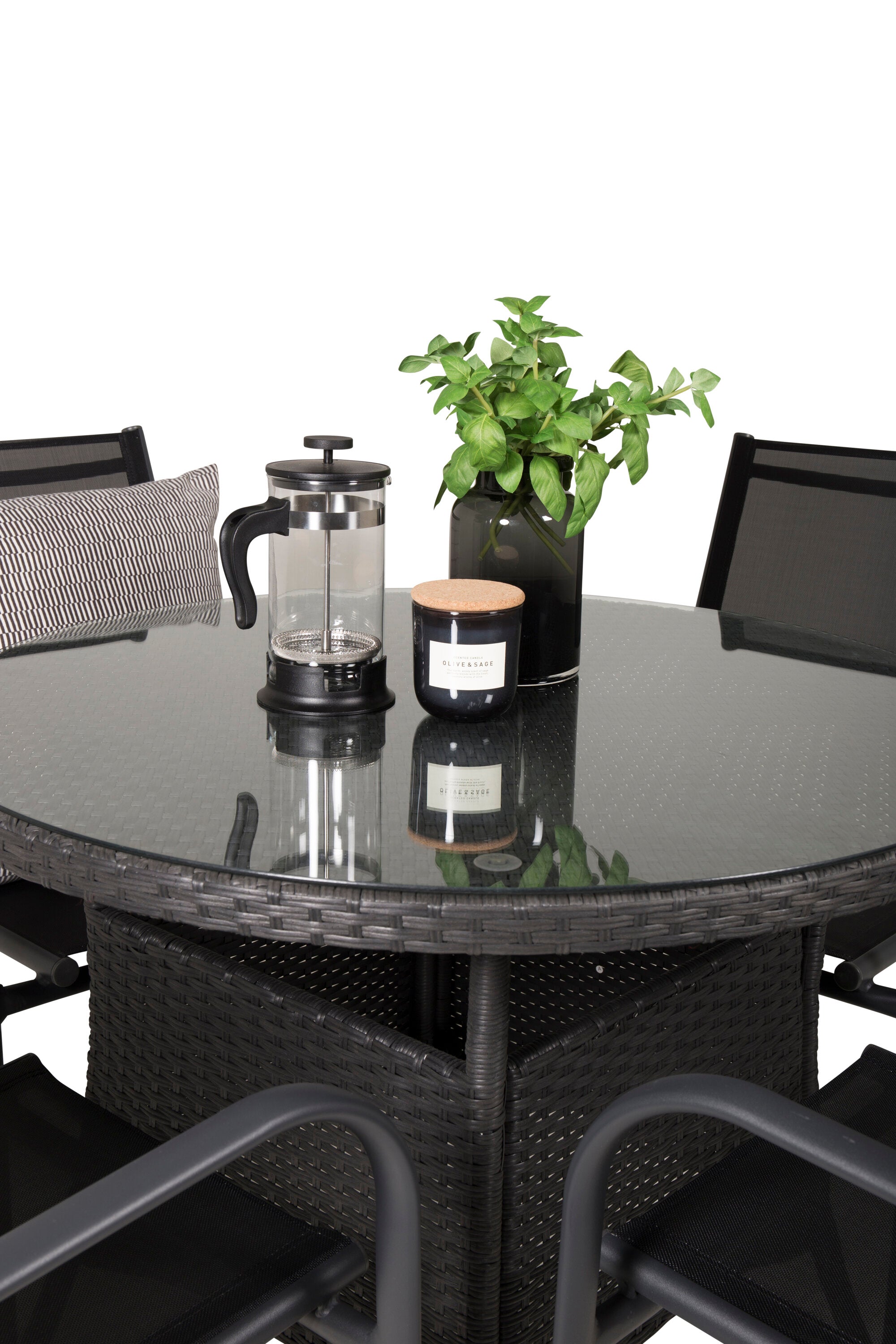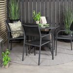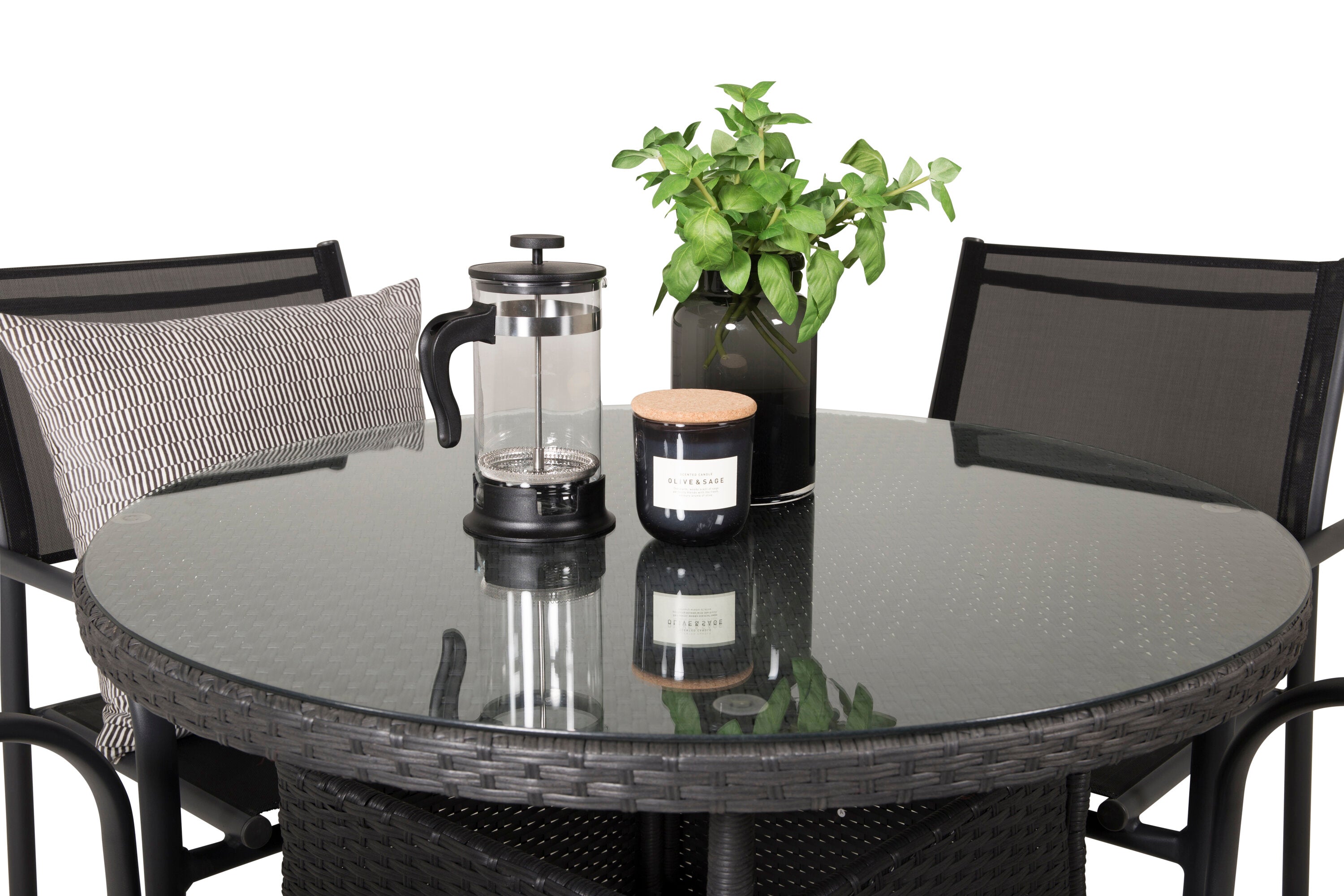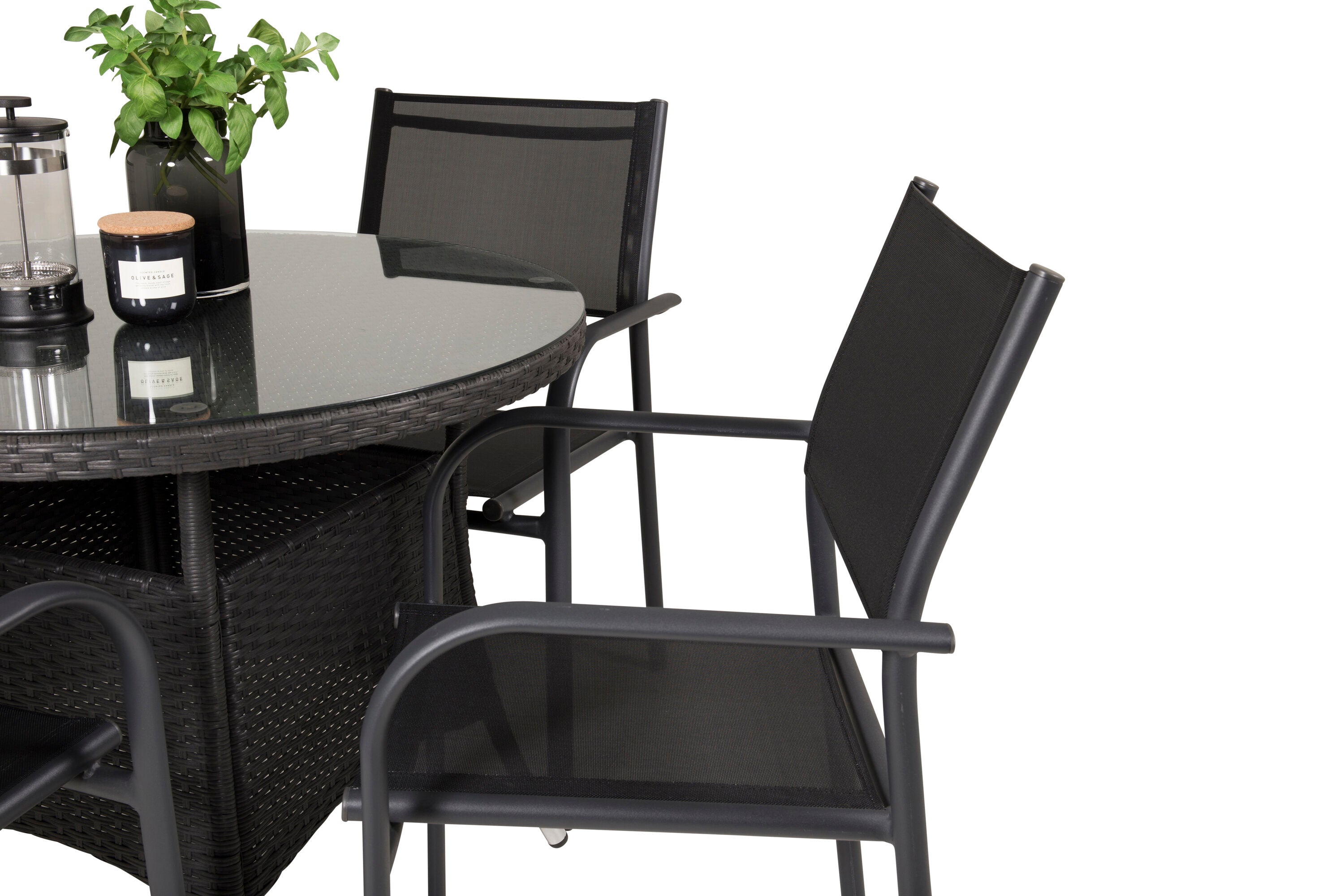 Jídelní stůl Volta - Černý - ø90 + křeslo Santorini (stohovatelné) - Černý alu / B