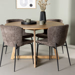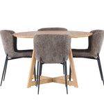Náš kulatý jídelní stůl Yakidon z odolného kaučukového dřeva má povrchovou úpravu v barvě dubu, která přispívá ke klasickému vzhledu. Zaoblená deska stolu dodává útulný nádech a stává se příjemným místem pro všechny blízké. Mírně rozšířené nohy stolu, které se setkávají pod středem stolu, se stávají krásným detailem celku.