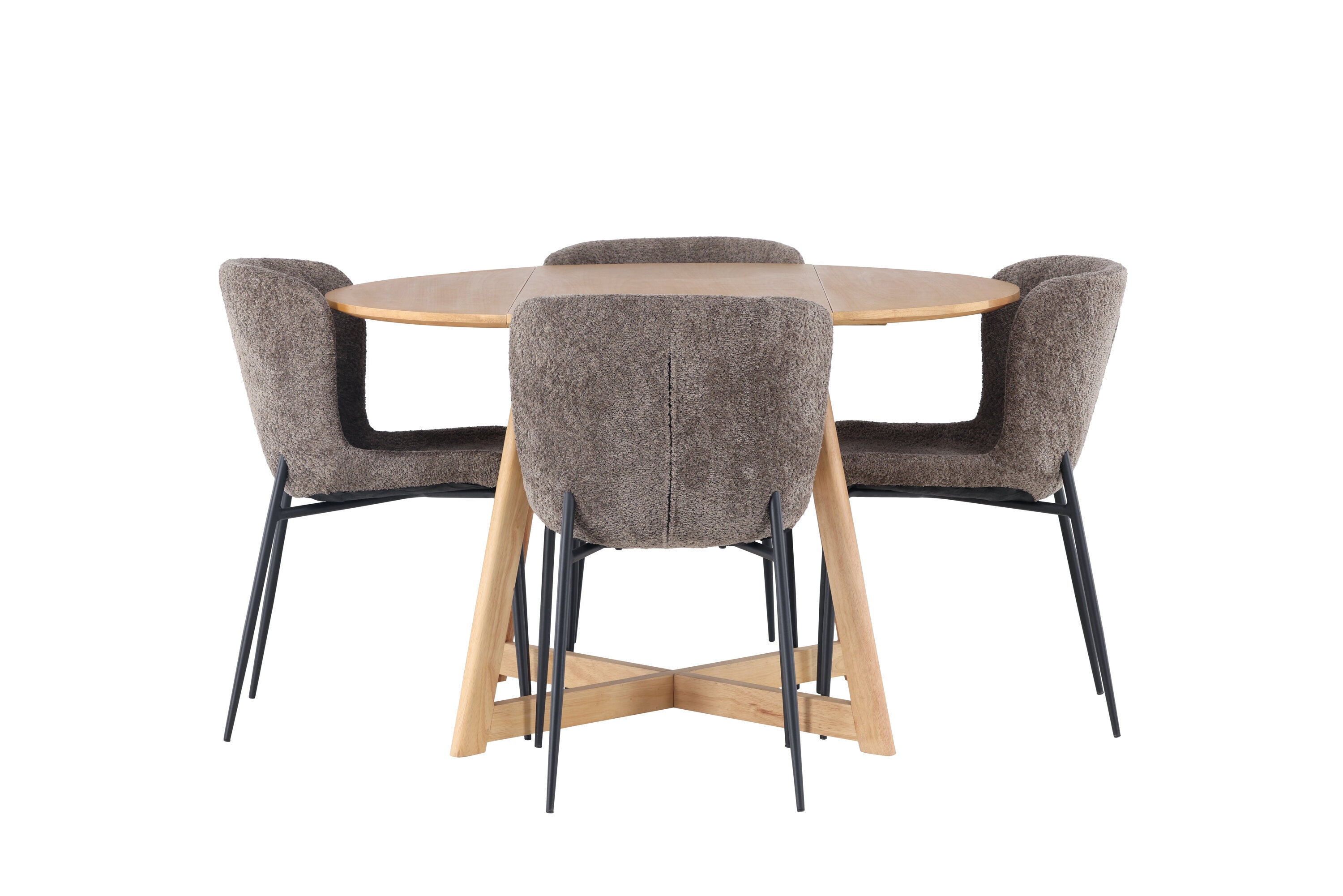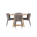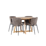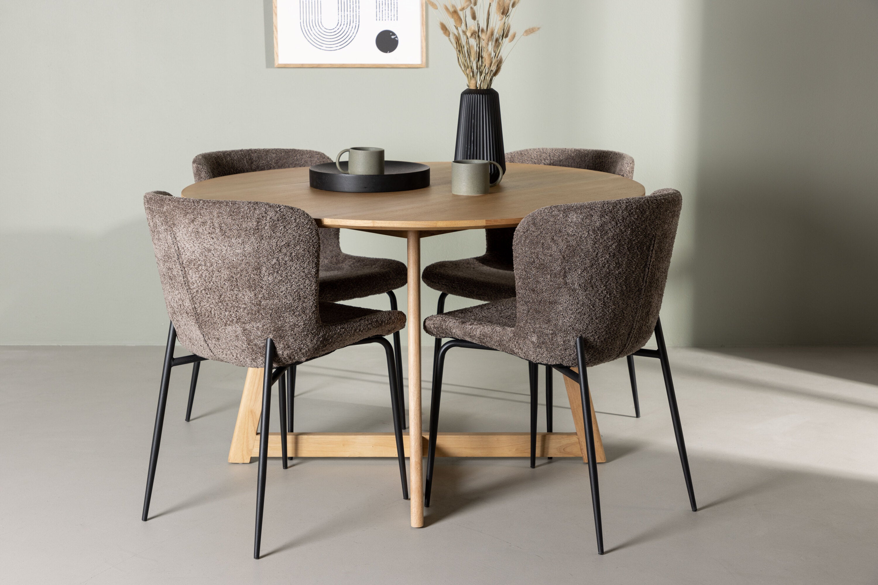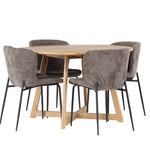 Jídelní stůl Yakidon - Gumové dřevo / Oaklook MDF + Jídelní židle Modesto - šedá / kouřová černá Boucle _4