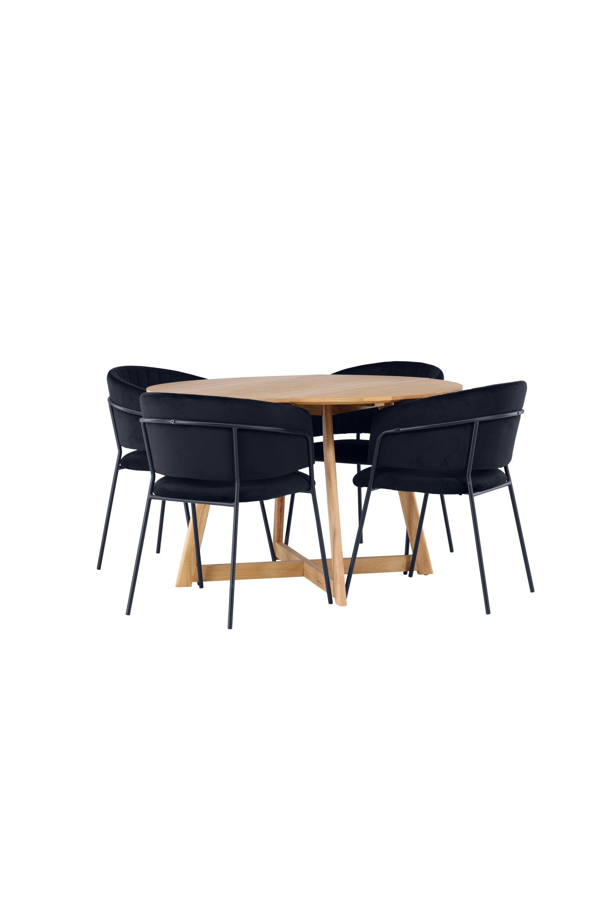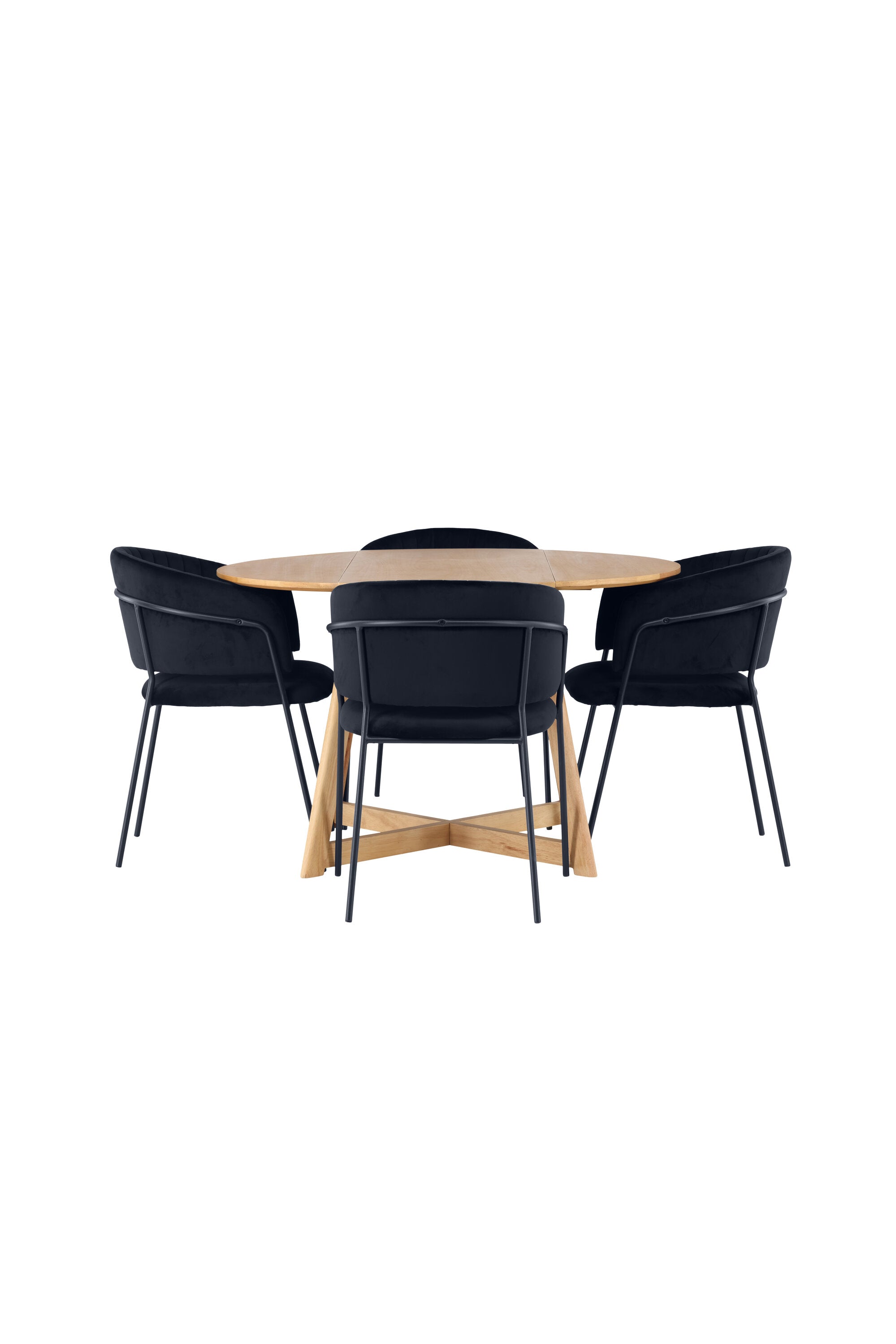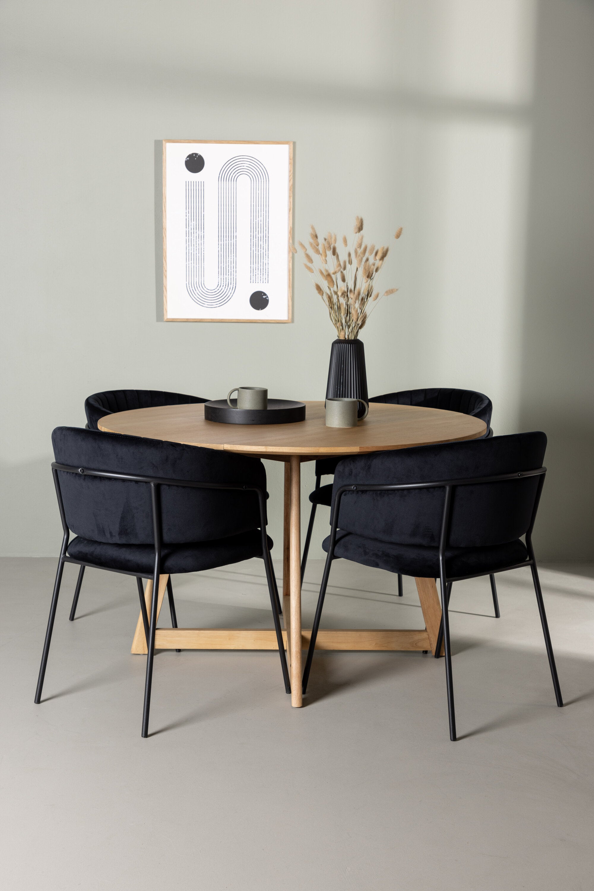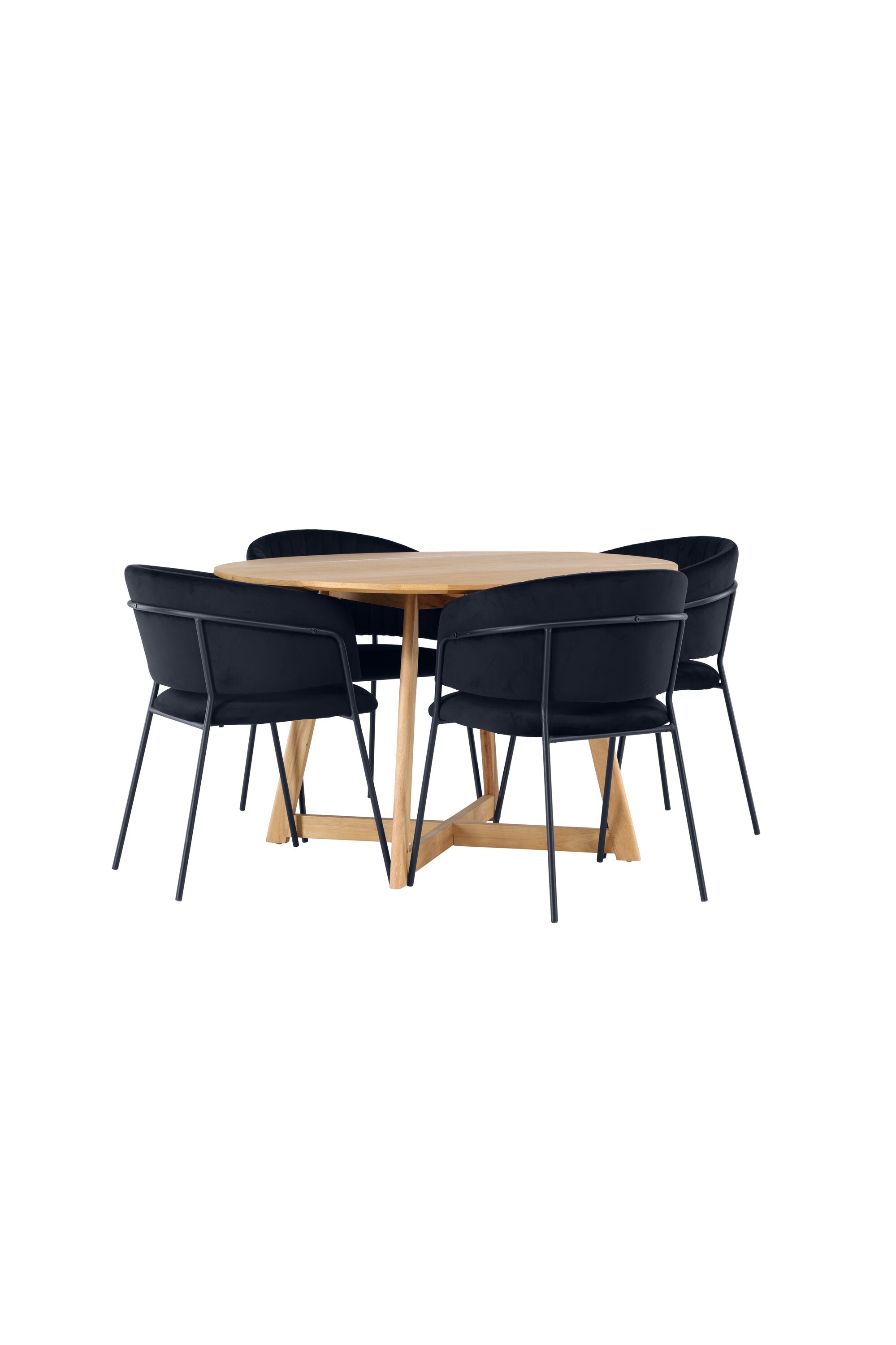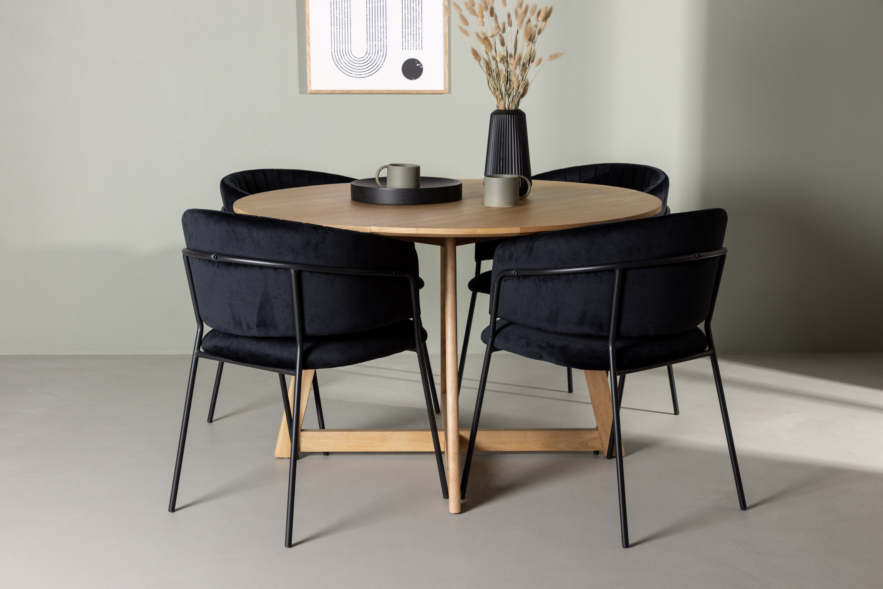 Jídelní stůl Yakidon - Gumové dřevo / Oaklook MDF + Jídelní židle Selma - Černá / Black Velvet _4