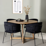 Náš kulatý jídelní stůl Yakidon je vyroben z vysoce kvalitního kaučukového dřeva a má ohromující dubovou povrchovou úpravu, která dodá vašemu interiéru nadčasový vzhled. Kulatá deska stolu znamená, že nikdo neskončí na okraji, což je ideální pro rodinné večeře. Mírně rozšířené nohy stolu se krásně stýkají pod středem stolu, což poskytuje stabilní a stylovou konstrukci.