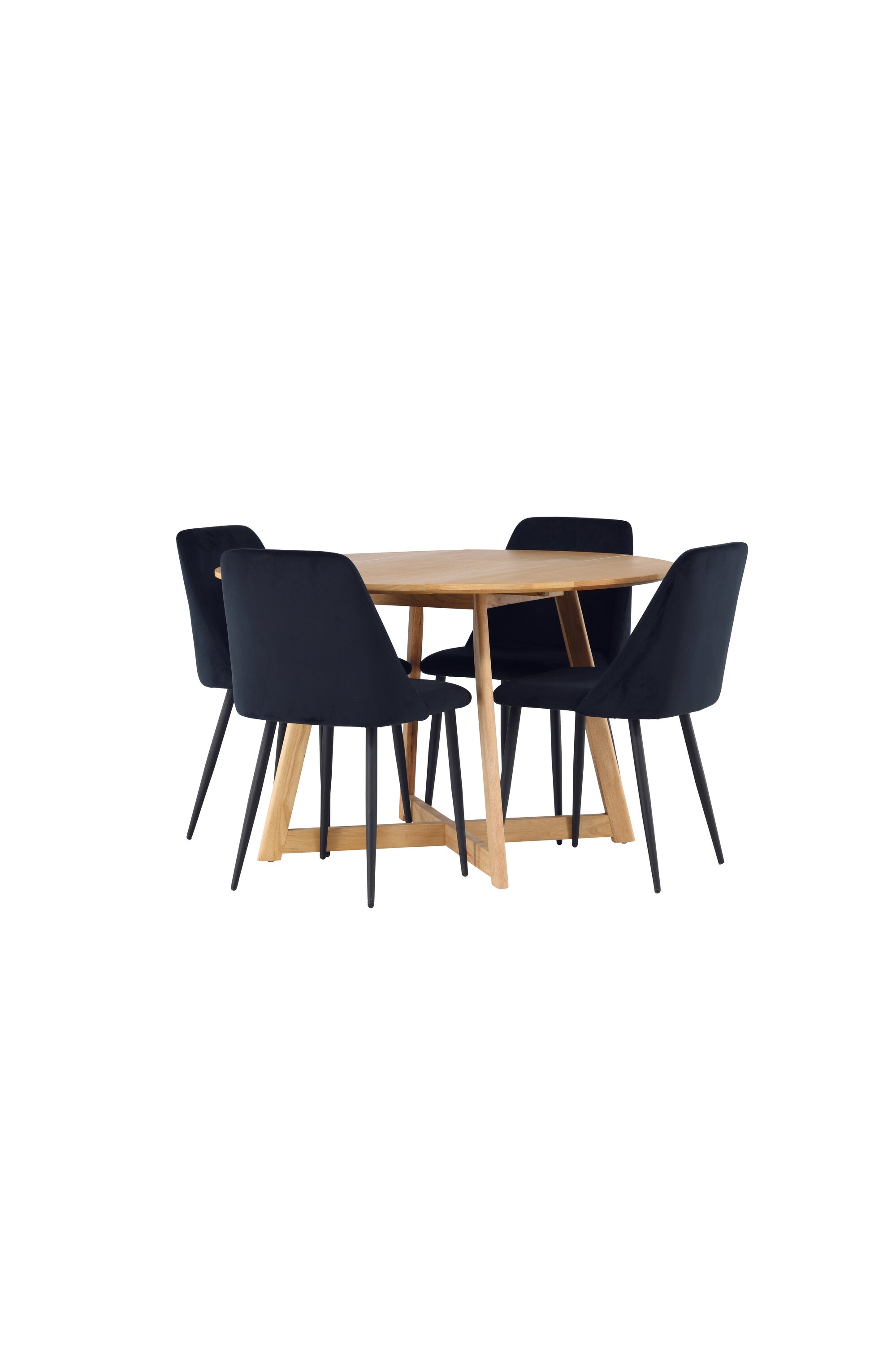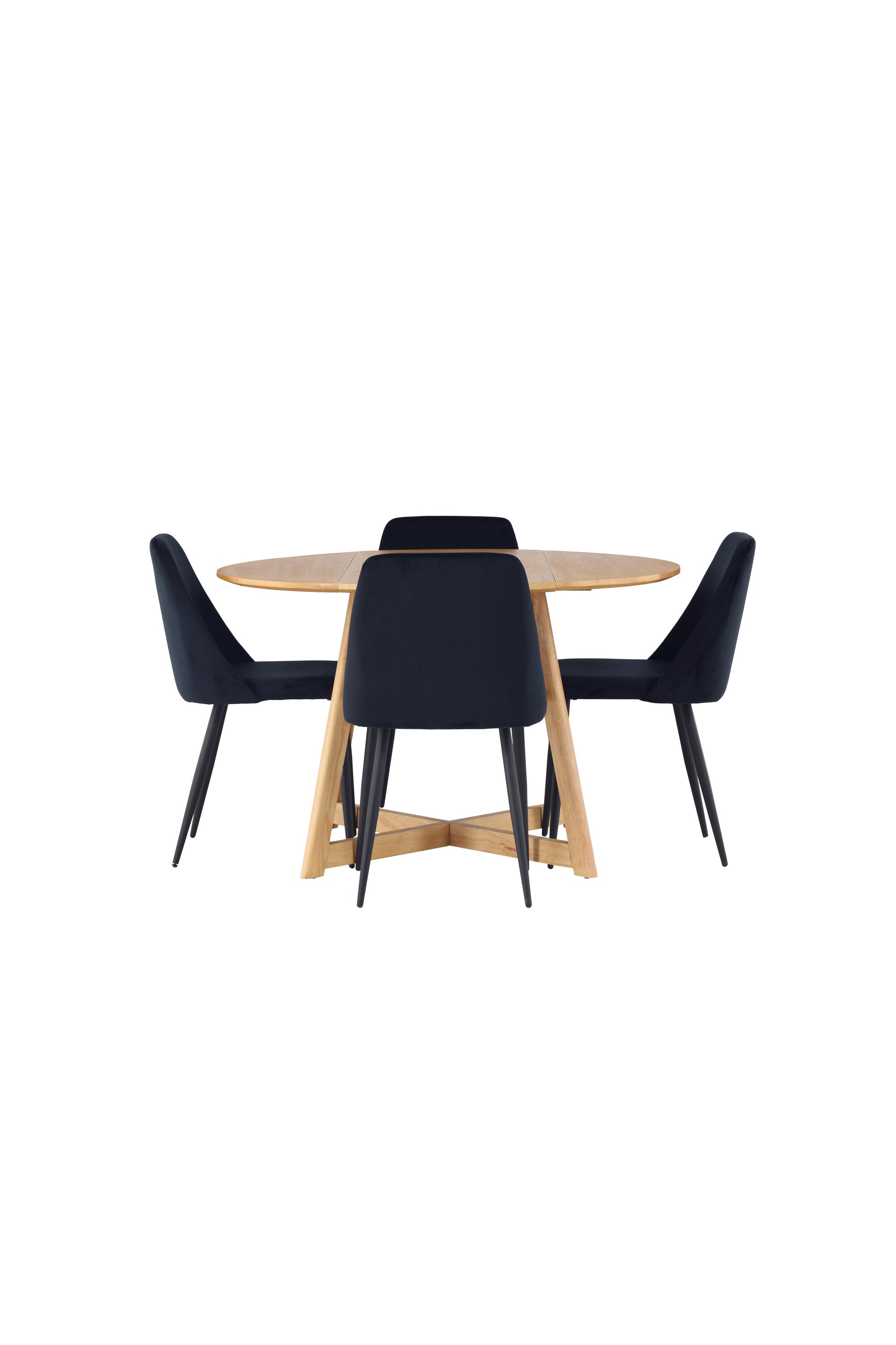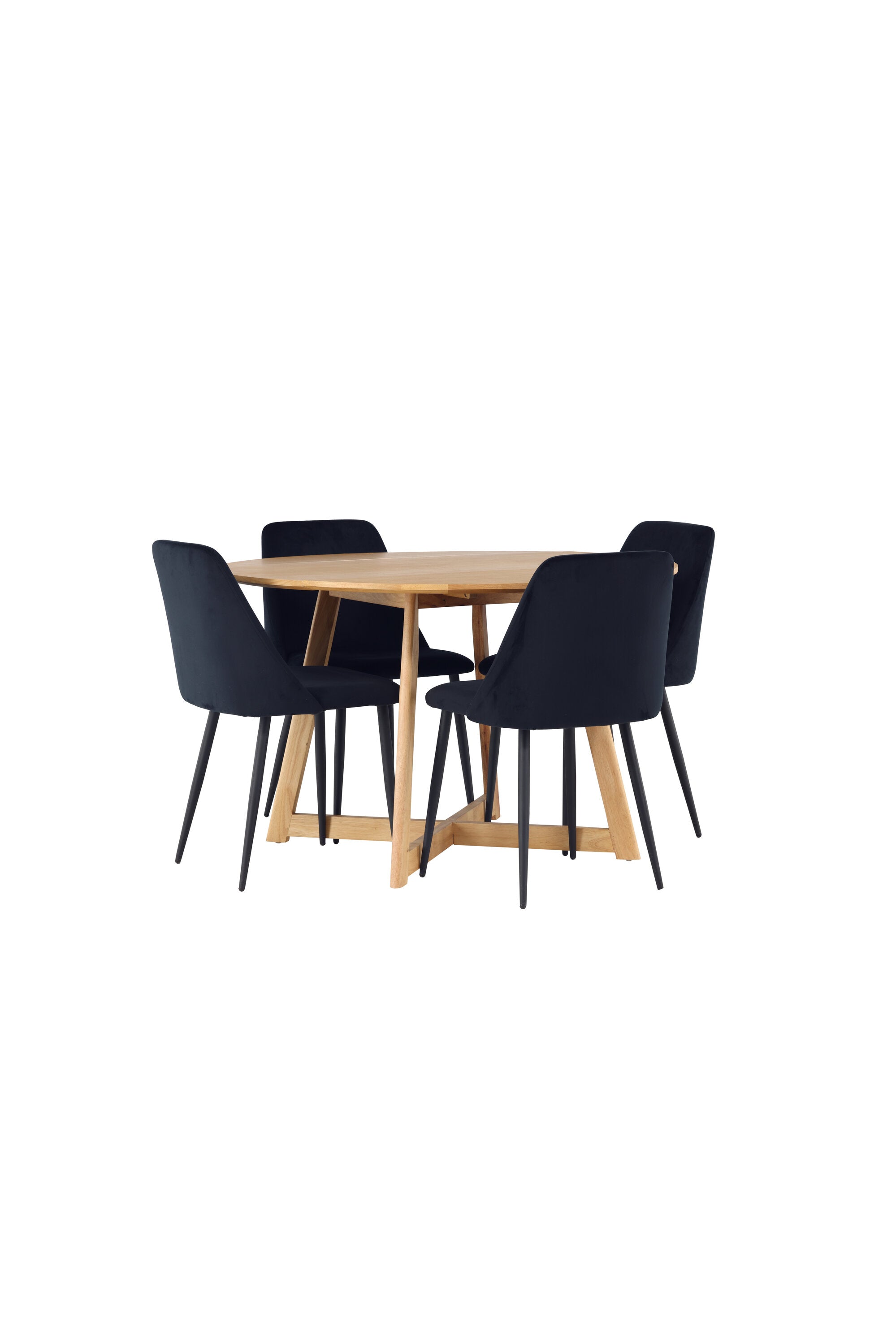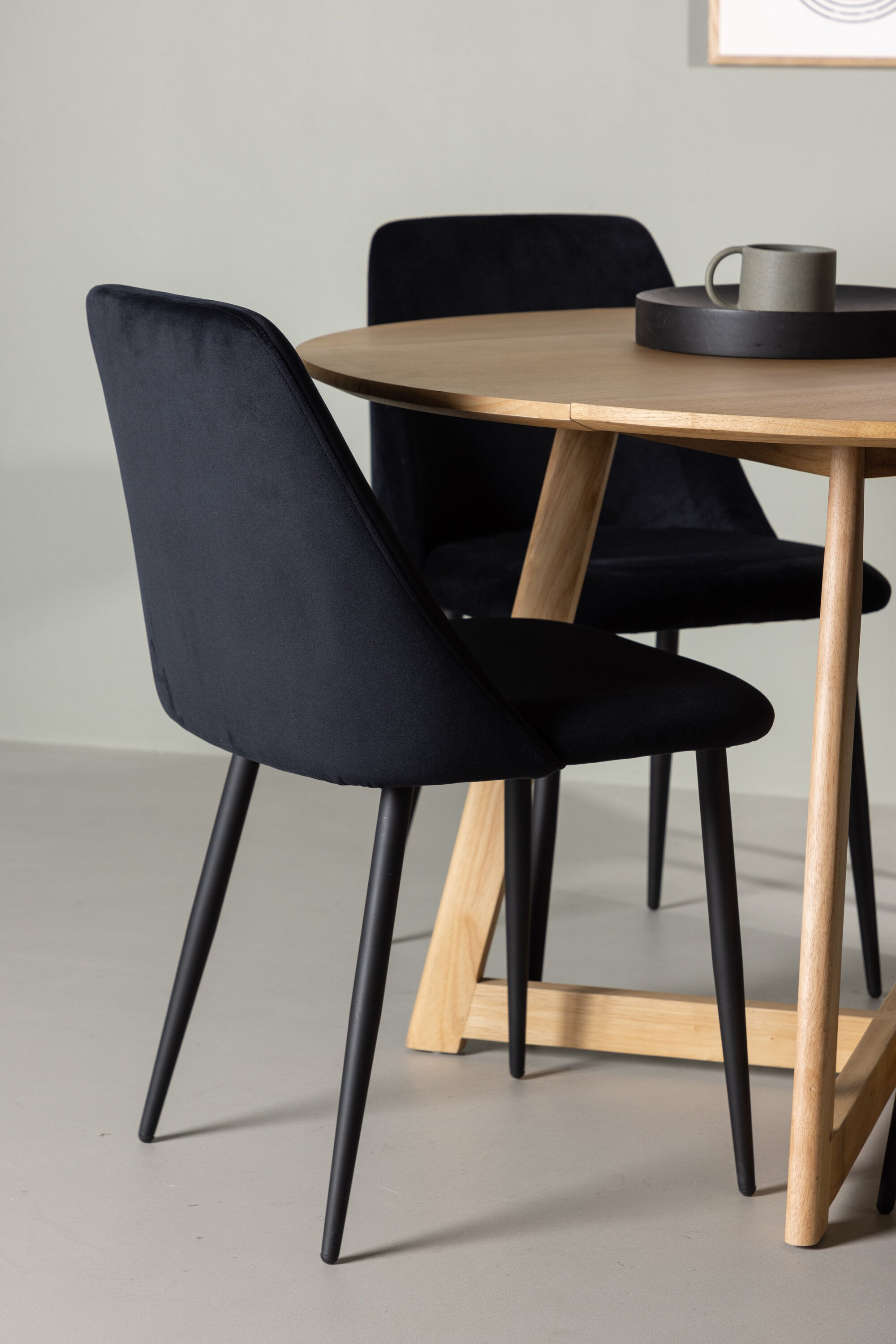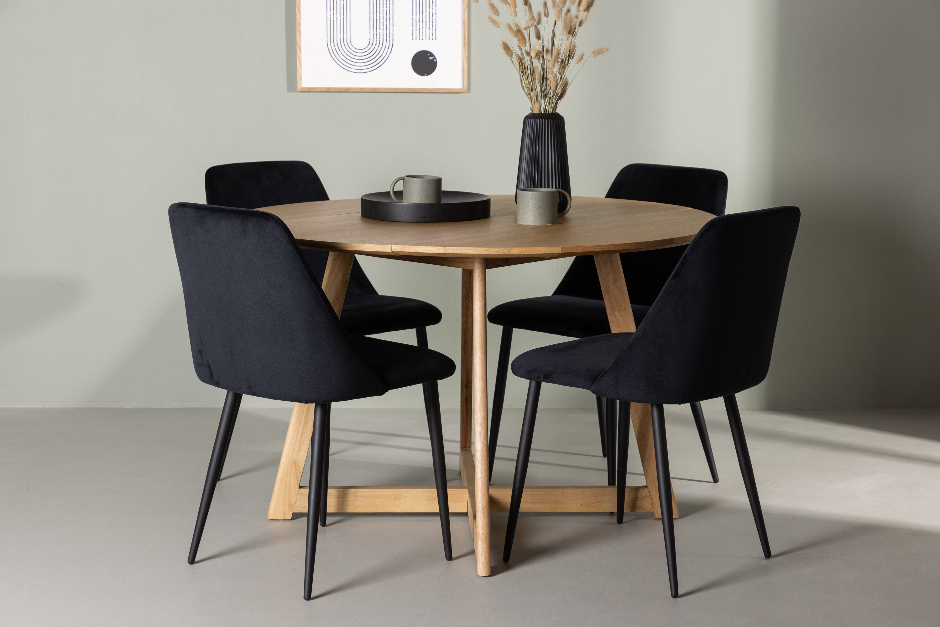 Jídelní stůl Yakidon - Gumové dřevo / Oaklook MDF + Noční jídelní židle - Černá / Black Velvet _4