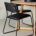 Zde ve fantastické kombinaci s černými jídelními židlemi ze série Kenth. Minimalistický a moderní design židle dodává místnosti vzdušný pocit a zároveň nabízí optimální pohodlí. S černou polyuretanovou kůží a polyesterovým čalouněním dodává Kenth jídelním židlím pocit luxusu a elegance. Můžete se posadit a relaxovat a přitom si vychutnávat lahodné jídlo. Ozdobné a úzké železné nohy dodají vašemu interiéru nejen stabilitu, ale i moderní nádech.