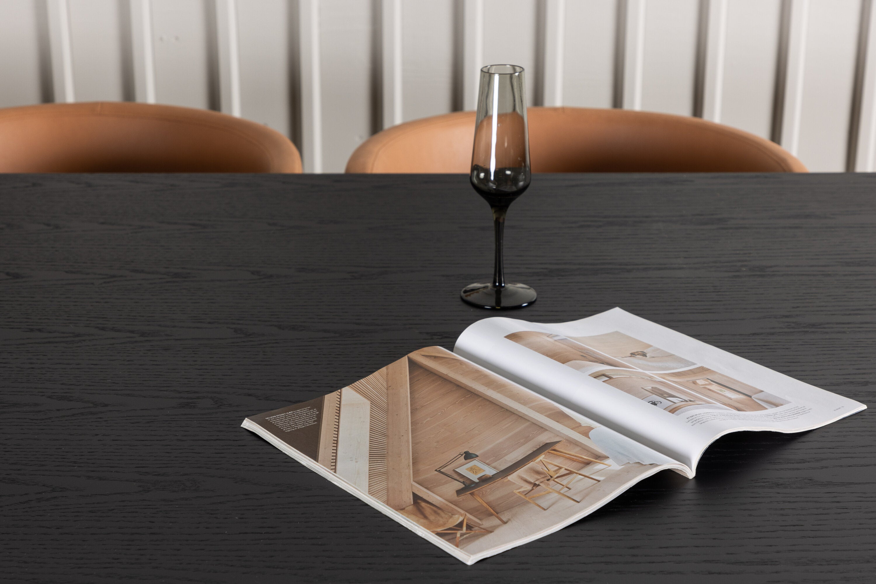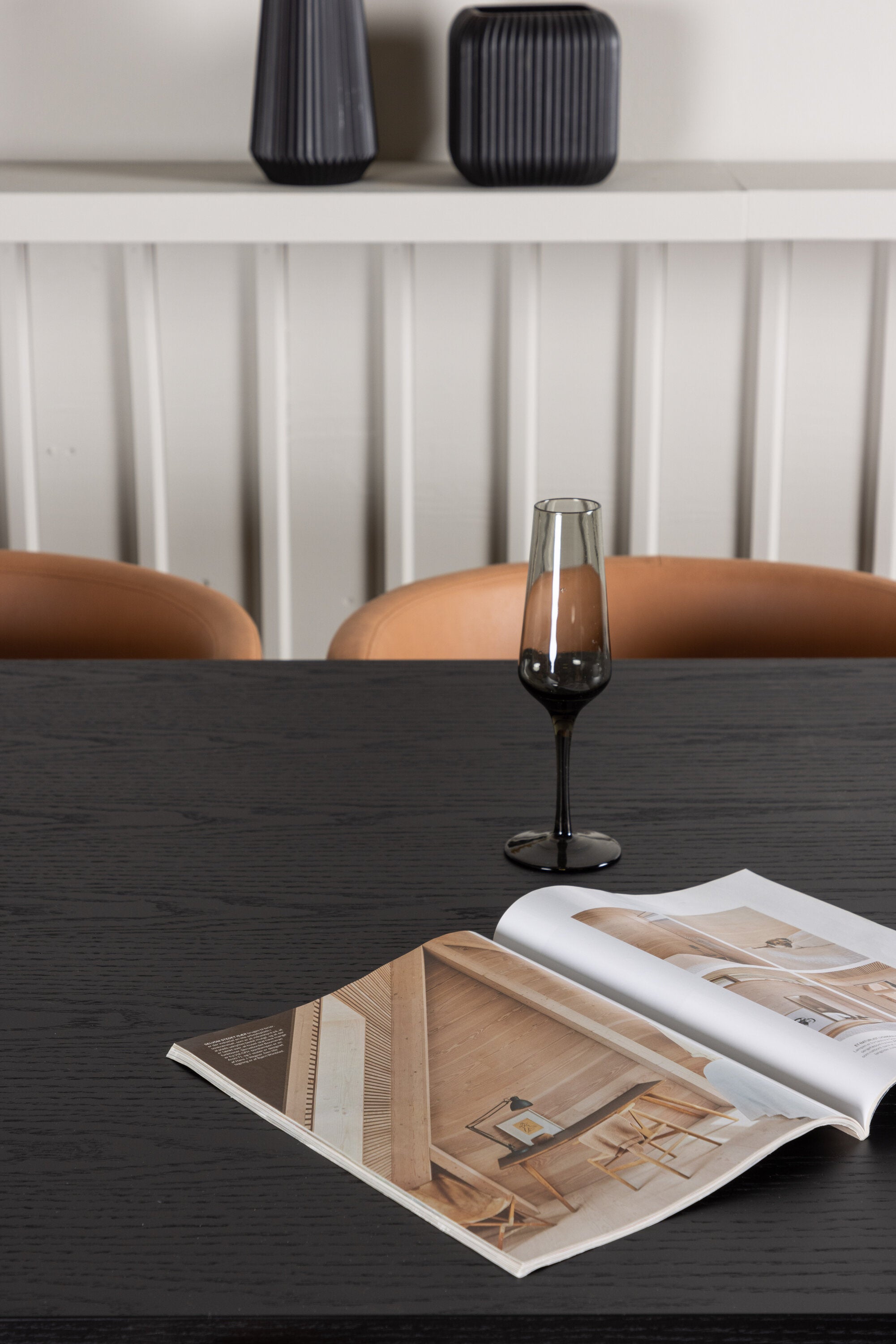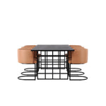 Jídelní stůl Ystad - černá / černá dubová dýha + jídelní židle Simrishman - černá / hnědá TC-látka _6