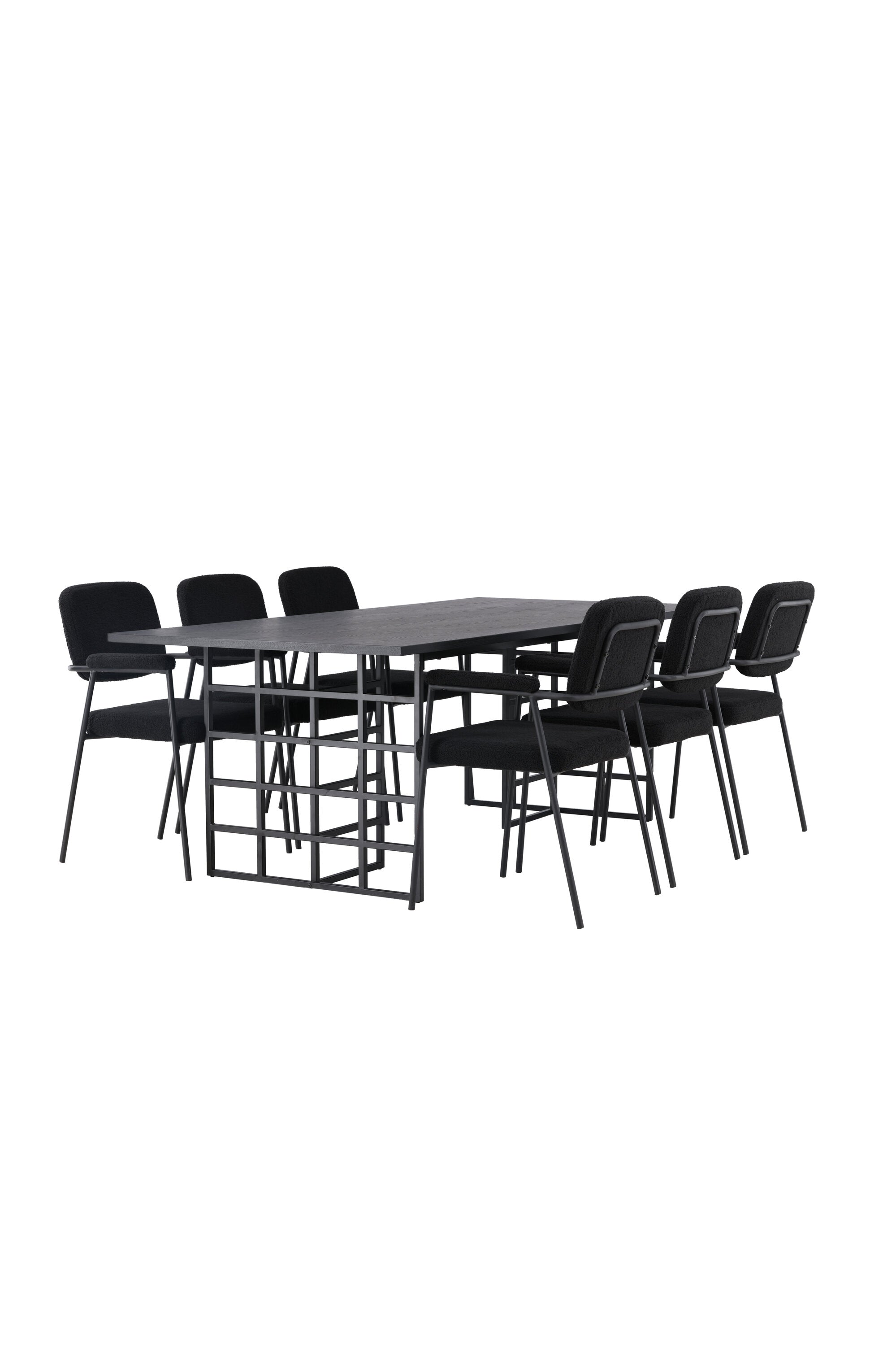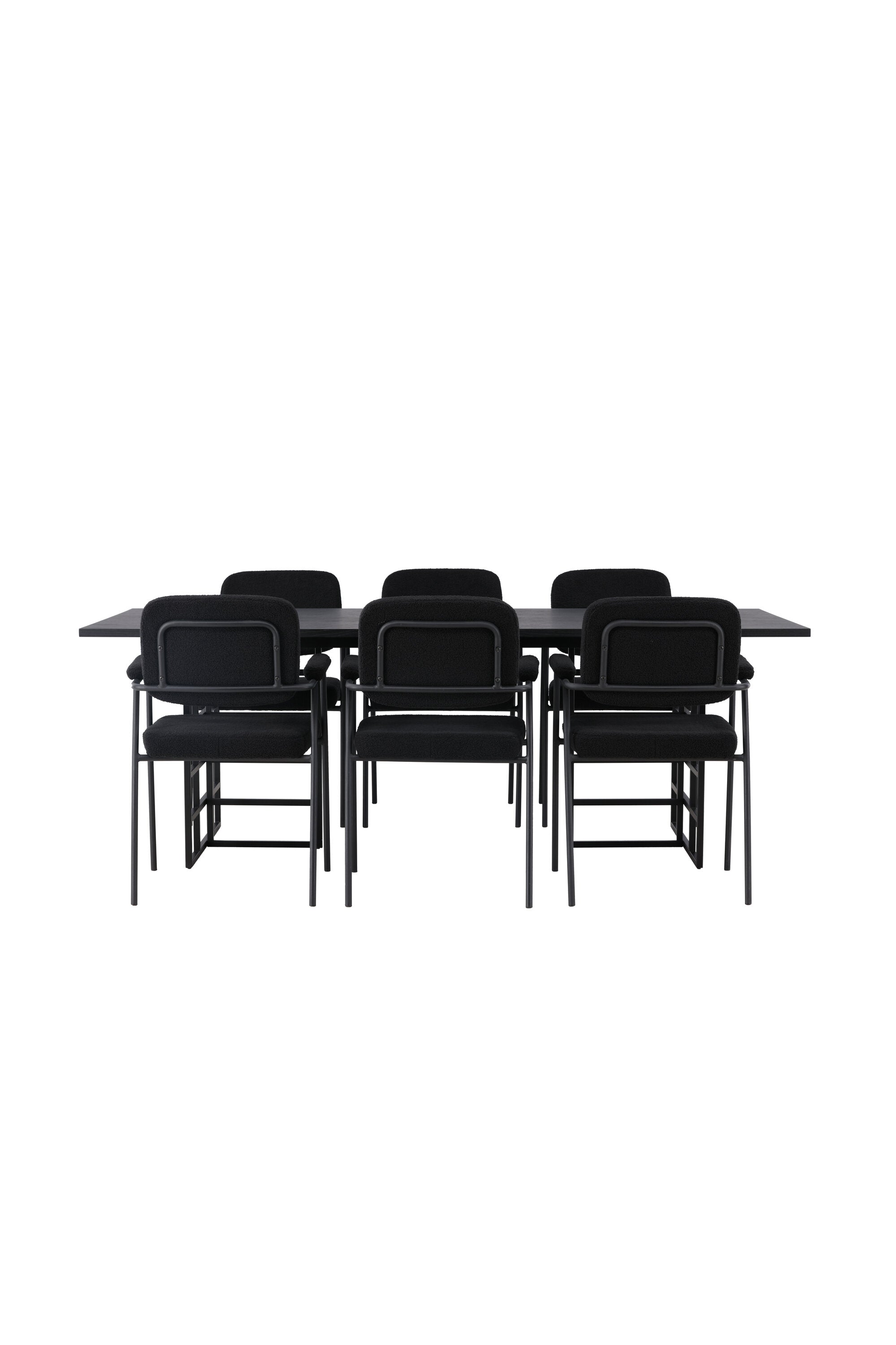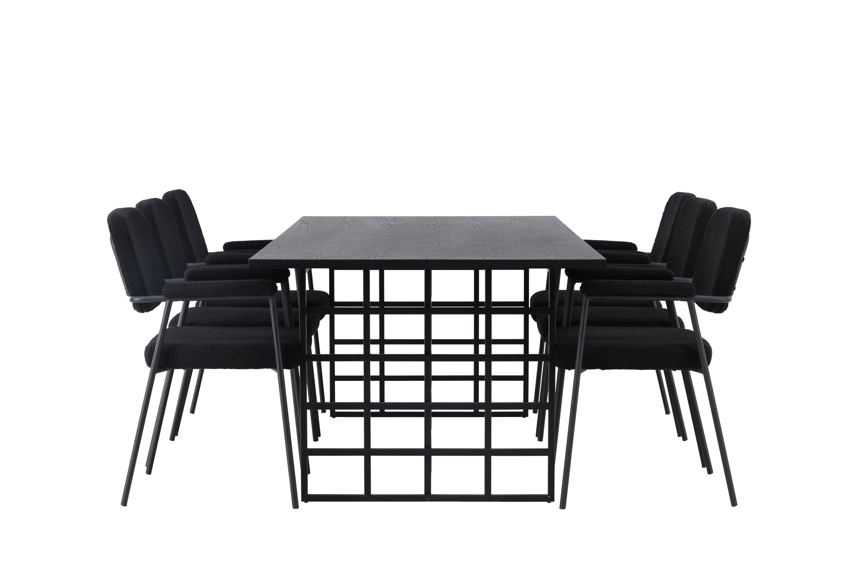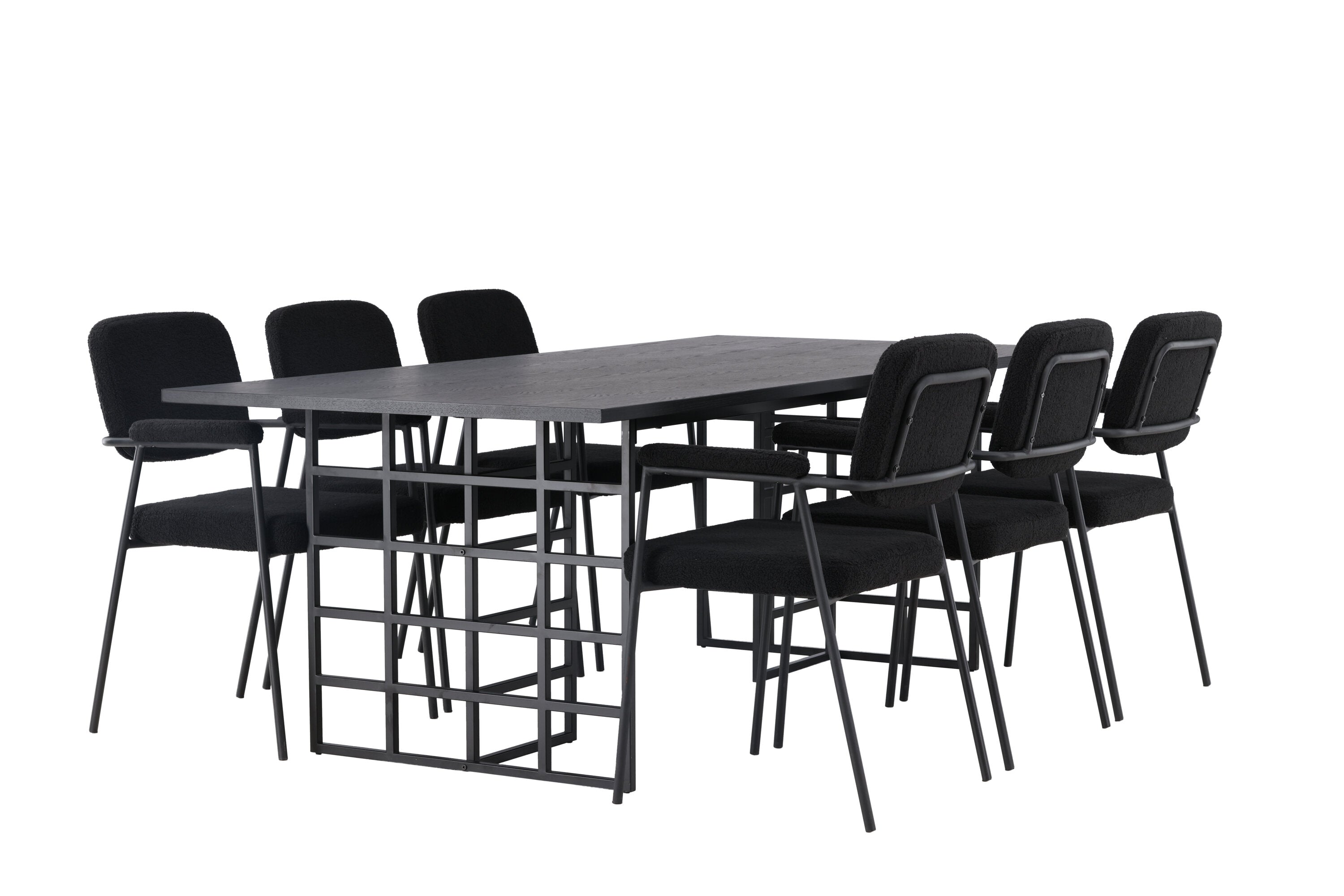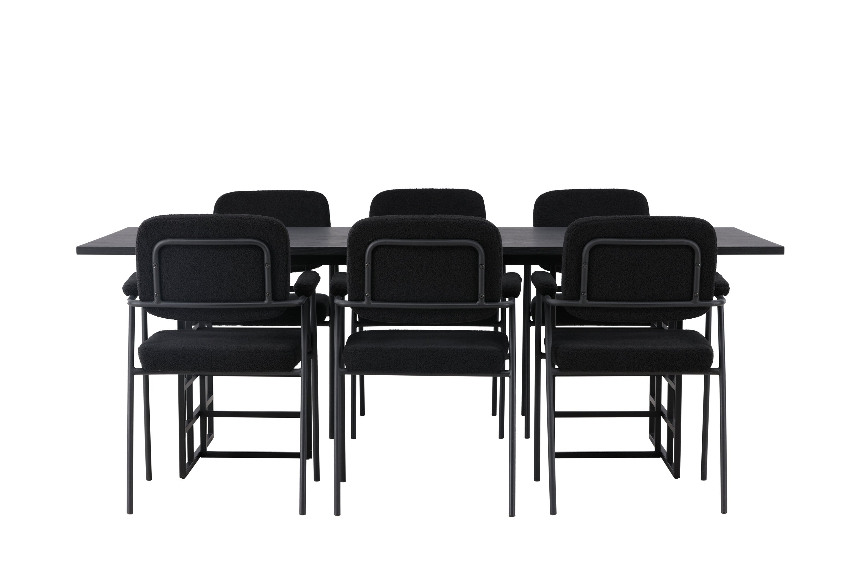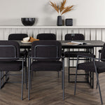Spolu s industriálním jídelním stolem Ystad nabízíme naše černé jídelní židle ze série Yesterday. Tyto židle ve skandinávském designu mají elegantně celočalouněný sedák v černé bouclé tkanině, který poskytuje nejen luxusní pocit, ale také pohodlí světové třídy. Štíhlé nohy židle a integrované područky v černém kovu dodávají židlím moderní a elegantní profil, který dokonale doplňuje design stolu.