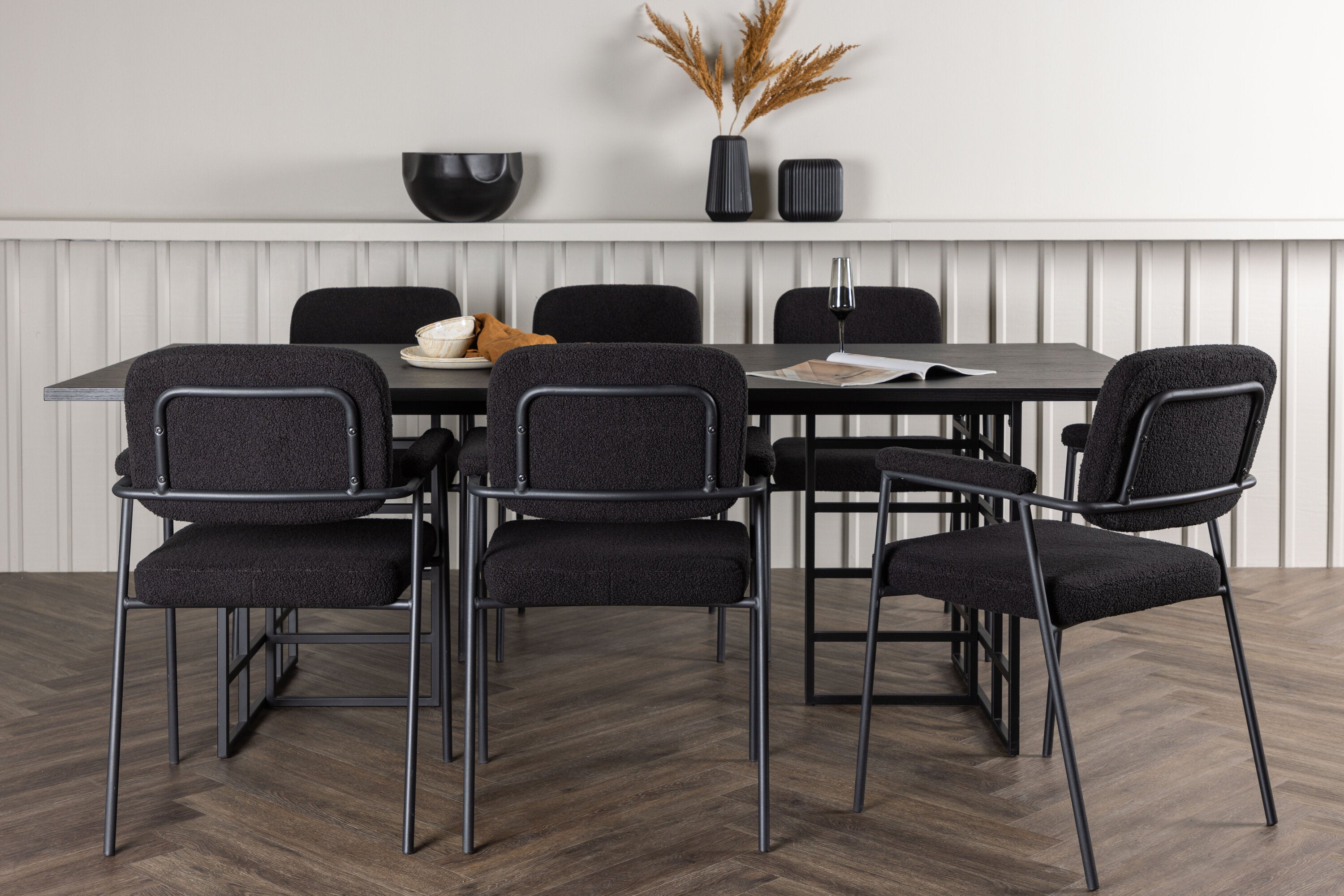 Jídelní stůl Ystad - černá / černá dubová dýha + jídelní židle Yesterday - černá / černá Boucle _6