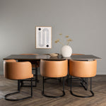 Opěradlo má zaoblený tvar, který poskytuje extra podporu a dokonale doplňuje moderní estetiku jídelního stolu. S minimalistickým černým ocelovým rámem je židle Simrishamn sama o sobě uměleckým dílem a poskytuje elegantní kontrast k designu jídelního stolu. Co víc si přát? Tento jídelní set má vše!