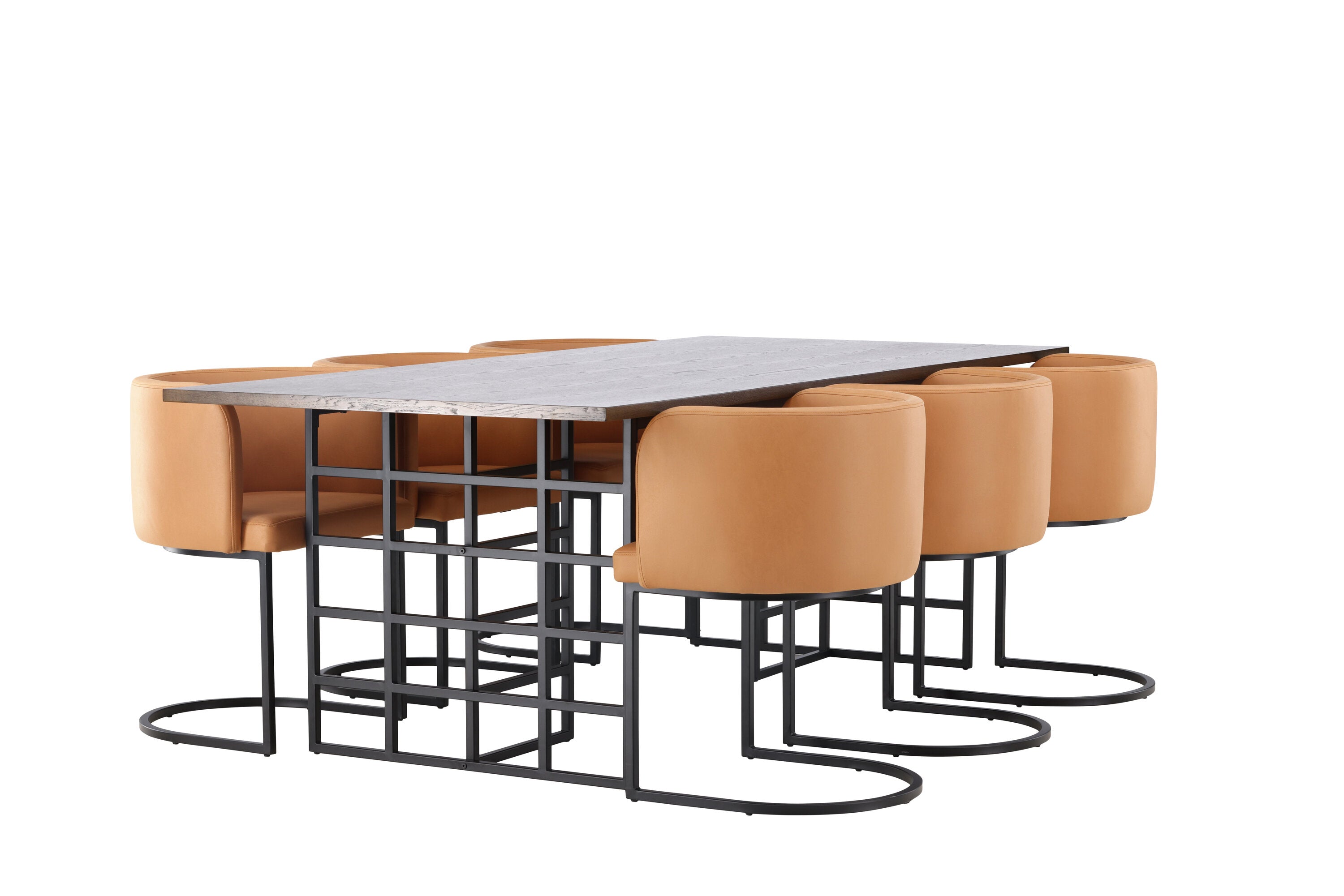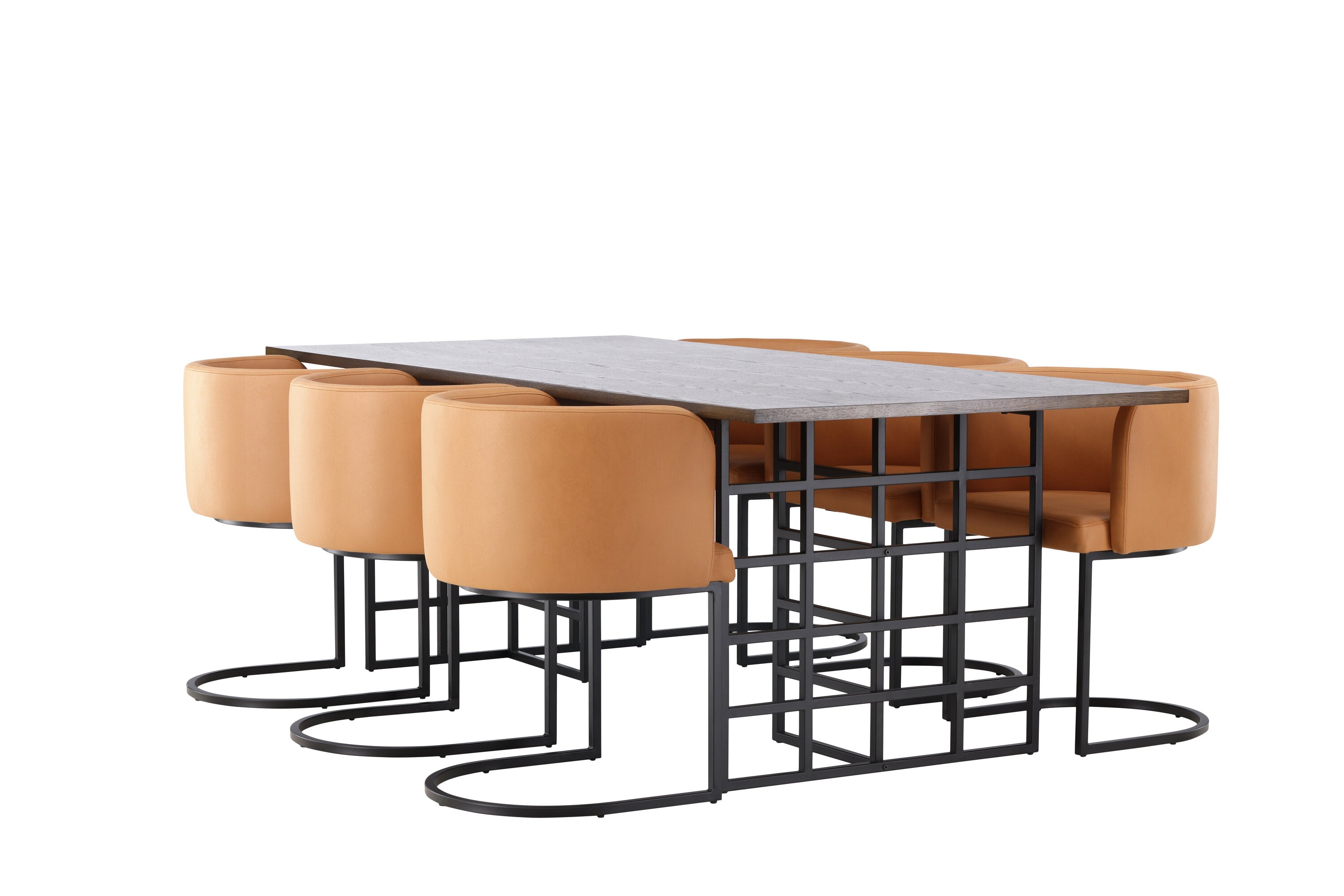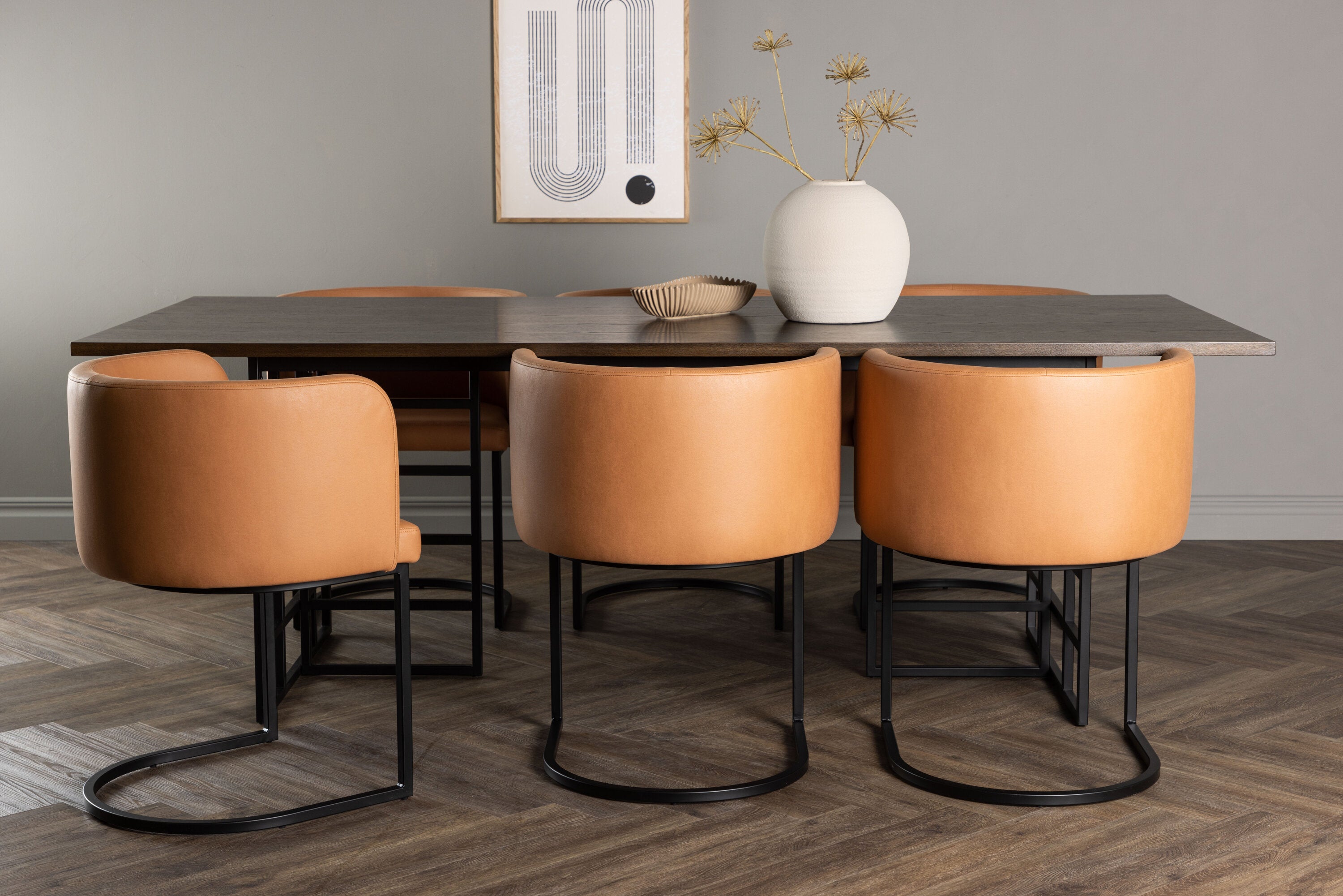 Jídelní stůl Ystad – černá / mocca dubová dýha + jídelní židle Simrishman – černá / hnědá TC-látka _6
