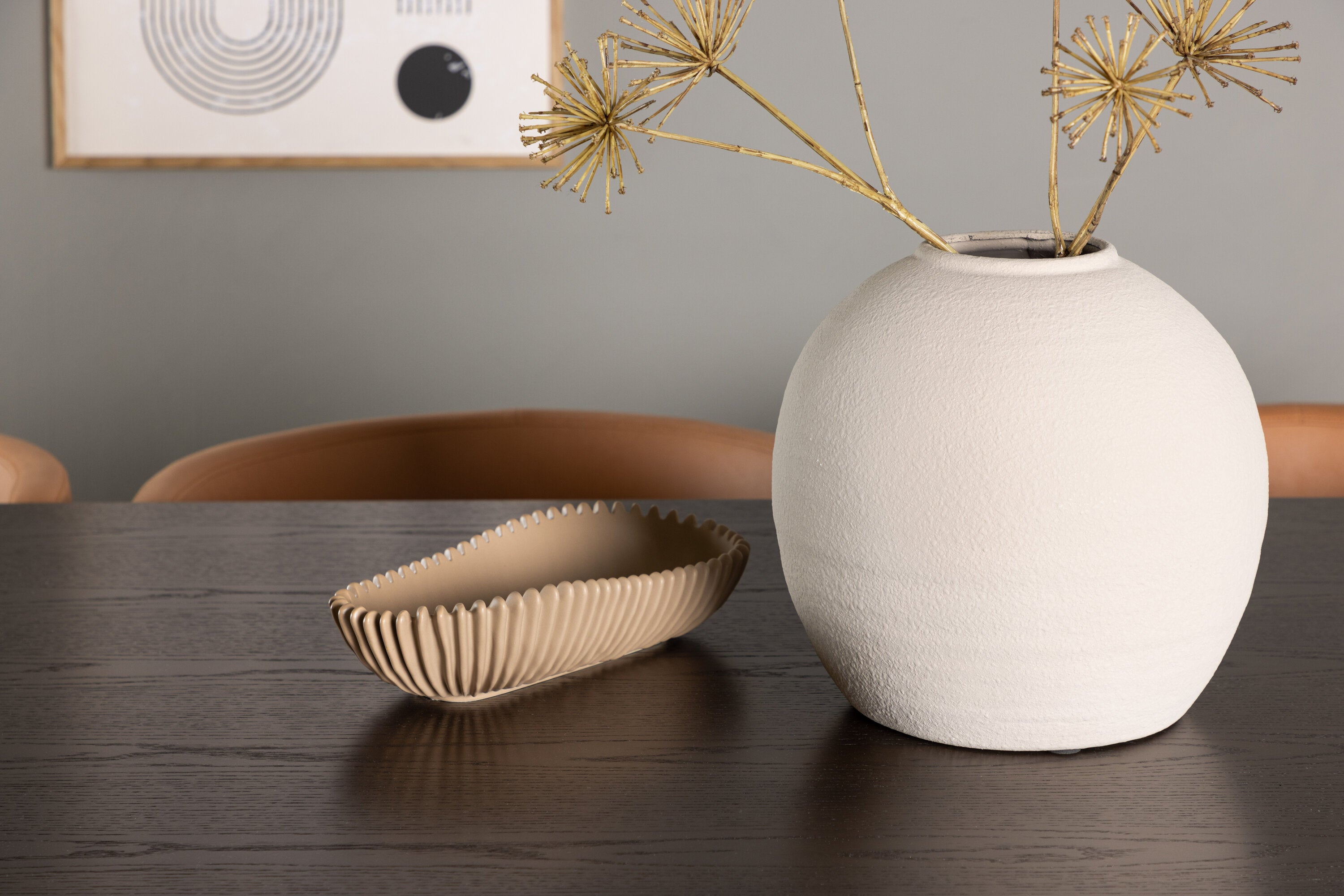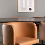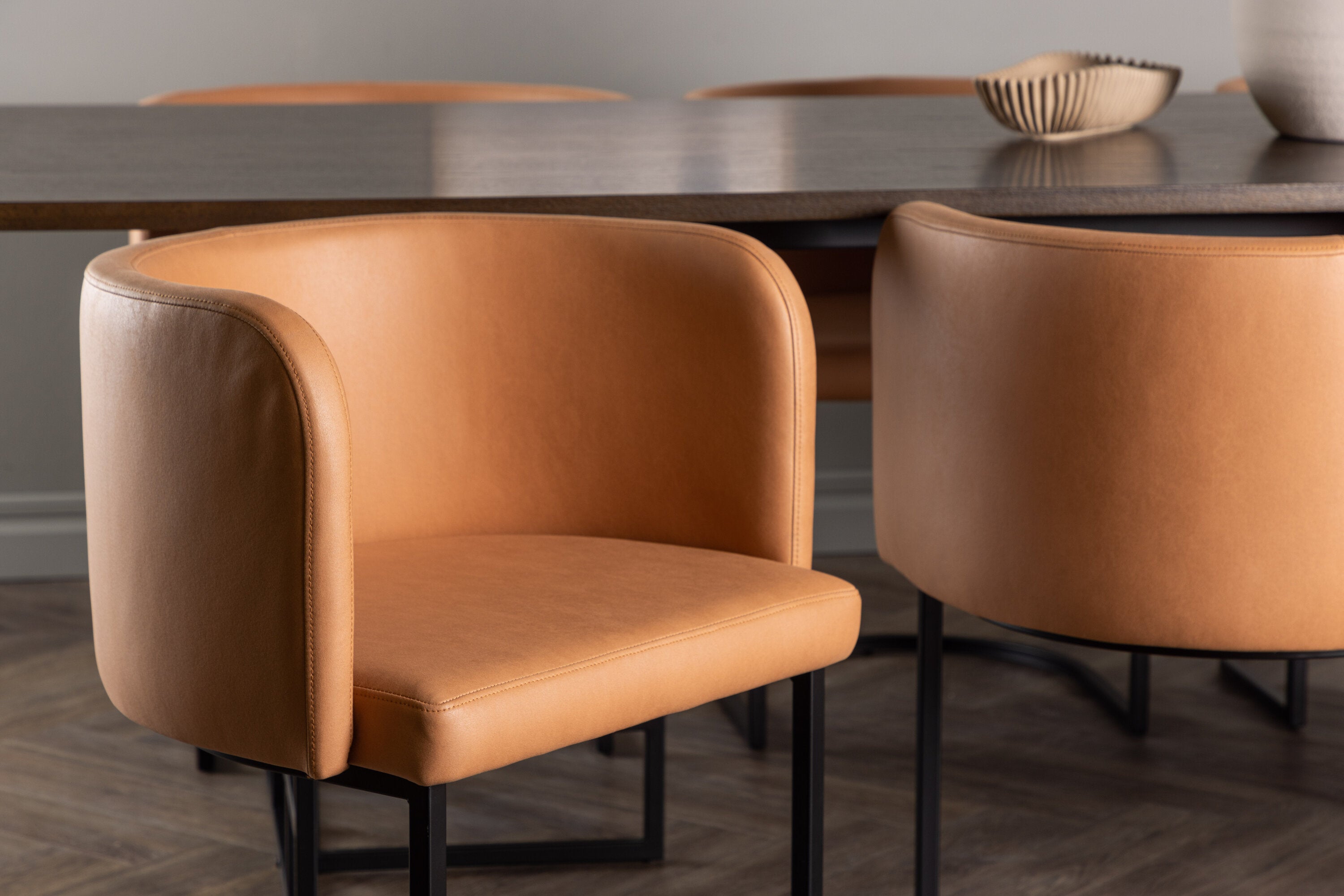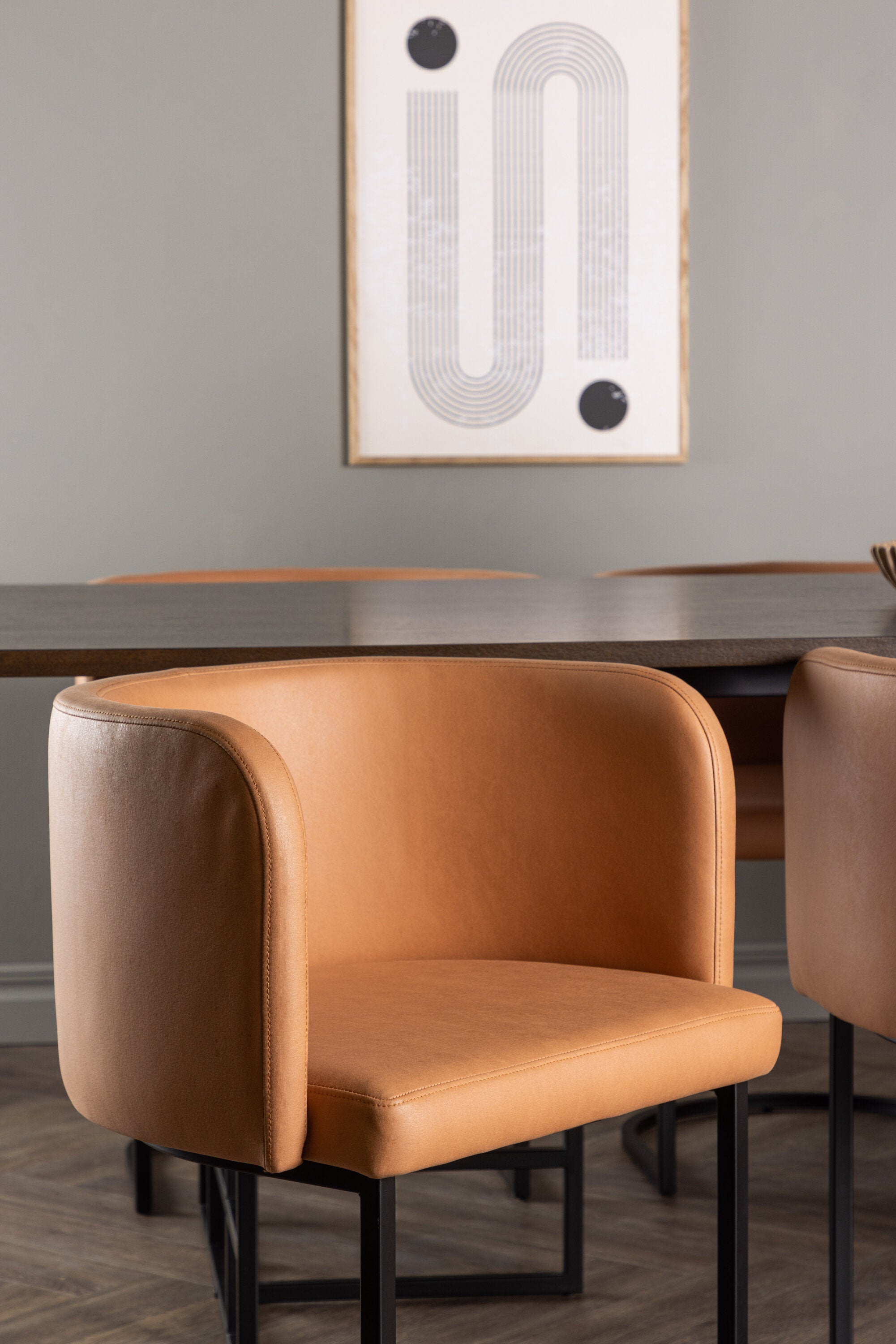 Zde v kombinaci s našimi pohodlnými jídelními židlemi v moderním stylu ze série Simrishamn. Tato židle je kombinací stylu a pohodlí a bude luxusním detailem kolem vašeho jídelního stolu. Celočalouněný sedák židle, oblečený do elegantní hnědé látky TC, nabízí měkké a pohodlné místo k sezení při dlouhých jídlech naplněných smíchem a konverzací.
