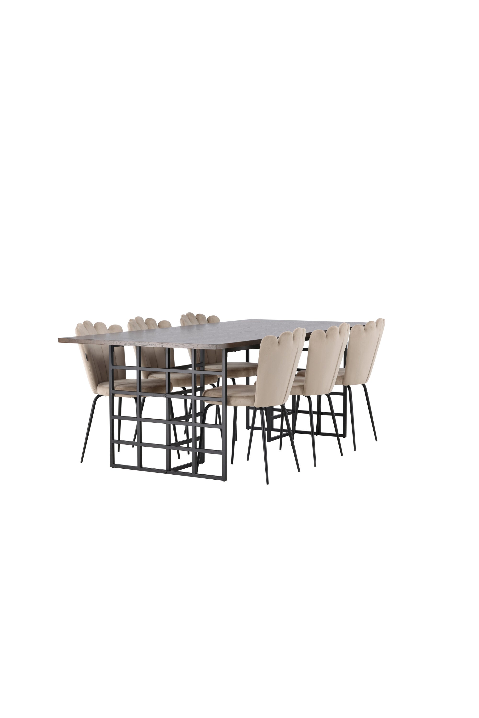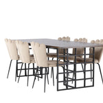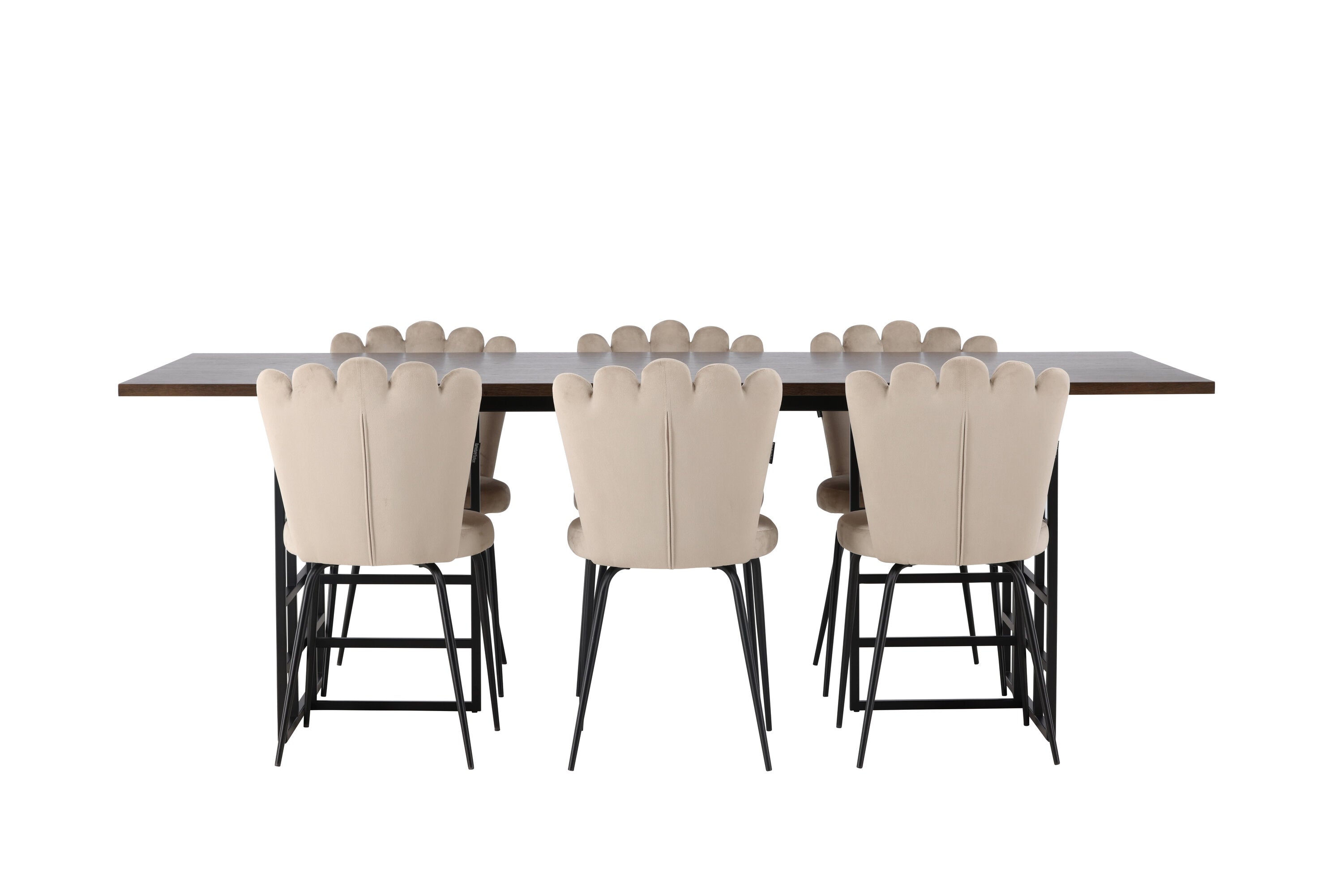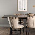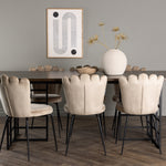 Spolu s našimi sametovými jídelními židlemi ze série Limhamn se tato jídelní souprava stává kompletní. S dekorativním opěradlem ve tvaru mušle a elegantním dekorativním prošíváním nabízí tato židle stylový a útulný pocit. Zaoblený sedák je čalouněný vkusnou béžovou sametovou látkou, která dodává extra nádech luxusu. Kovové nohy s černým práškovým nástřikem poskytují nejen stabilitu, ale také vytvářejí elegantní kontrast k elegantní látce.