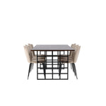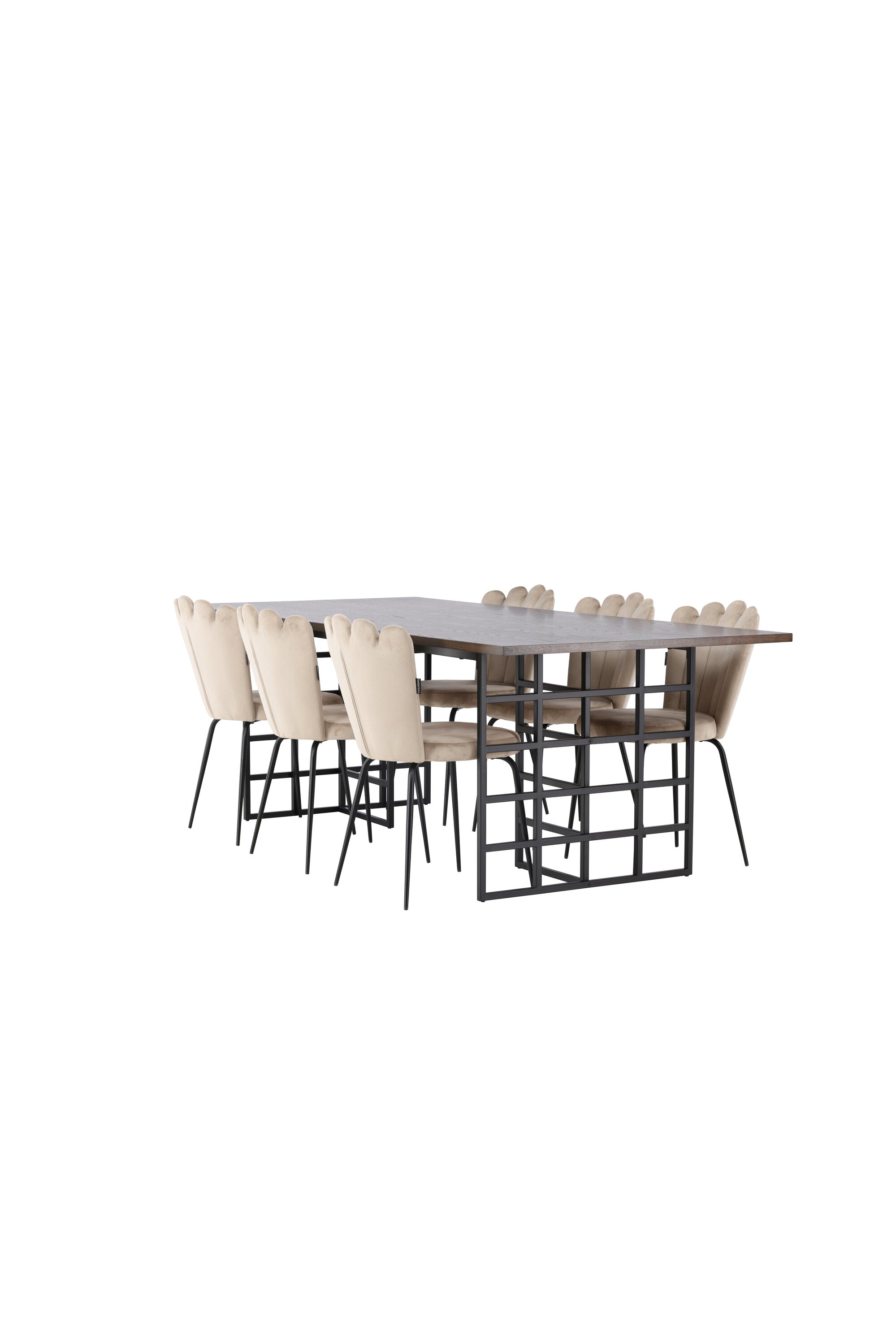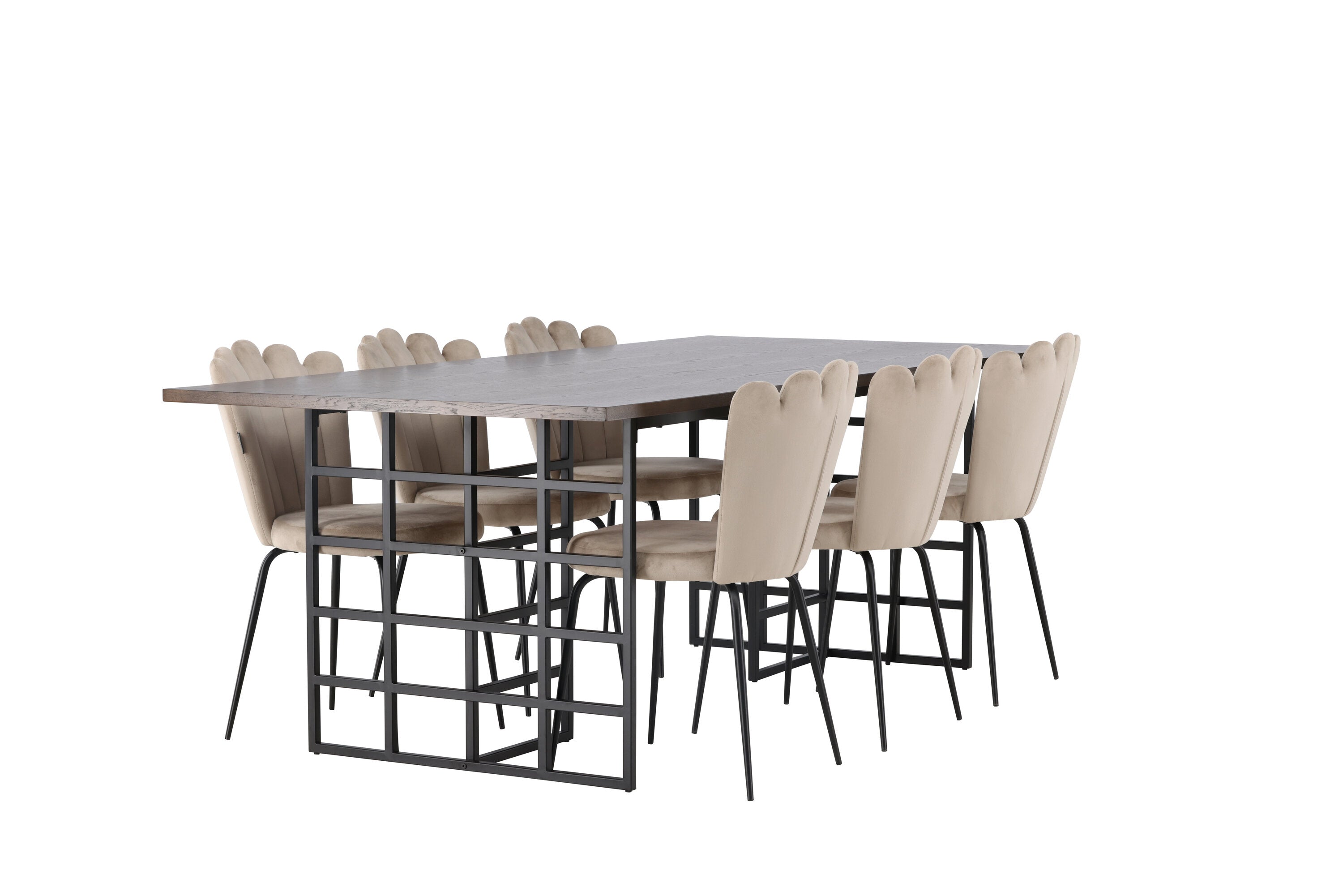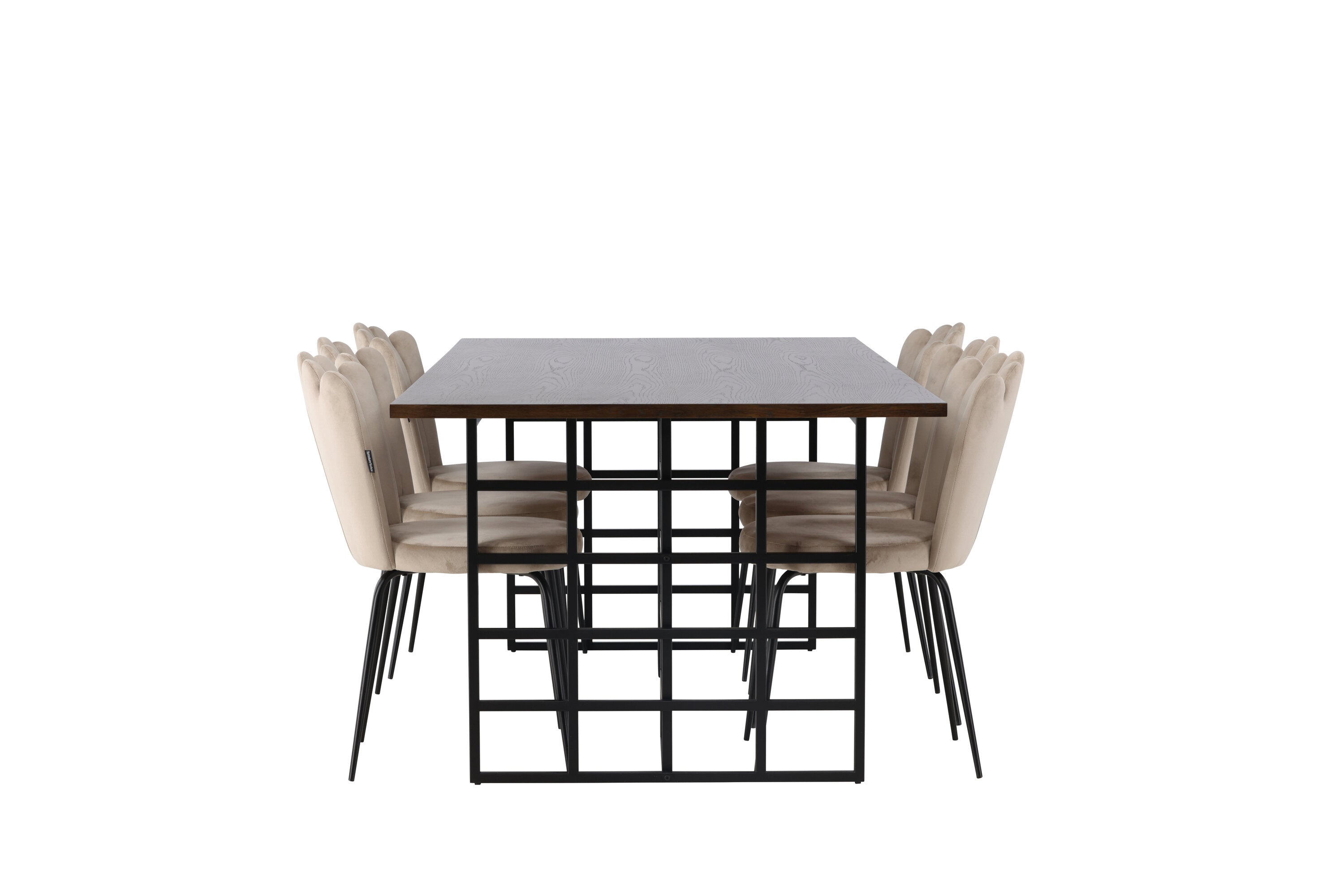 Jídelní stůl Ystad – černá / mocca dubová dýha + židle Limhamn Light – černá / béžová sametová _6