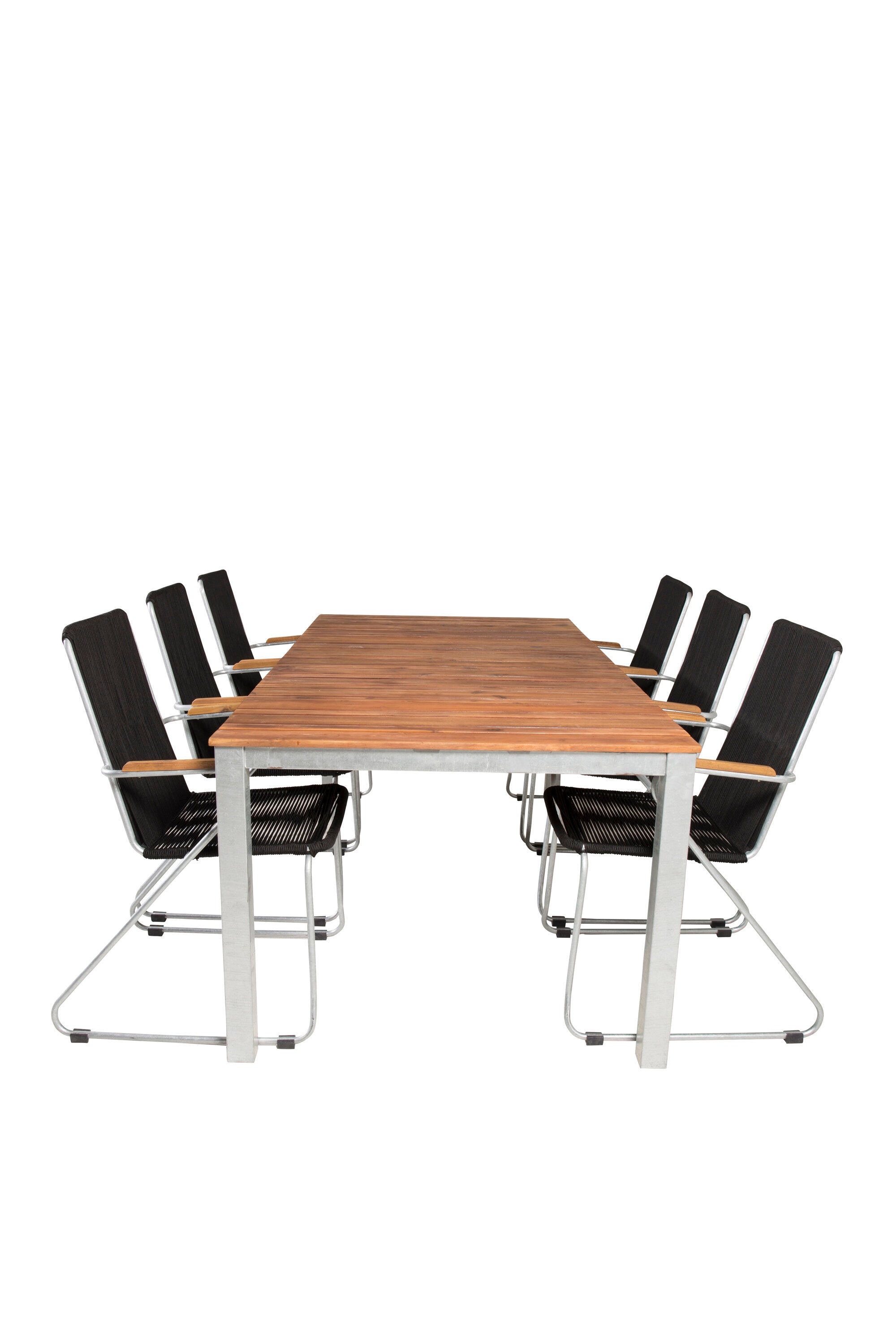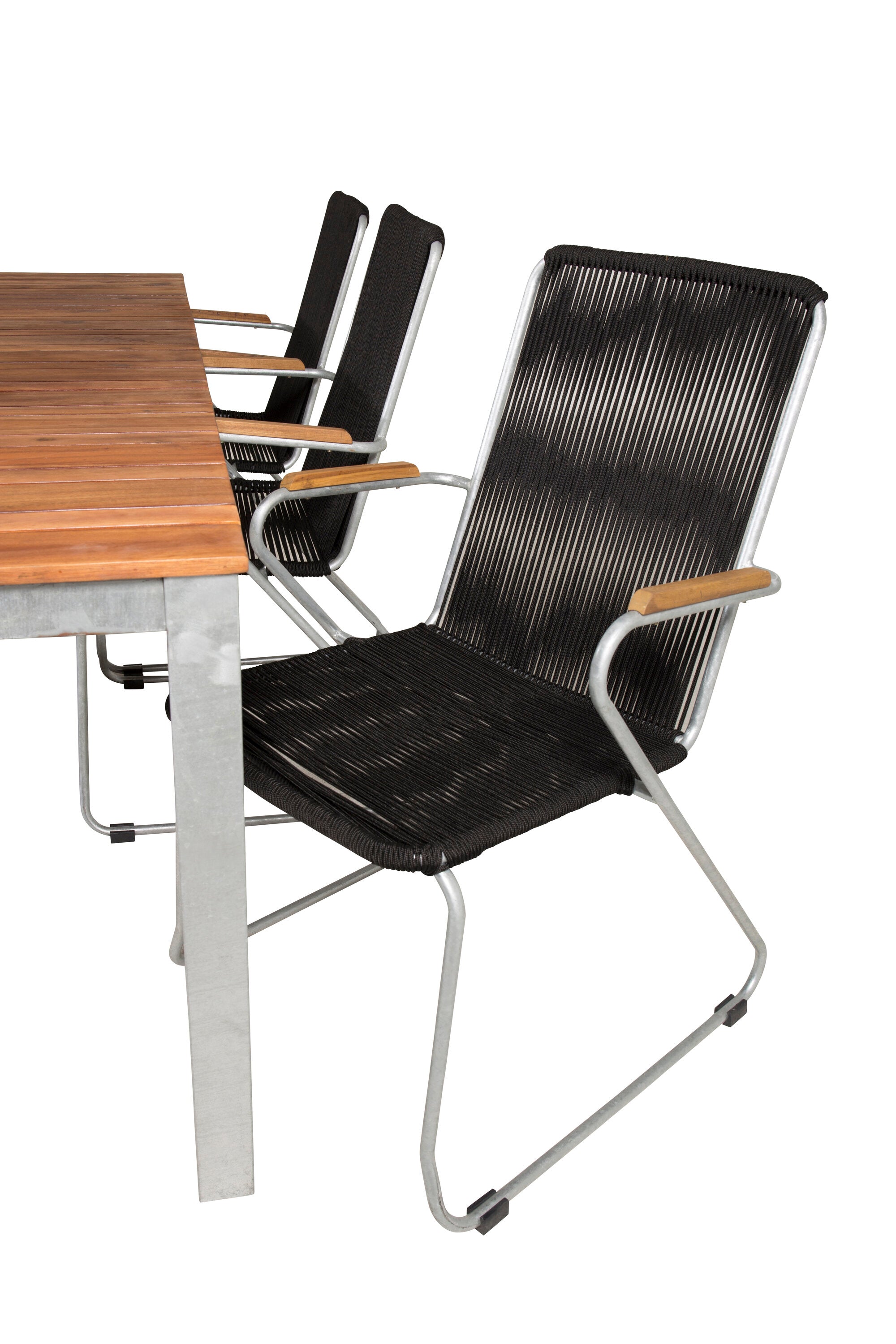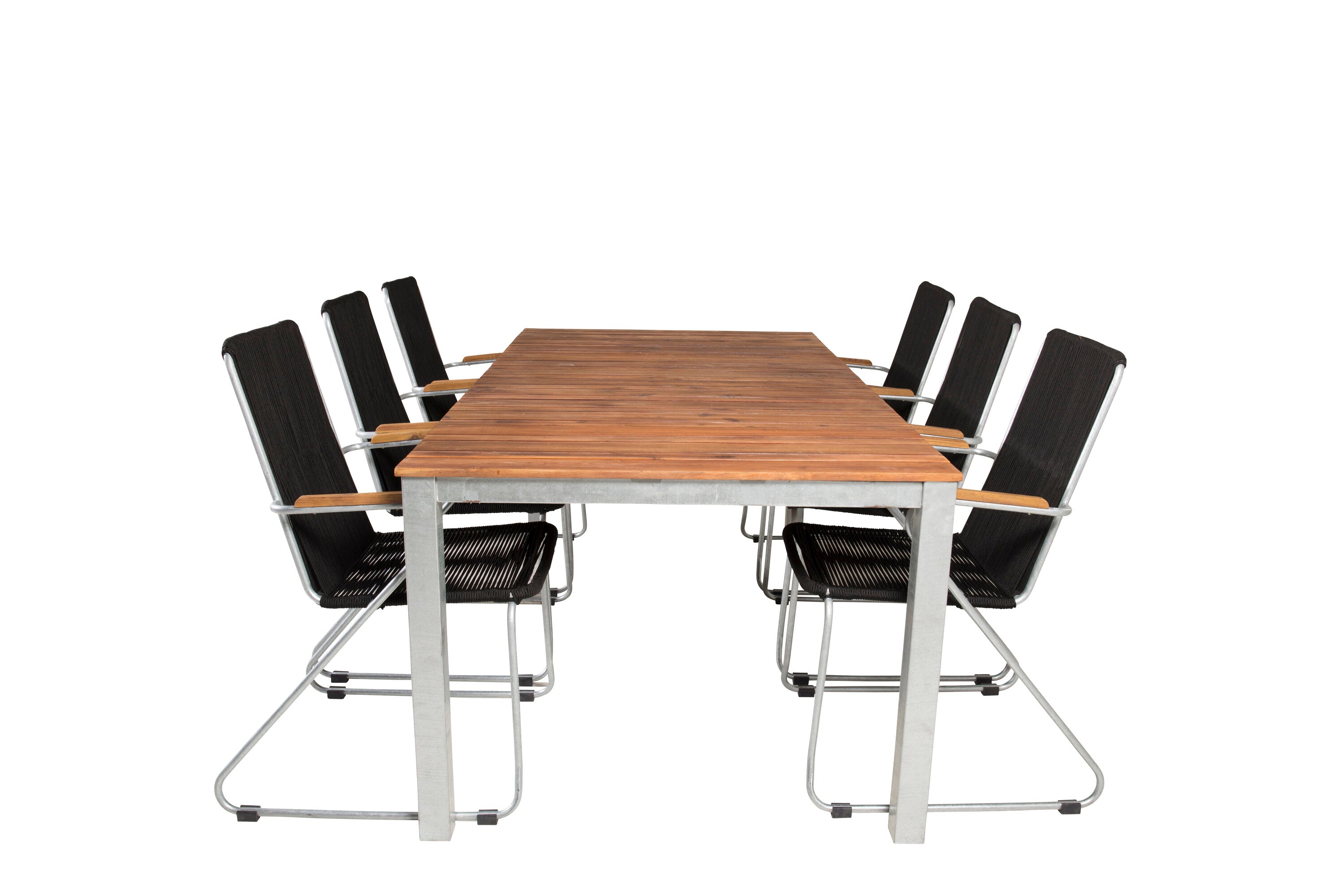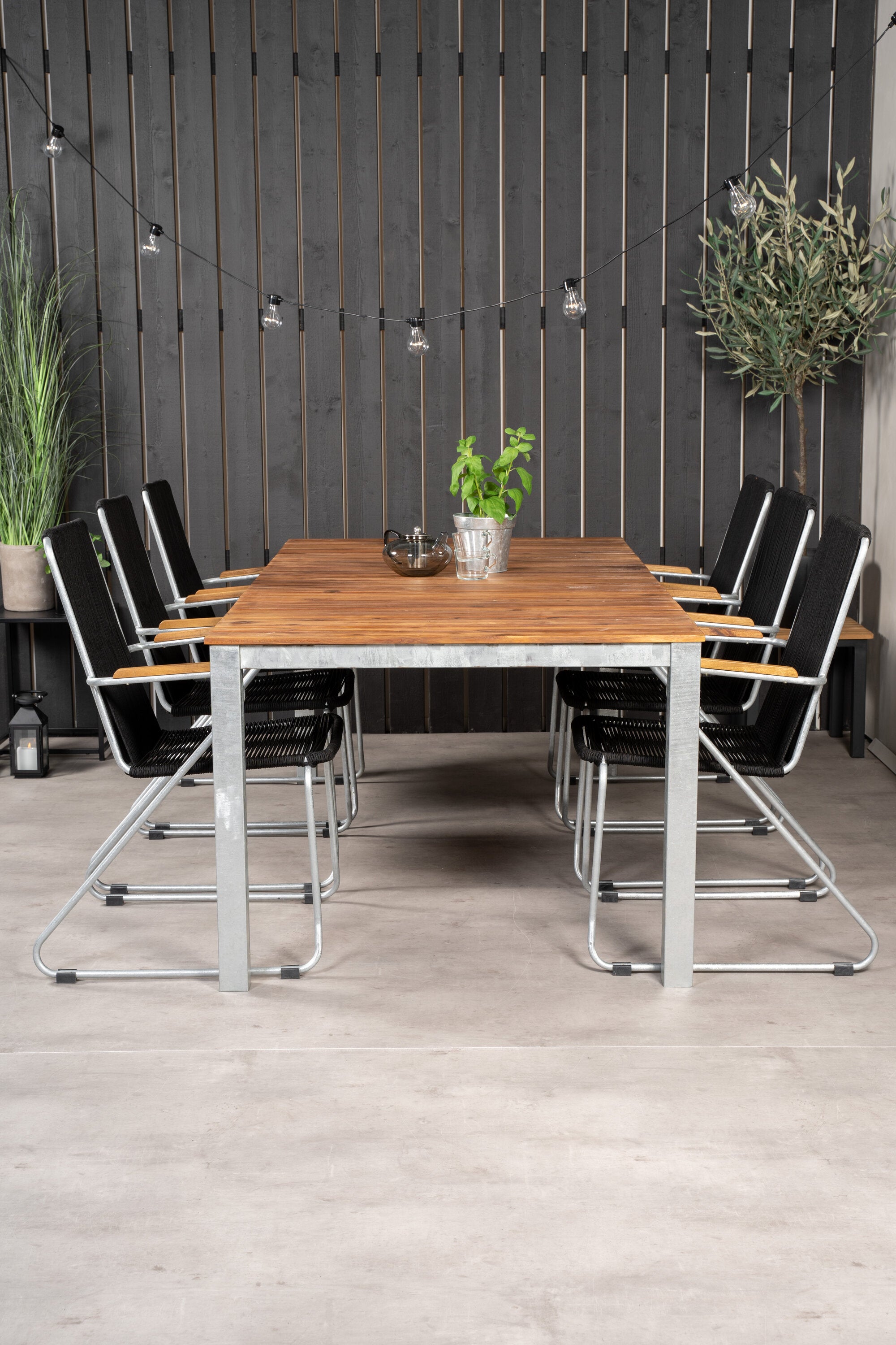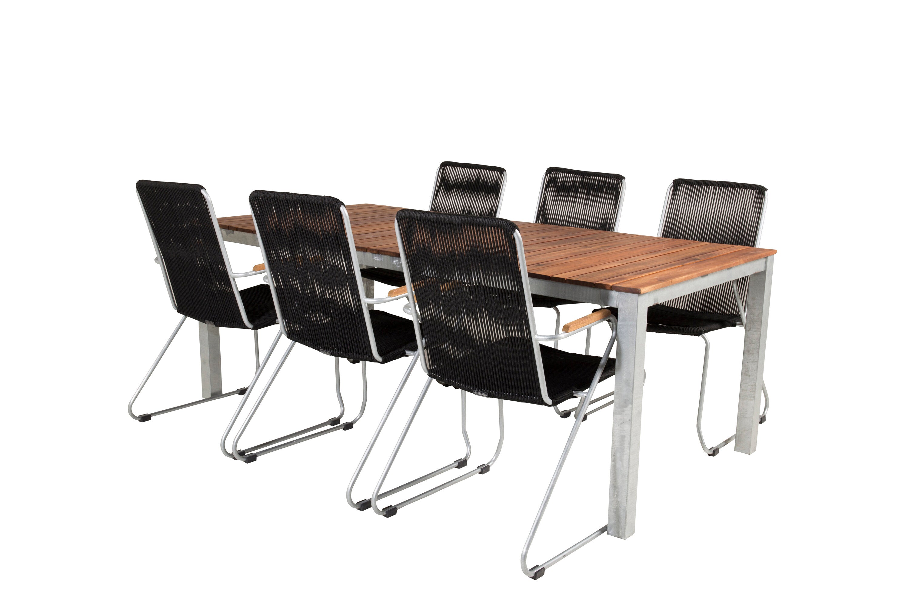 Jídelní stůl Zenia 200*100 - křeslo z akácie / zink+bois - zinek / černé lano / A