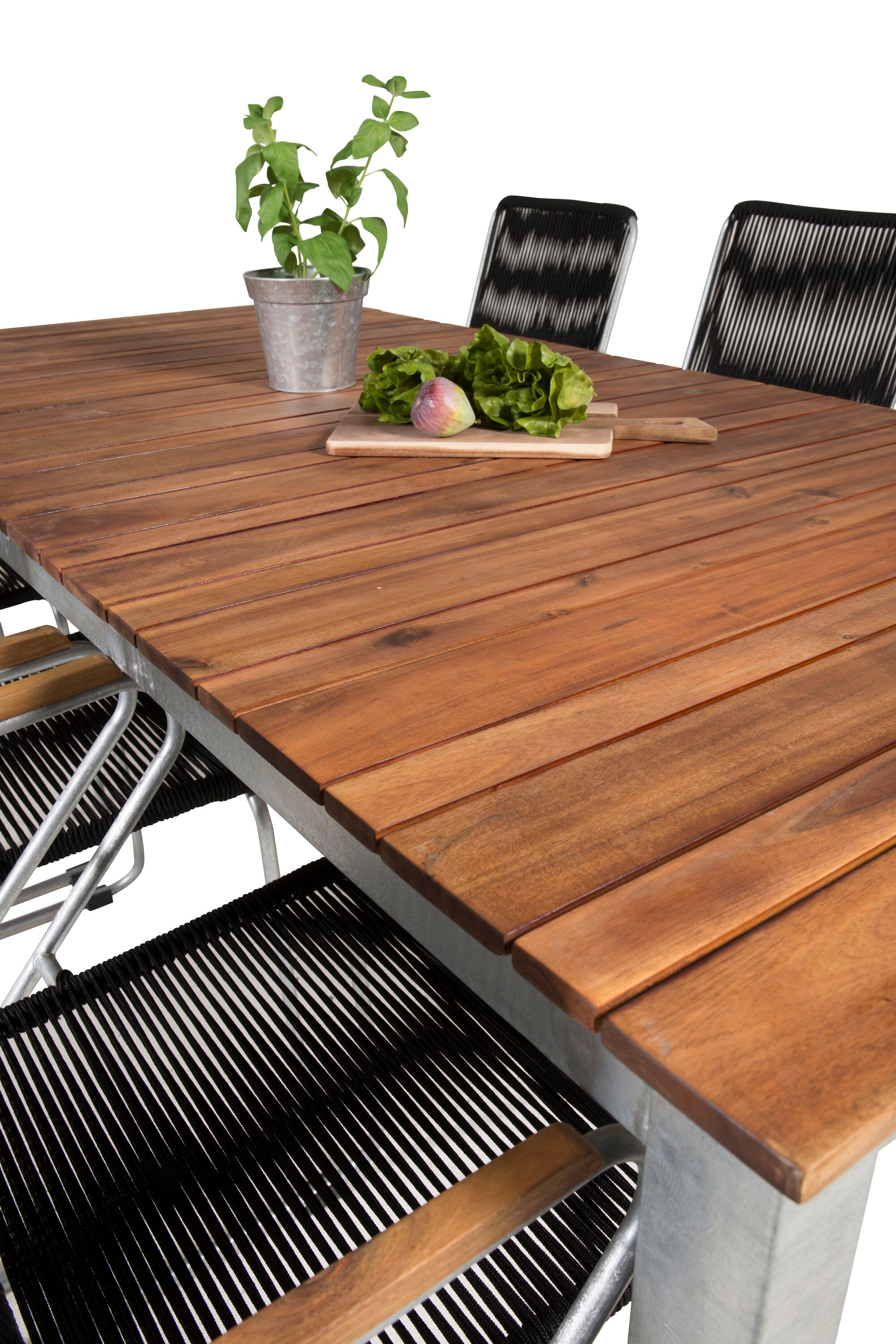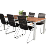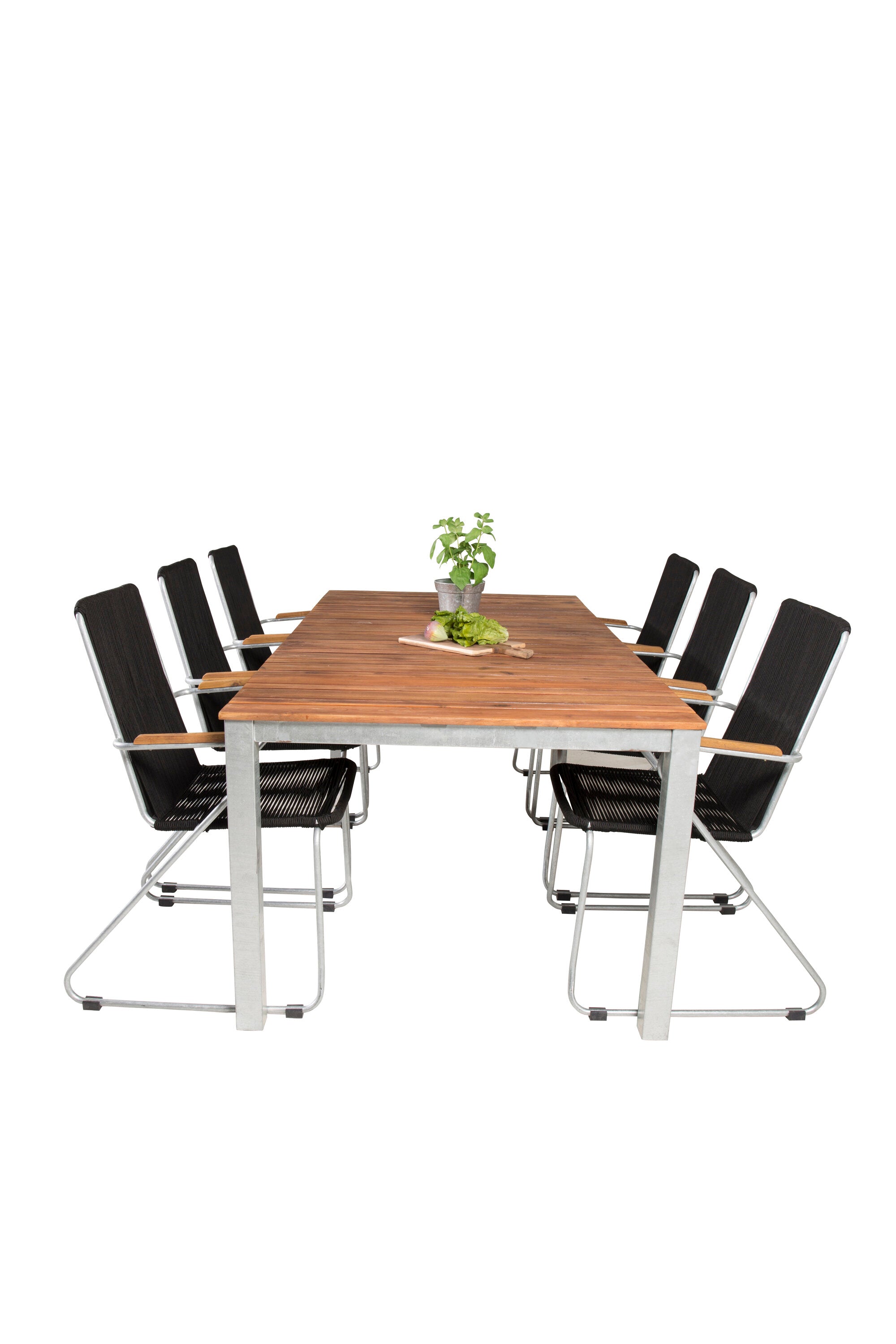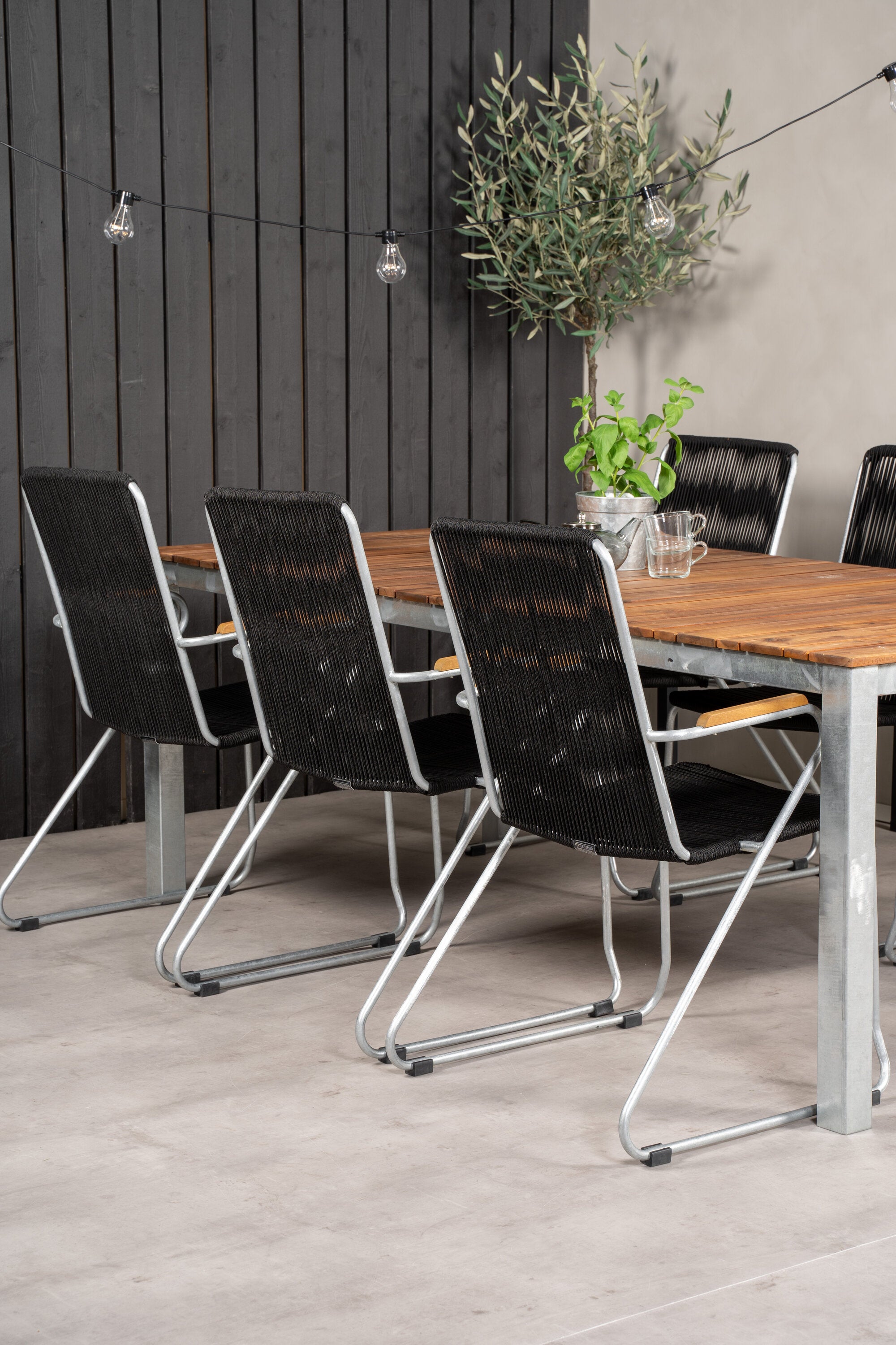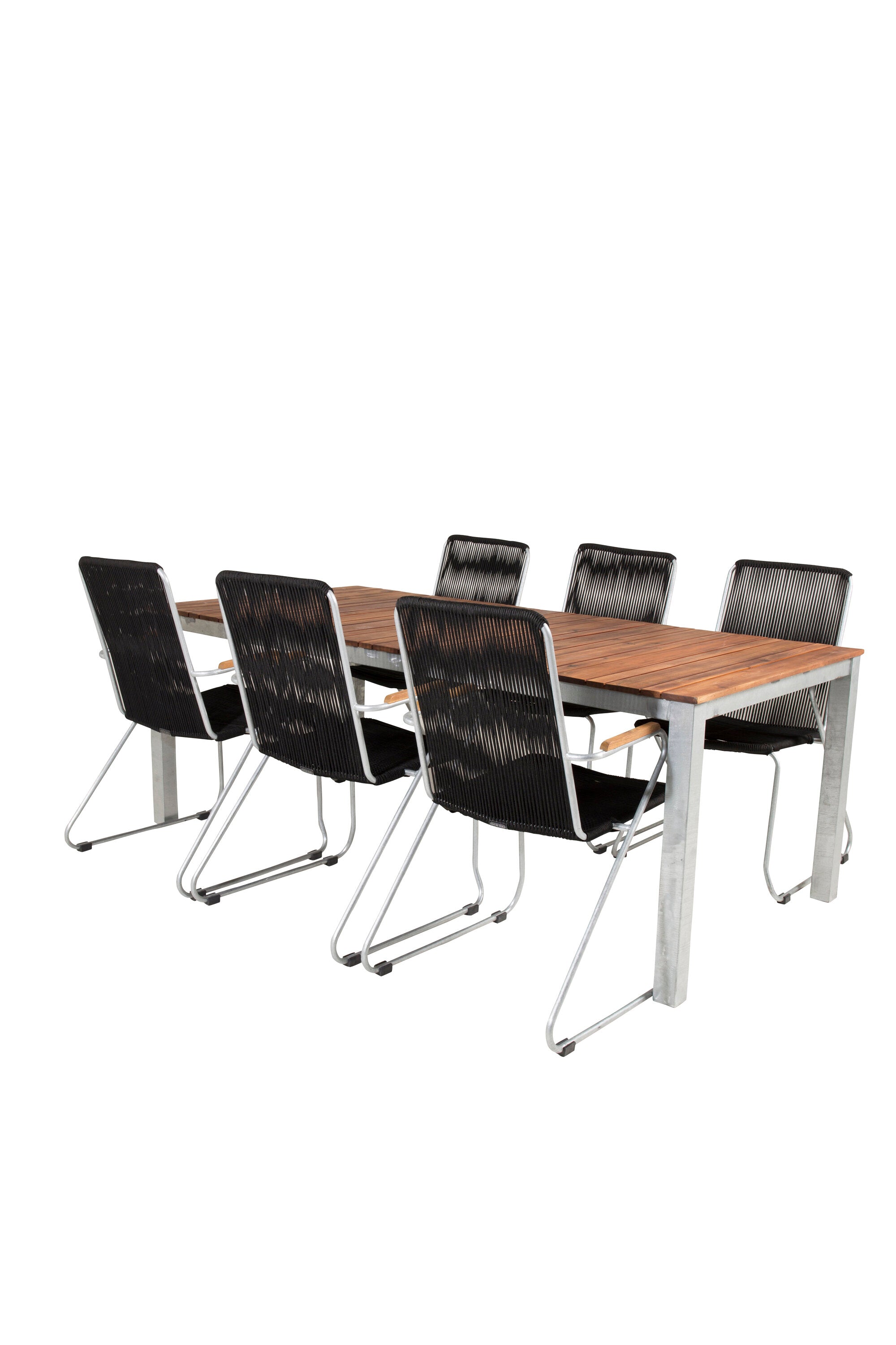 Jídelní stůl Zenia 200*100 - křeslo z akácie / zink+bois - zinek / černé lano / A