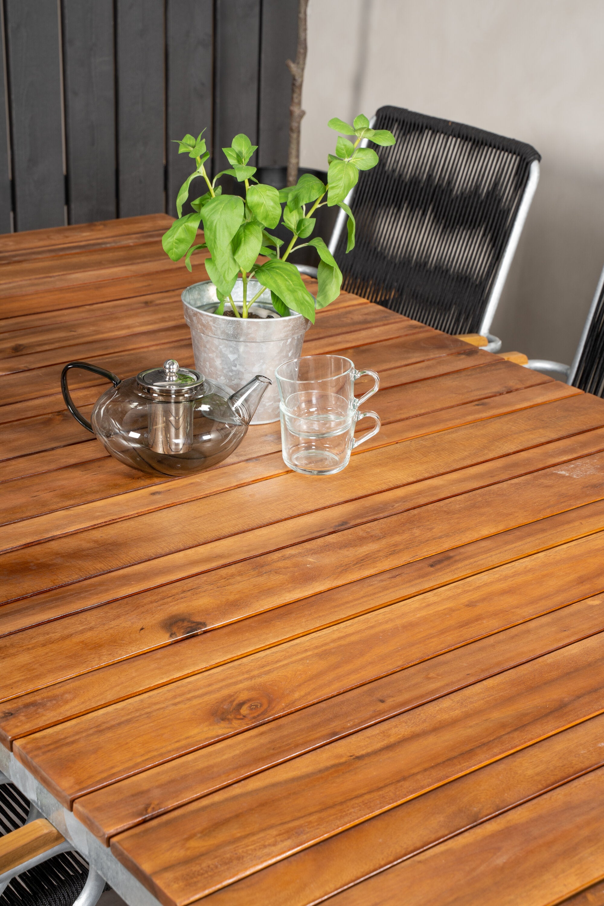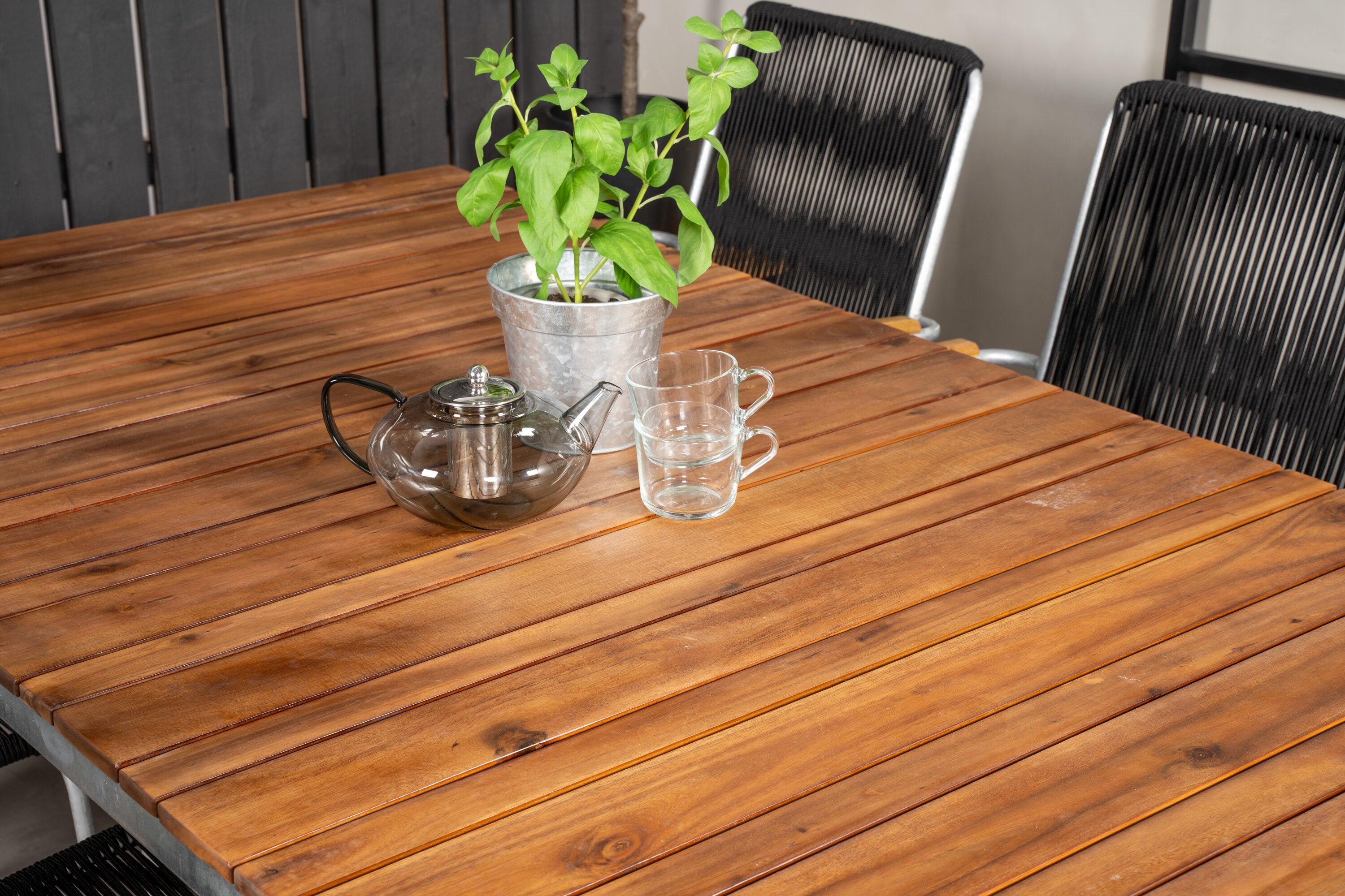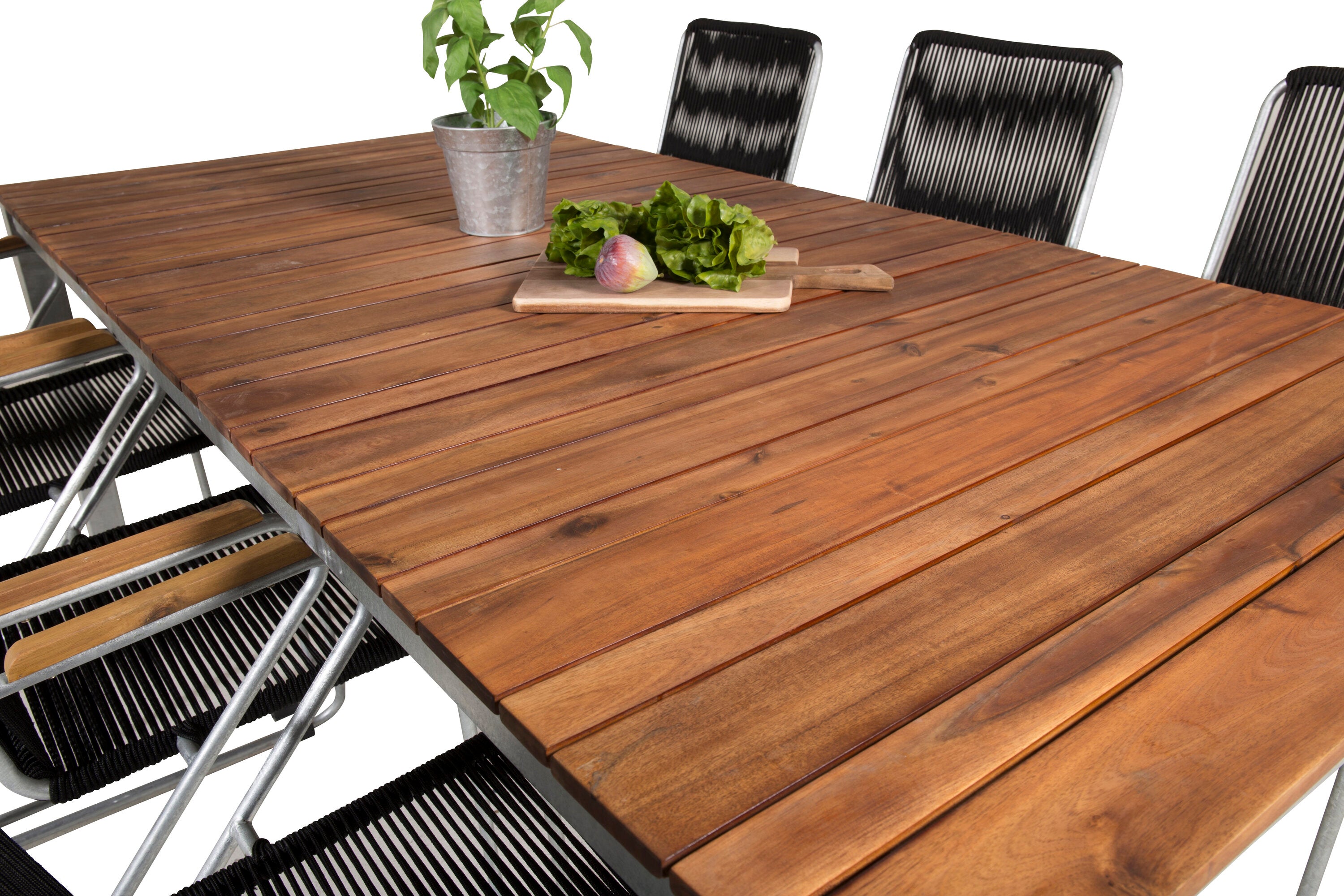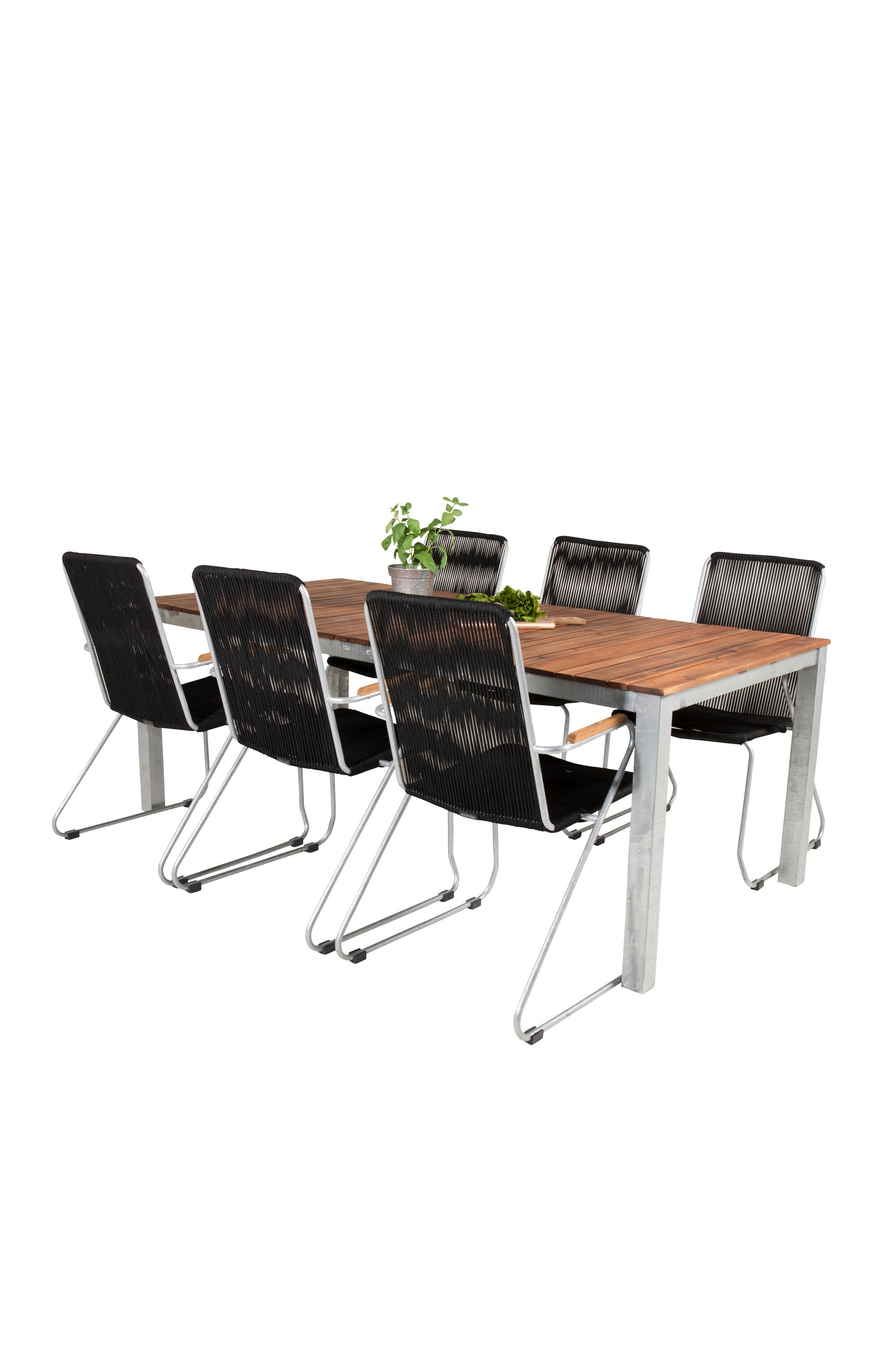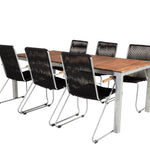 Jídelní stůl Zenia 200*100 - křeslo z akácie / zink+bois - zinek / černé lano / A