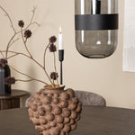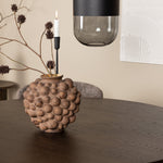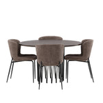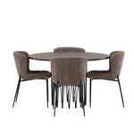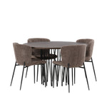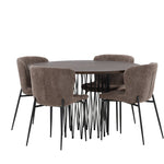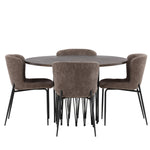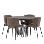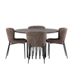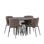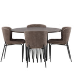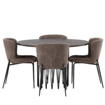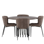 Kamenný kulatý jídelní stůl - černá / mocca dýha + jídelní židle Modesto - šedá / kouřová černá Boucle _4