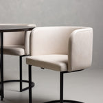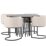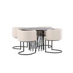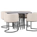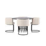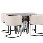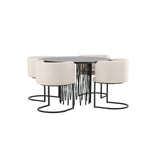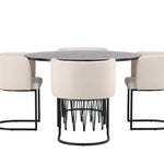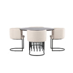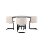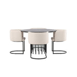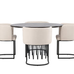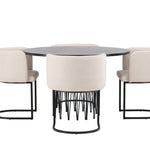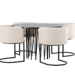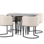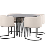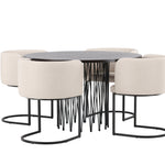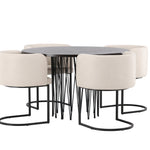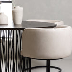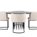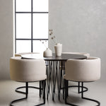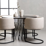 Kamenný kulatý jídelní stůl - černá / mocca dýha + jídelní židle Simrishman - černá / béžová TC-látka _4