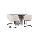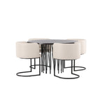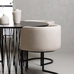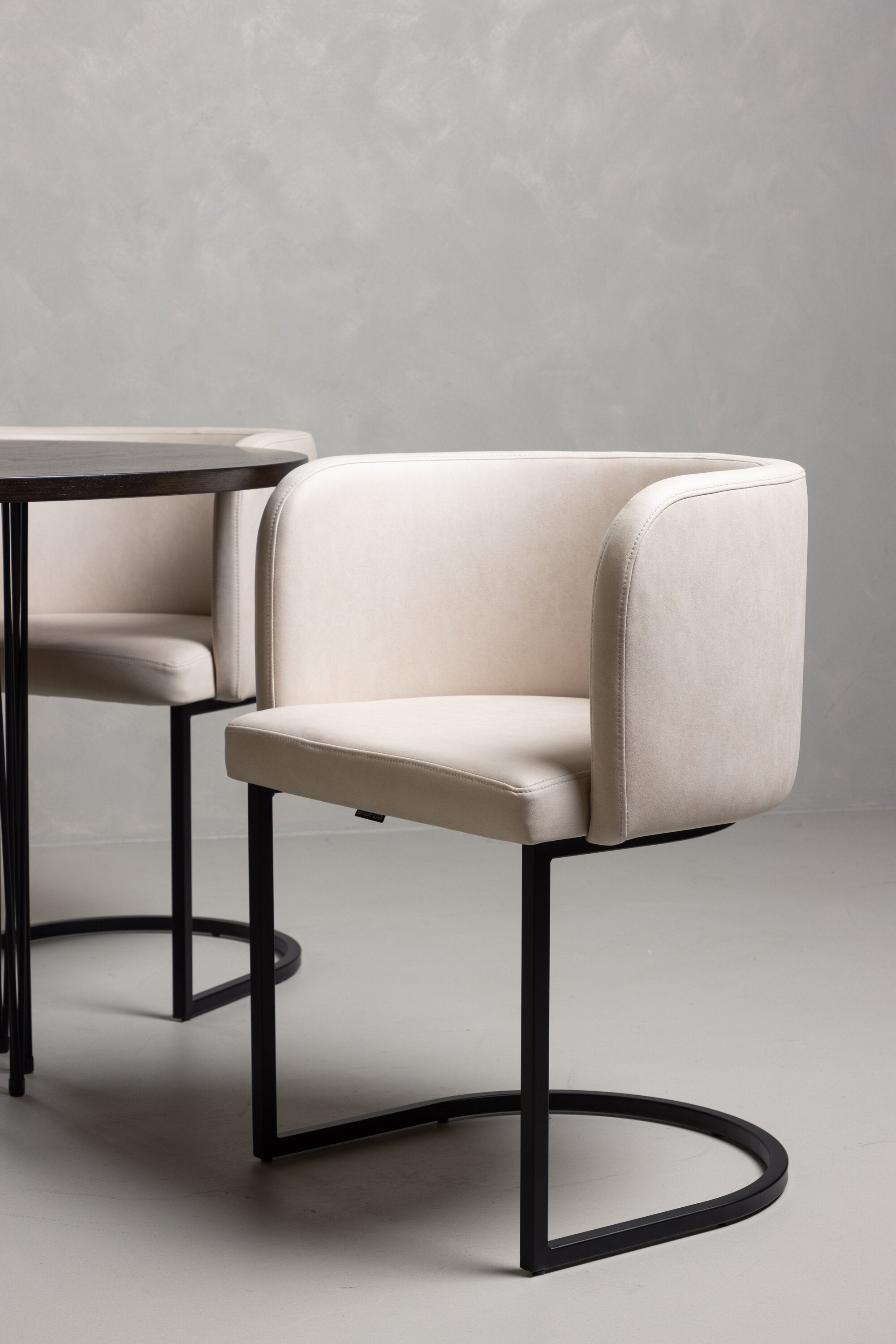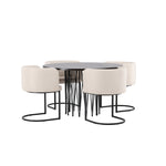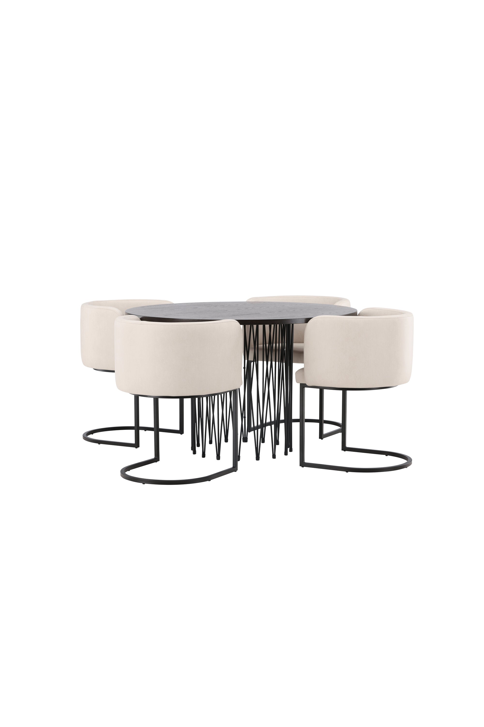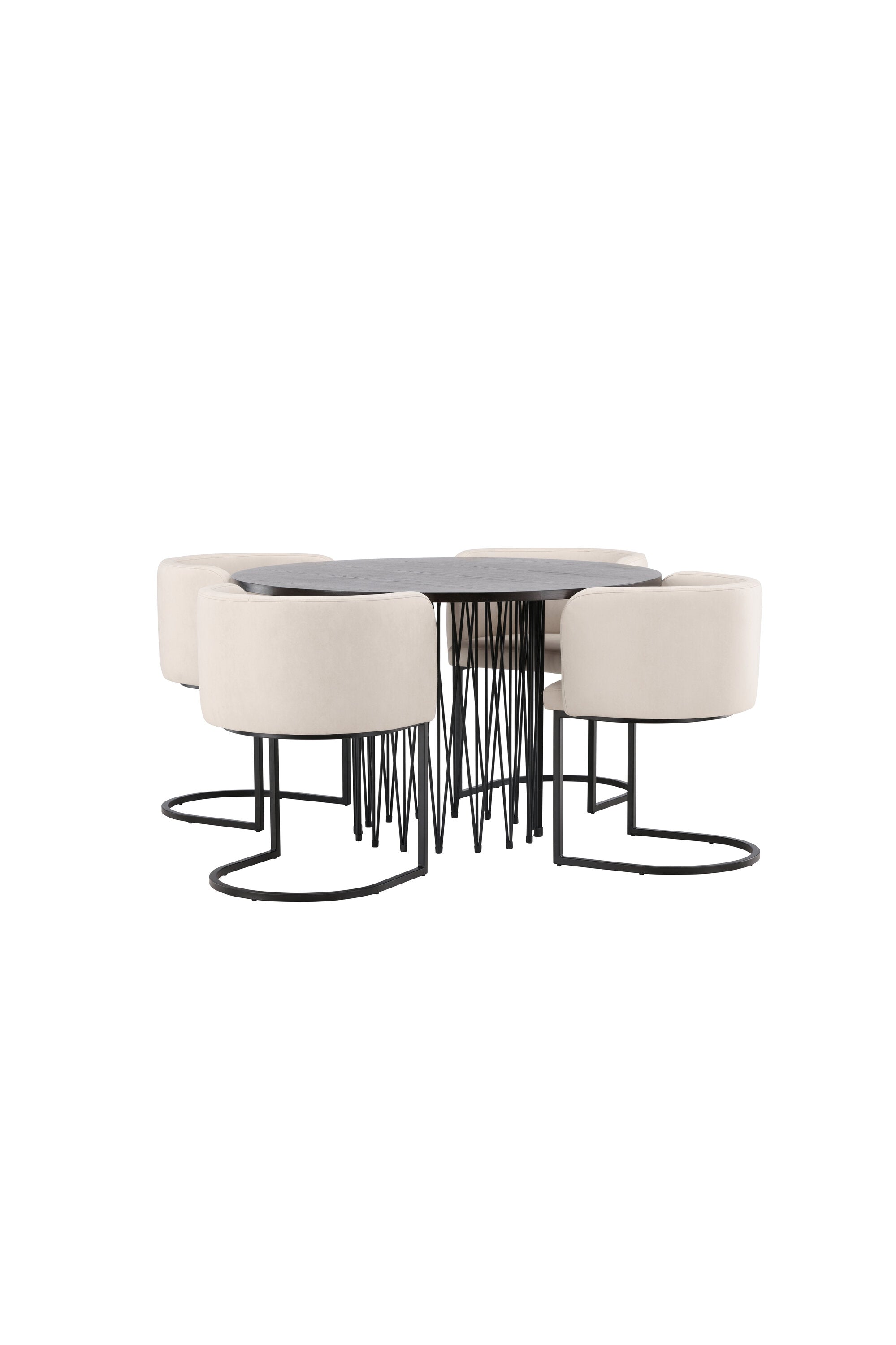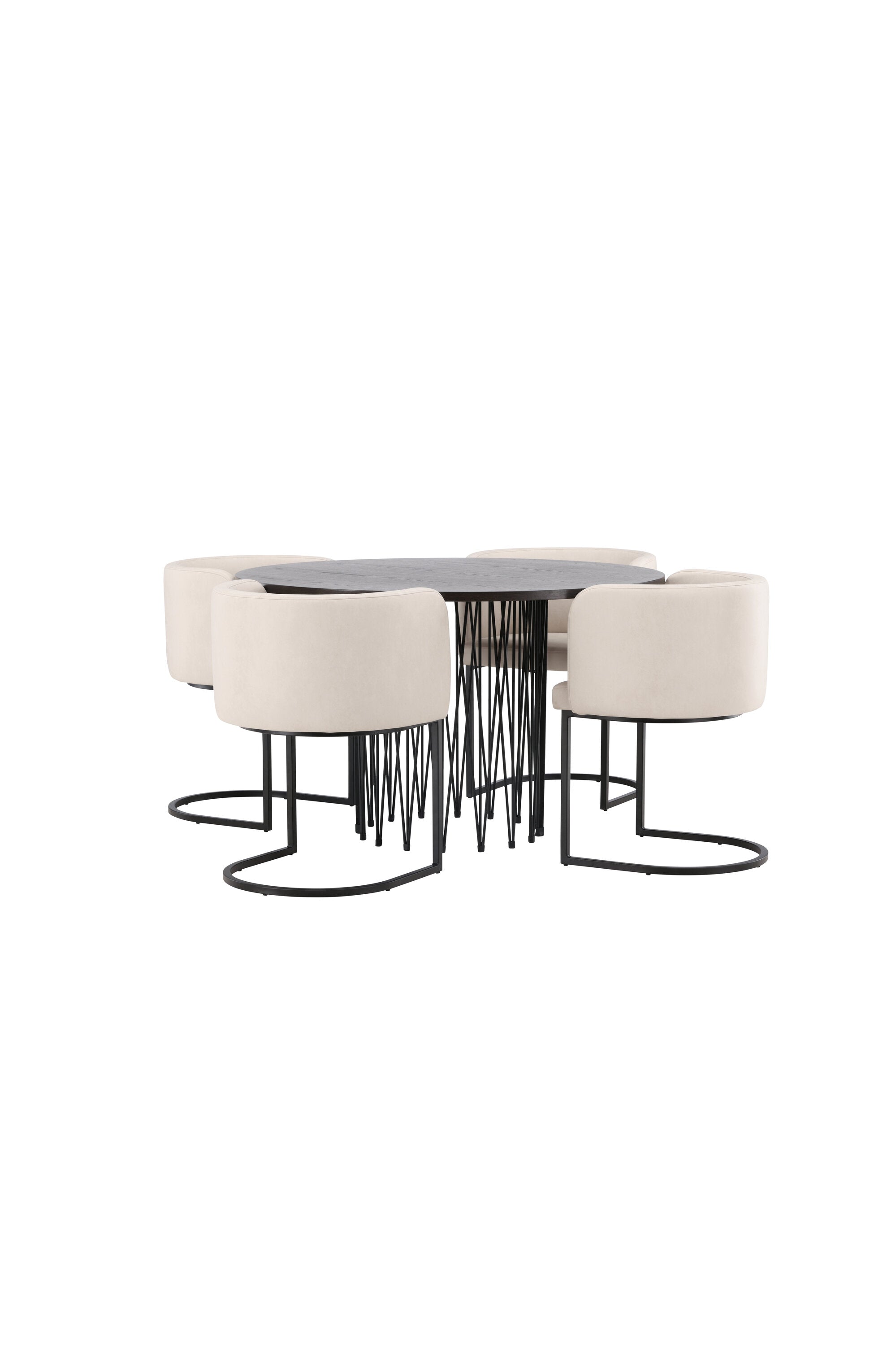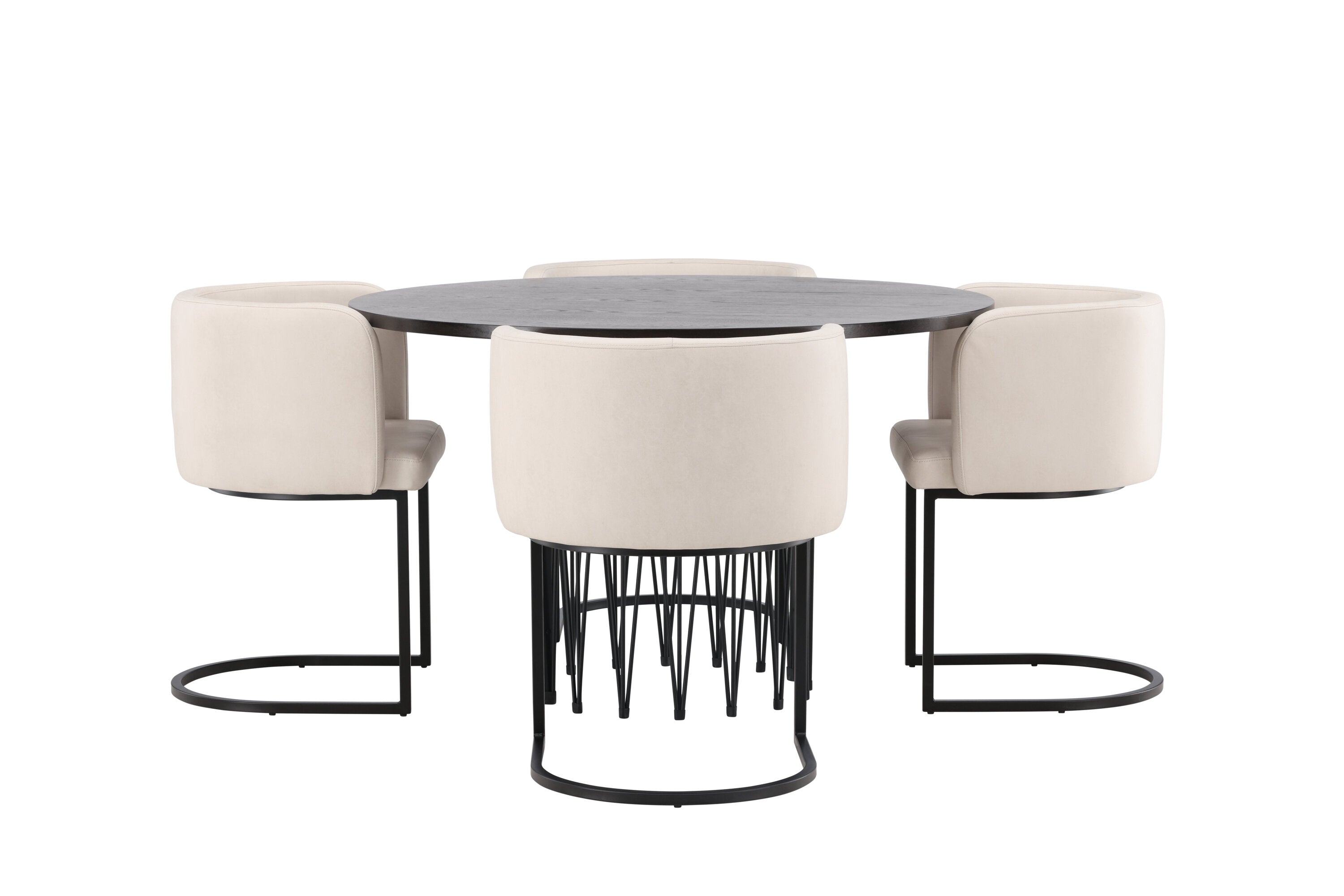 Tento jídelní set vyzařuje eleganci a pohodlí! Kulatý jídelní stůl Stone impresses má módní design s krásnou hnědou MDF deskou s dýhou a ozdobnou válcovou základnou v černém kovu. Zde společně s našimi elegantními jídelními židlemi ze série Simrishamn. Židle má celočalouněný sedák se zaobleným opěradlem z béžové látky TC a dekorativní, minimalistickou konstrukcí nohou z černé oceli. Přijít domů by se mělo cítit luxusně! Rozměry stolu: 120 cm.