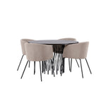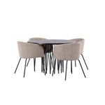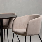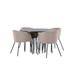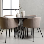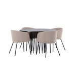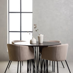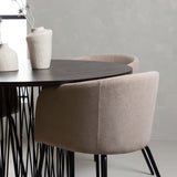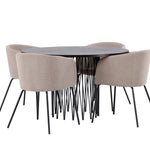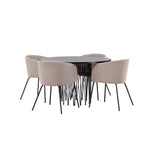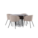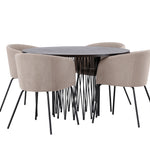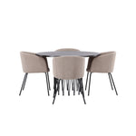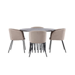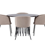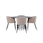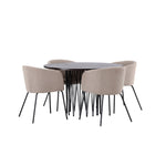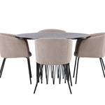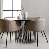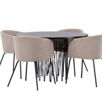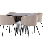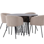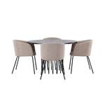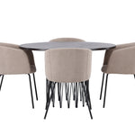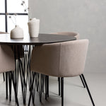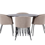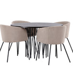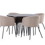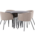 Kamenný kulatý jídelní stůl - černá / mocca dýha + židle Berit - černá / béžová látka (polyesterové prádlo) _4