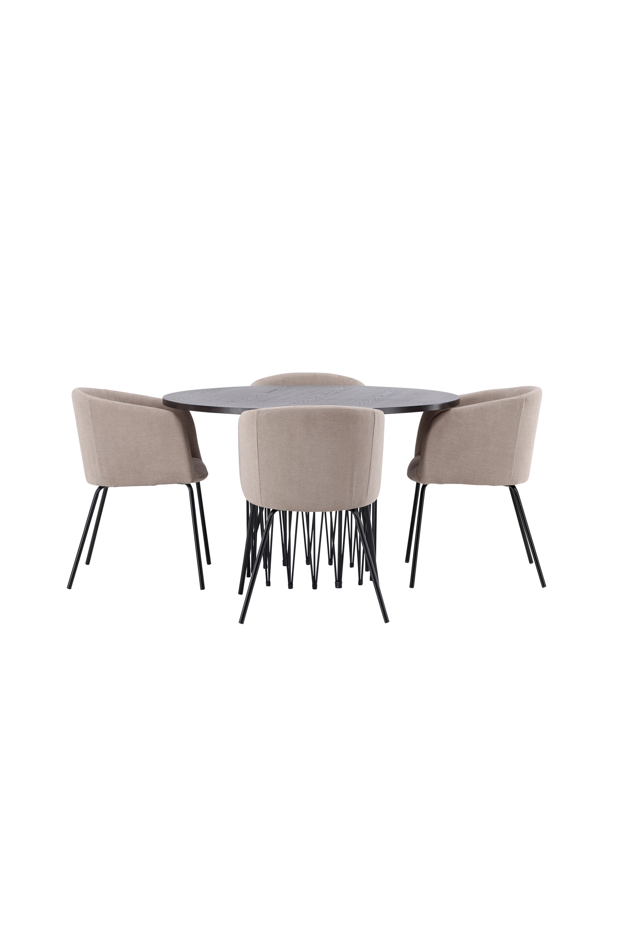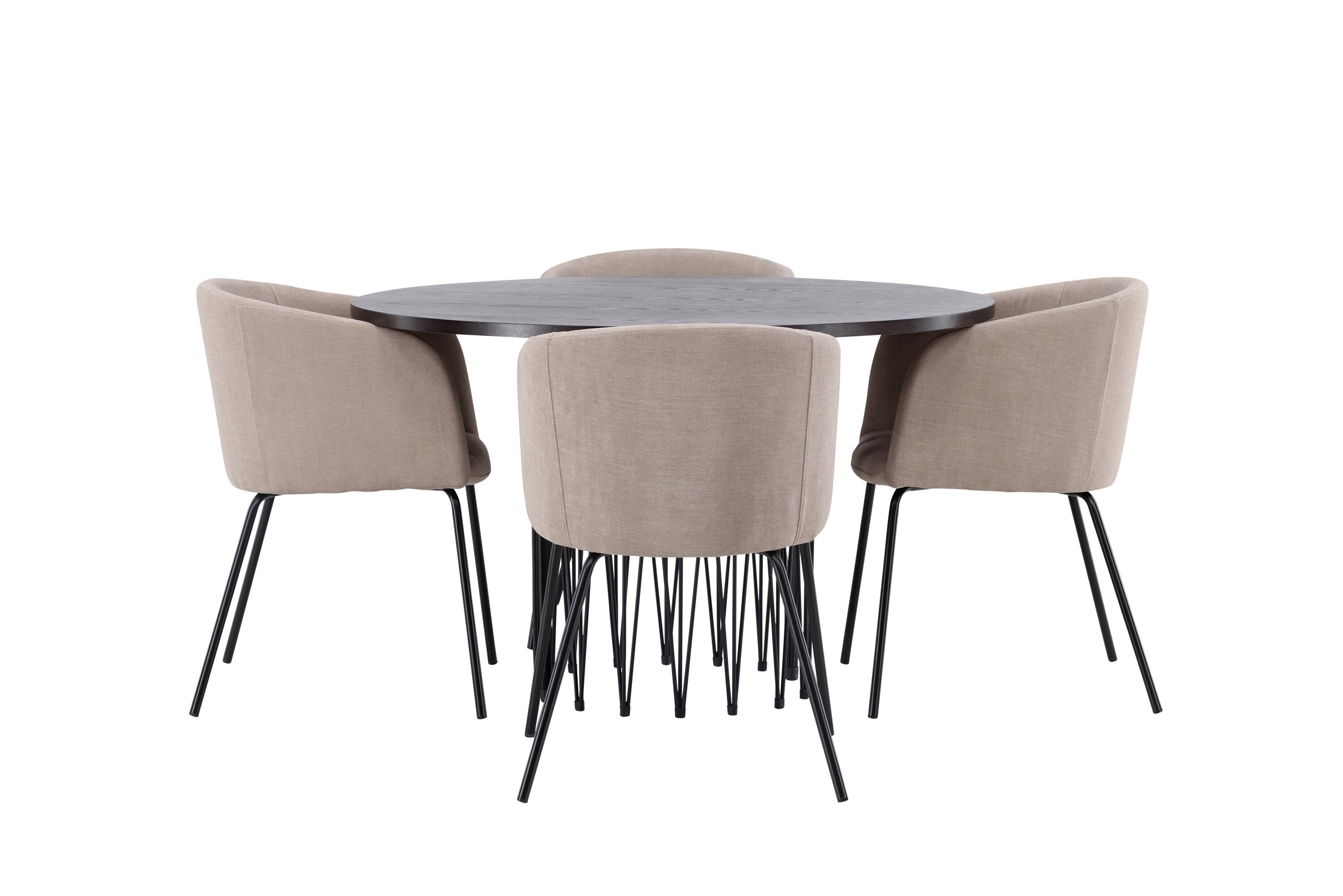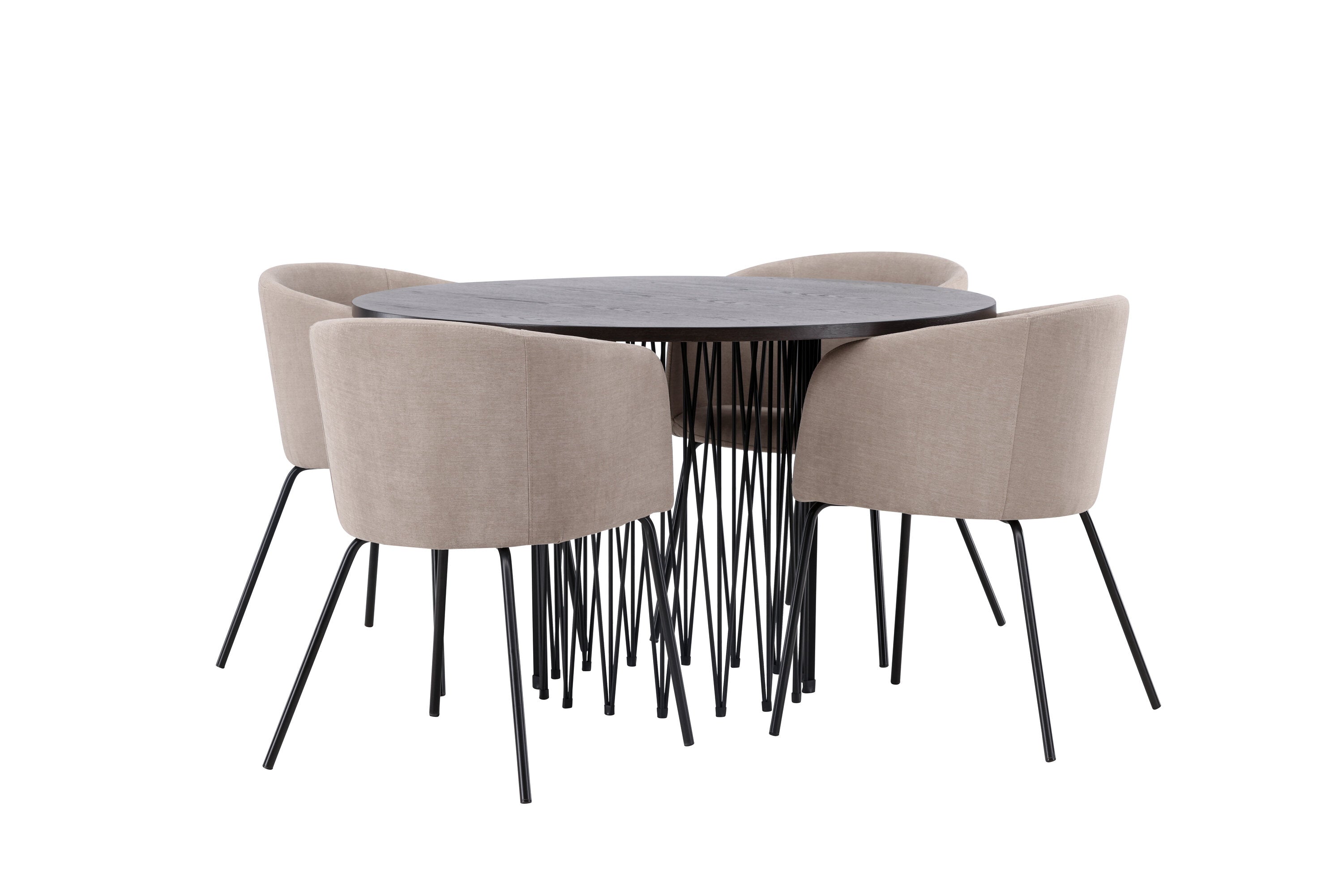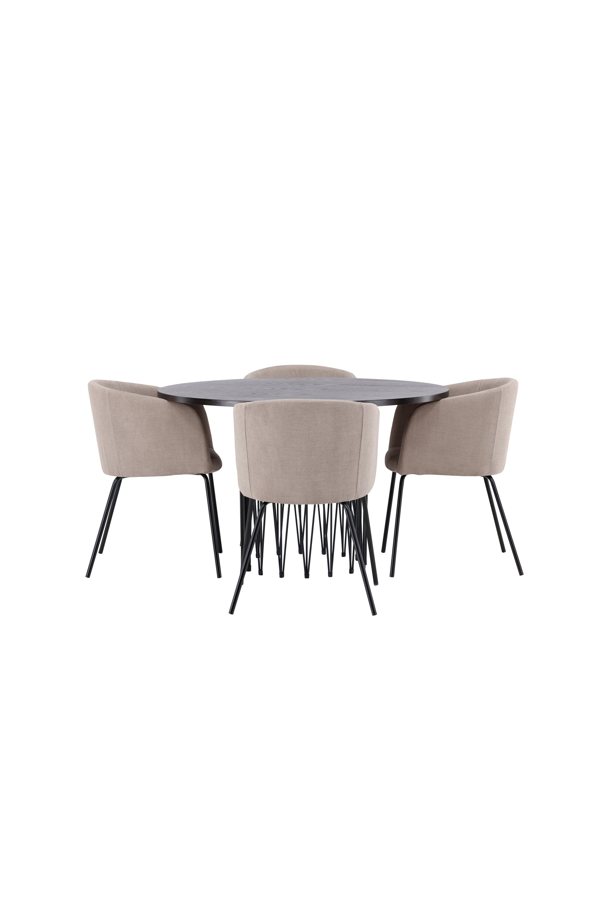 Moderní tvary a luxusní zpracování! Kulatý jídelní stůl Stone impresses má módní design s krásnou hnědou MDF deskou s dýhou a ozdobnou válcovou základnou v černém kovu. Zde spolu s našimi pohodlnými jídelními židlemi Berit. Židle má celočalouněný design s mírně zaobleným opěradlem a sedákem z polyesterového lnu a úzkými nohami z černého železa. Jednoduše, úžasná kombinace! Rozměry stolu: 120 cm.