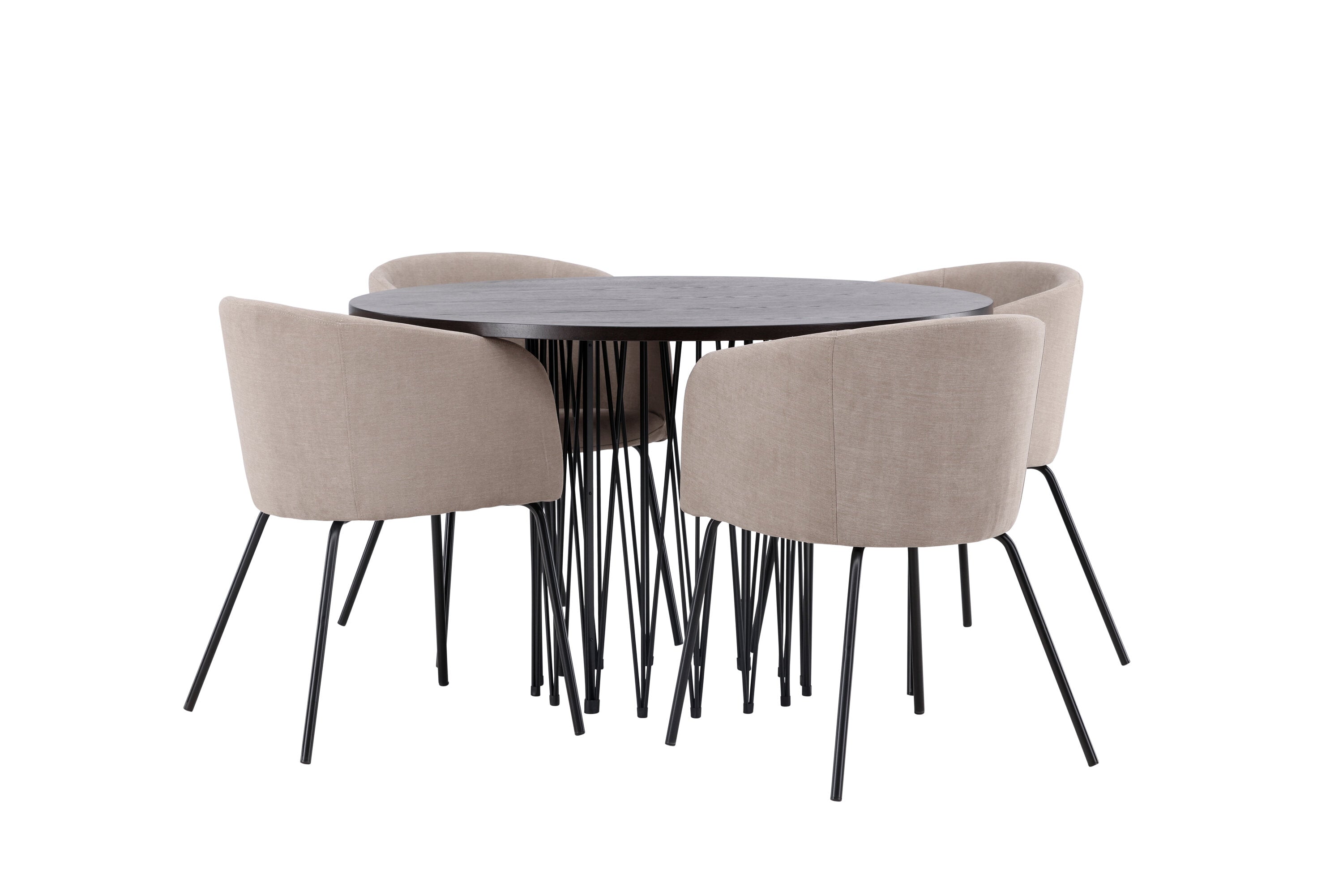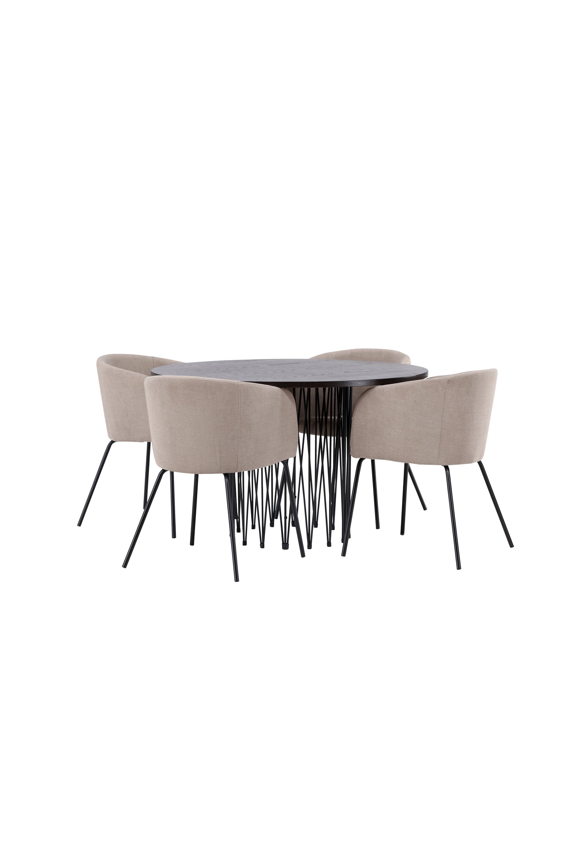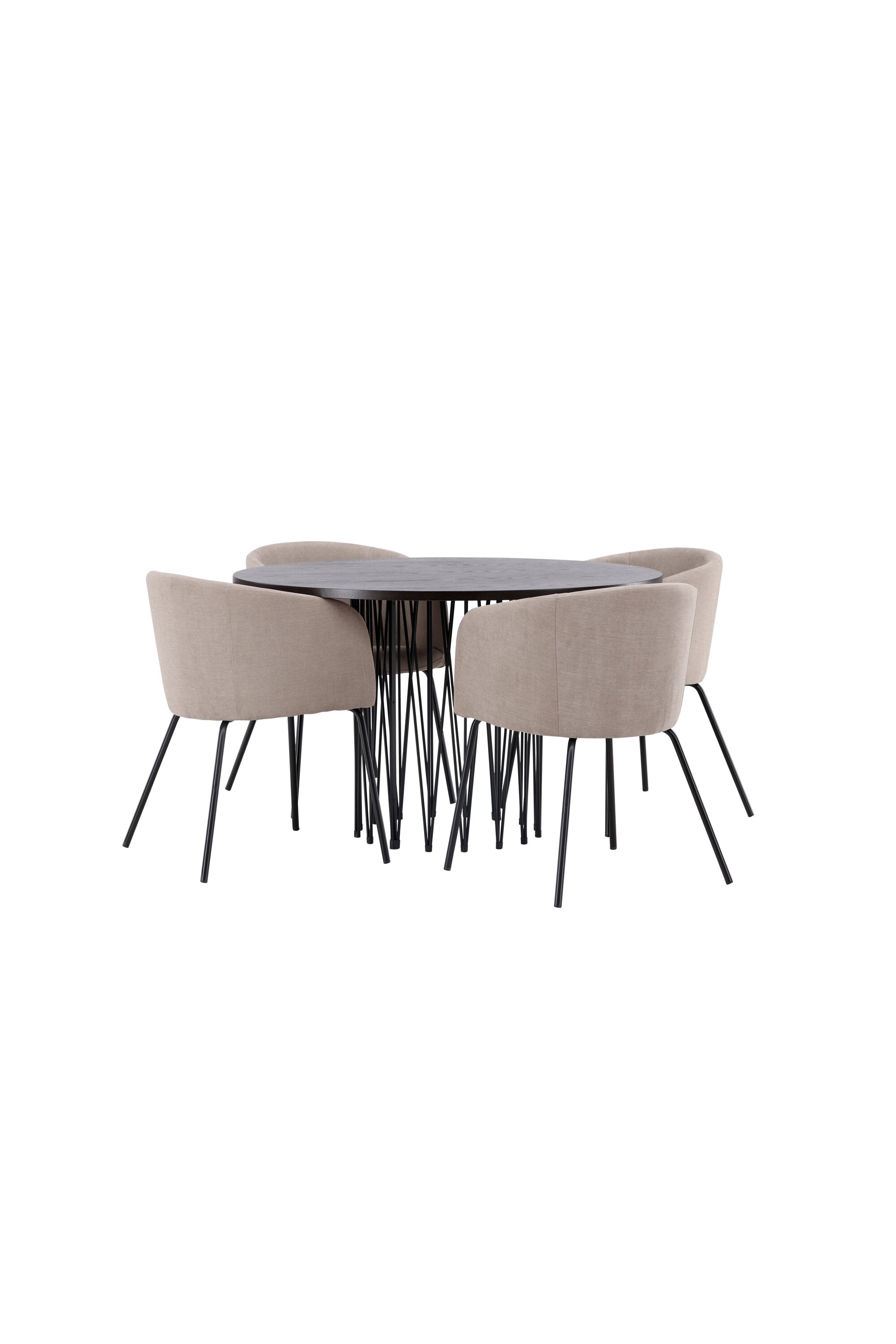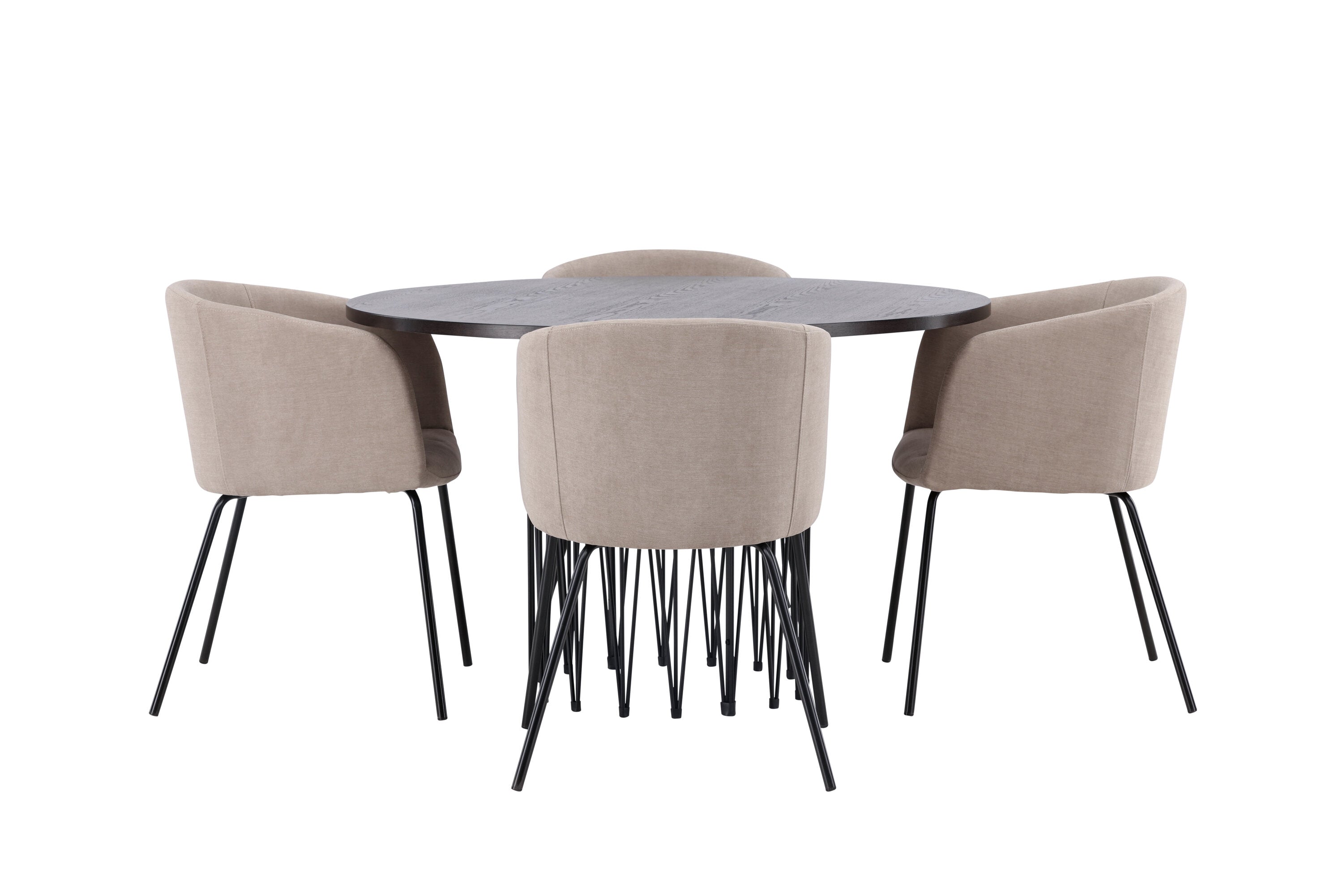 Moderní tvary a luxusní zpracování! Kulatý jídelní stůl Stone impresses má módní design s krásnou hnědou MDF deskou s dýhou a ozdobnou válcovou základnou v černém kovu. Zde spolu s našimi pohodlnými jídelními židlemi Berit. Židle má celočalouněný design s mírně zaobleným opěradlem a sedákem z polyesterového lnu a úzkými nohami z černého železa. Jednoduše, úžasná kombinace! Rozměry stolu: 120 cm.