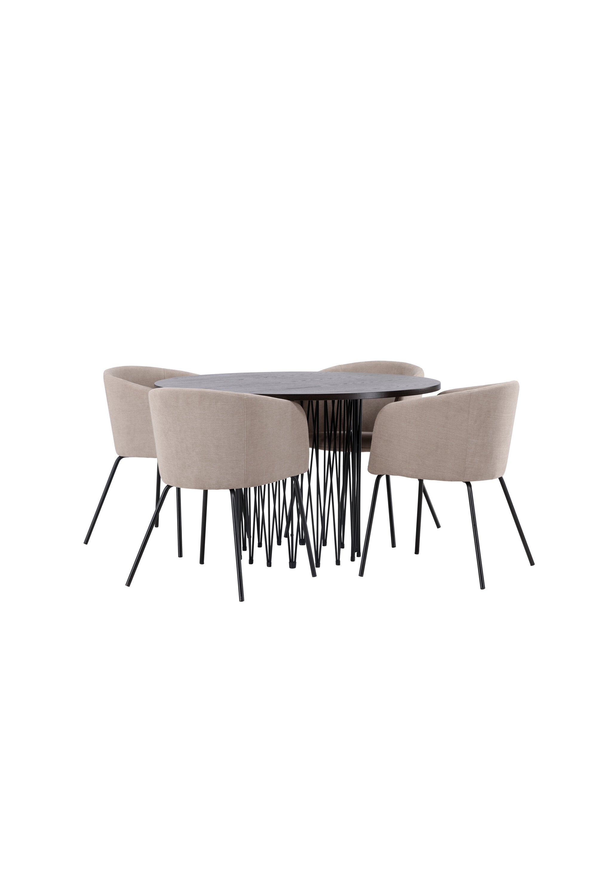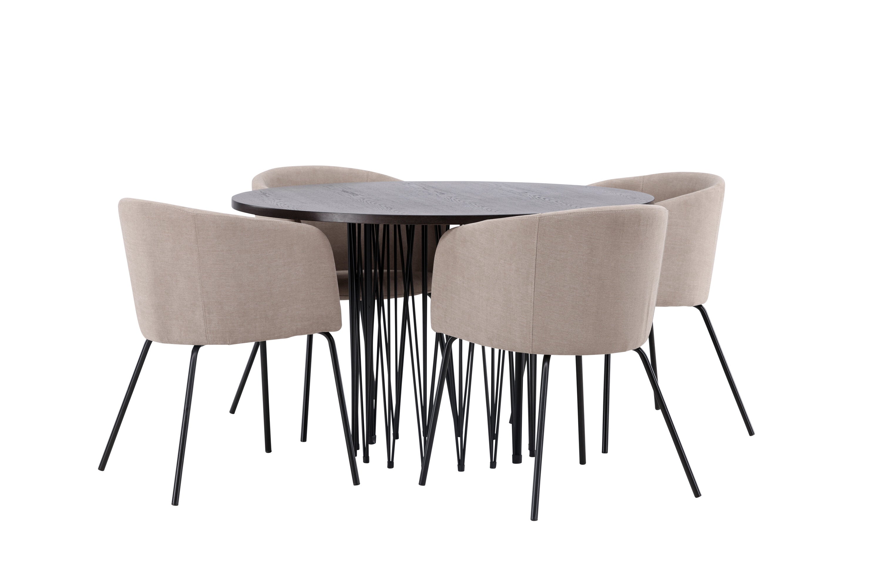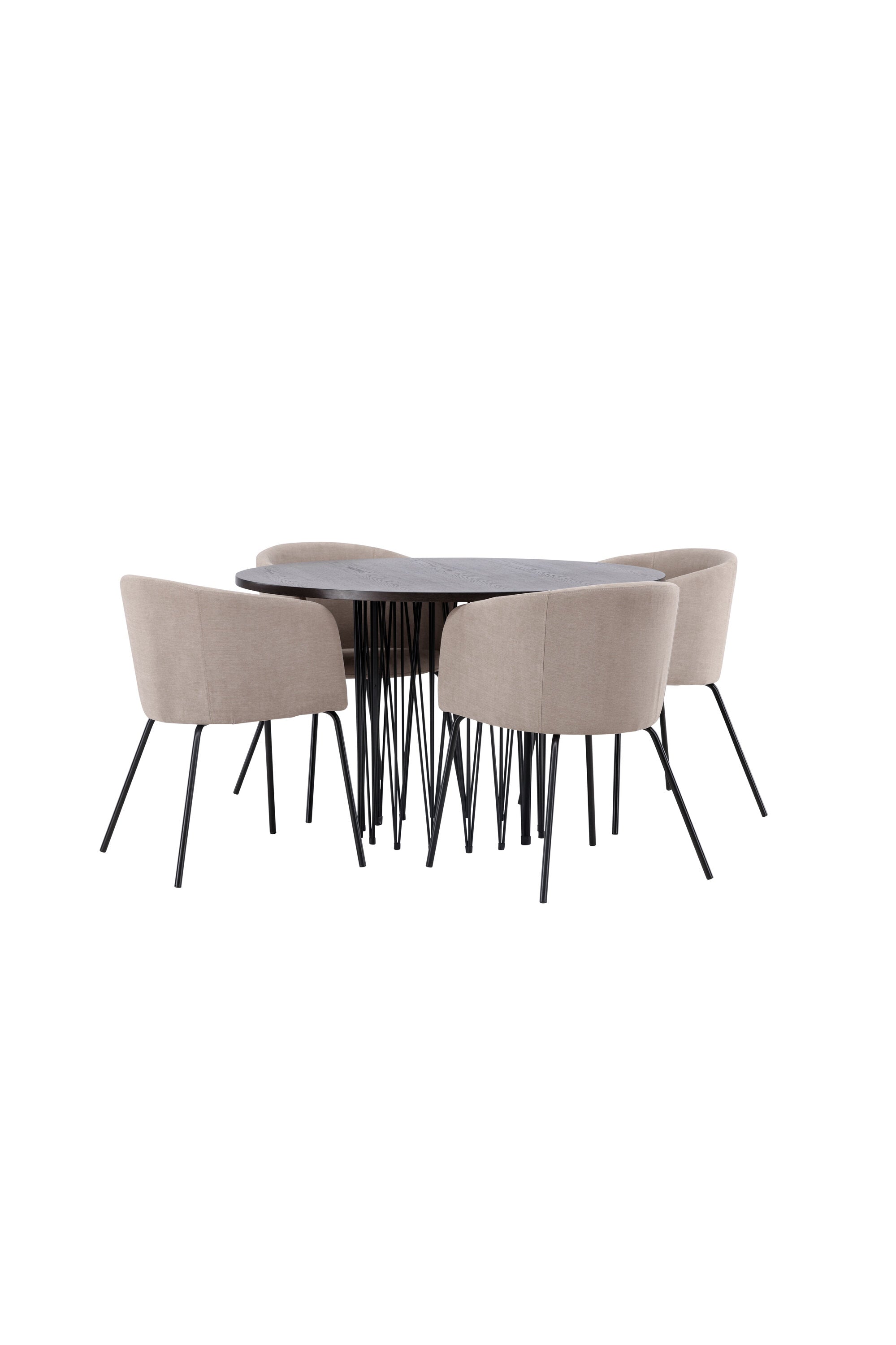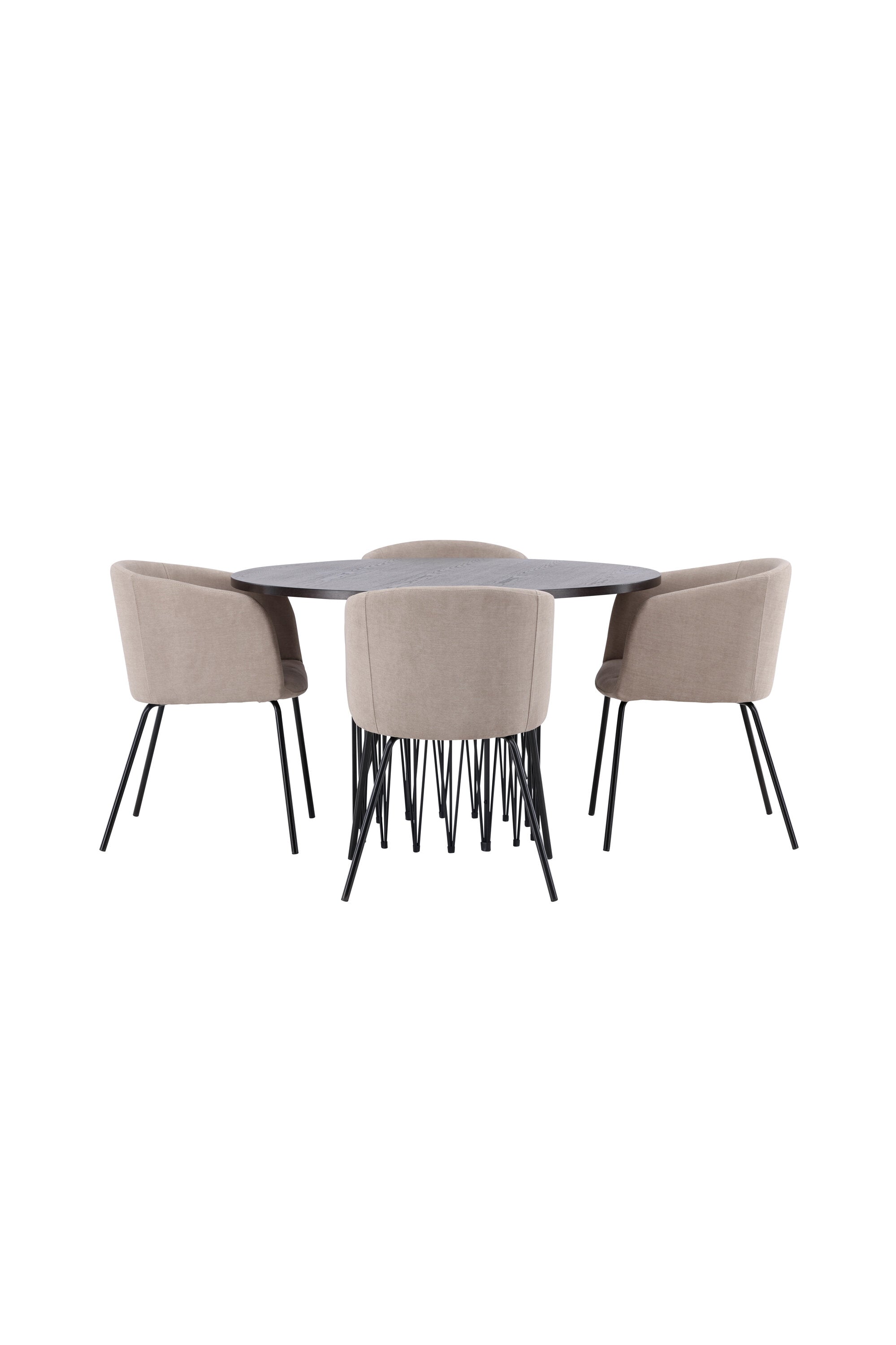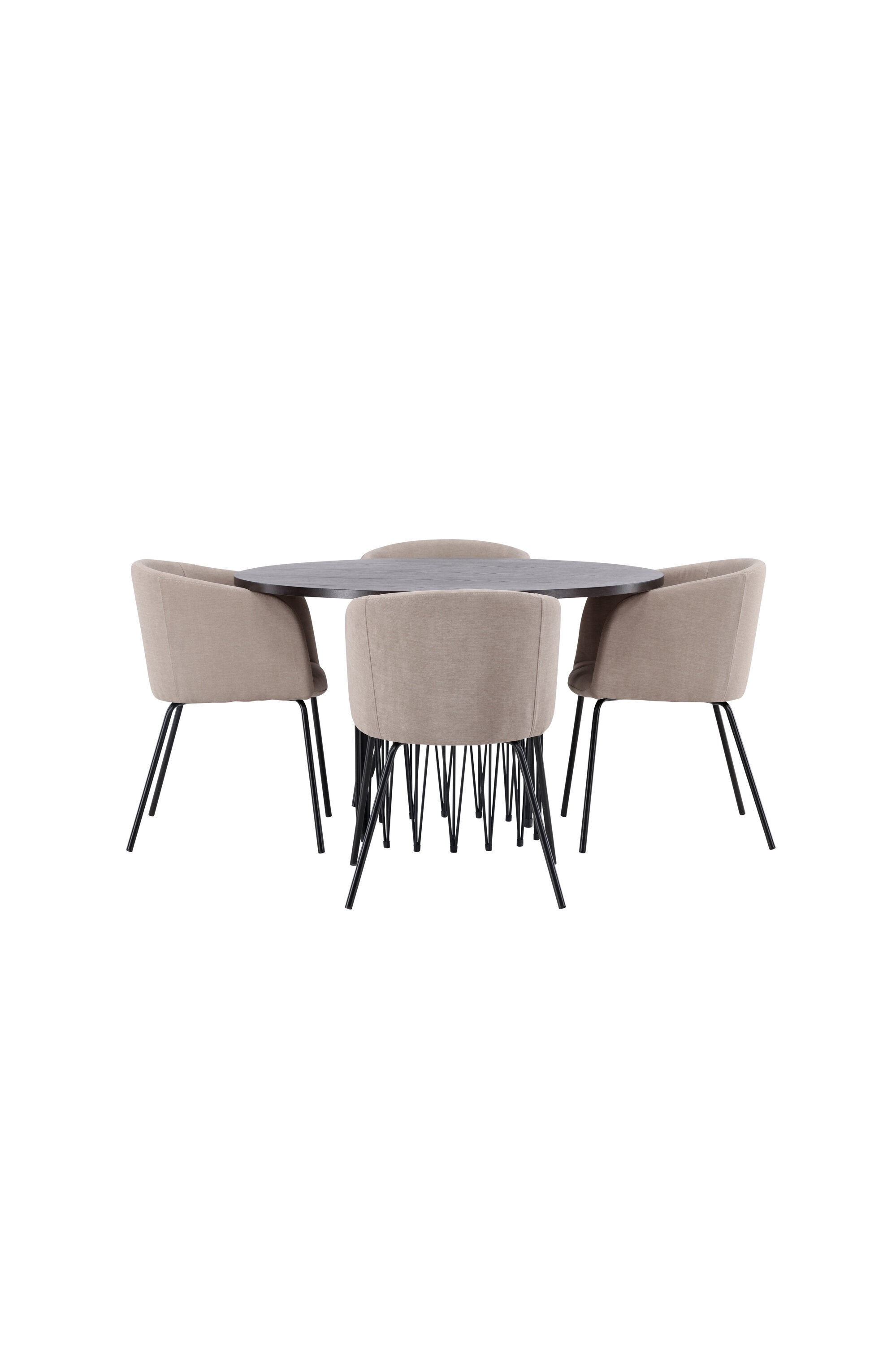 Moderní tvary a luxusní zpracování! Kulatý jídelní stůl Stone impresses má módní design s krásnou hnědou MDF deskou s dýhou a ozdobnou válcovou základnou v černém kovu. Zde spolu s našimi pohodlnými jídelními židlemi Berit. Židle má celočalouněný design s mírně zaobleným opěradlem a sedákem z polyesterového lnu a úzkými nohami z černého železa. Jednoduše, úžasná kombinace! Rozměry stolu: 120 cm.