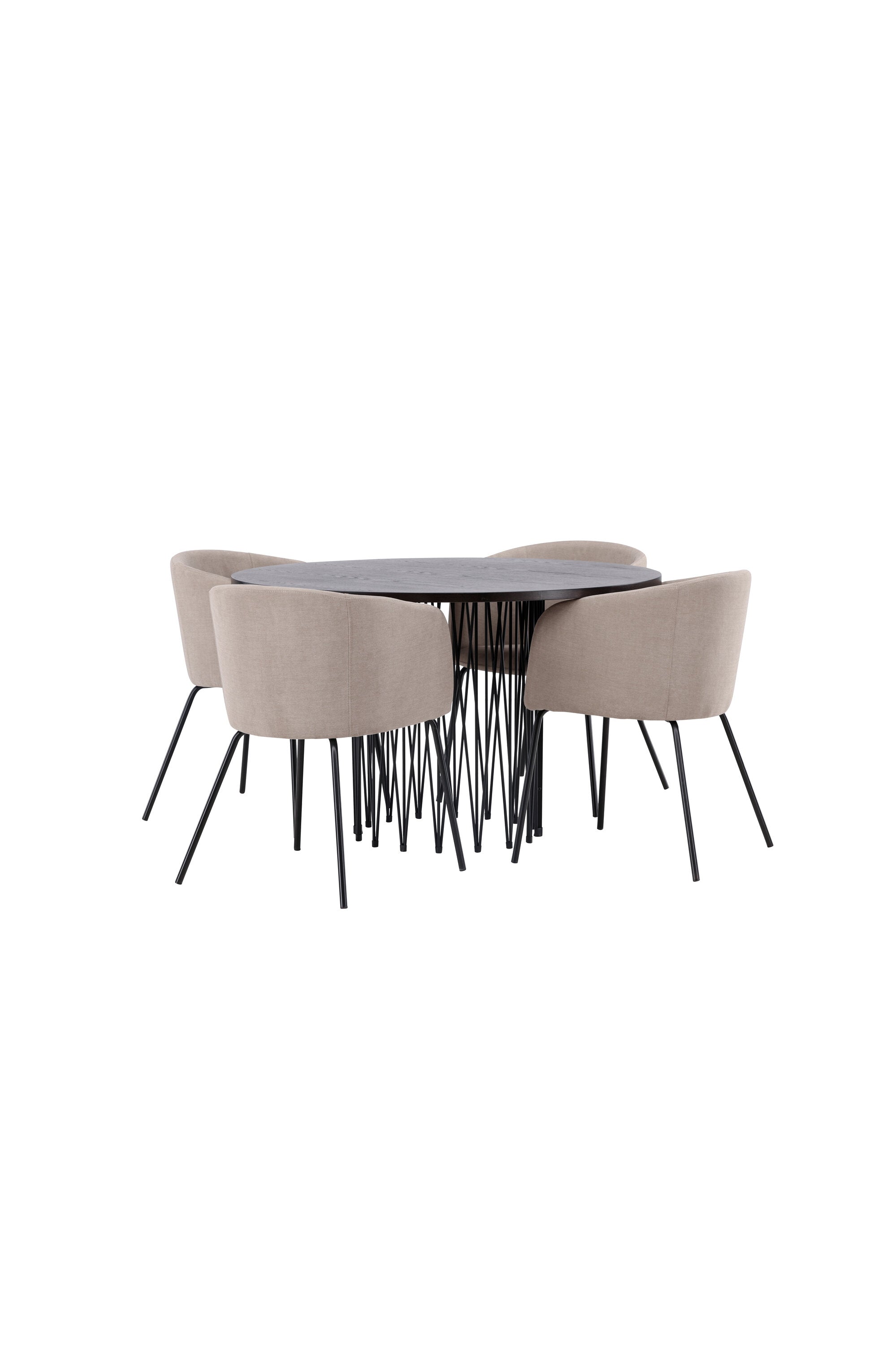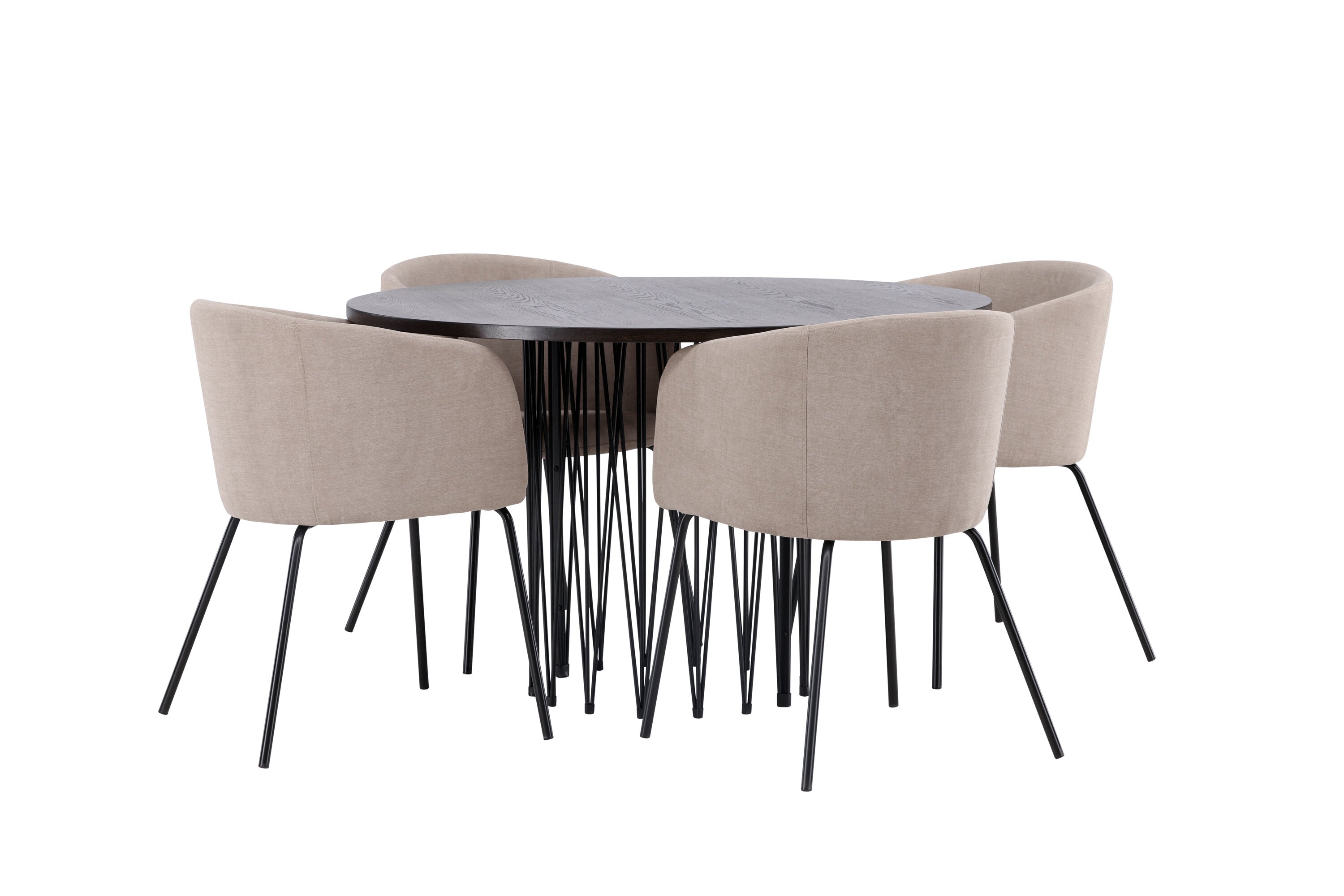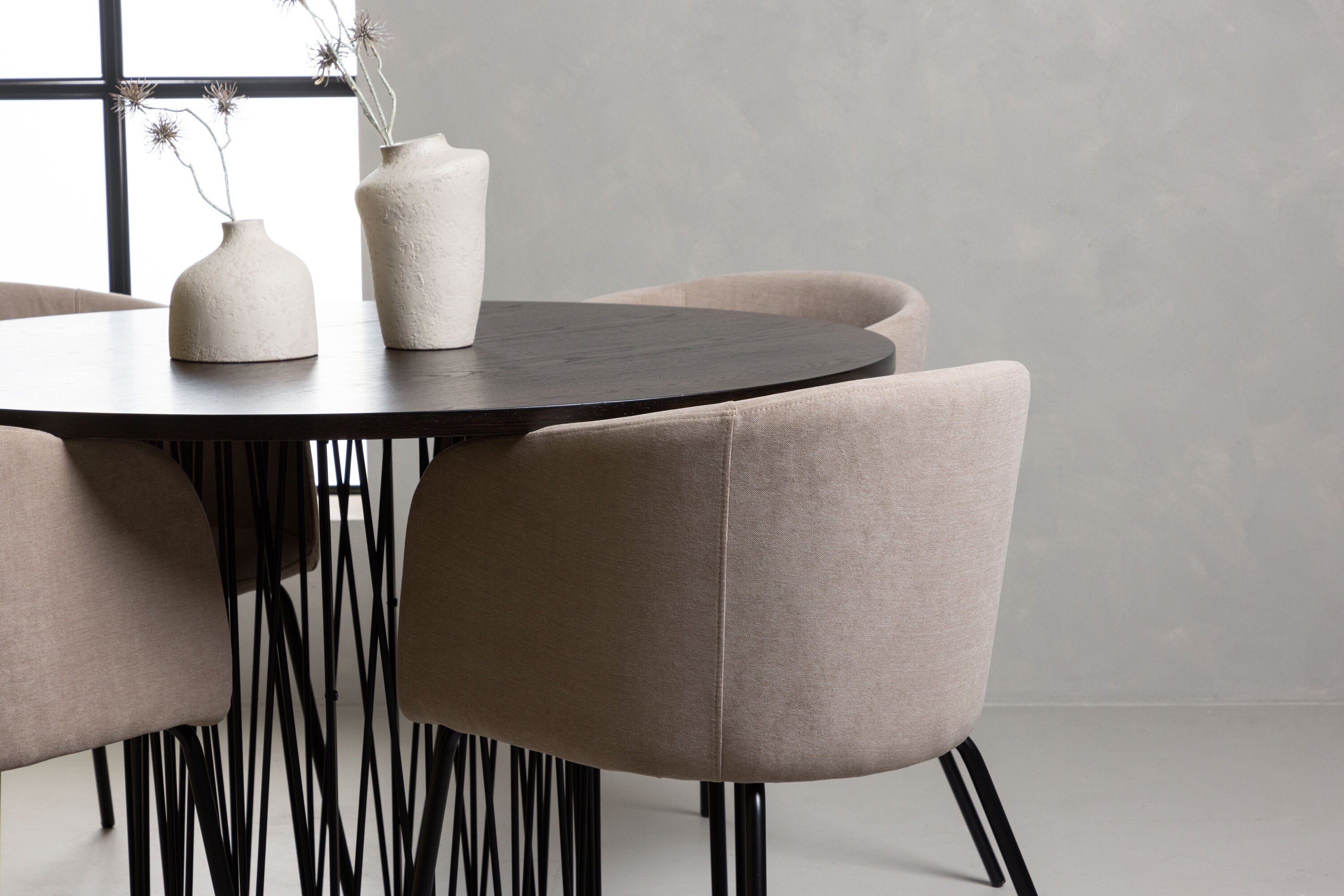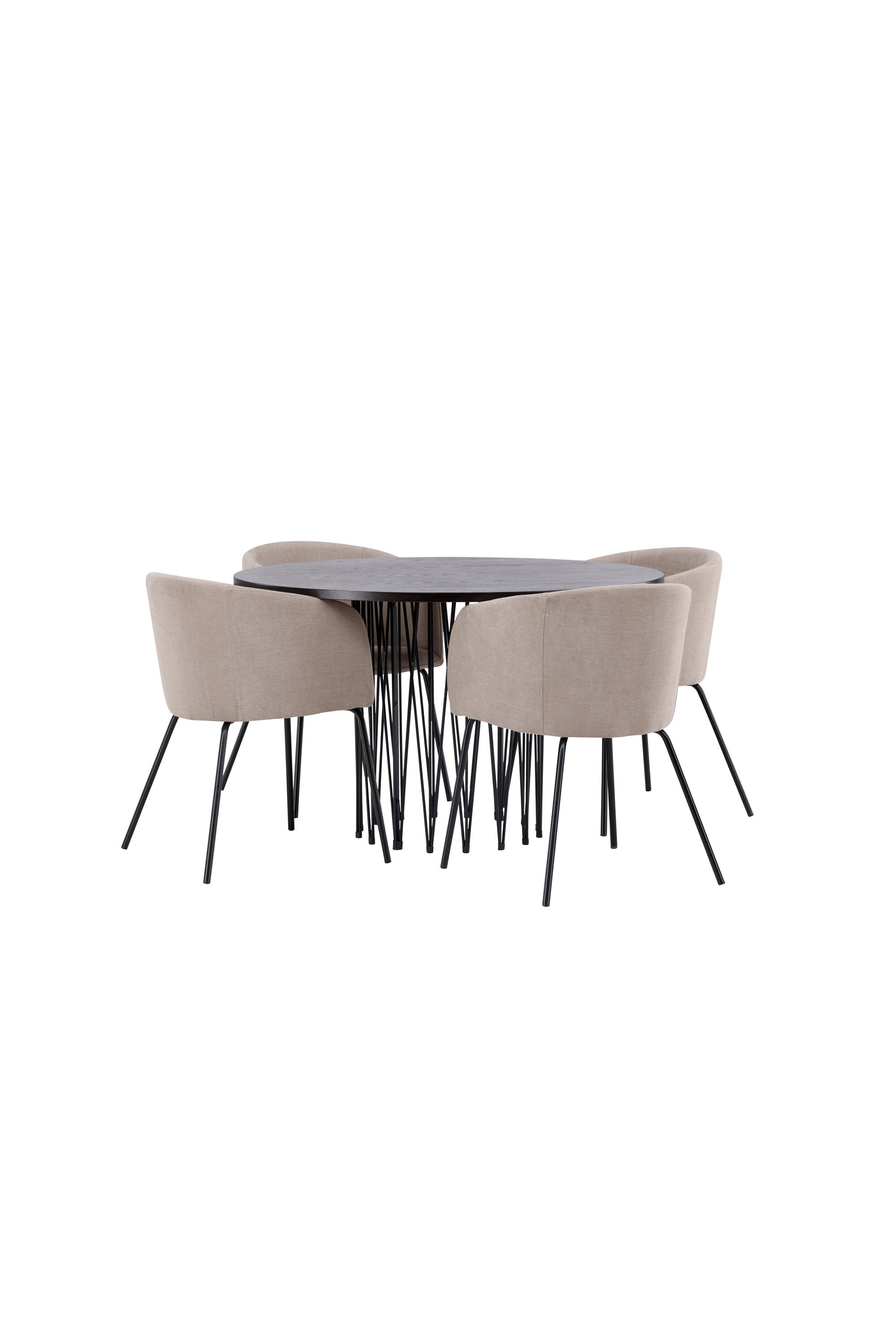 Moderní tvary a luxusní zpracování! Kulatý jídelní stůl Stone impresses má módní design s krásnou hnědou MDF deskou s dýhou a ozdobnou válcovou základnou v černém kovu. Zde spolu s našimi pohodlnými jídelními židlemi Berit. Židle má celočalouněný design s mírně zaobleným opěradlem a sedákem z polyesterového lnu a úzkými nohami z černého železa. Jednoduše, úžasná kombinace! Rozměry stolu: 120 cm.