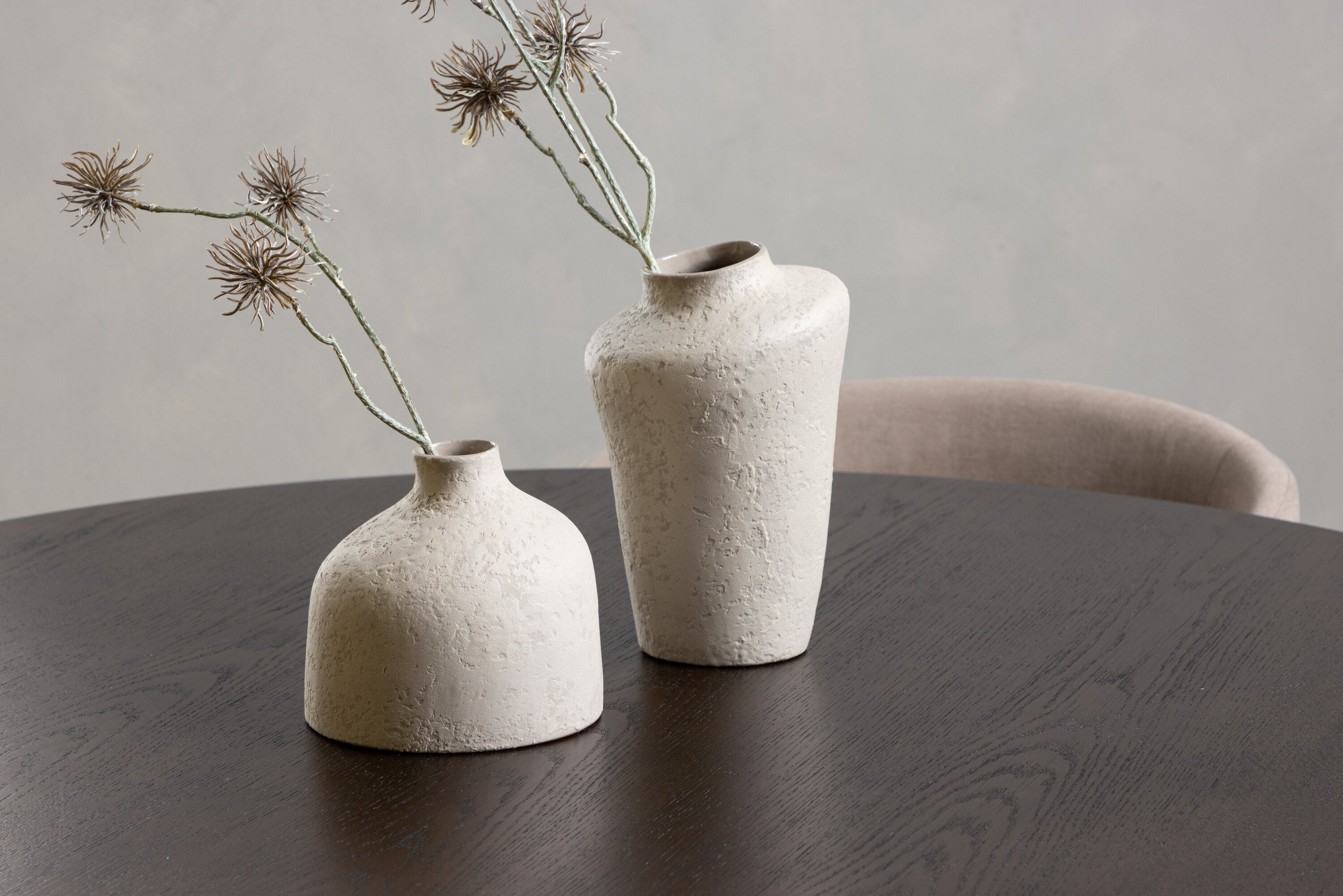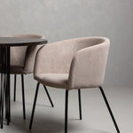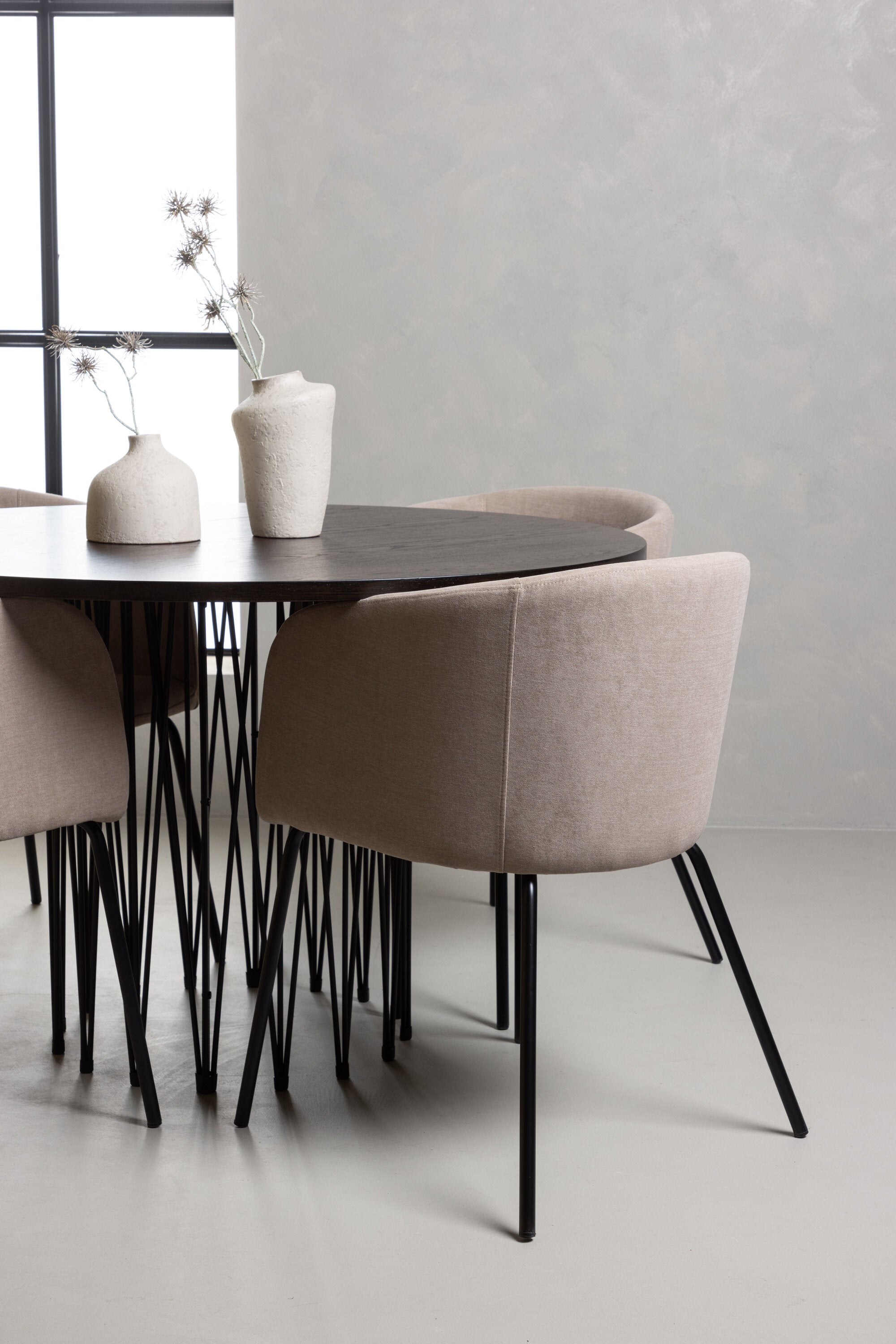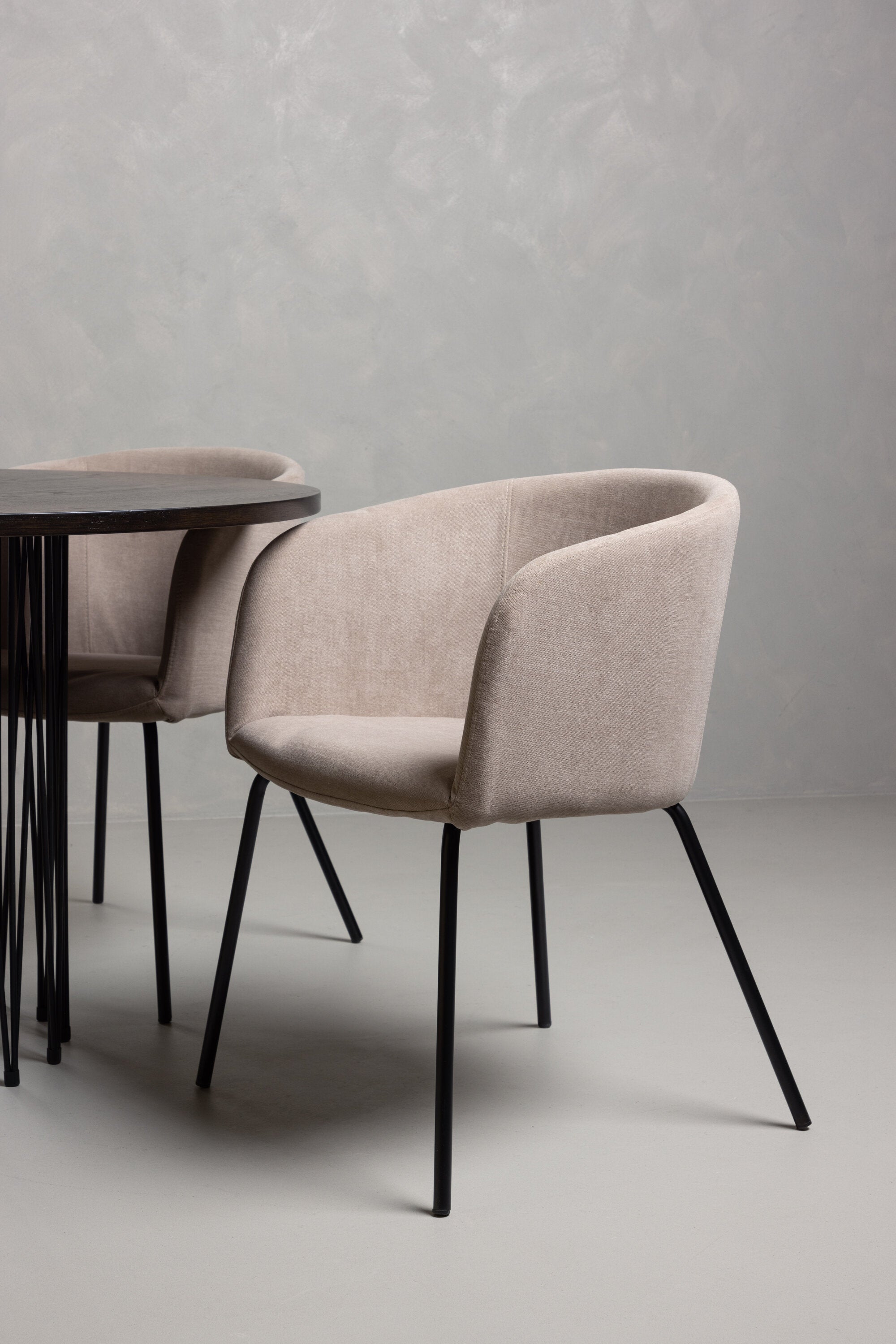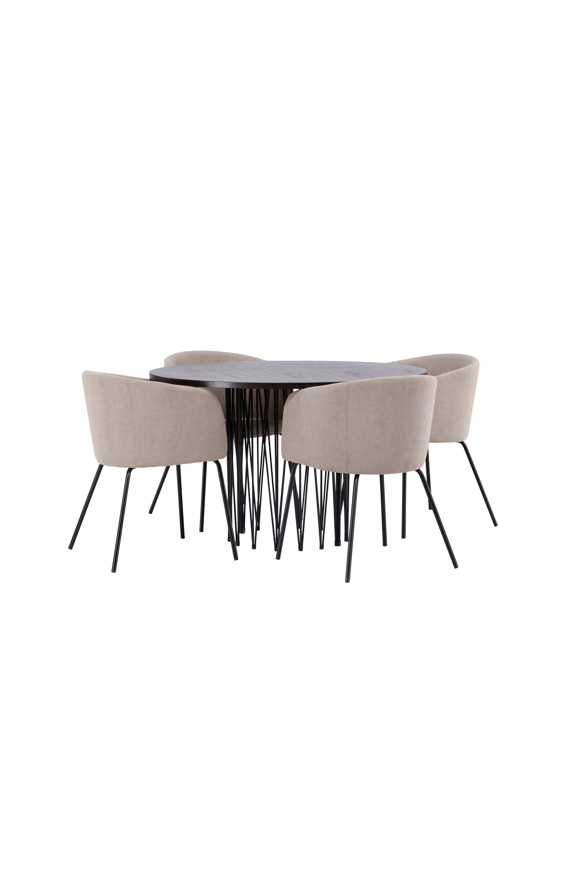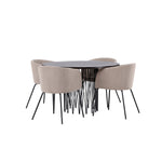 Moderní tvary a luxusní zpracování! Kulatý jídelní stůl Stone impresses má módní design s krásnou hnědou MDF deskou s dýhou a ozdobnou válcovou základnou v černém kovu. Zde spolu s našimi pohodlnými jídelními židlemi Berit. Židle má celočalouněný design s mírně zaobleným opěradlem a sedákem z polyesterového lnu a úzkými nohami z černého železa. Jednoduše, úžasná kombinace! Rozměry stolu: 120 cm.