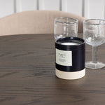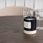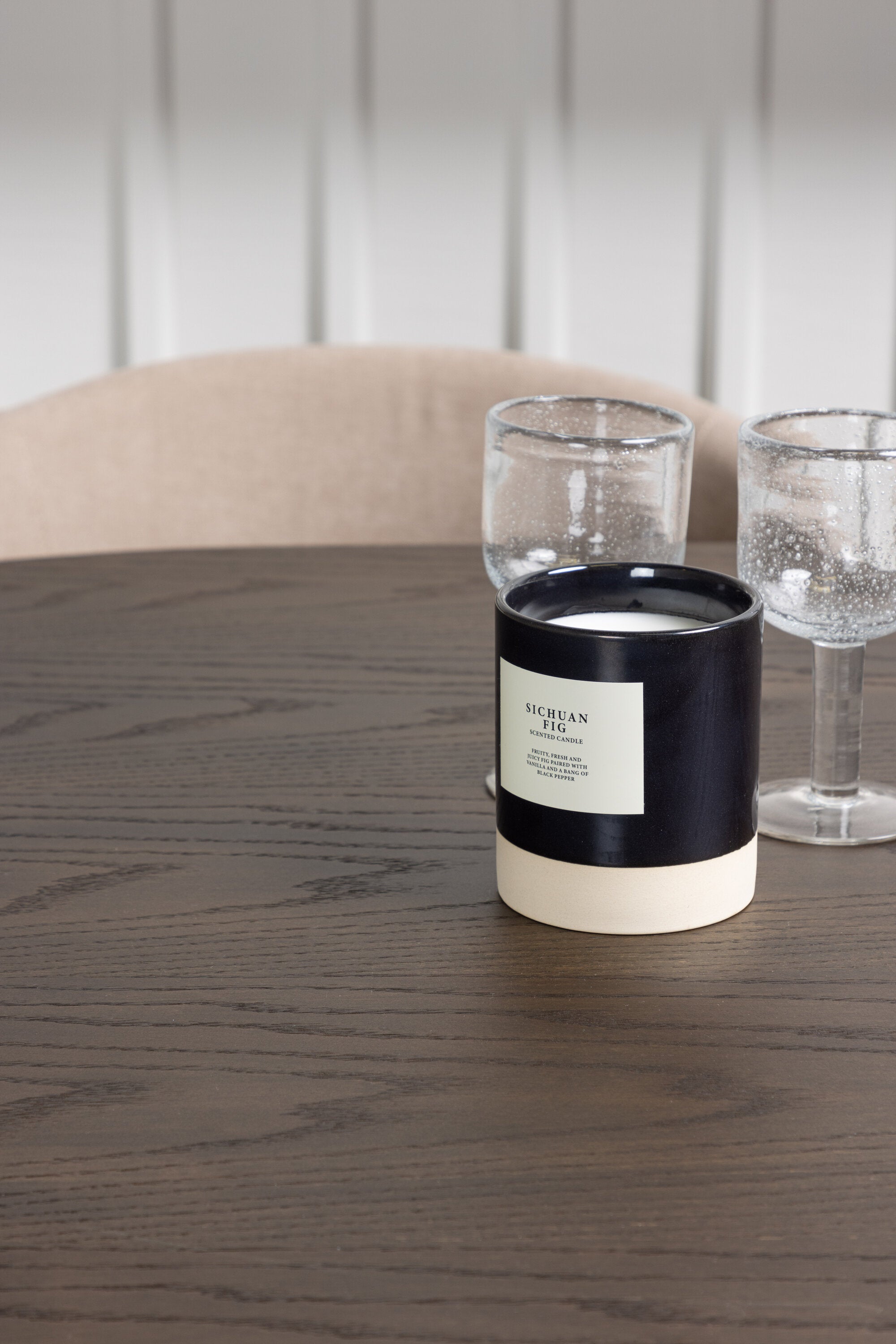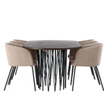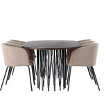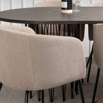 Kamenný oválný jídelní stůl - černá / mocca dýha + židle Berit - černá / béžová látka (polyesterové prádlo) _6