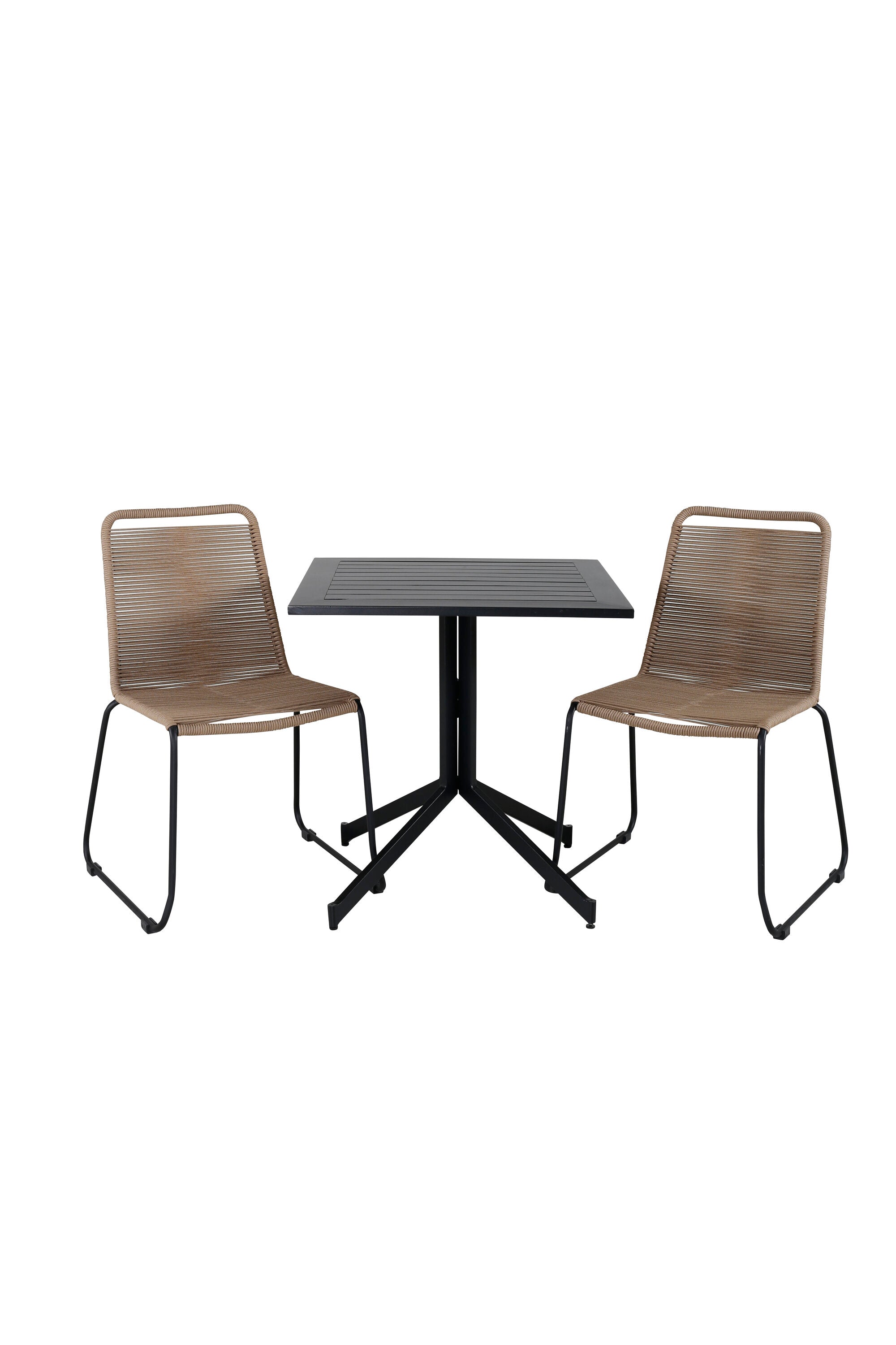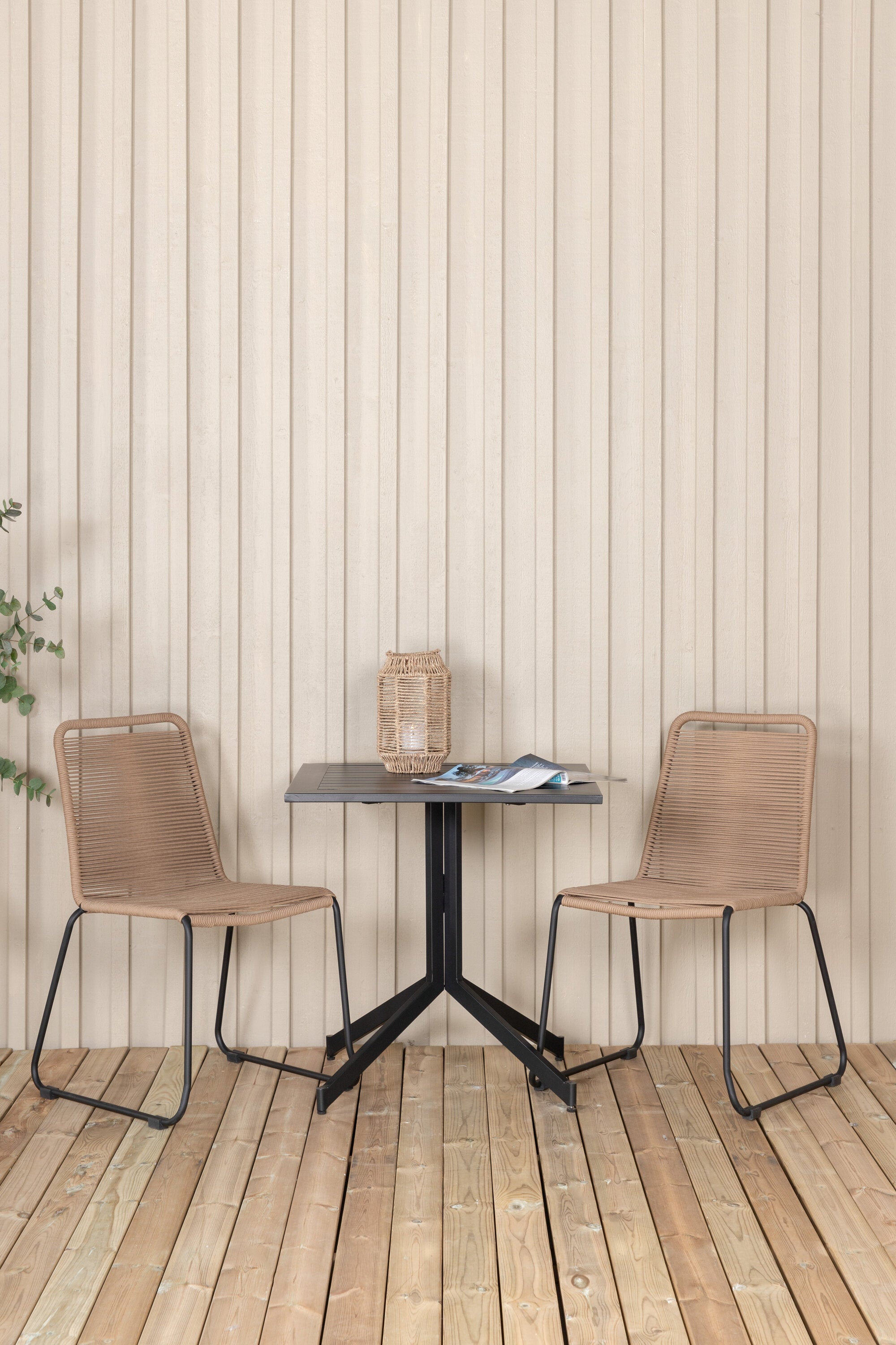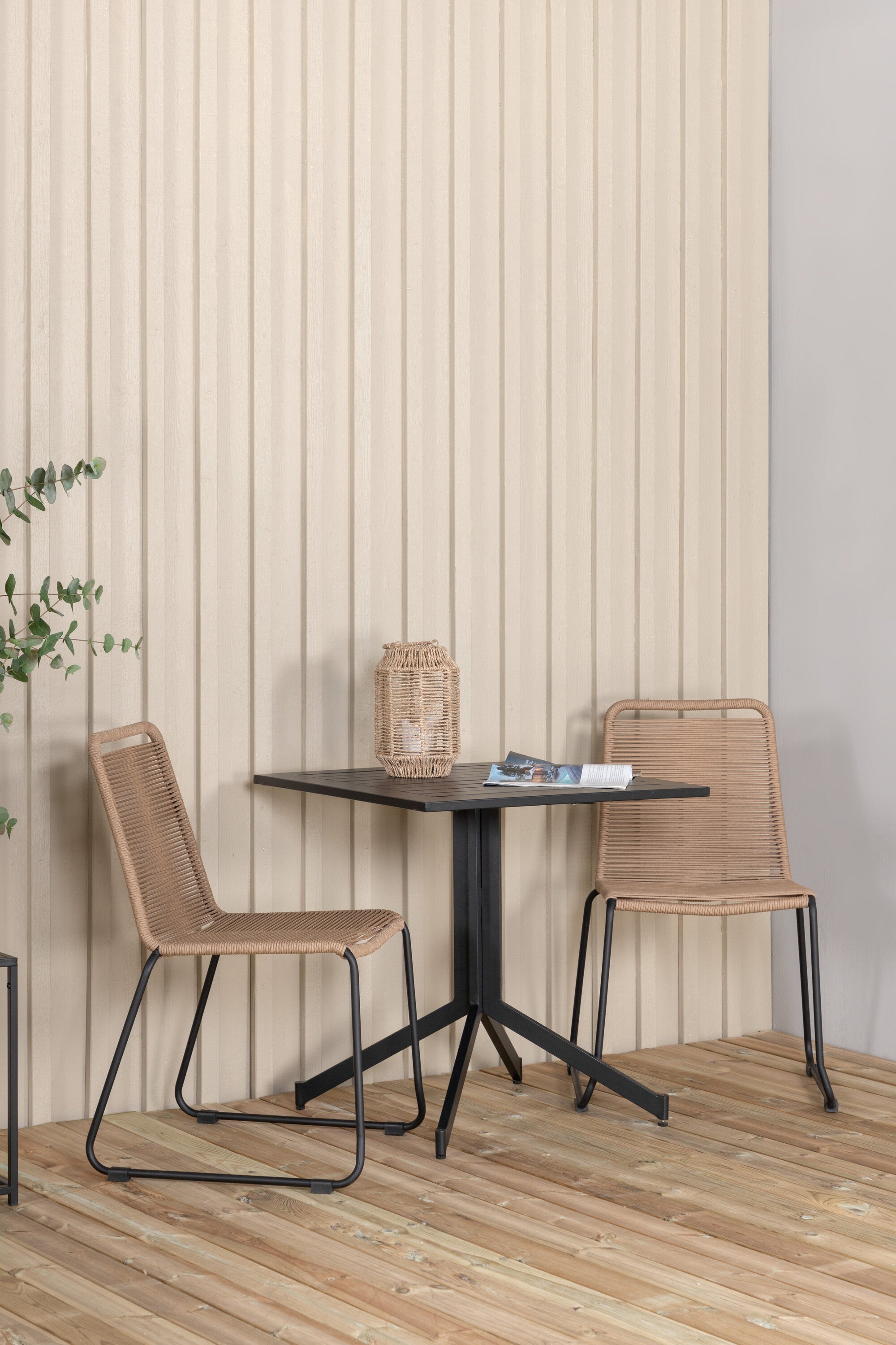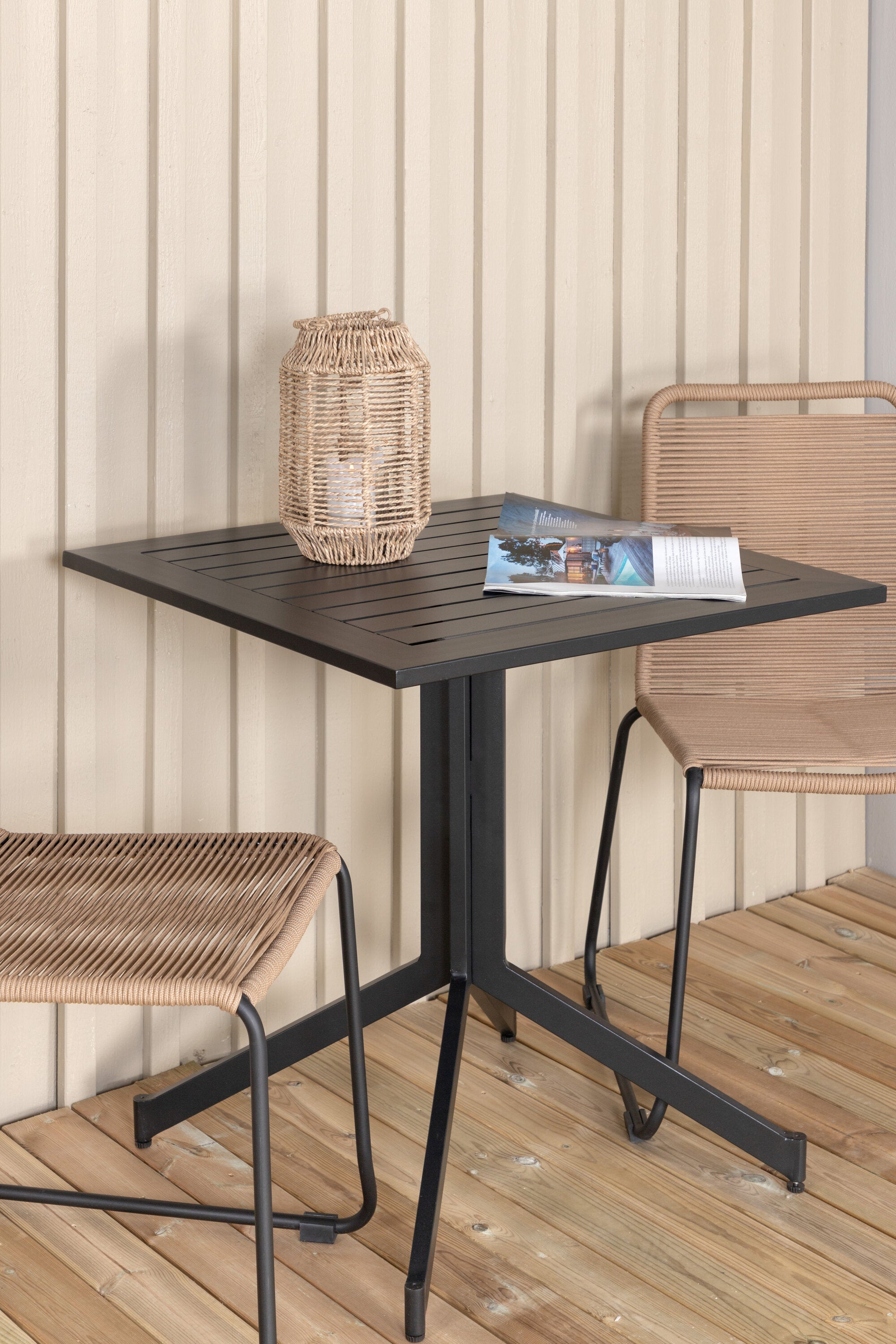 Kavárenský stůl Way 70*70+Lindos Stohovací židle - Black Alu / Latte Rope_2