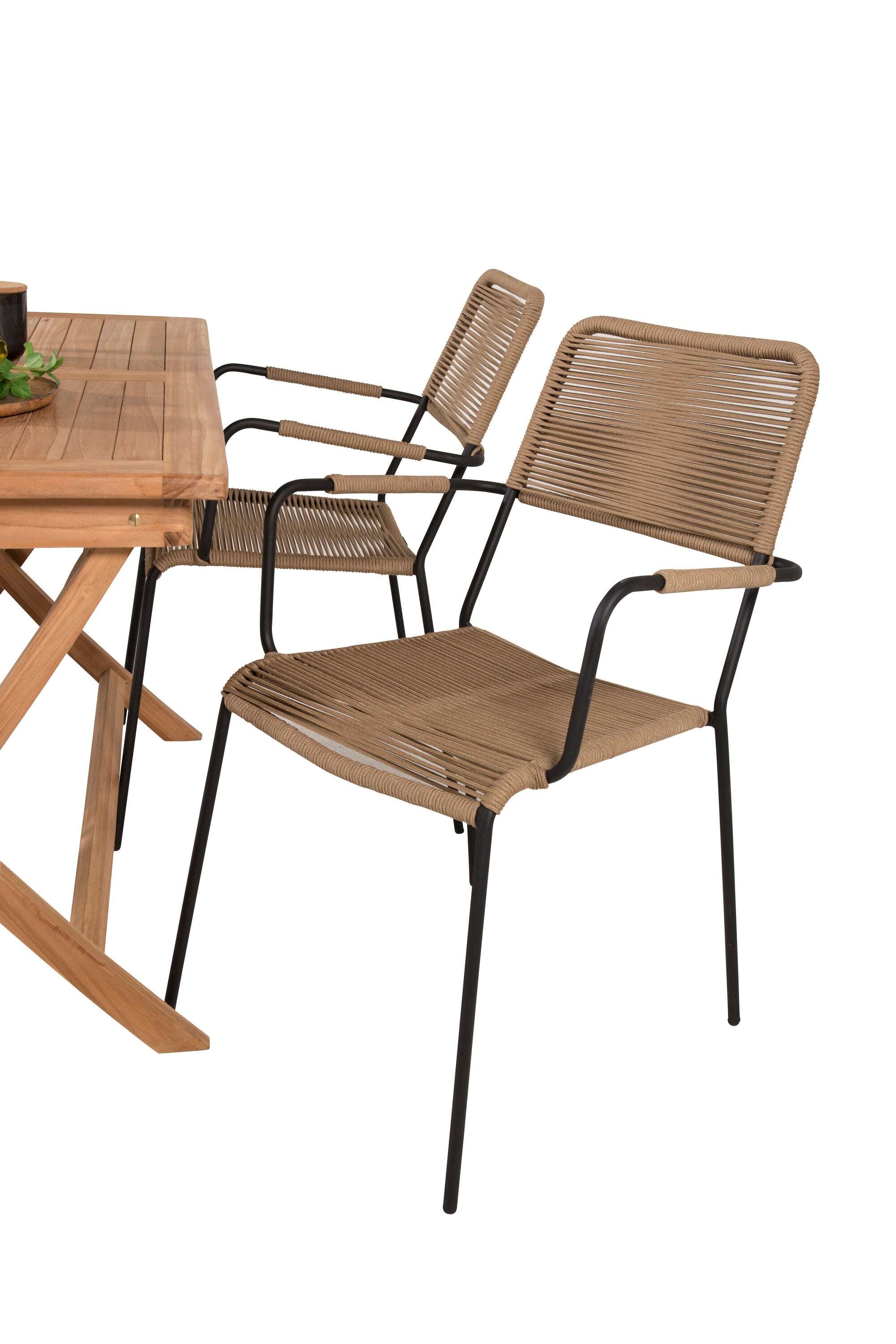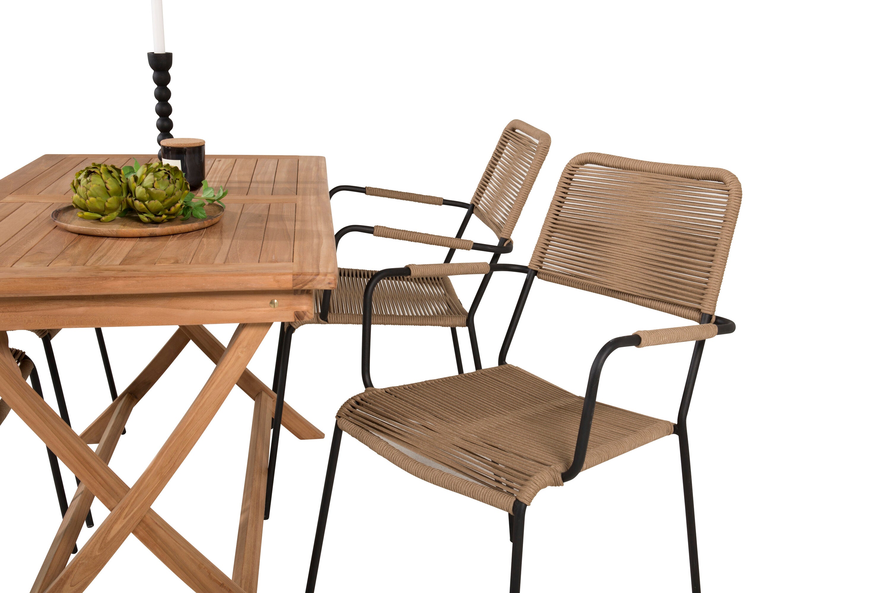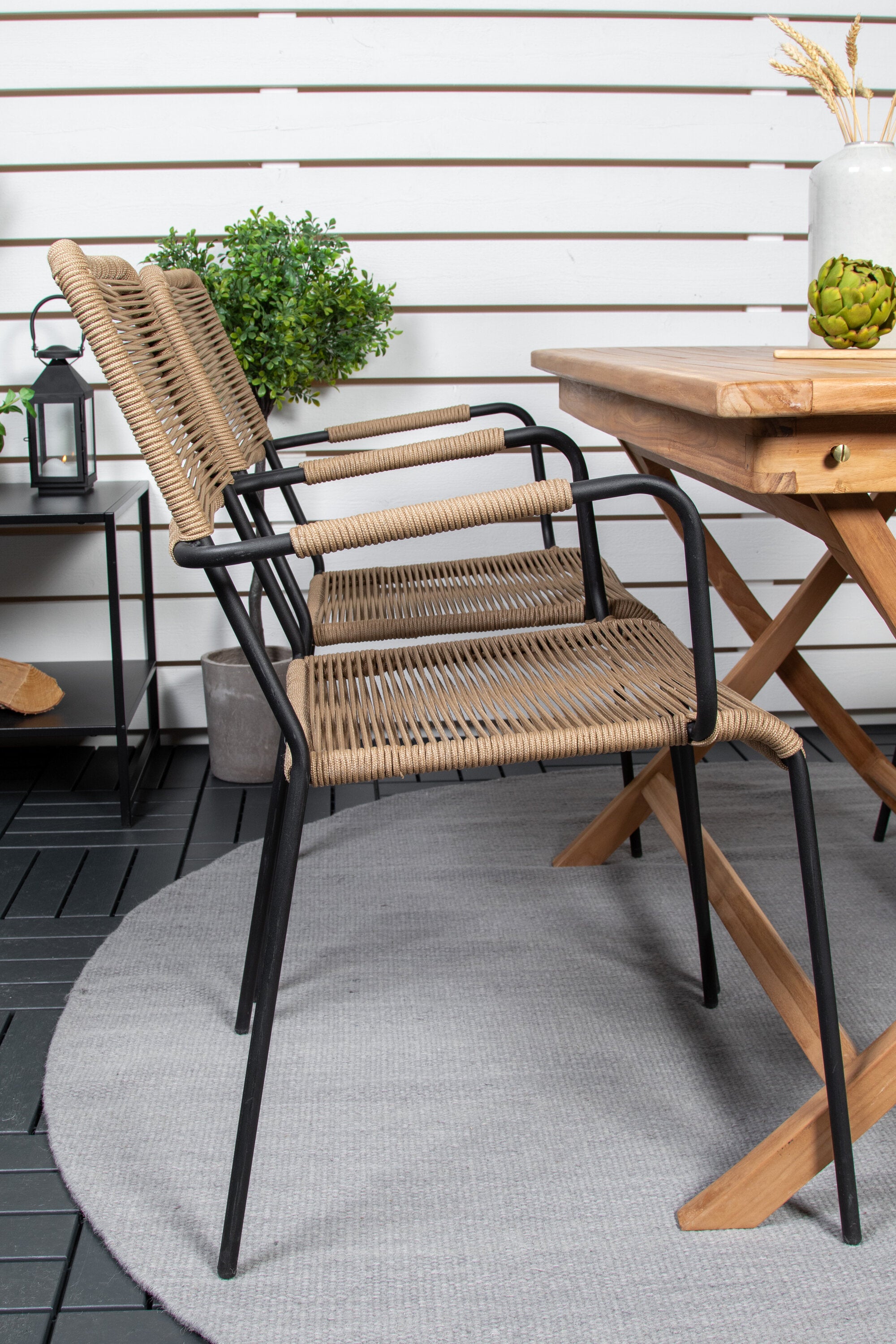 Kenya Jídelní stůl 120*70*H75 - Teak+Lindos - Křeslo - Black Alu / Latte Rope_4